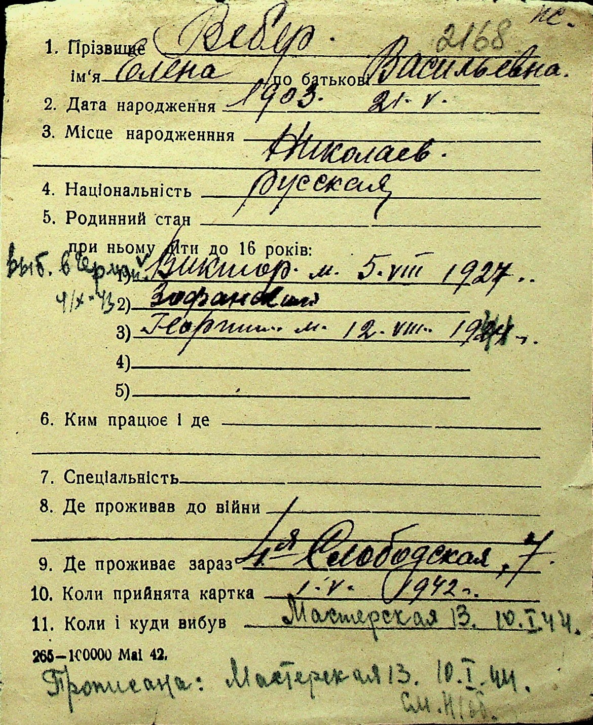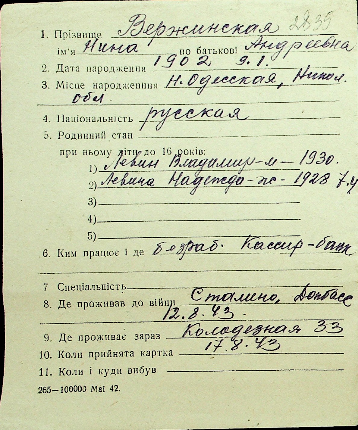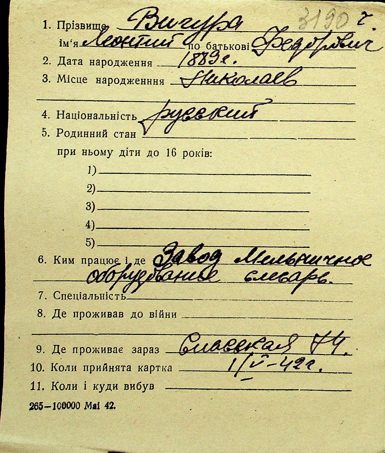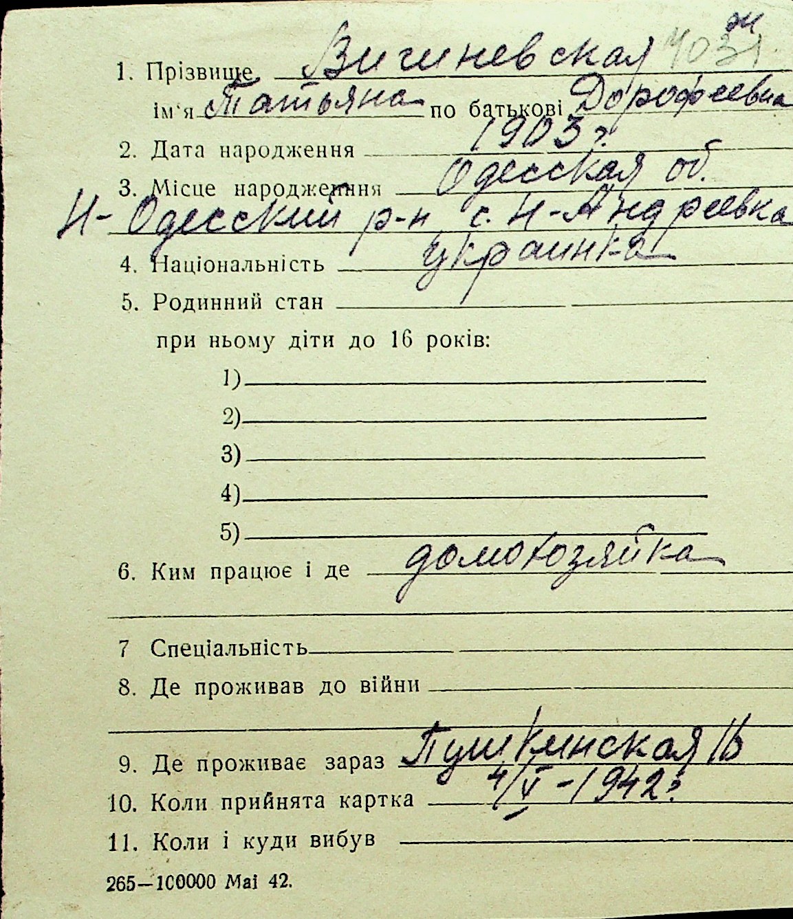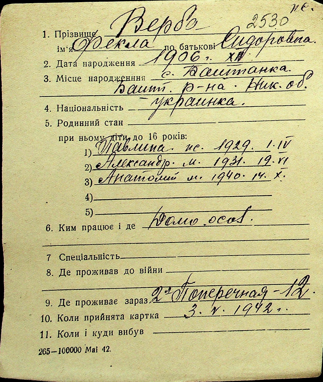 • • Перелік карток до фонду № Н-1016