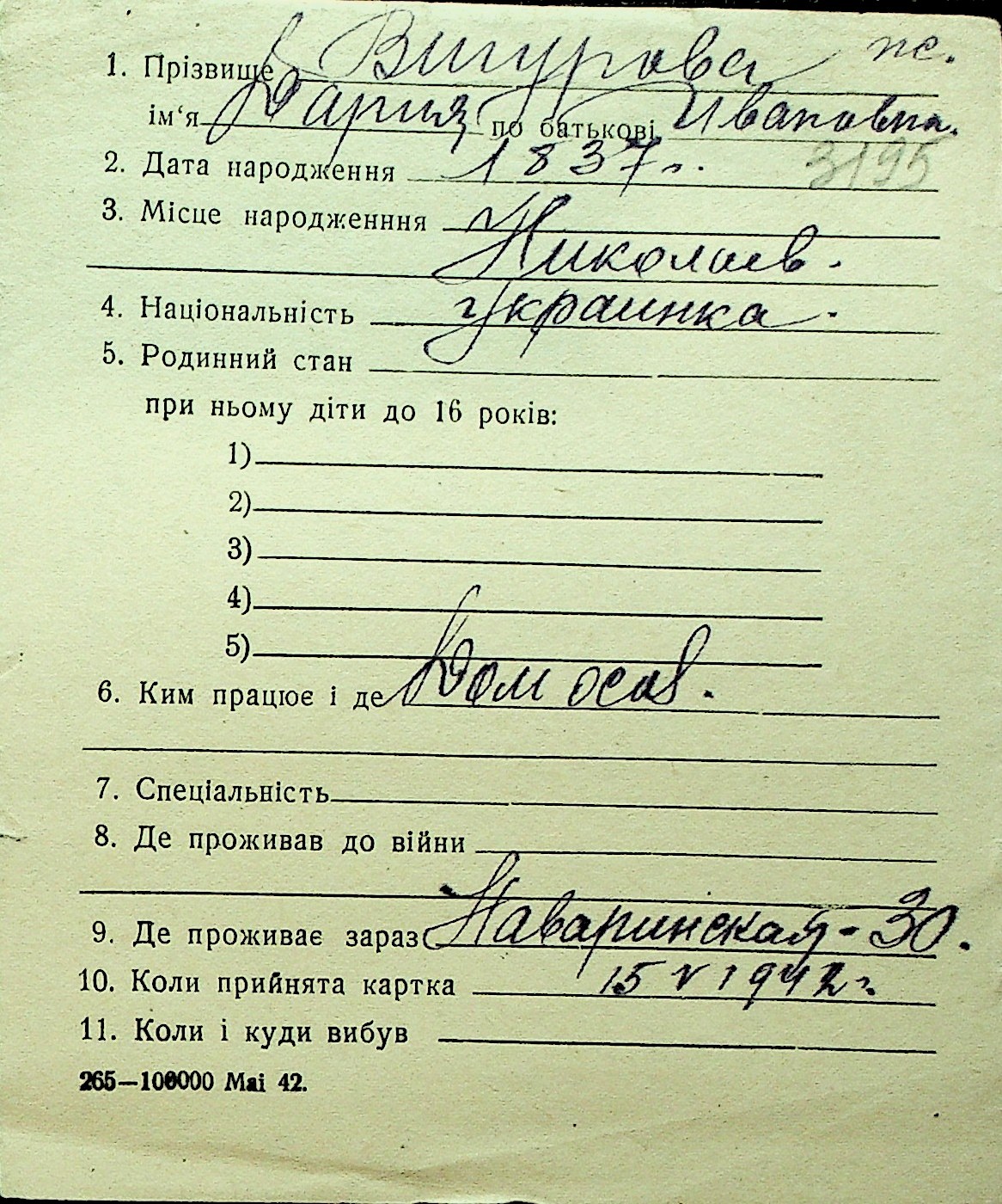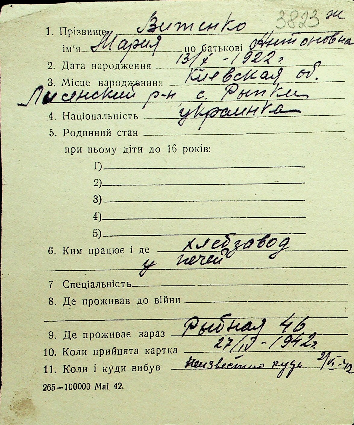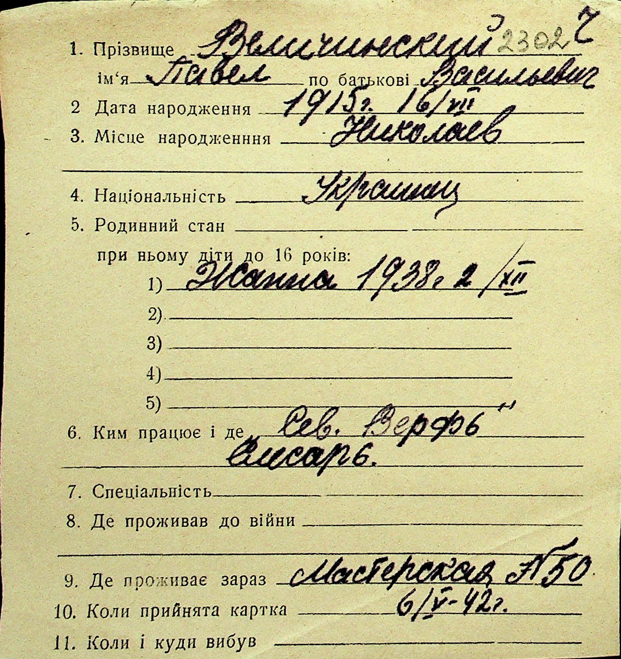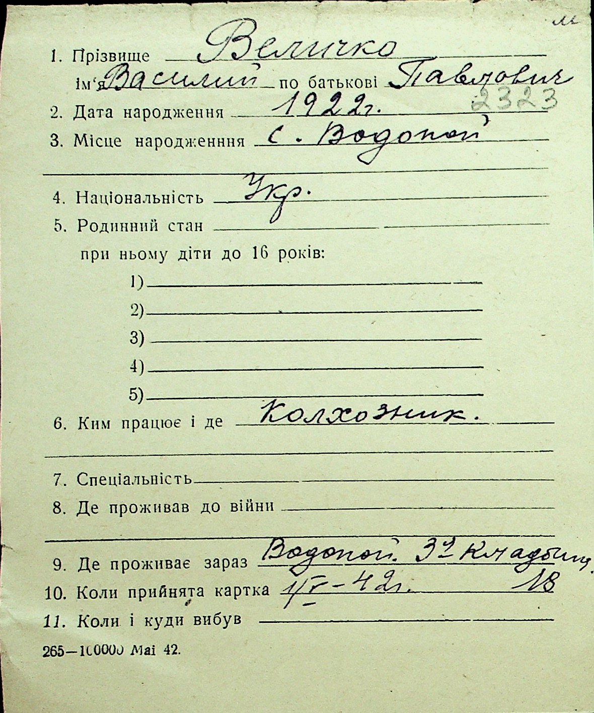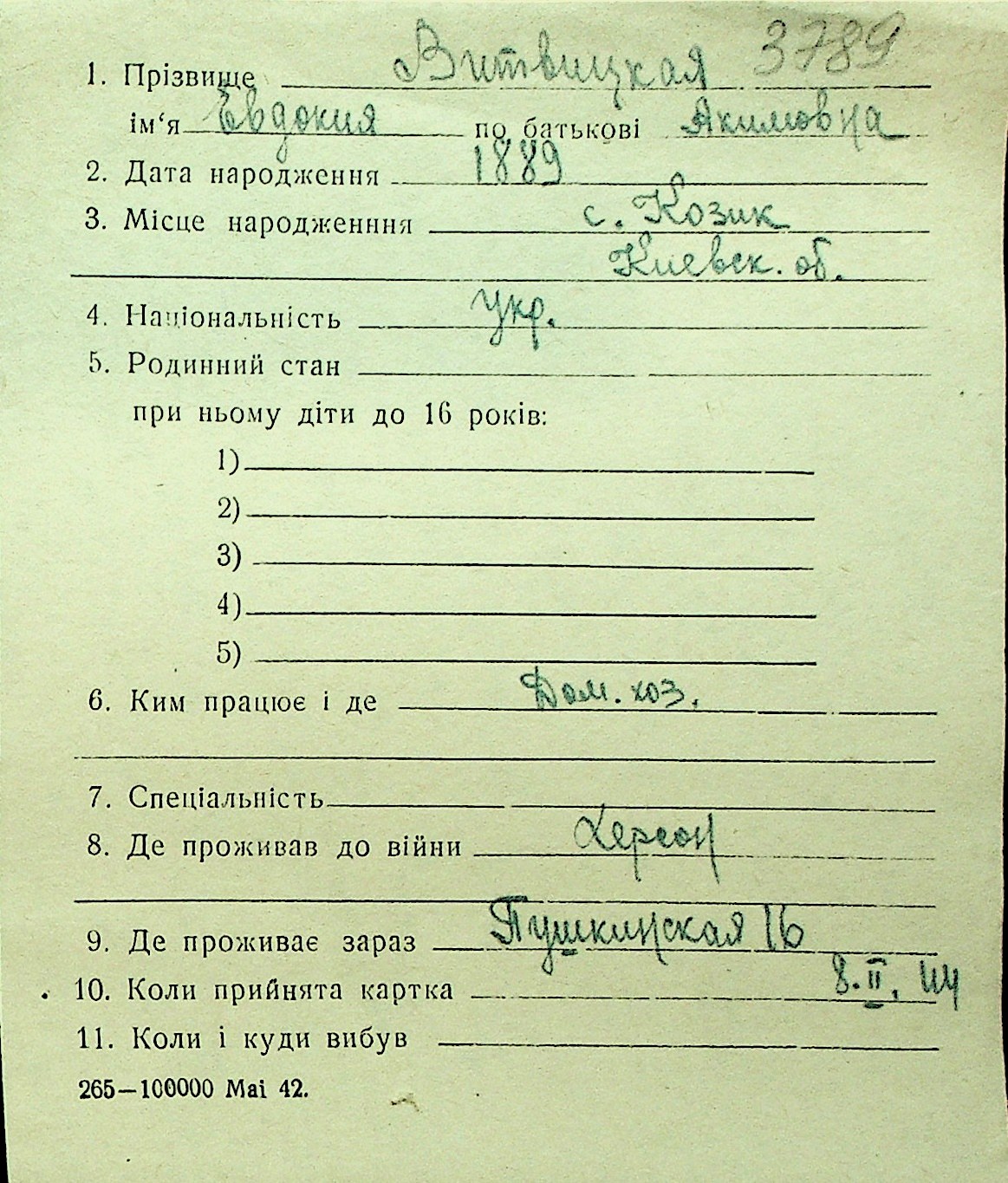 • • Перелік карток до фонду № Н-1016