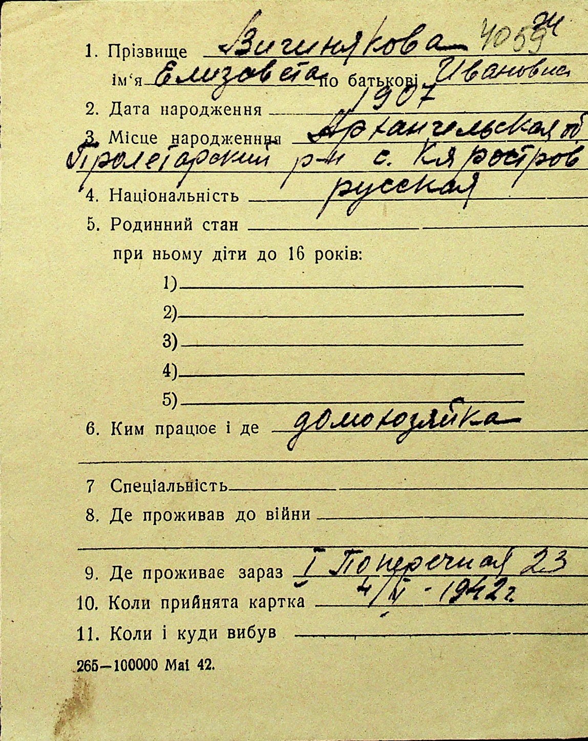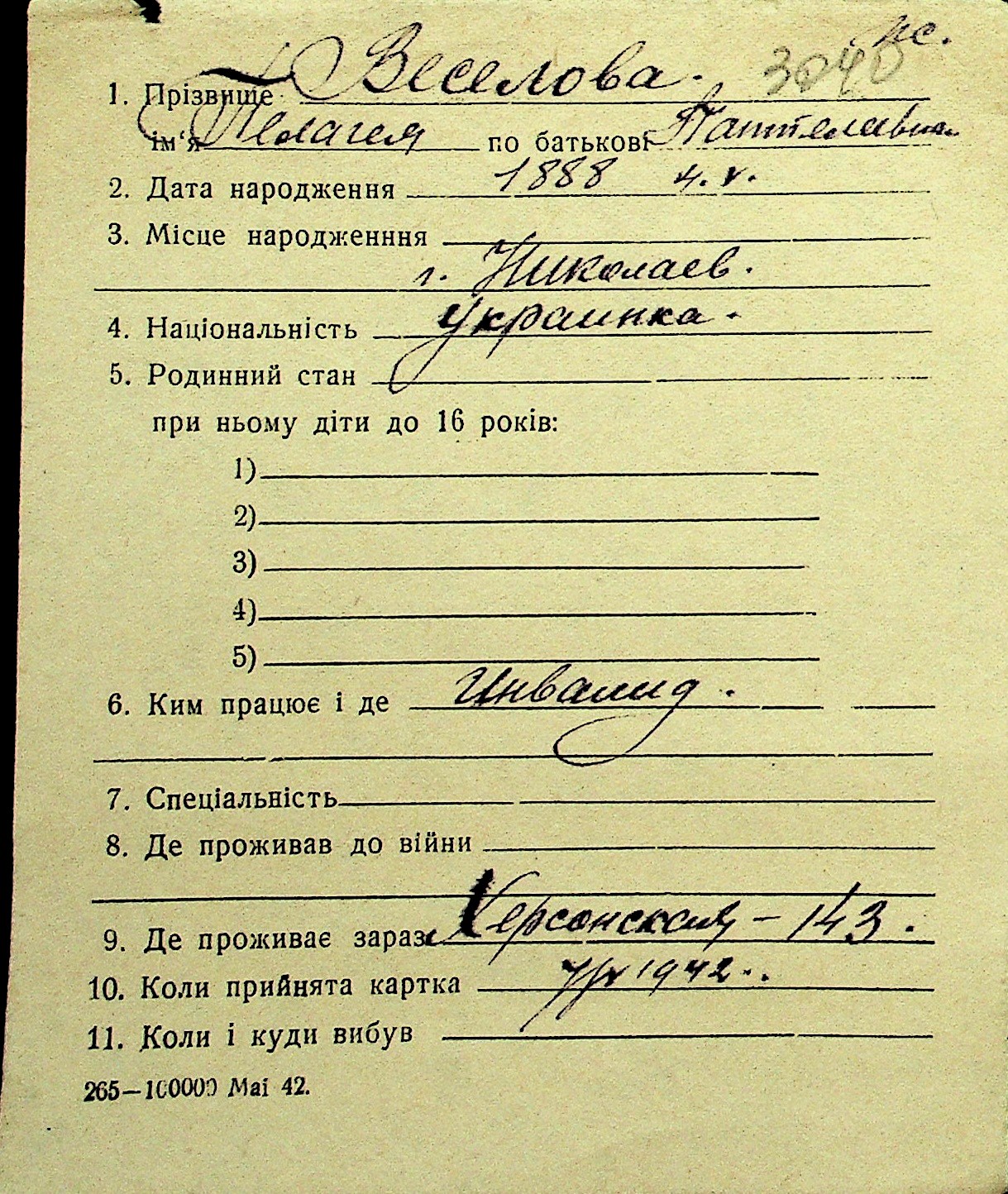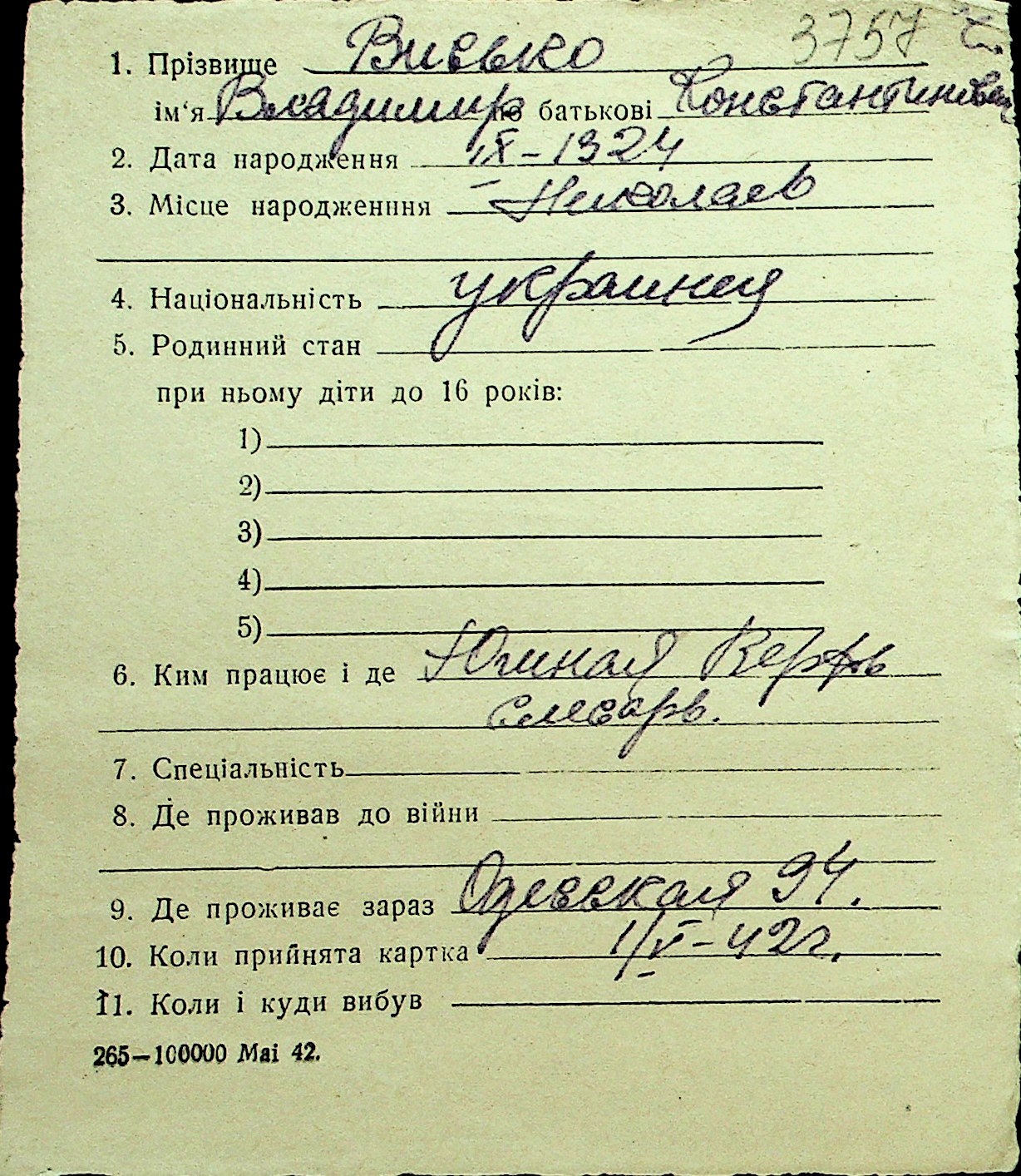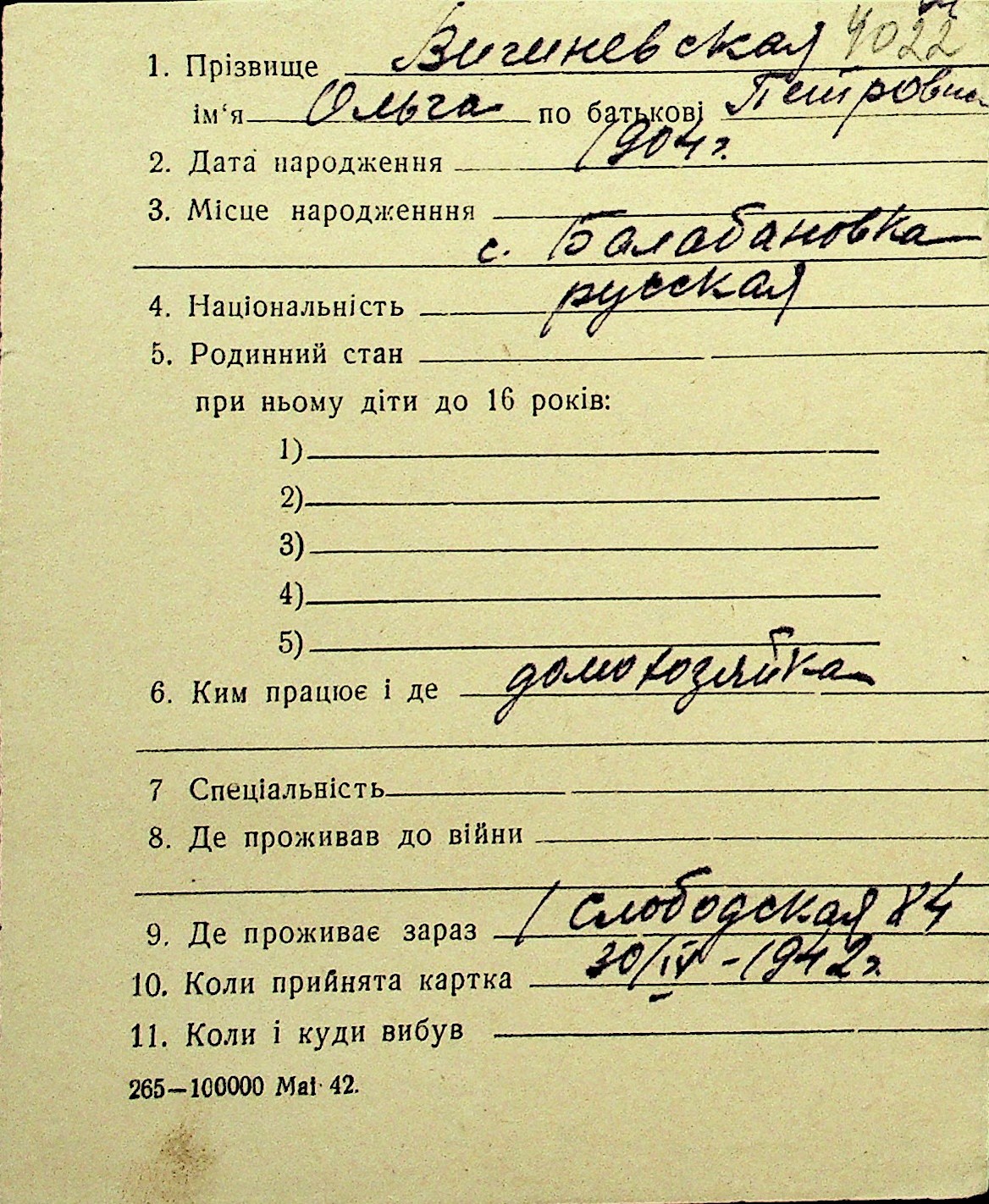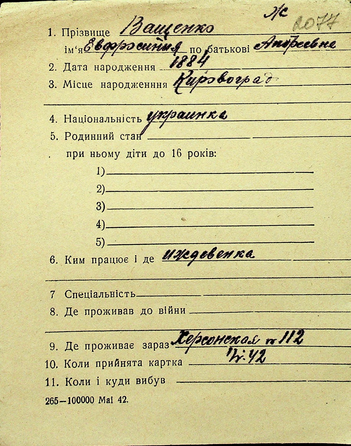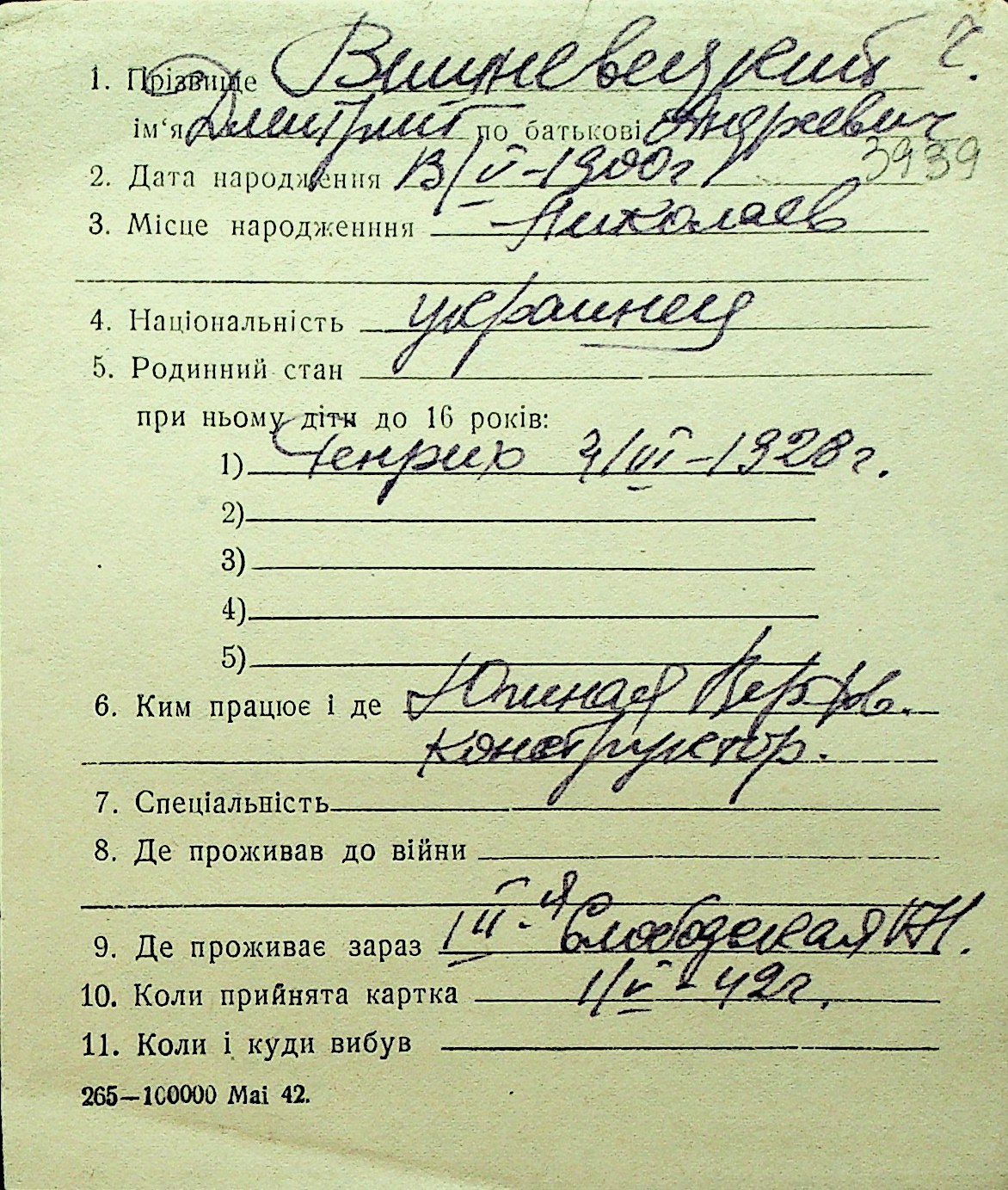 • • Перелік карток до фонду № Н-1016