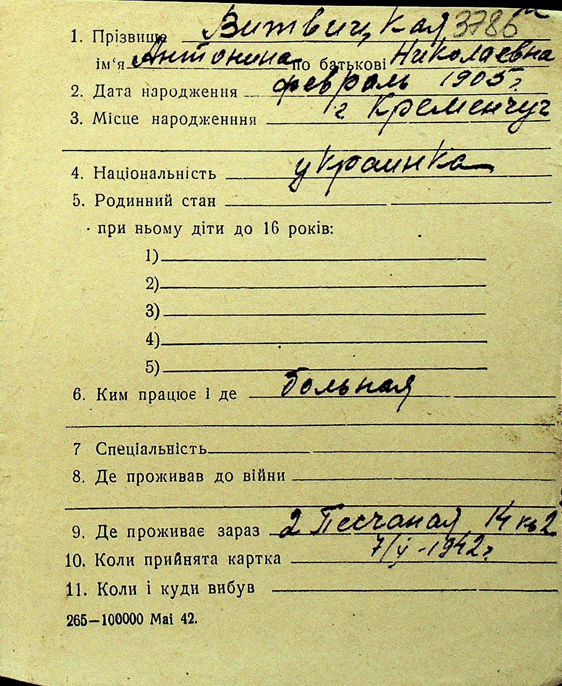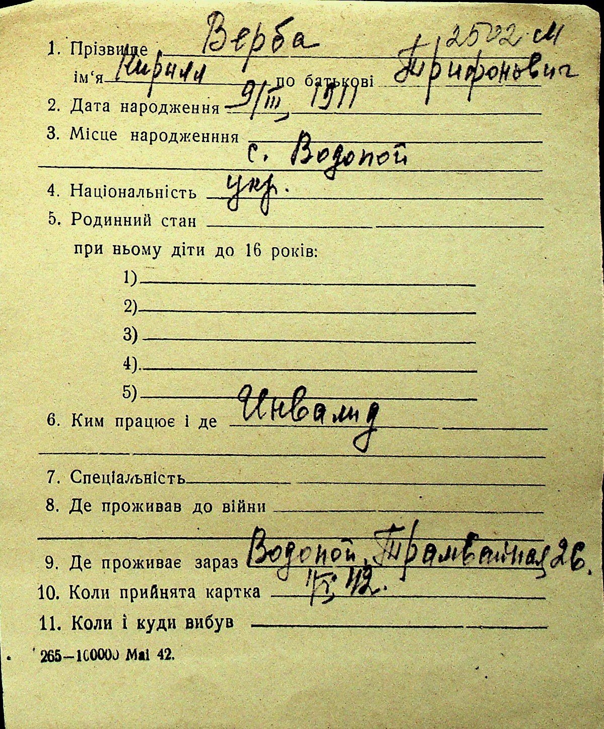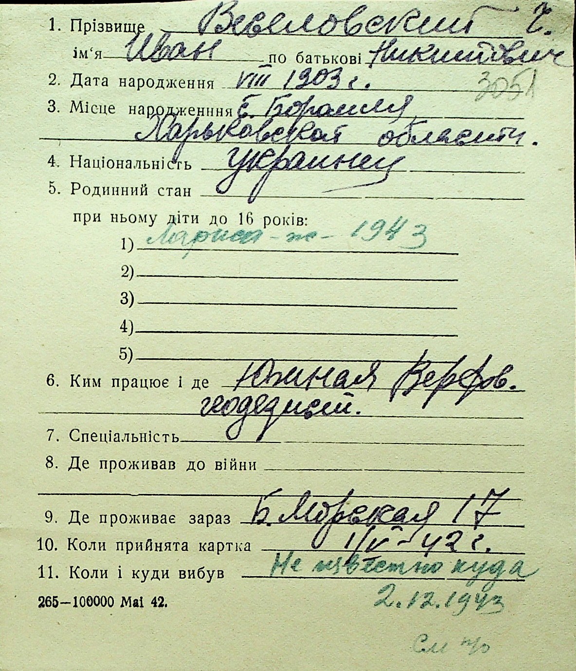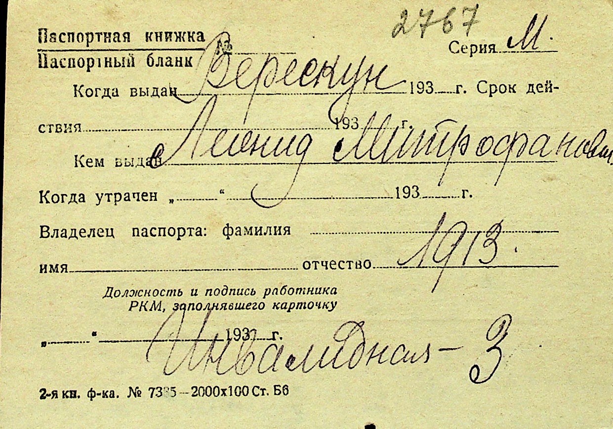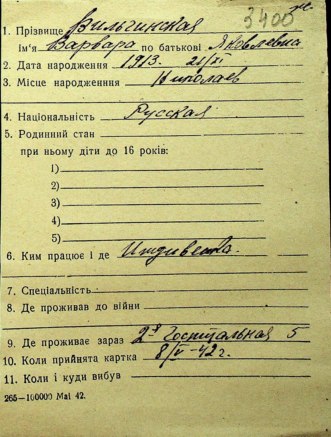 • • Перелік карток до фонду № Н-1016