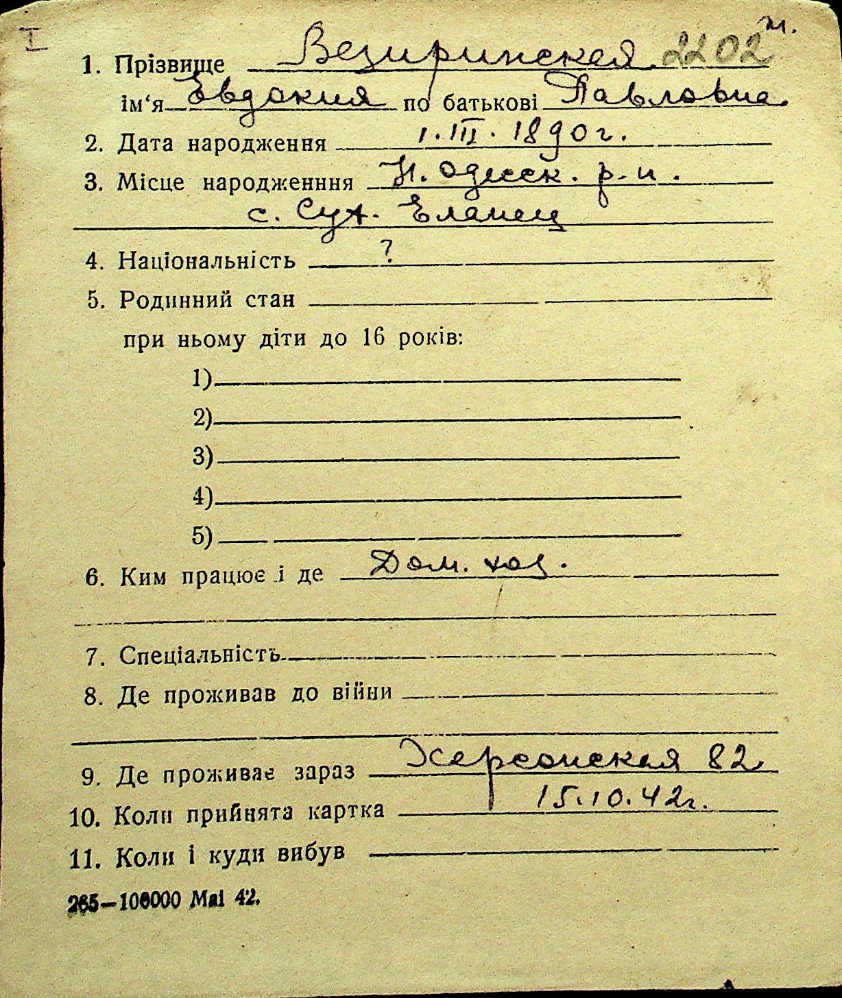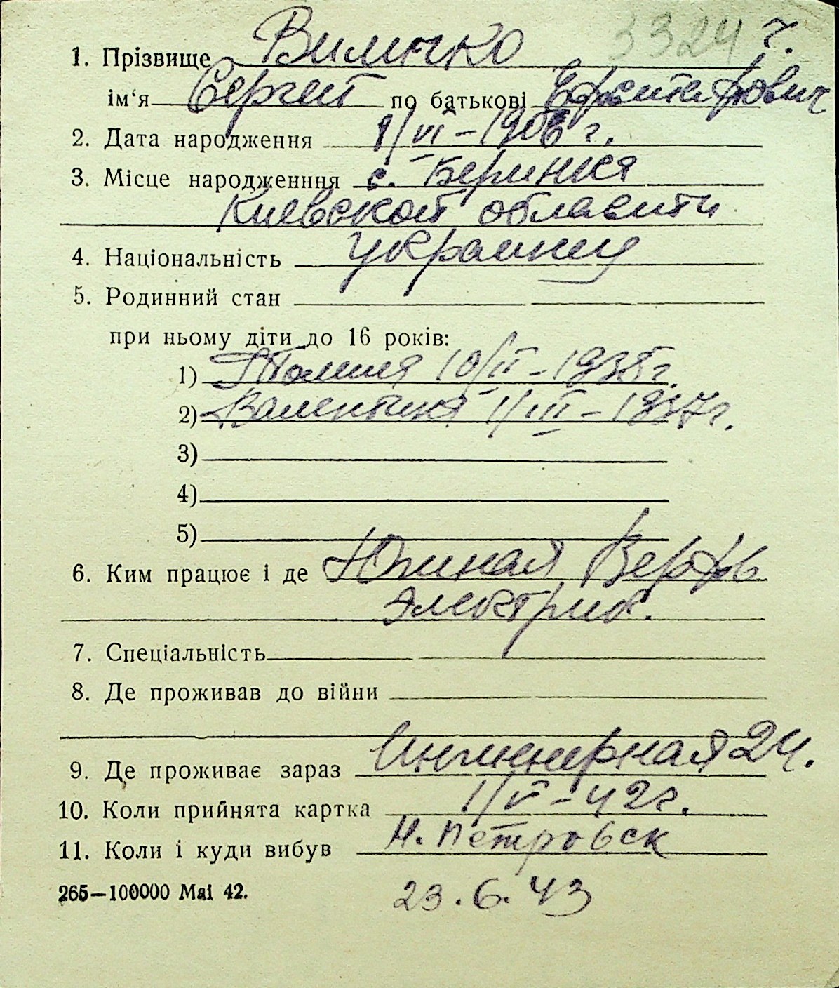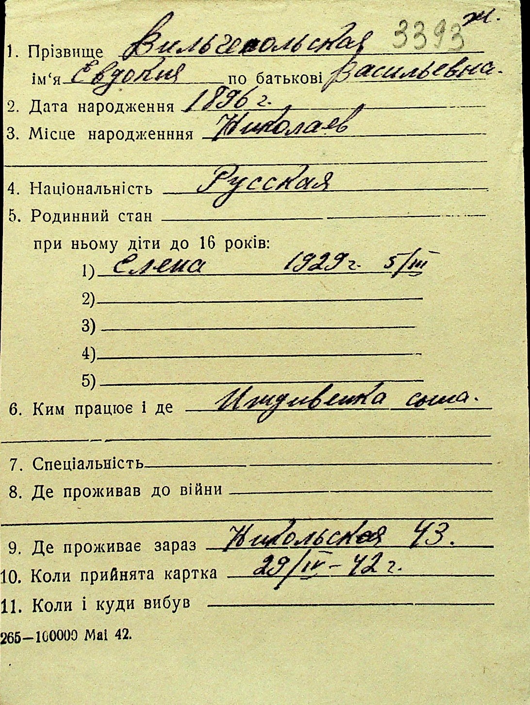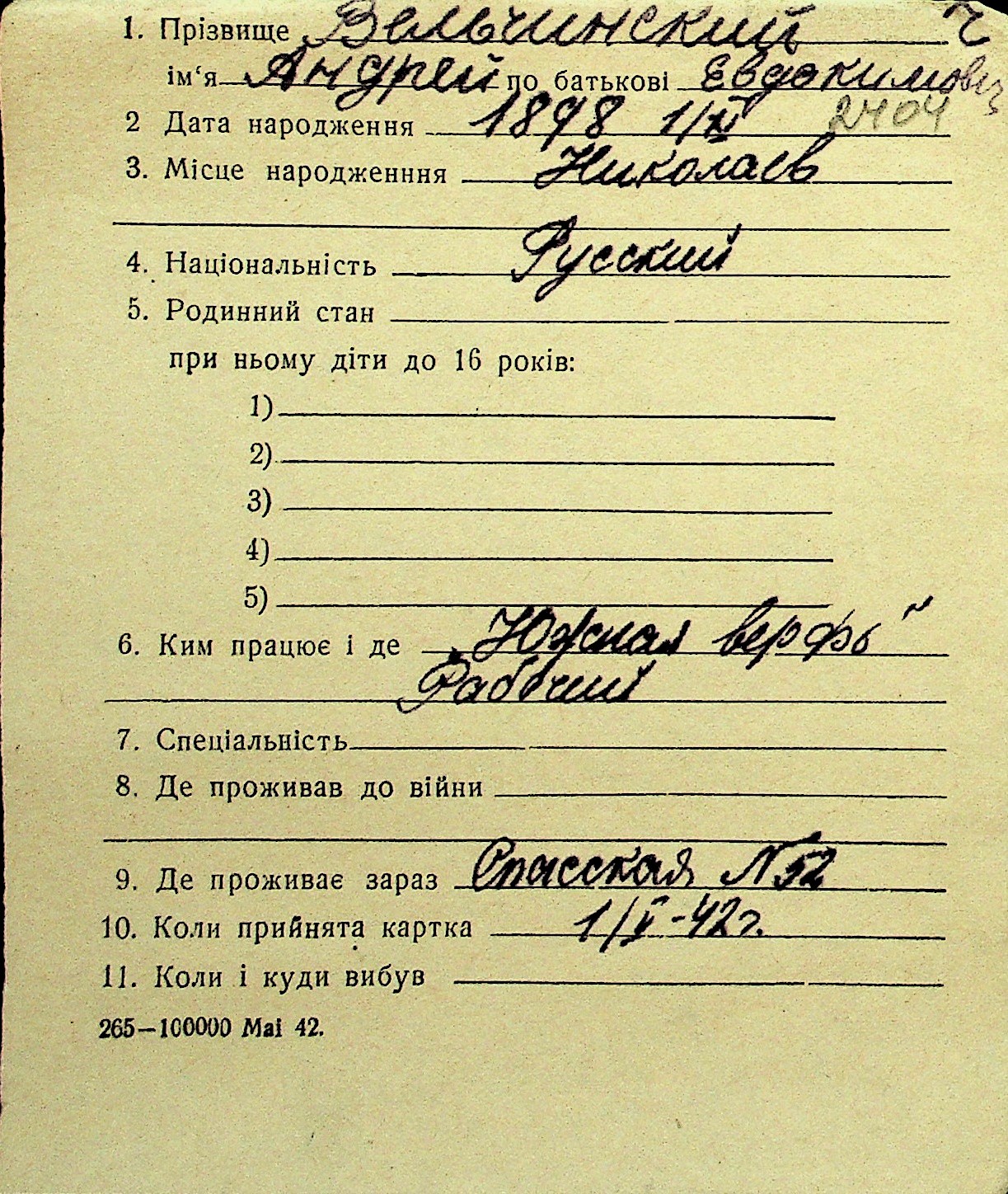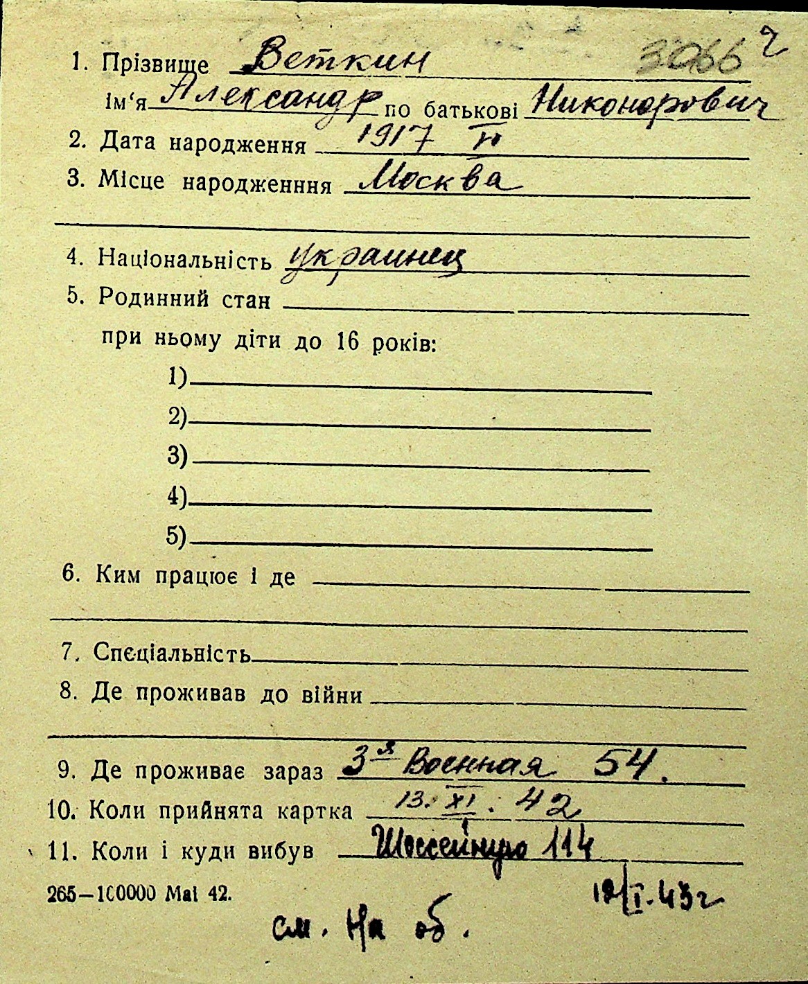 • • Перелік карток до фонду № Н-1016