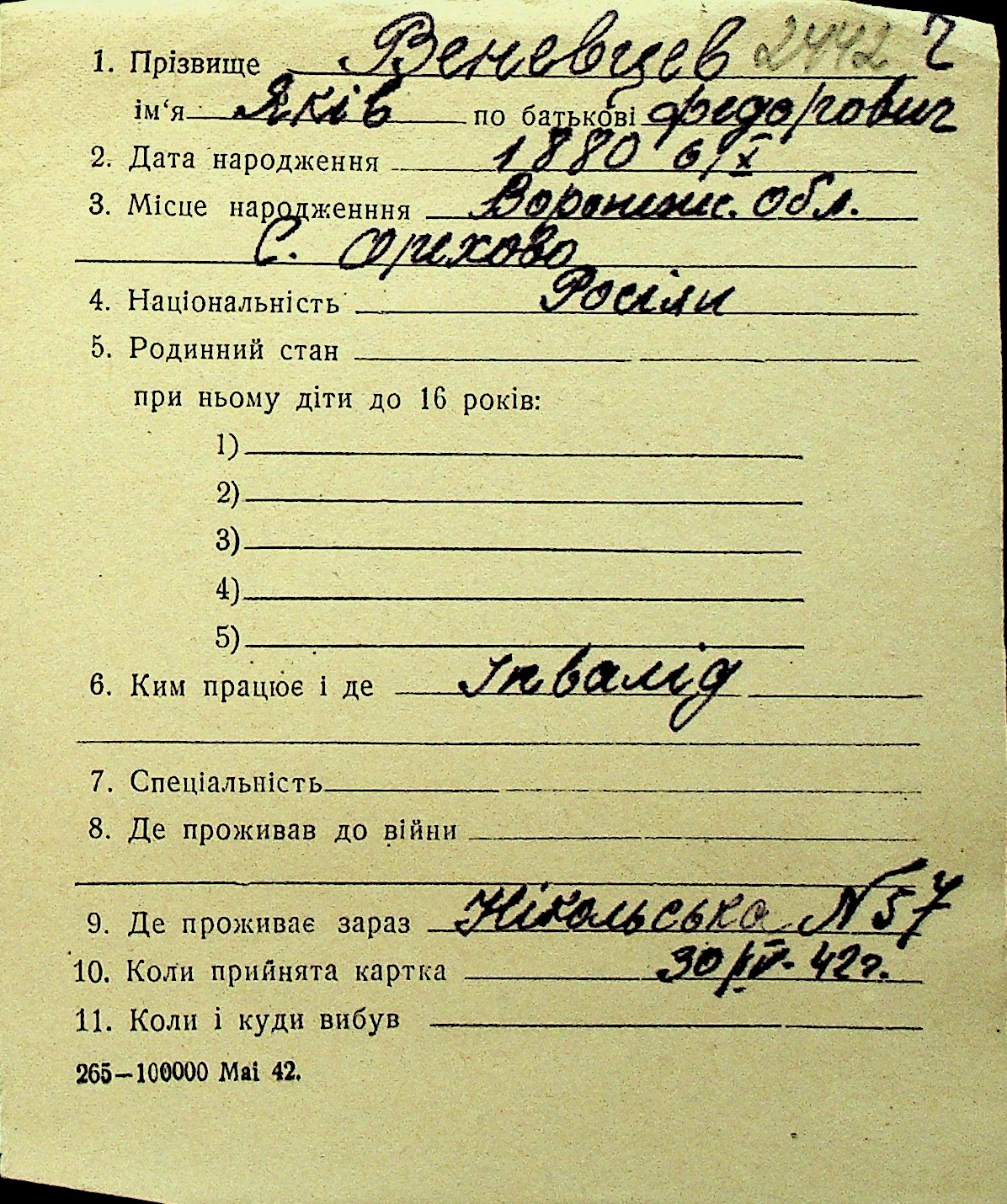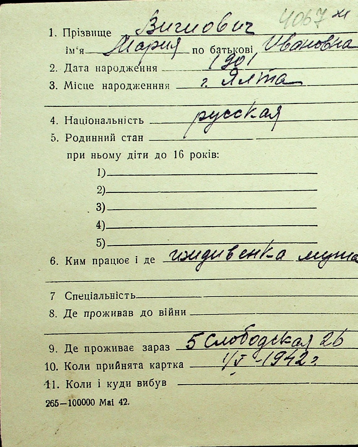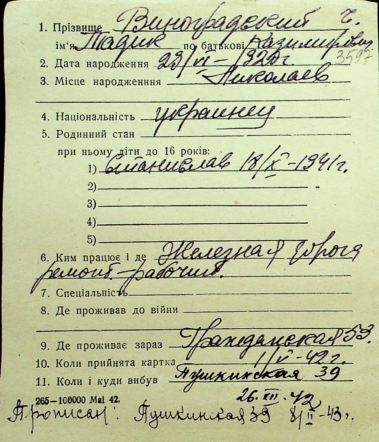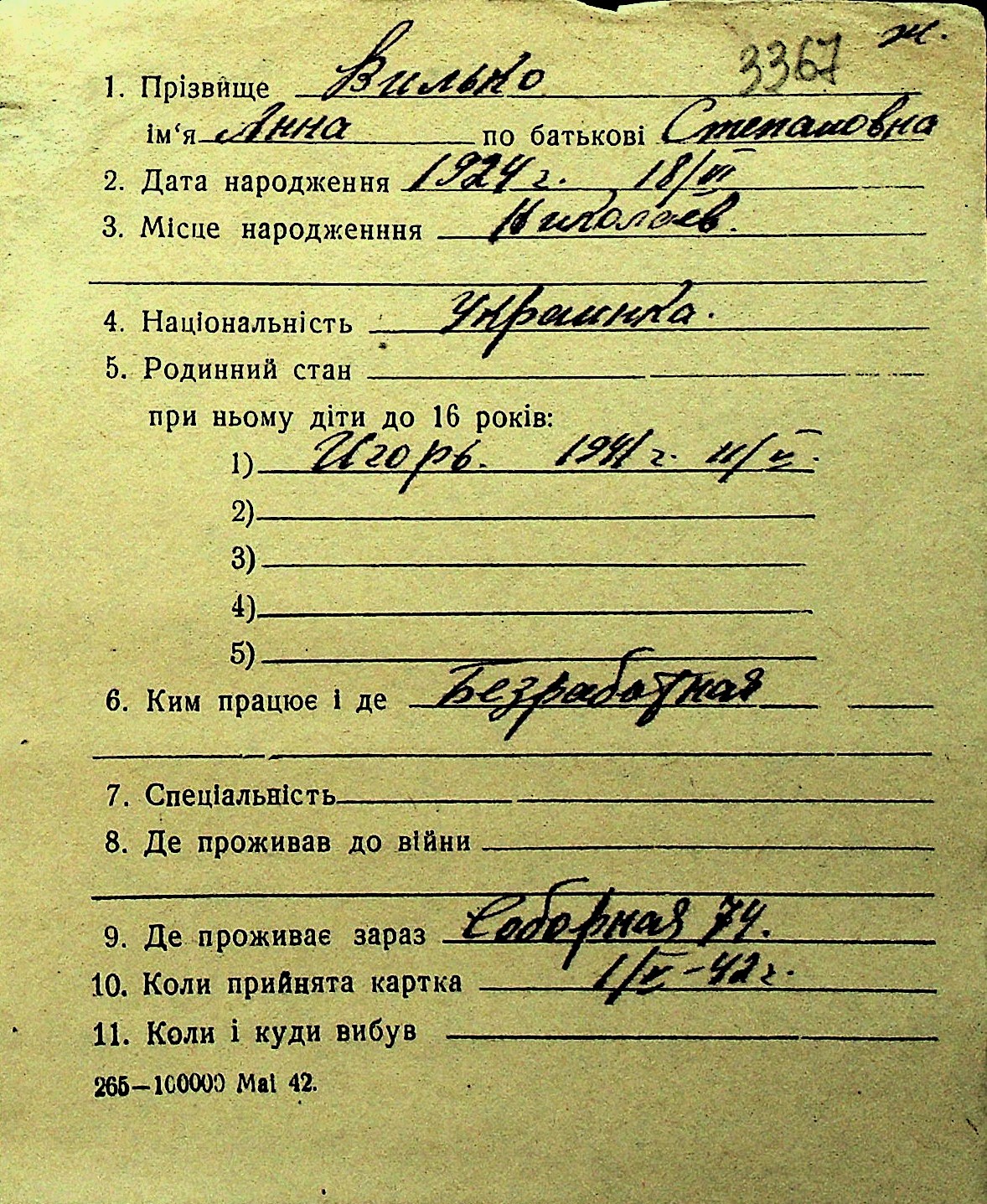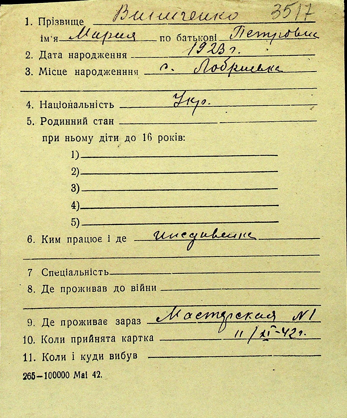 • • Перелік карток до фонду № Н-1016