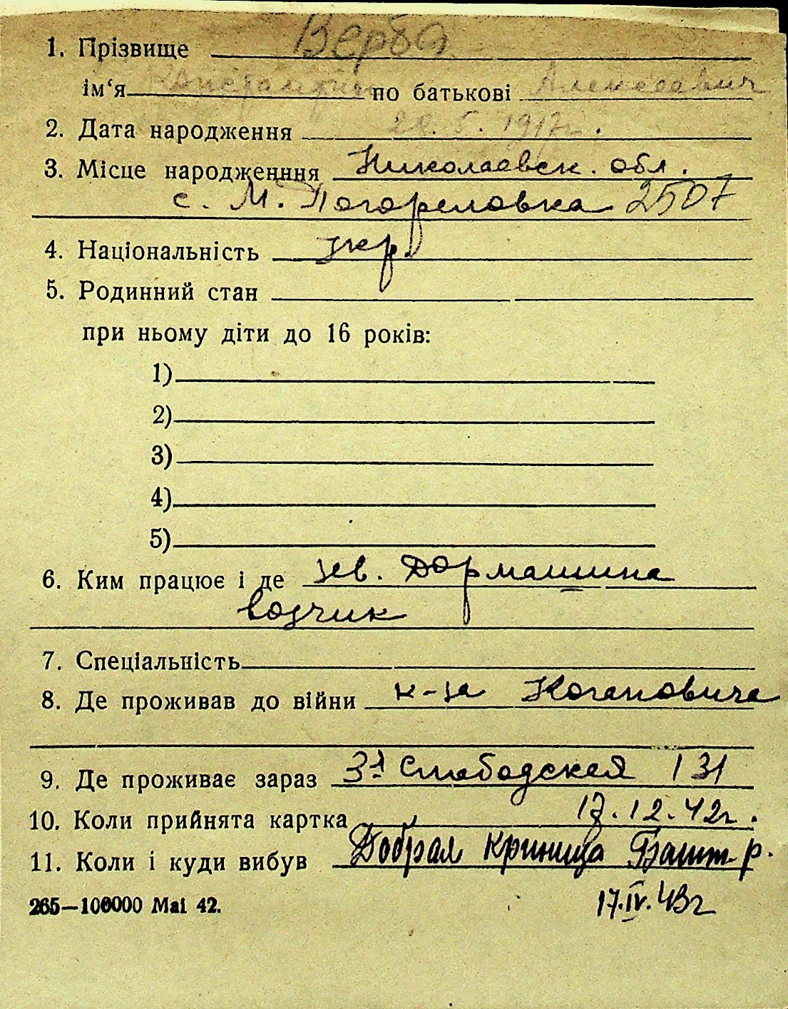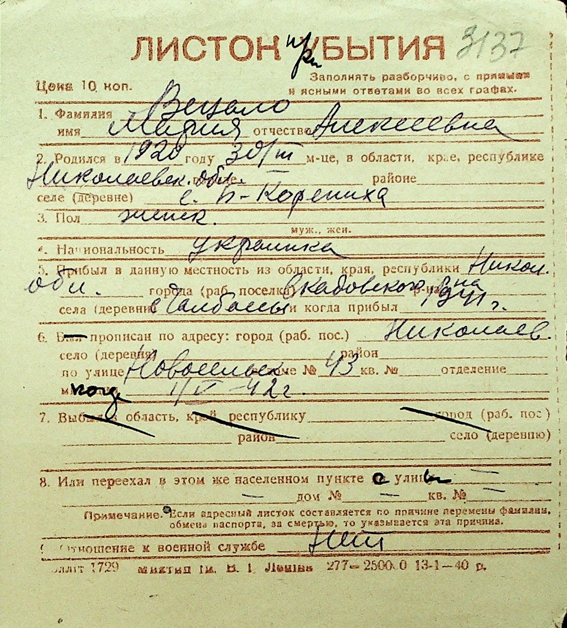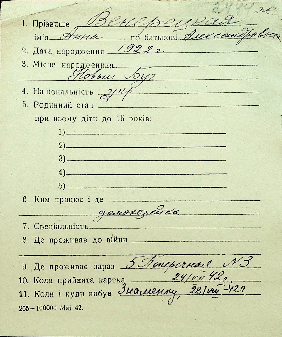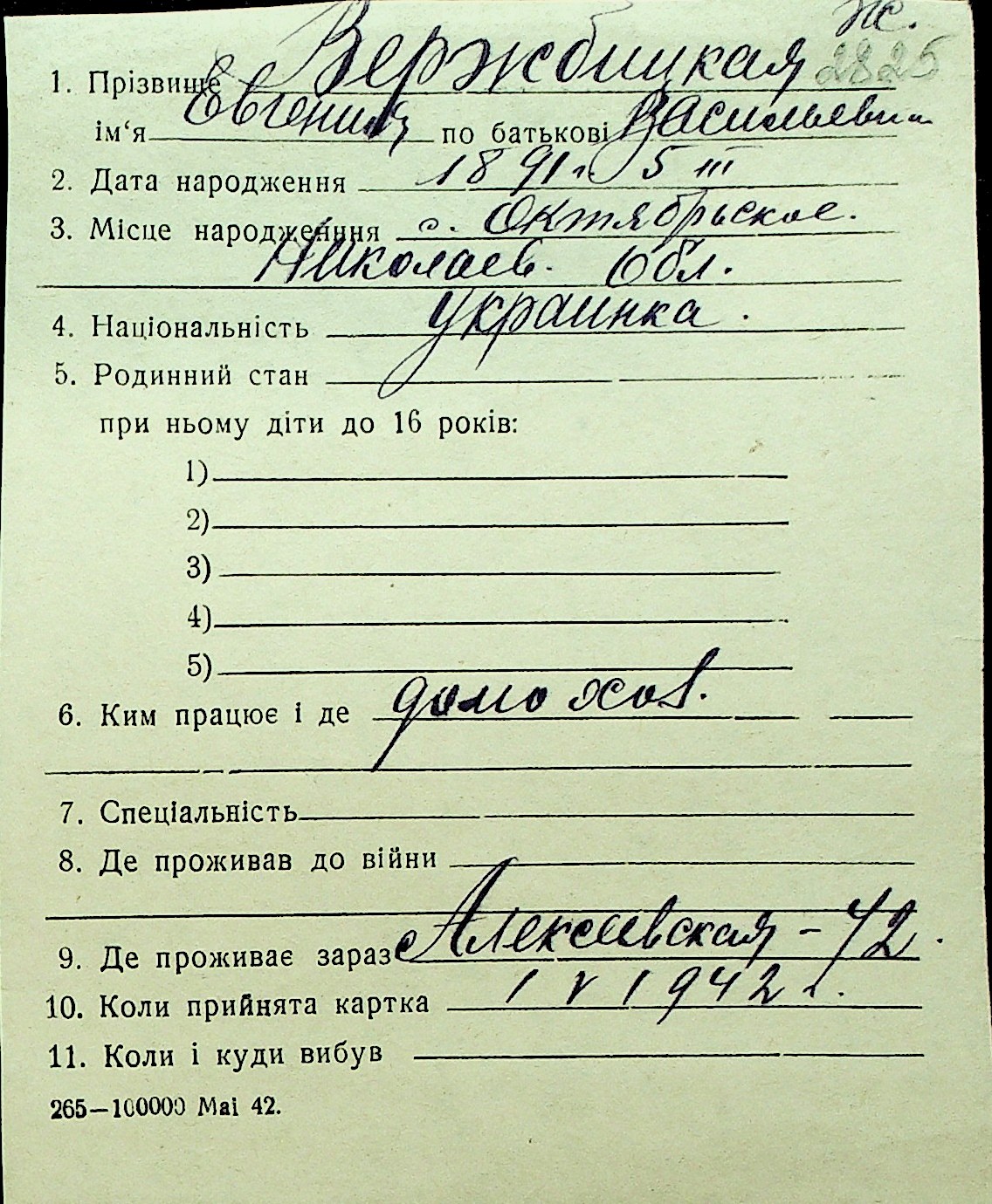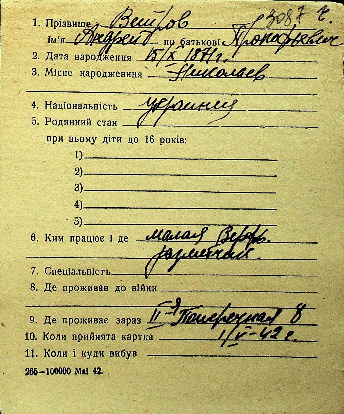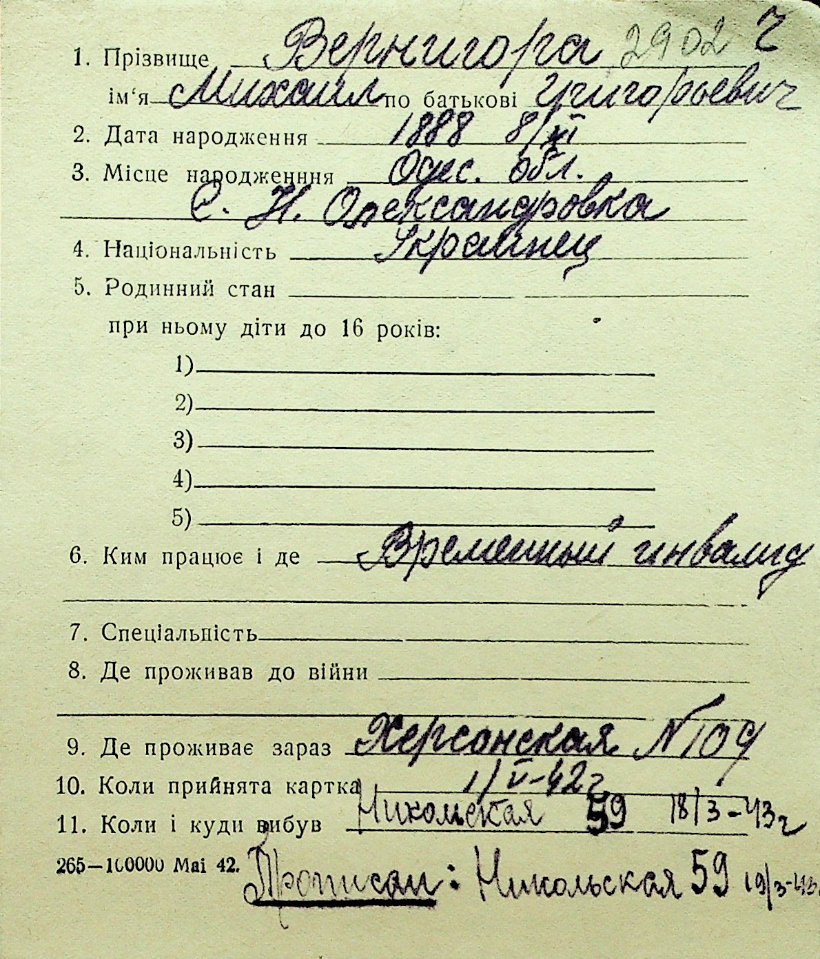 • • Перелік карток до фонду № Н-1016
