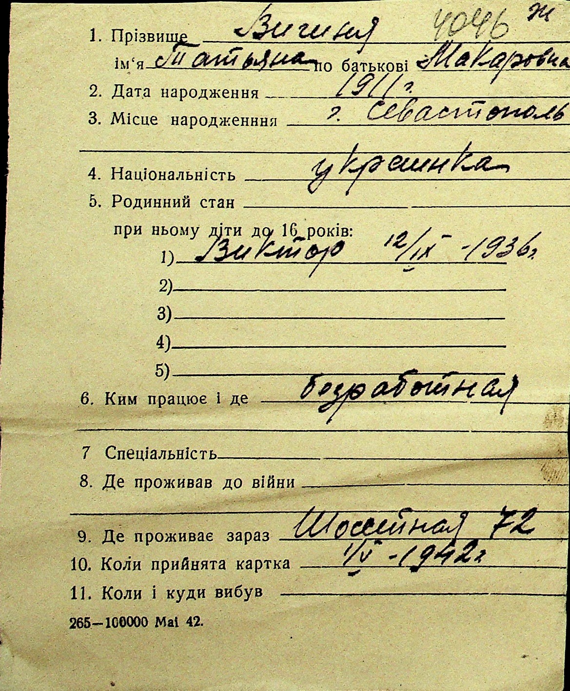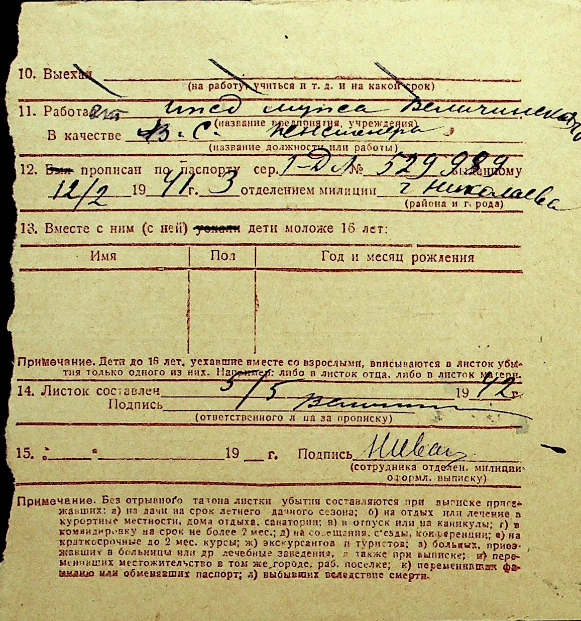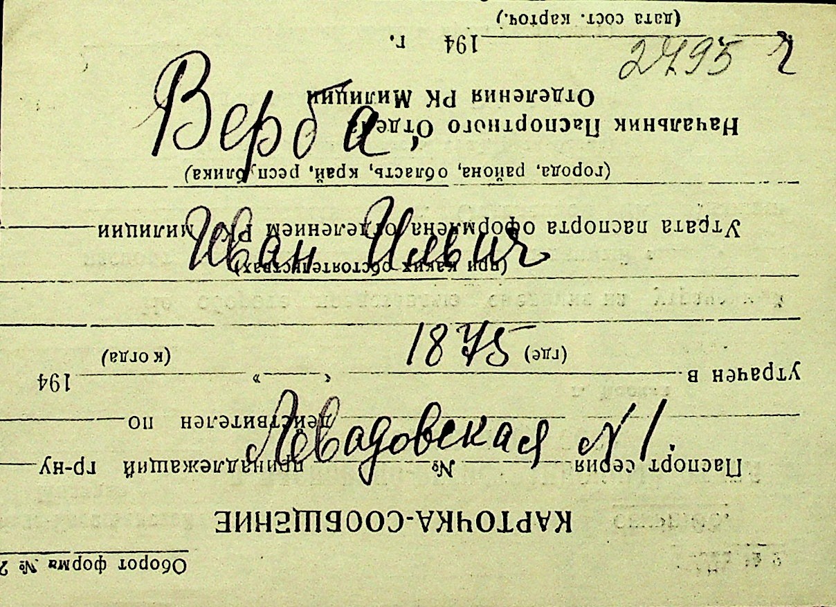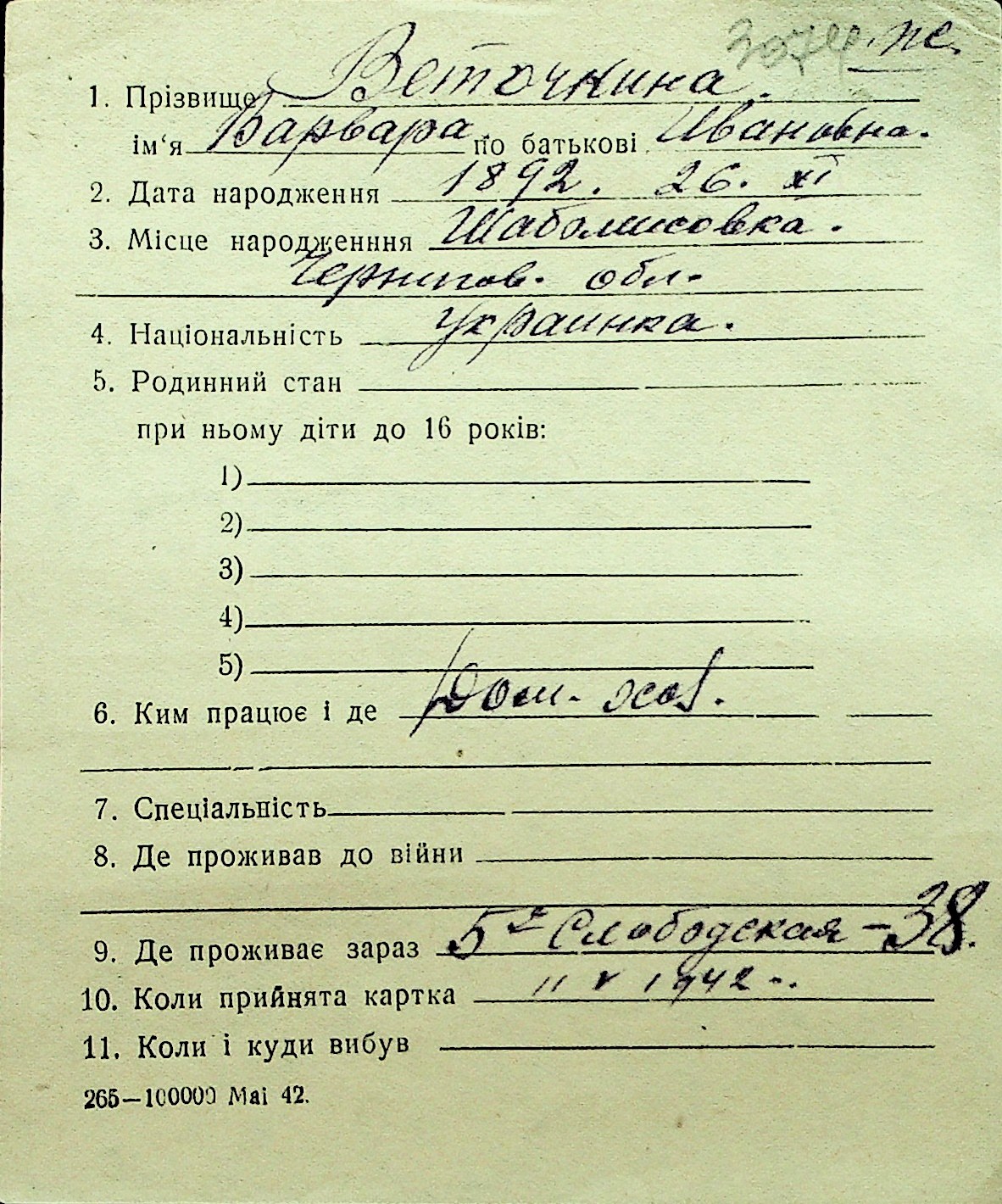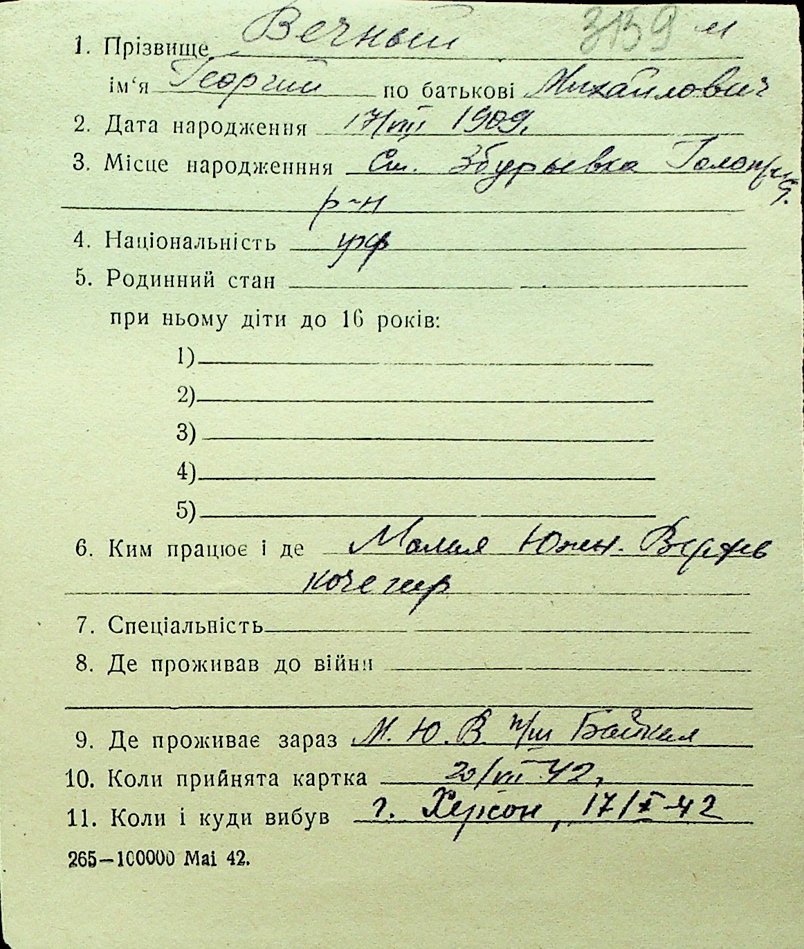 • • Перелік карток до фонду № Н-1016