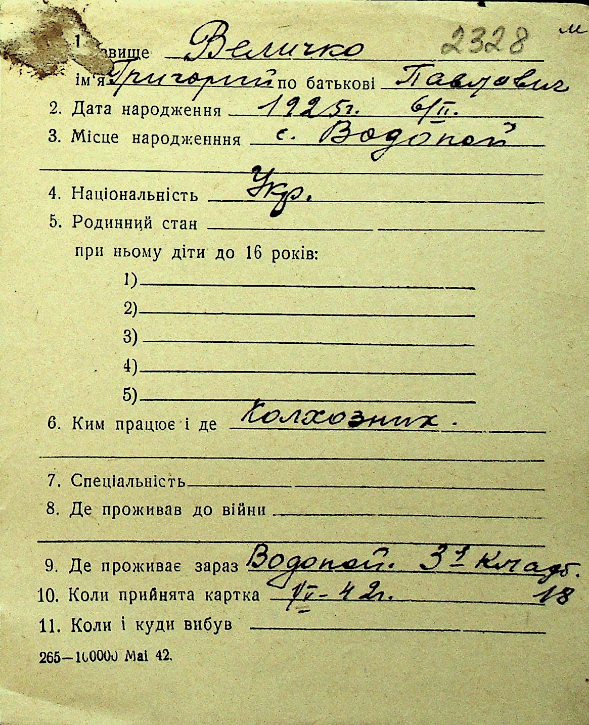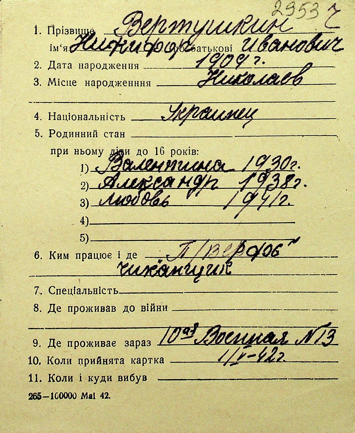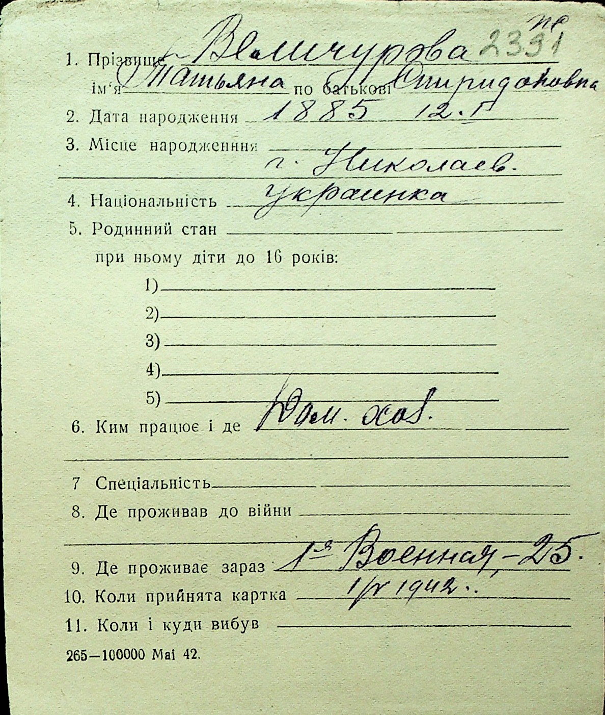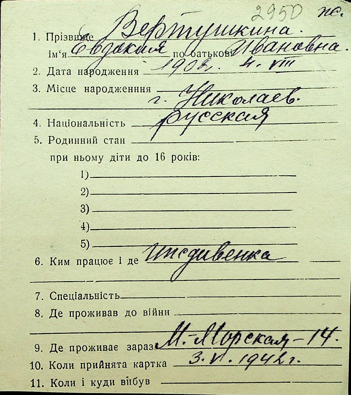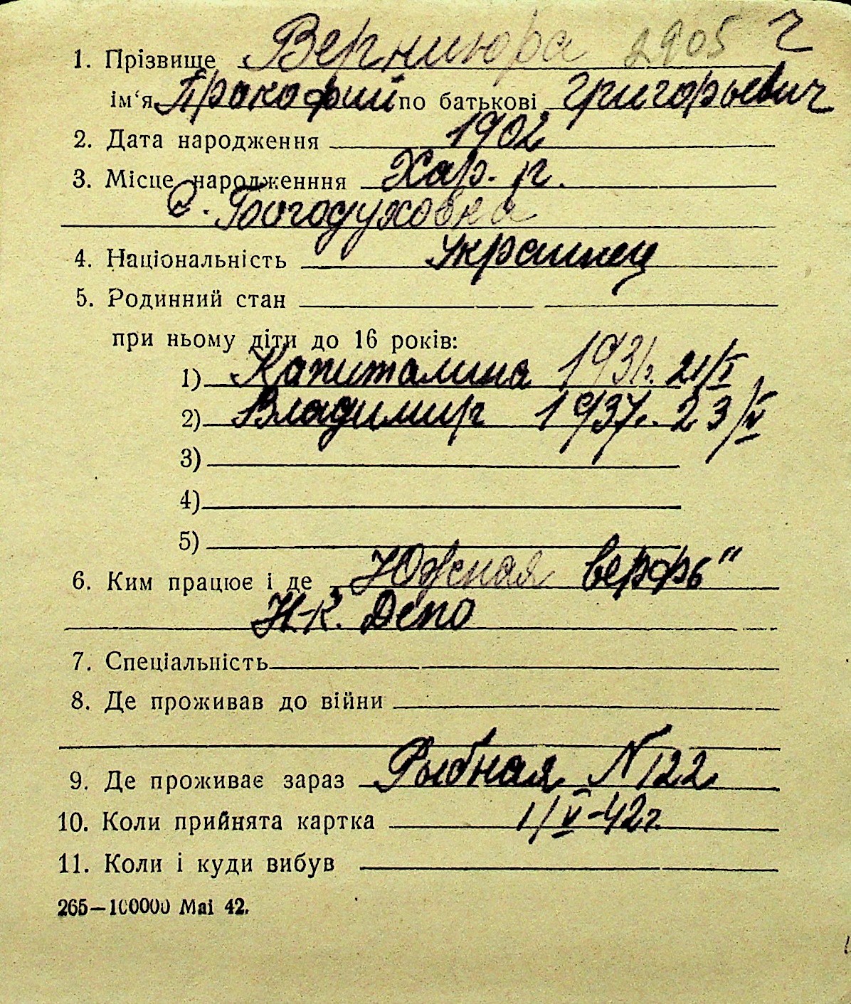 • • Перелік карток до фонду № Н-1016