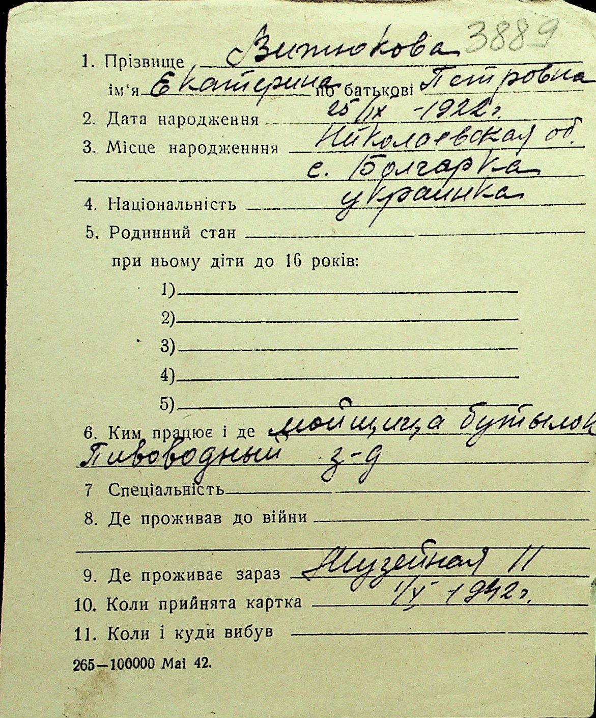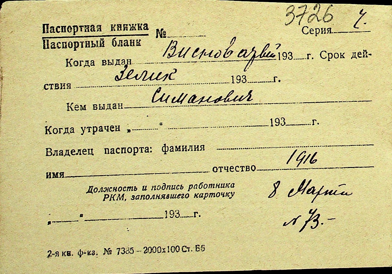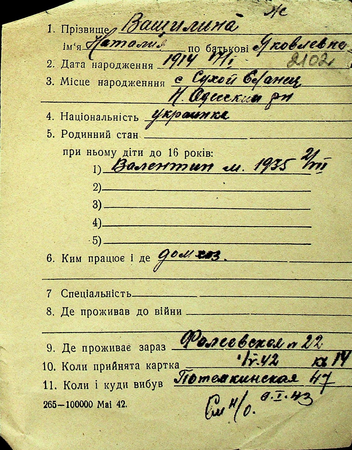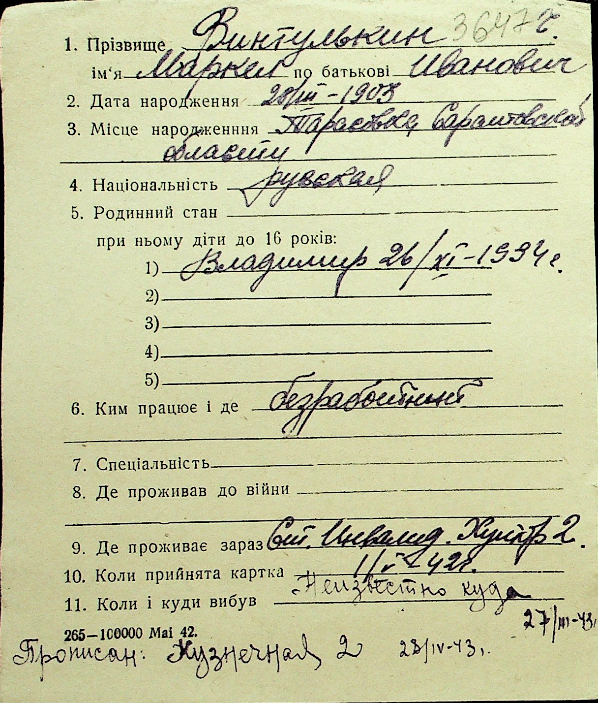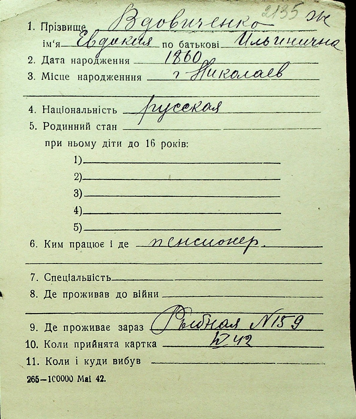 • • Перелік карток до фонду № Н-1016