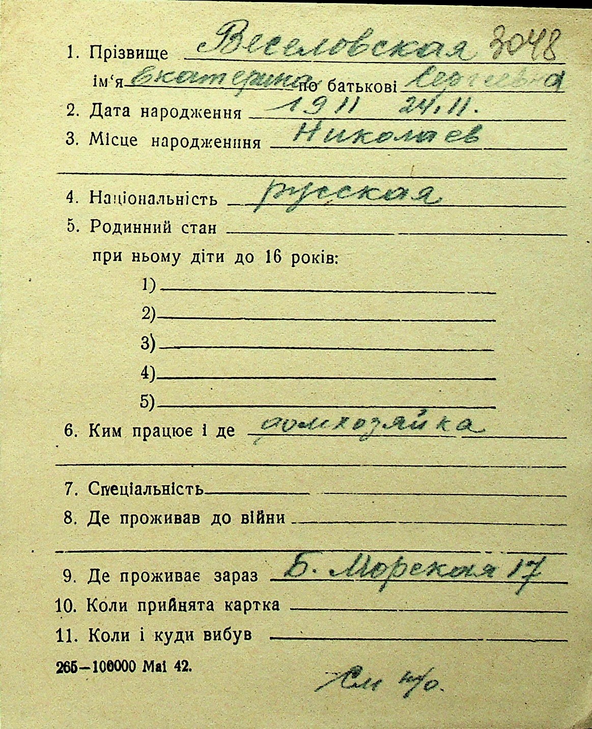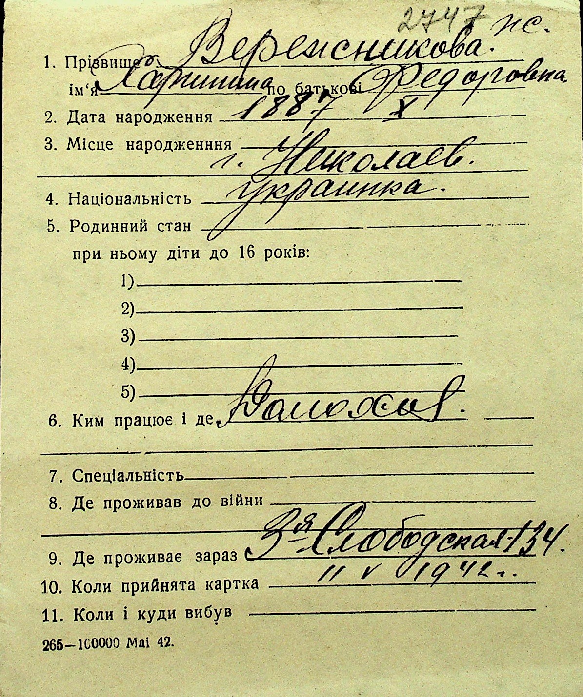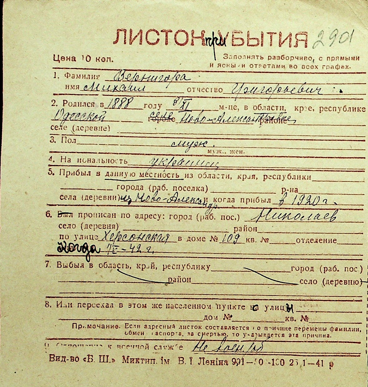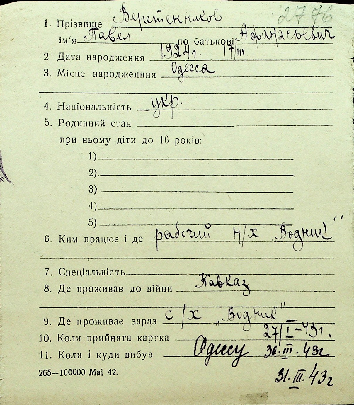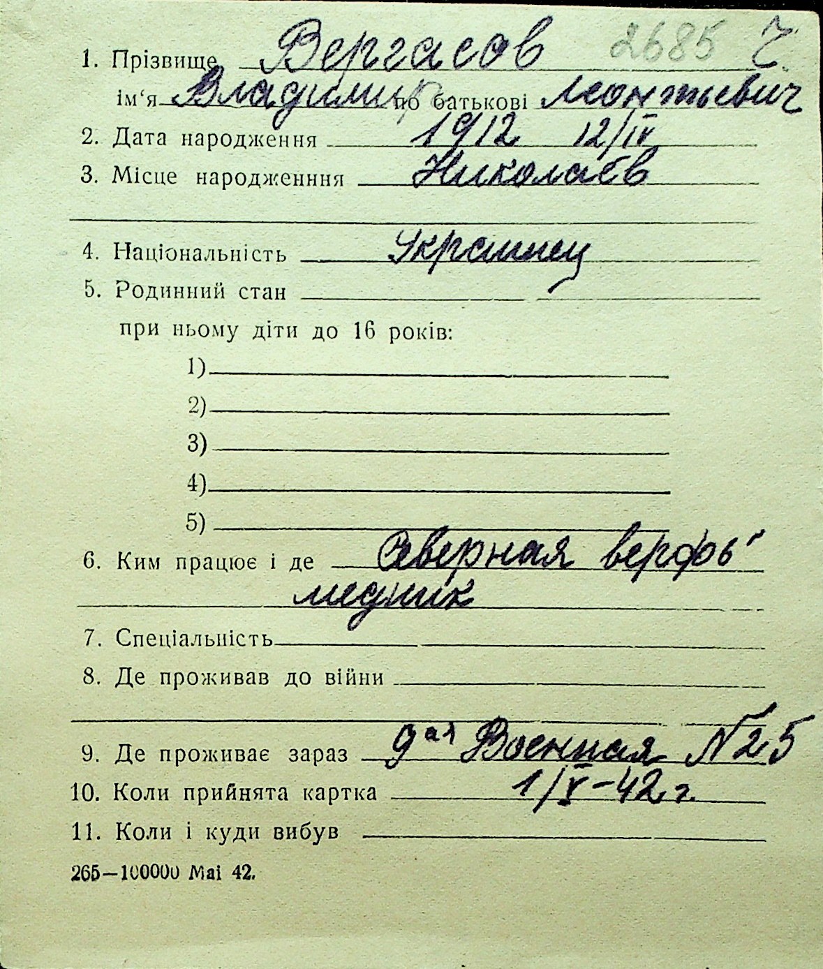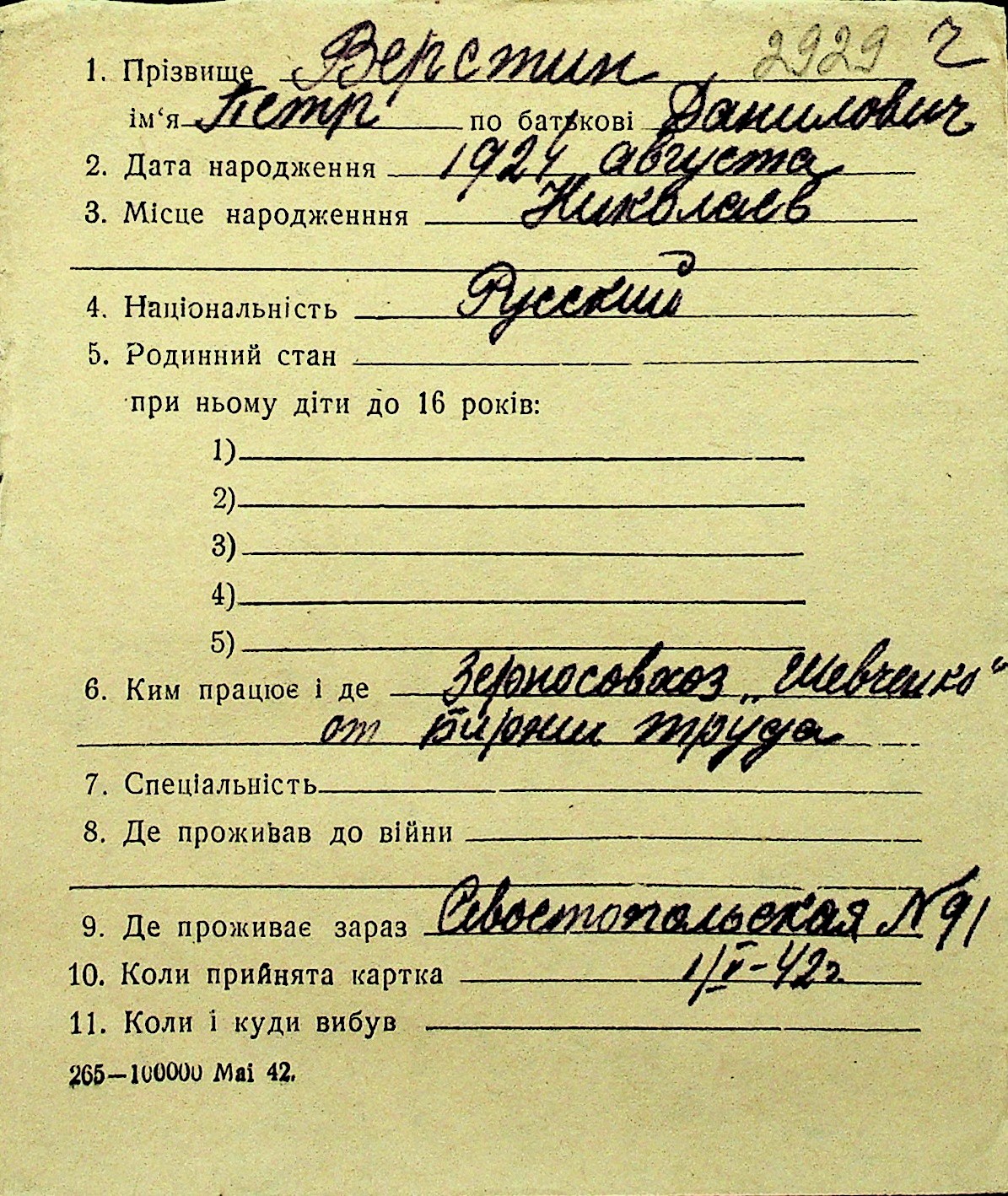 • • Перелік карток до фонду № Н-1016