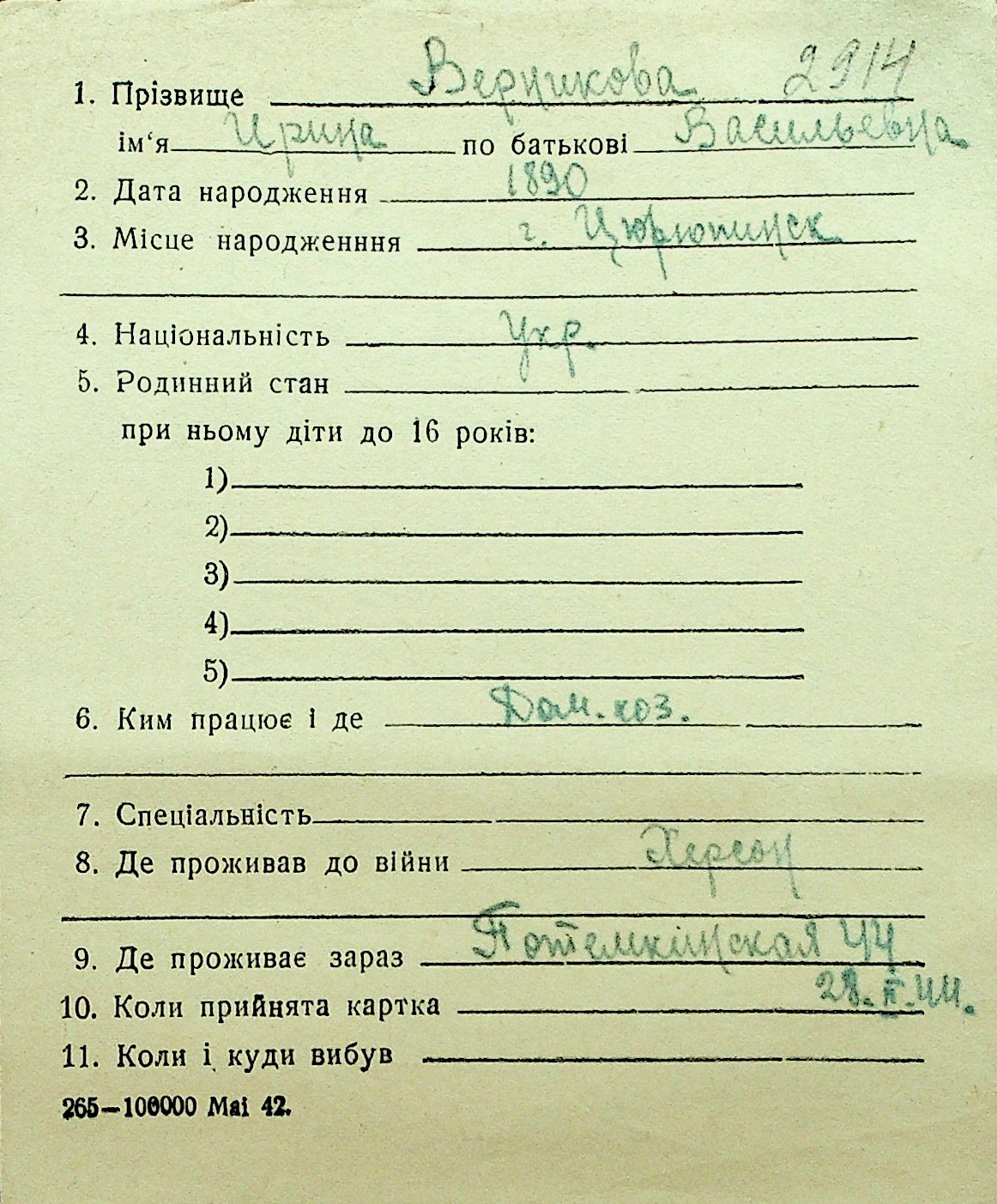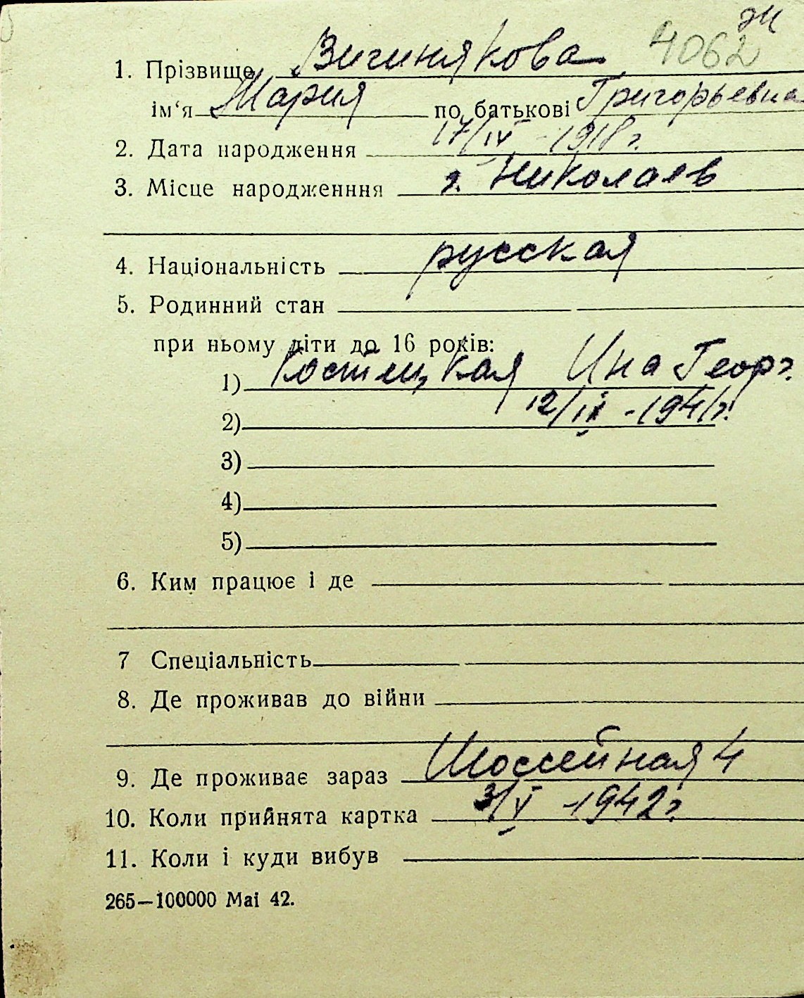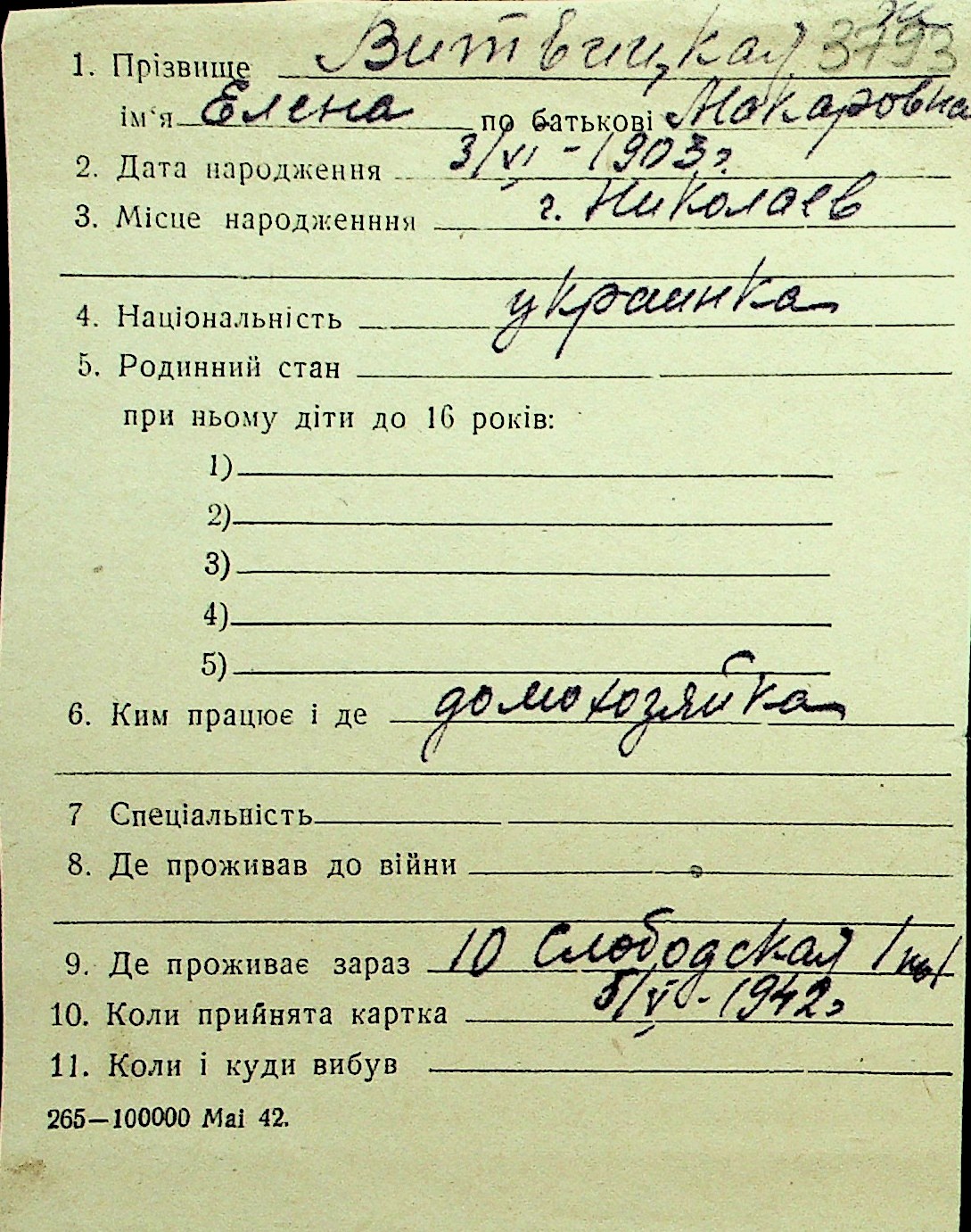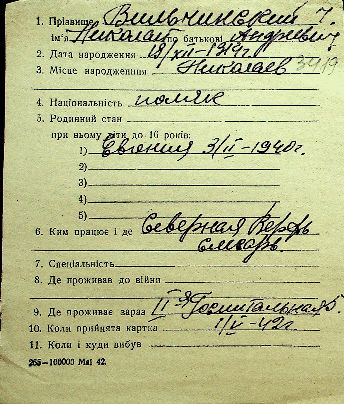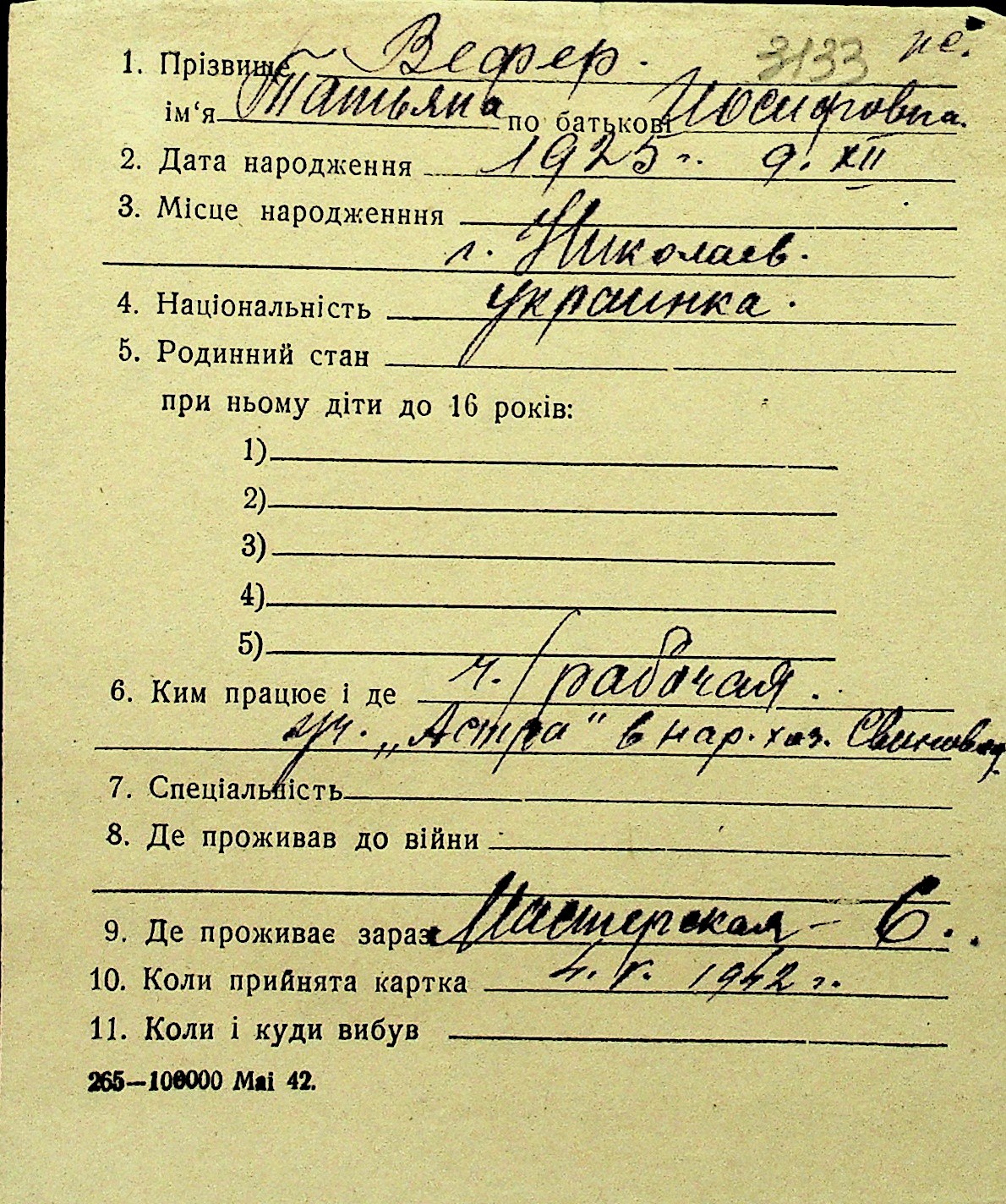 • • Перелік карток до фонду № Н-1016