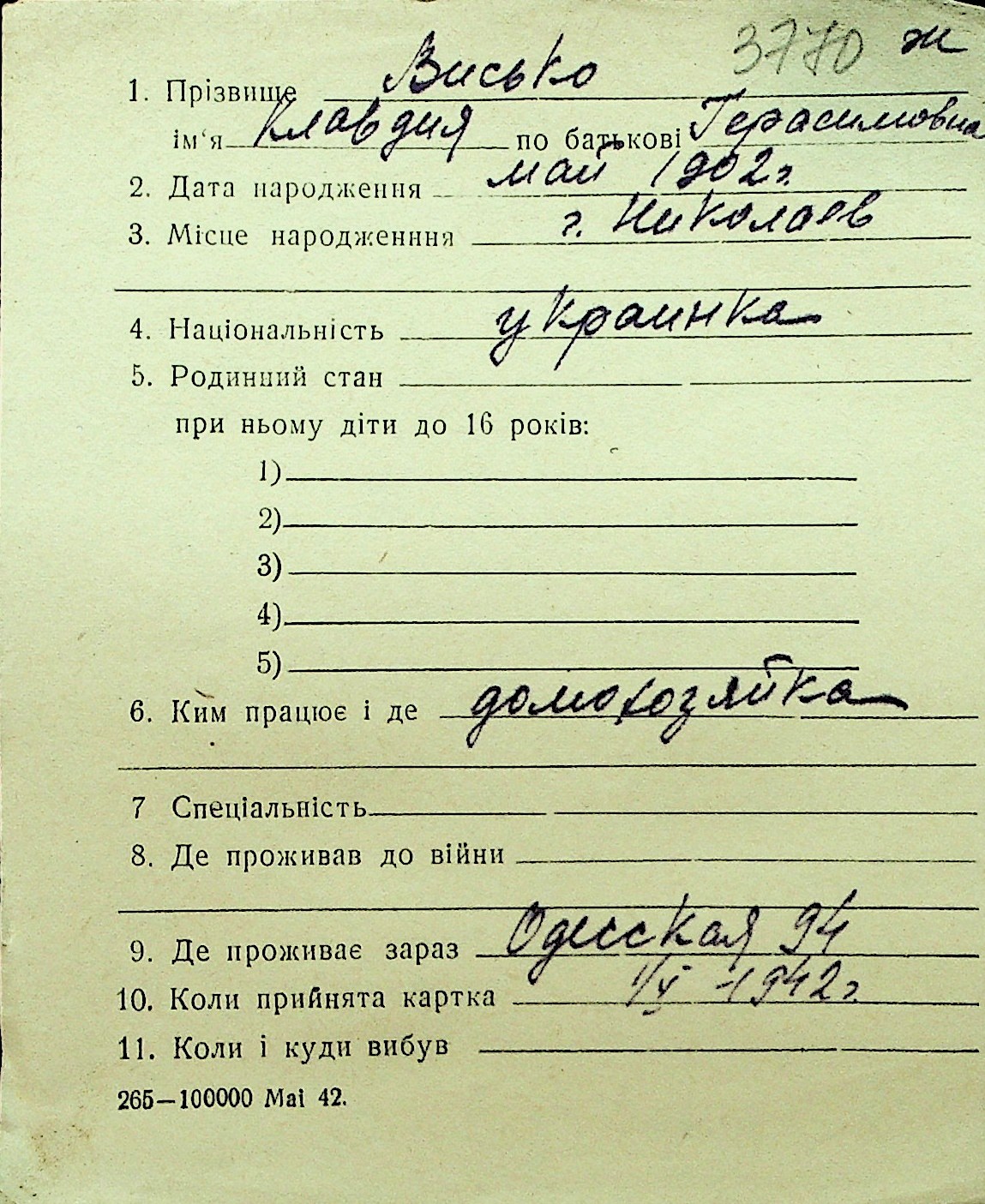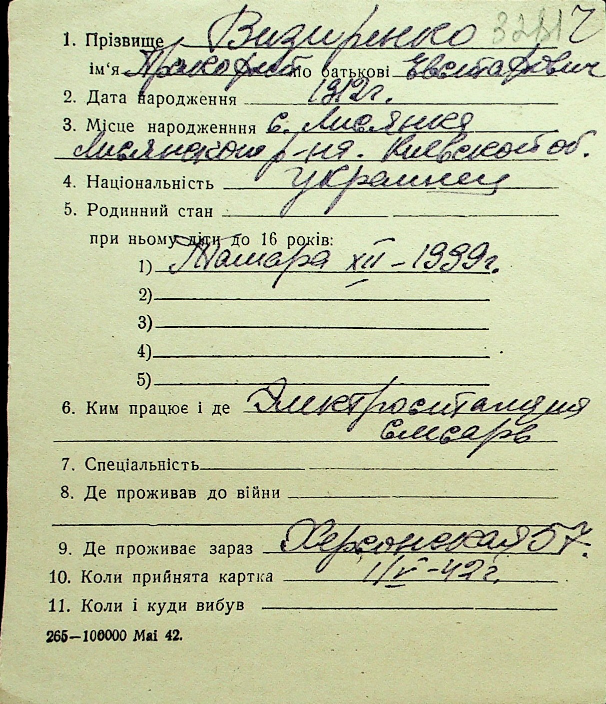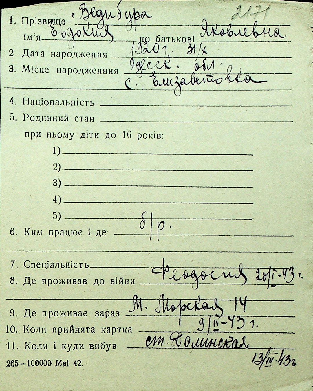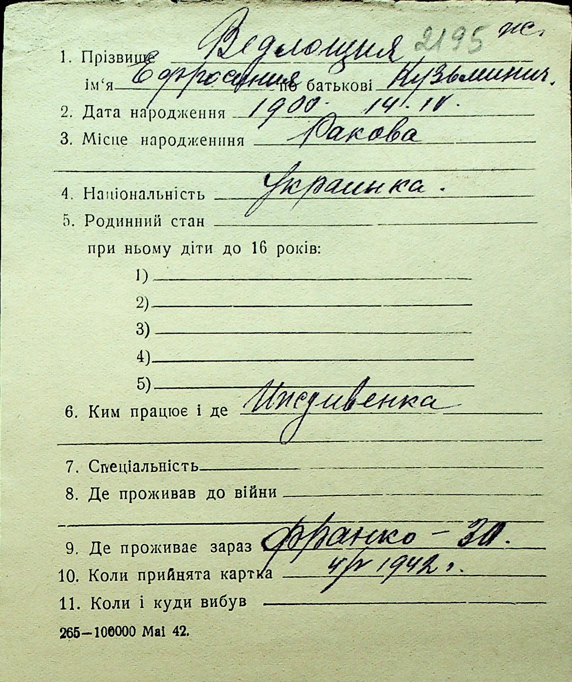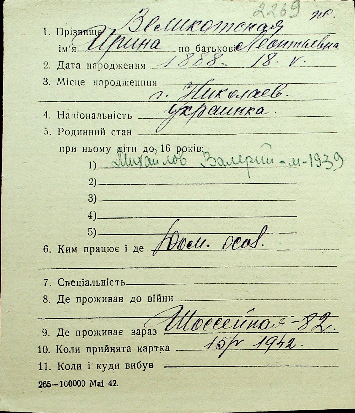 • • Перелік карток до фонду № Н-1016