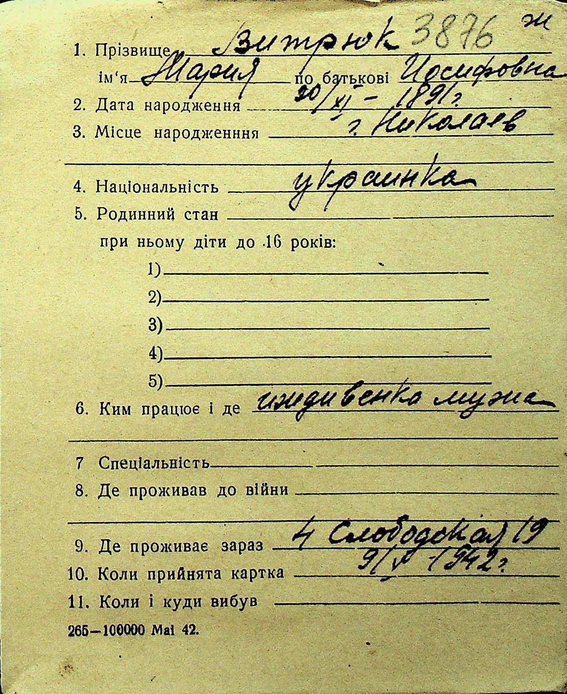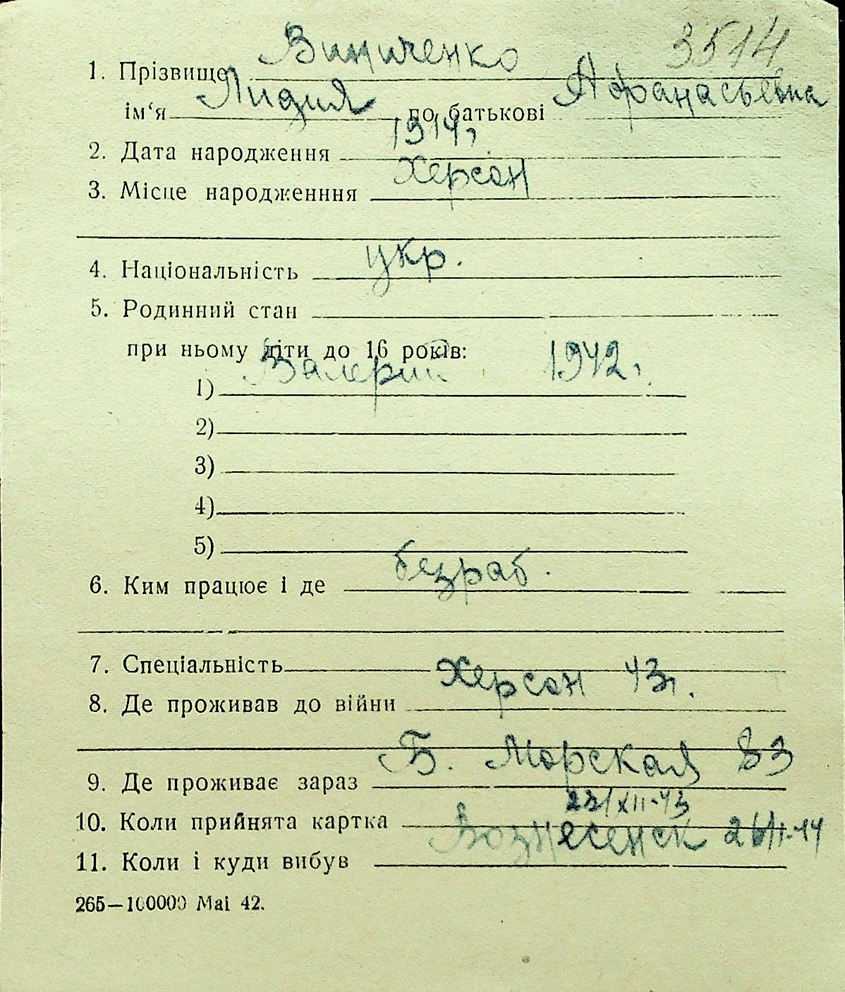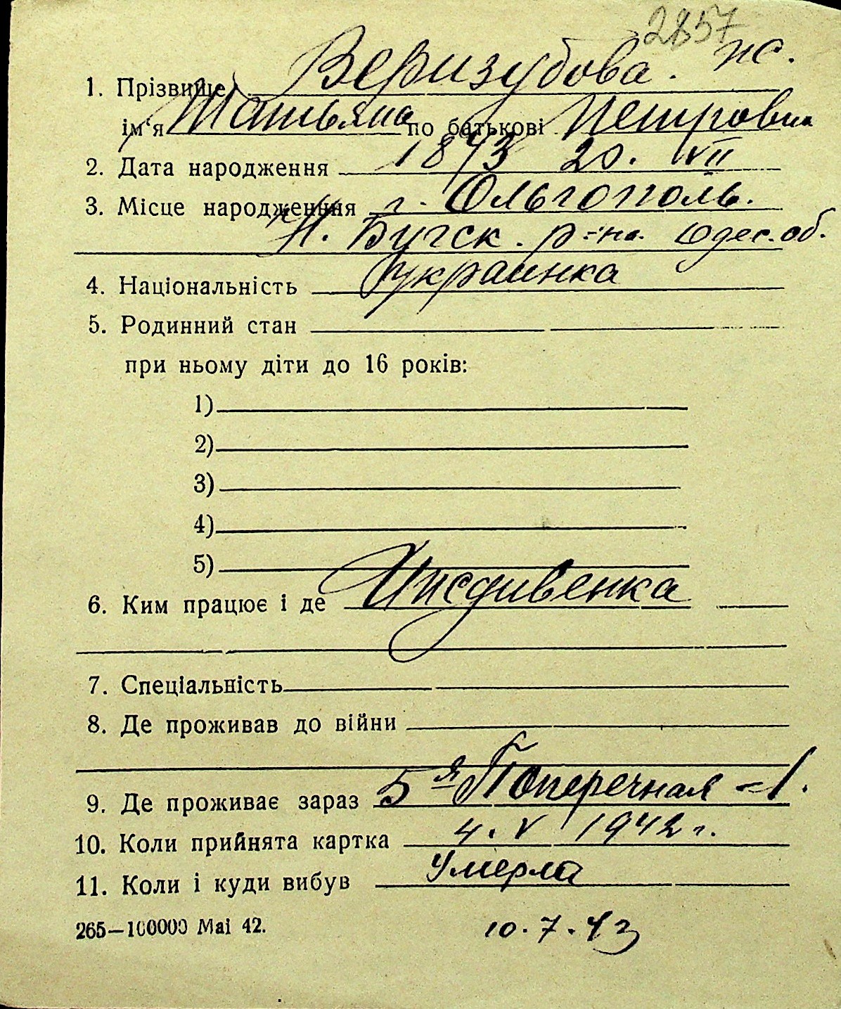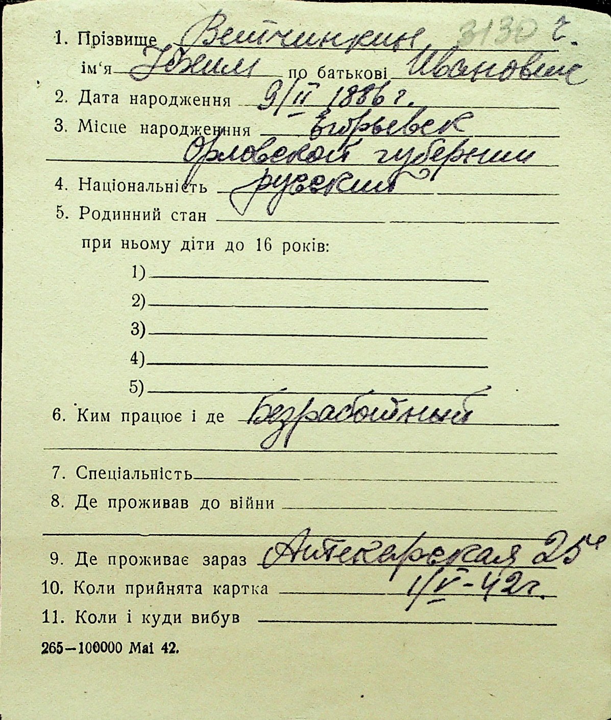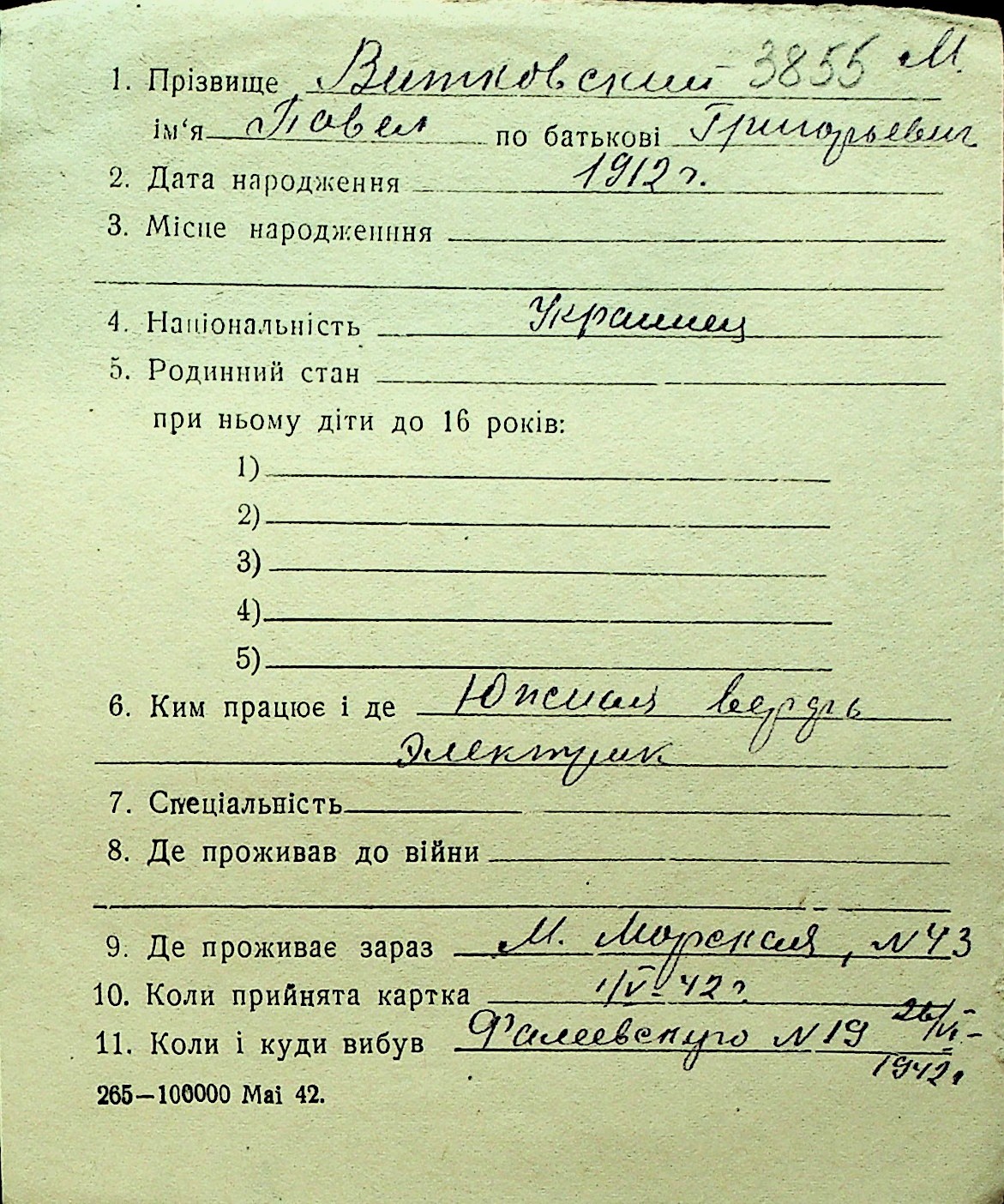 • • Перелік карток до фонду № Н-1016