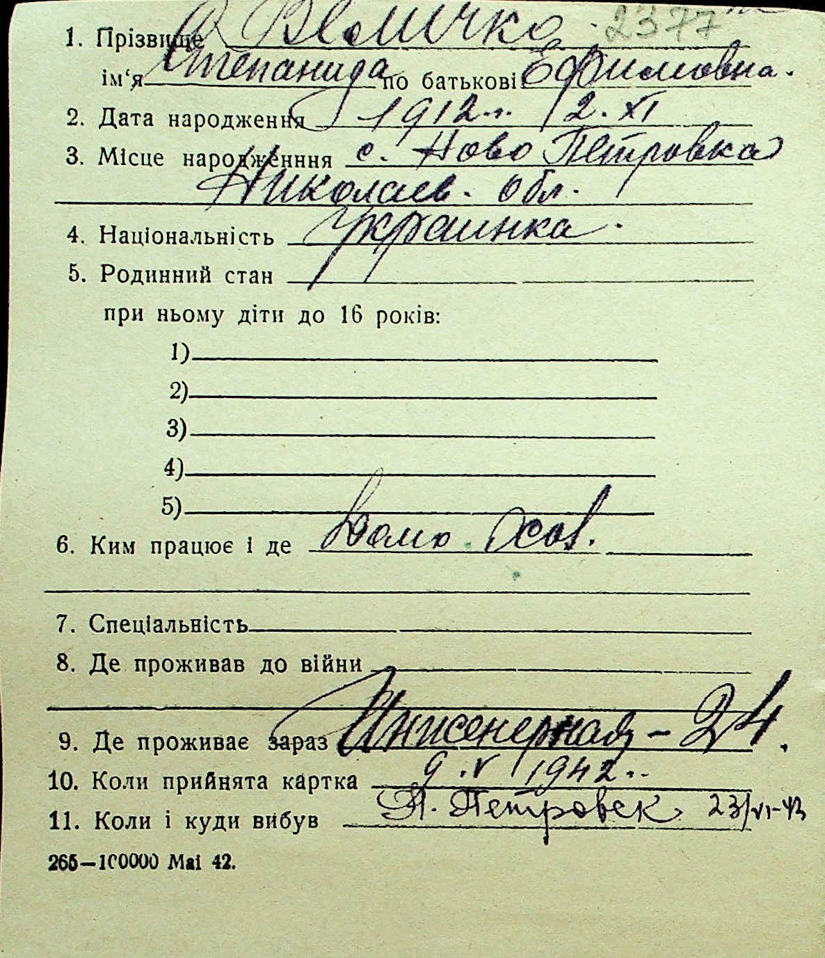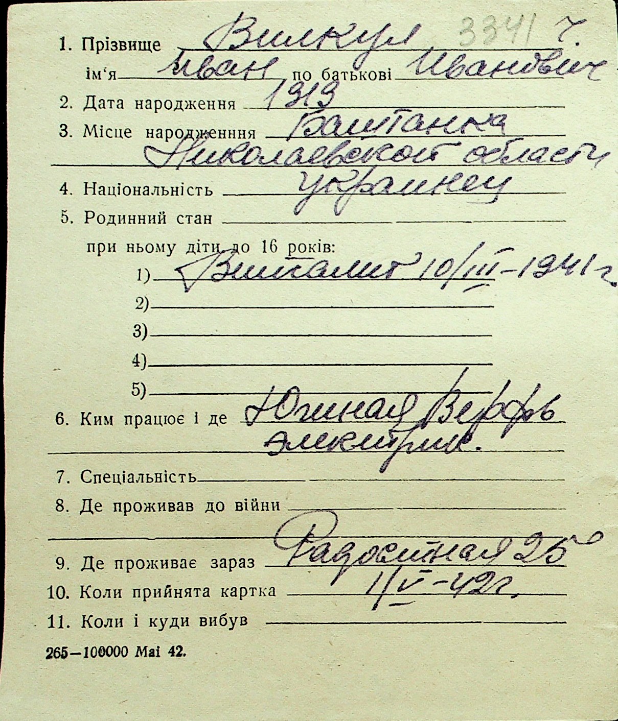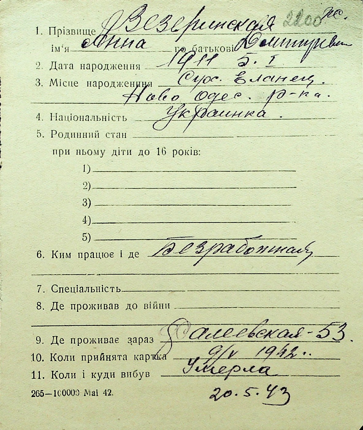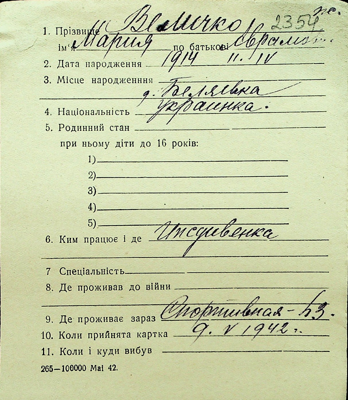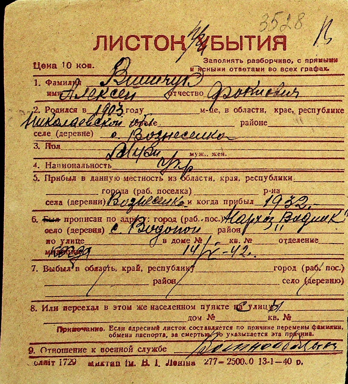 • • Перелік карток до фонду № Н-1016