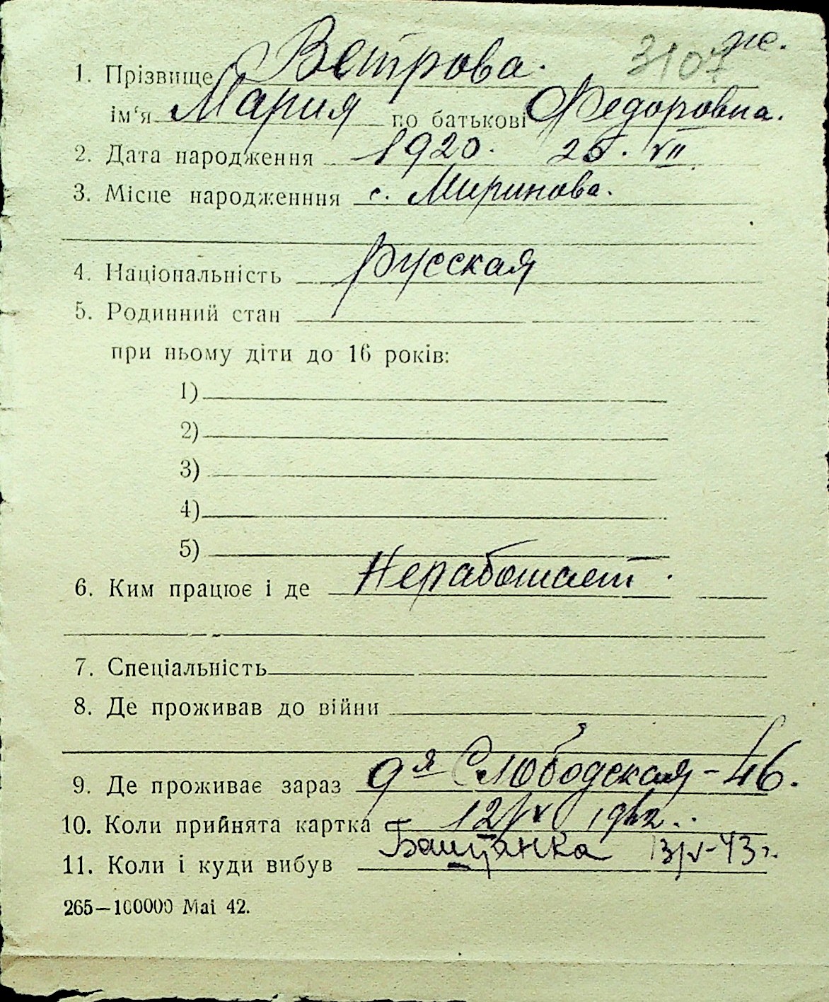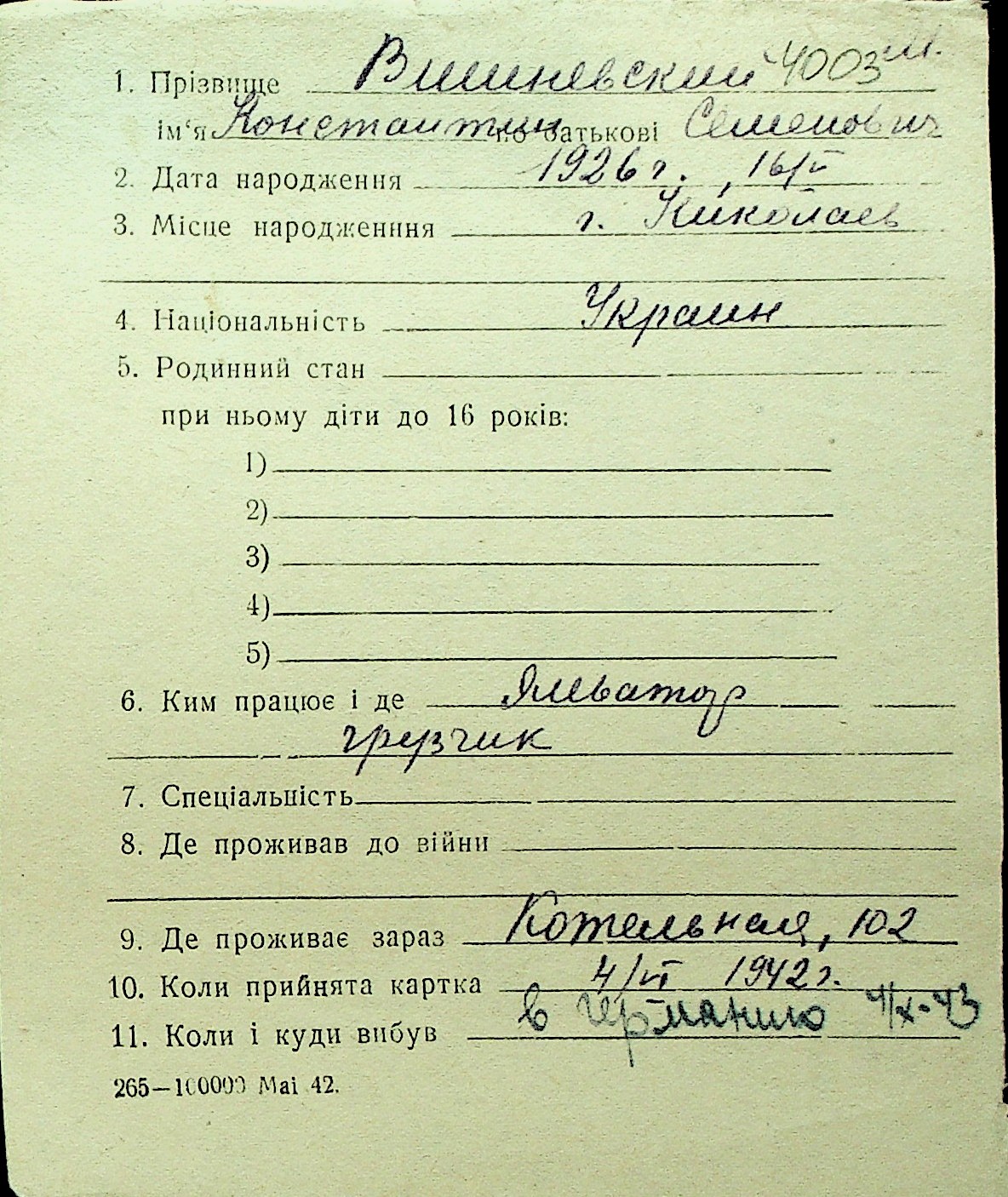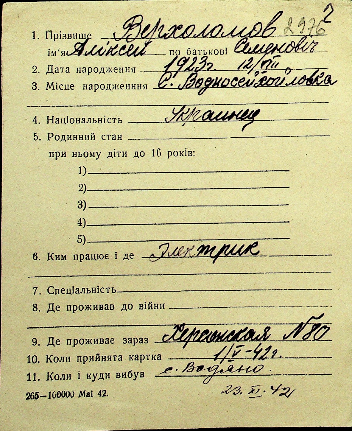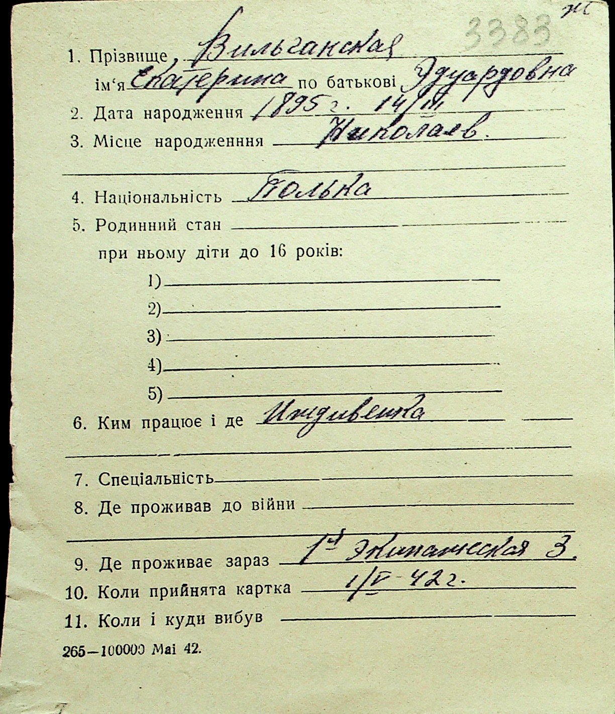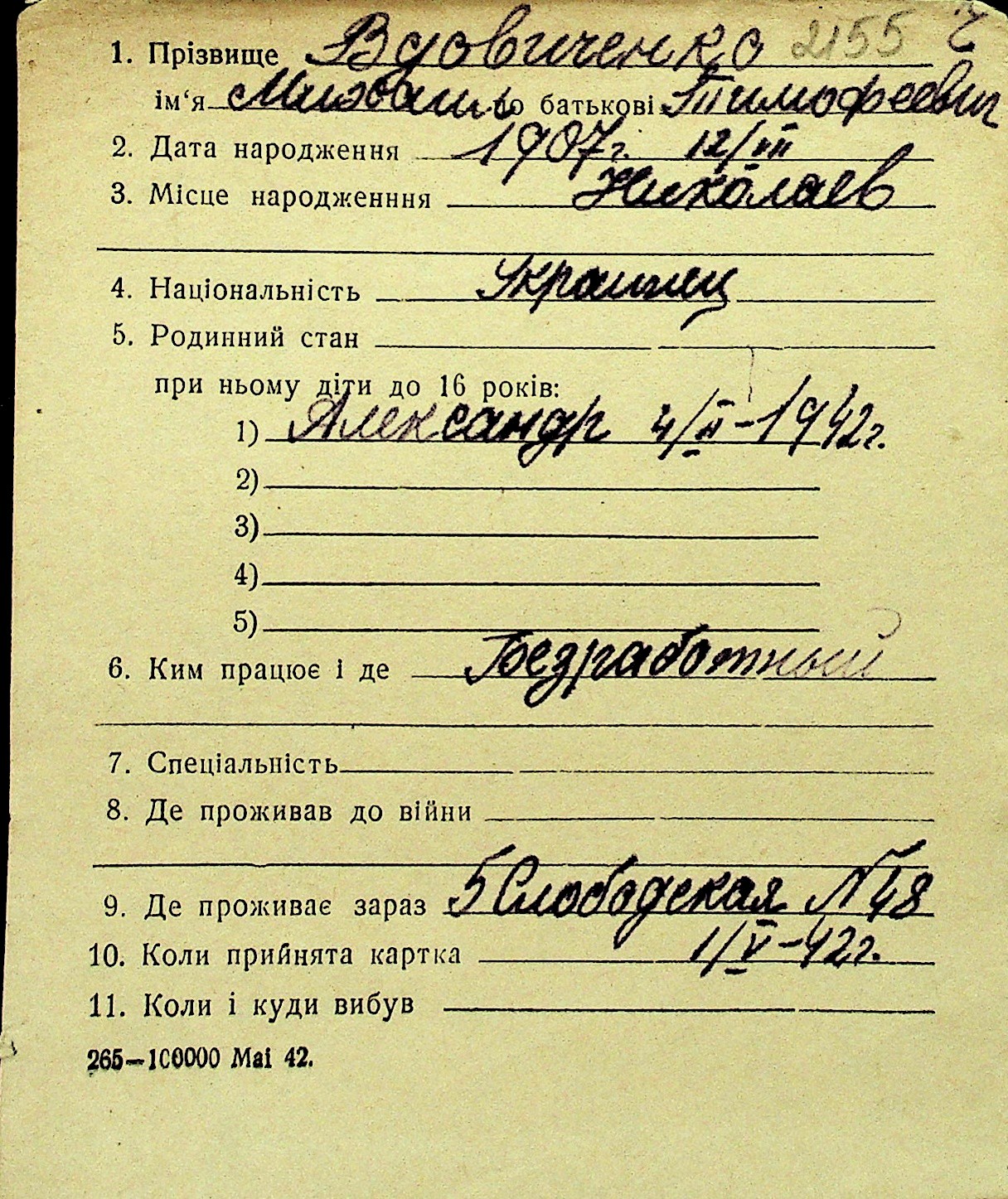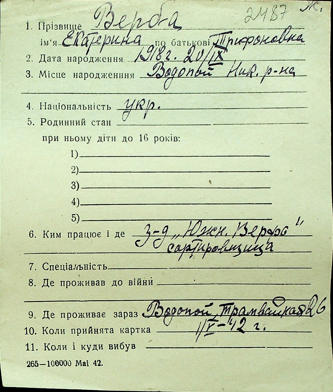 • • Перелік карток до фонду № Н-1016