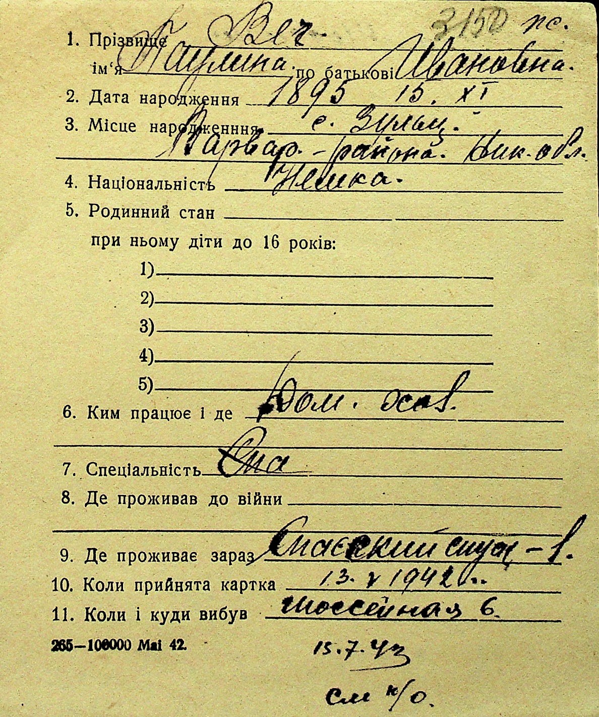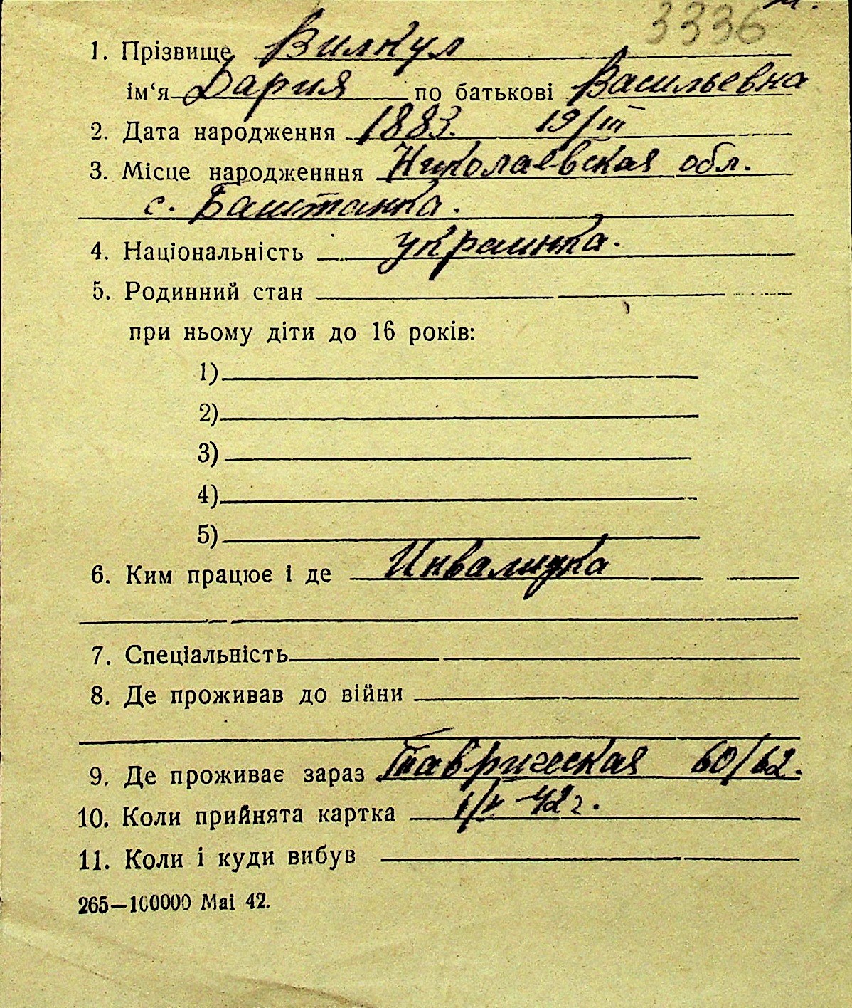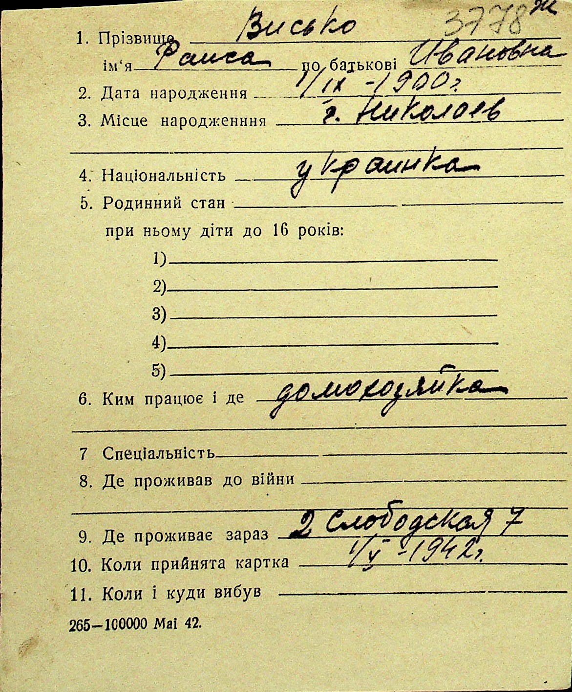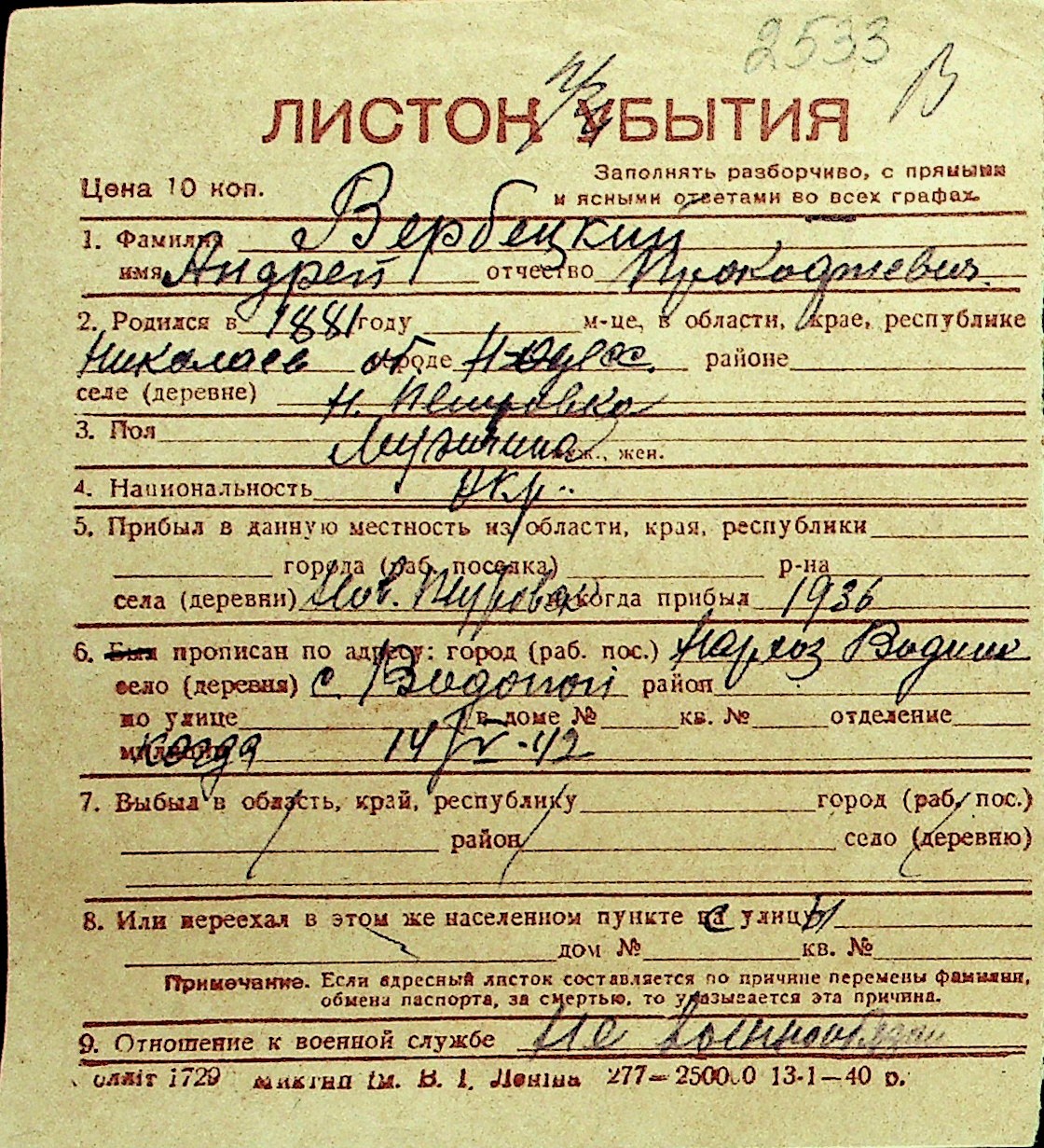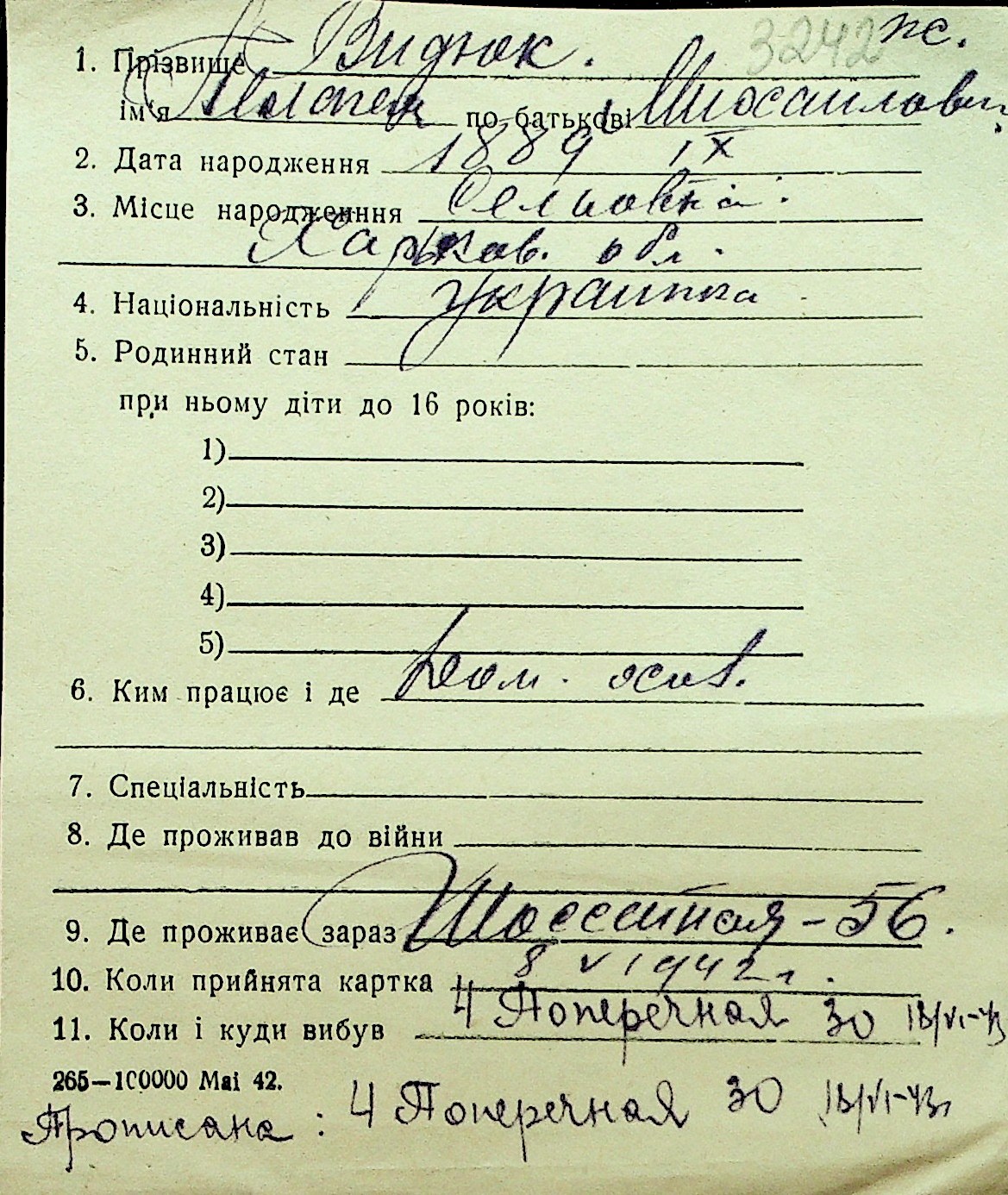 • • Перелік карток до фонду № Н-1016