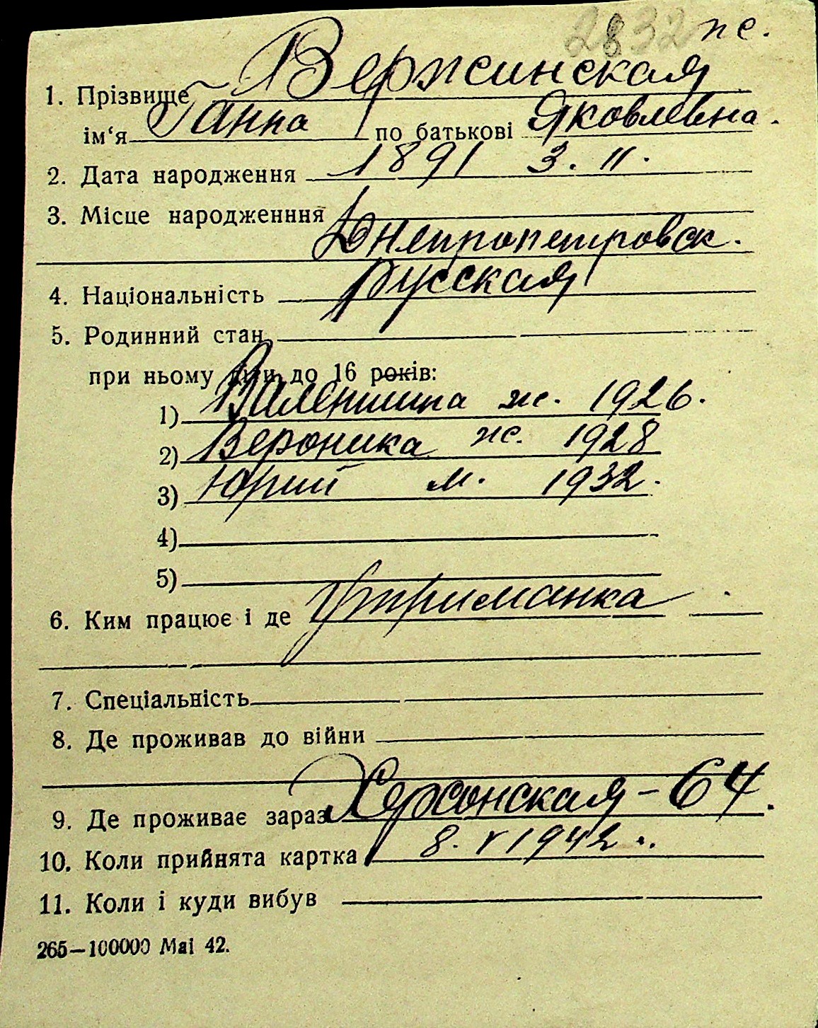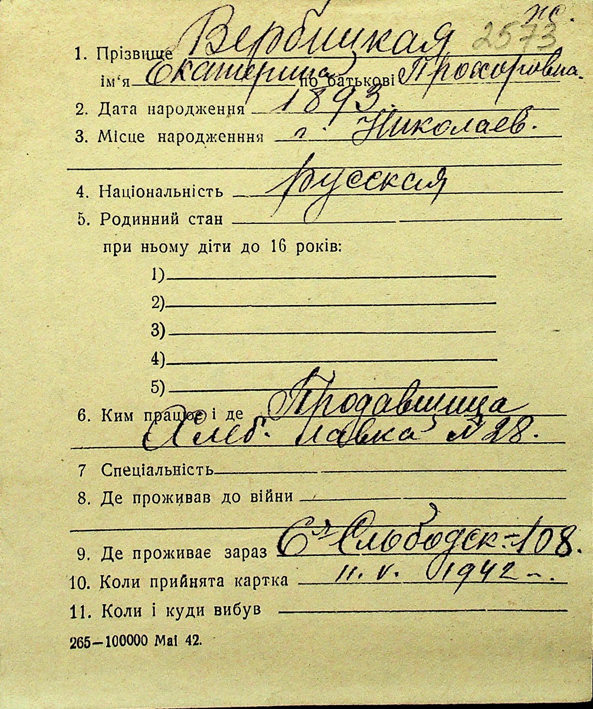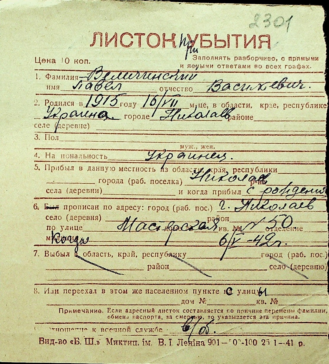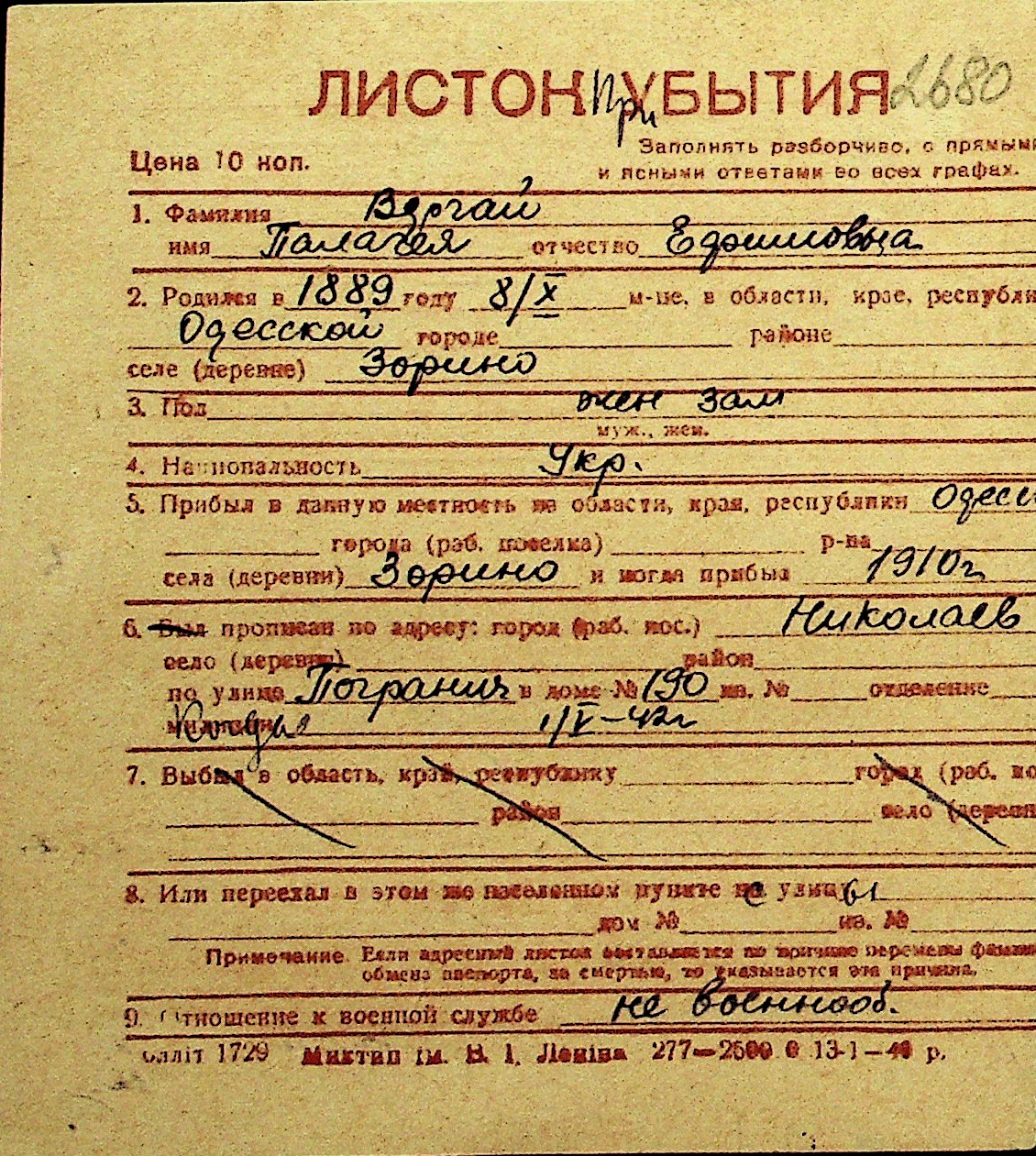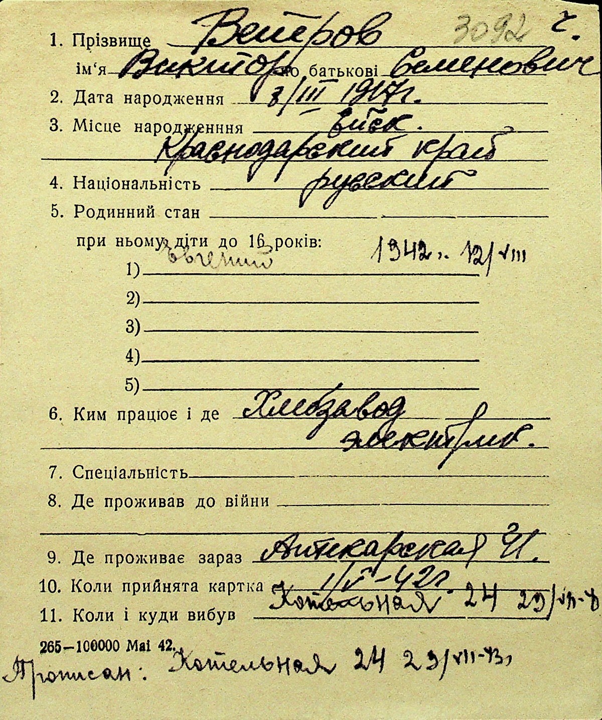 • • Перелік карток до фонду № Н-1016