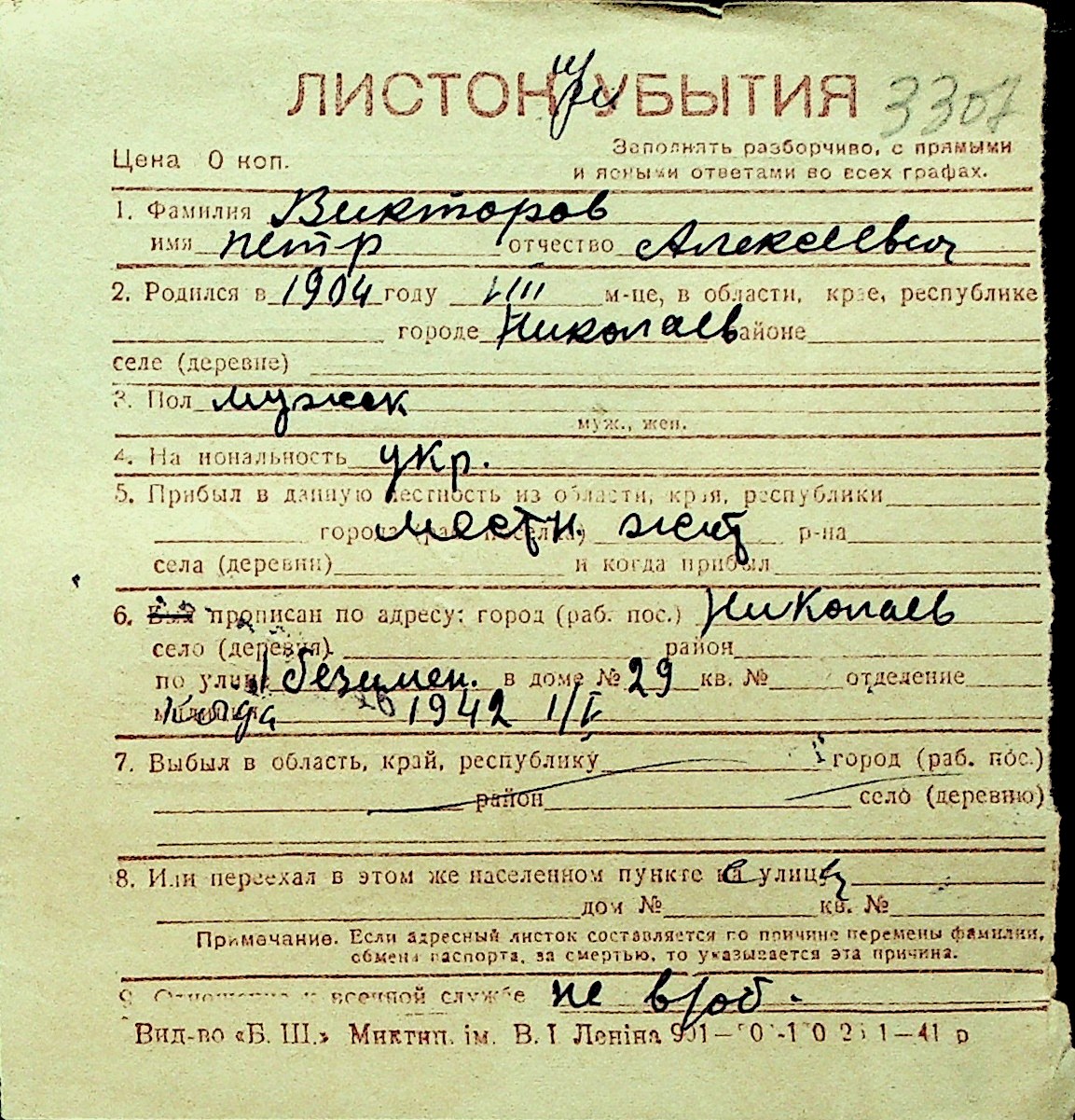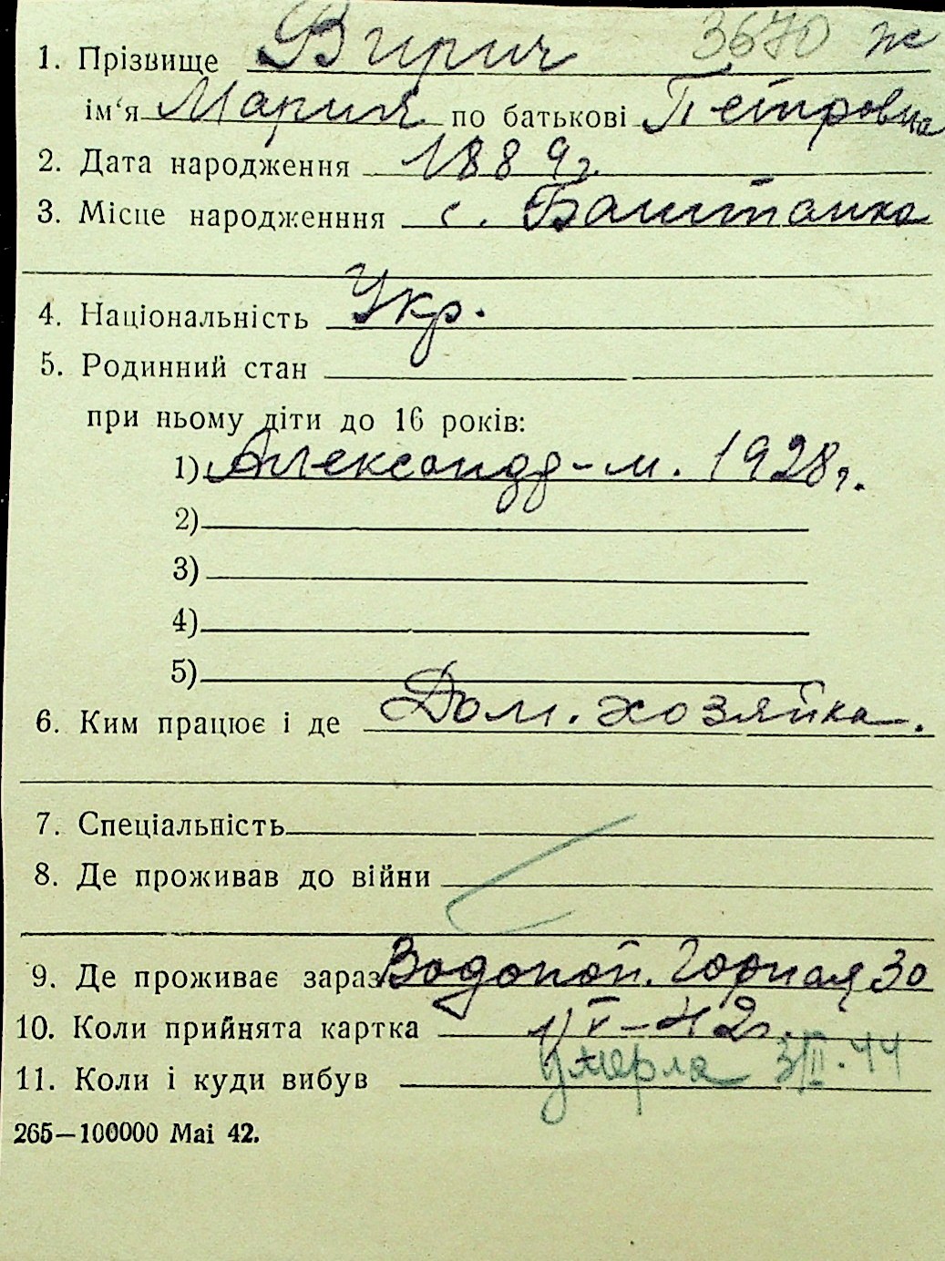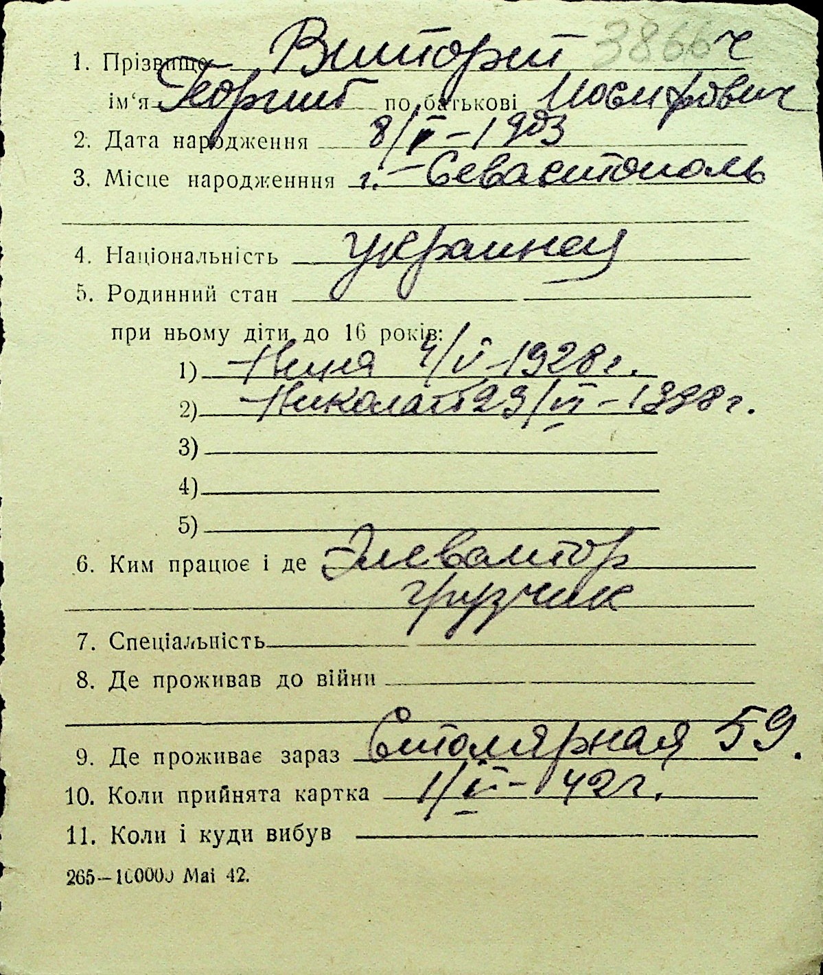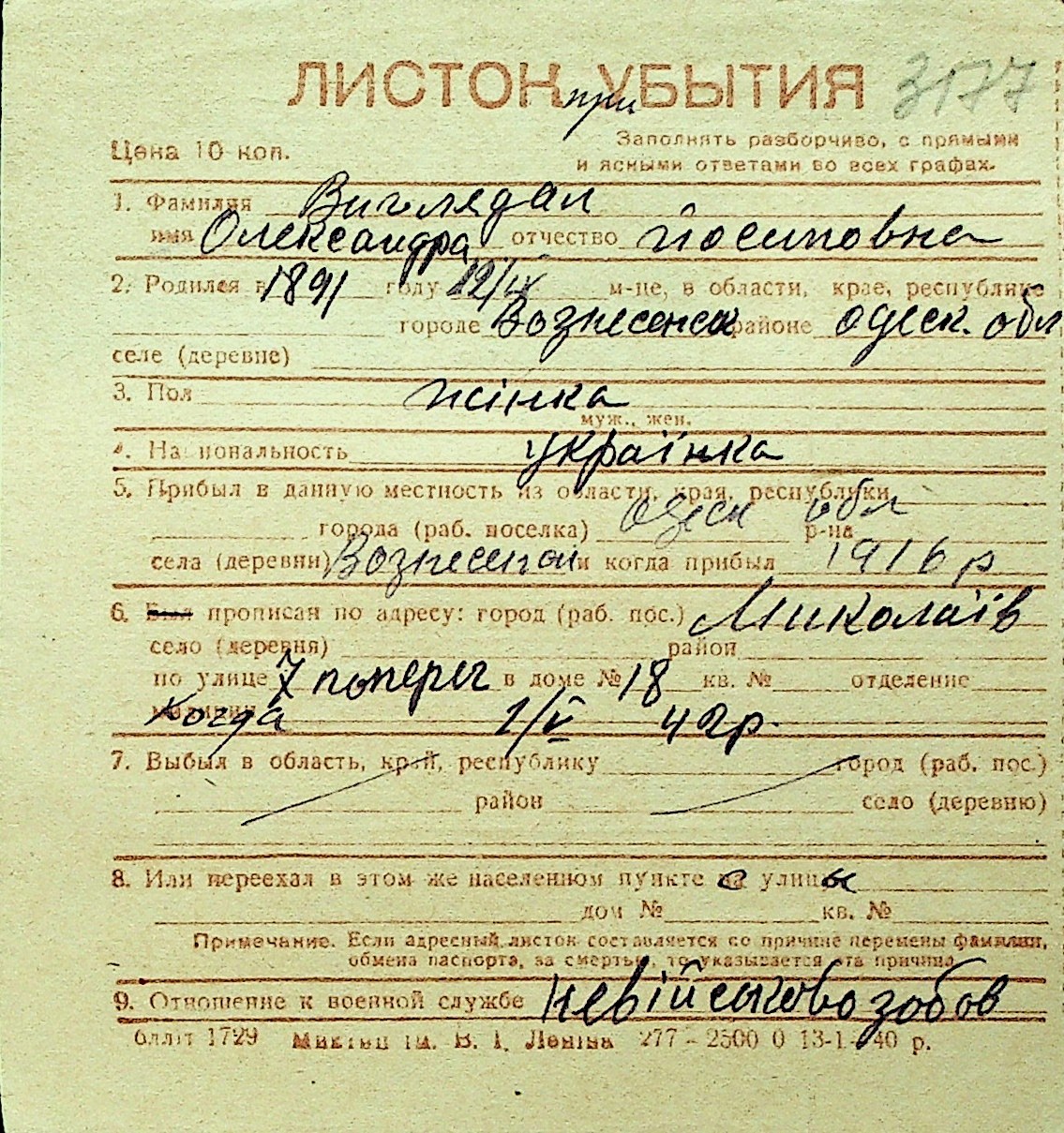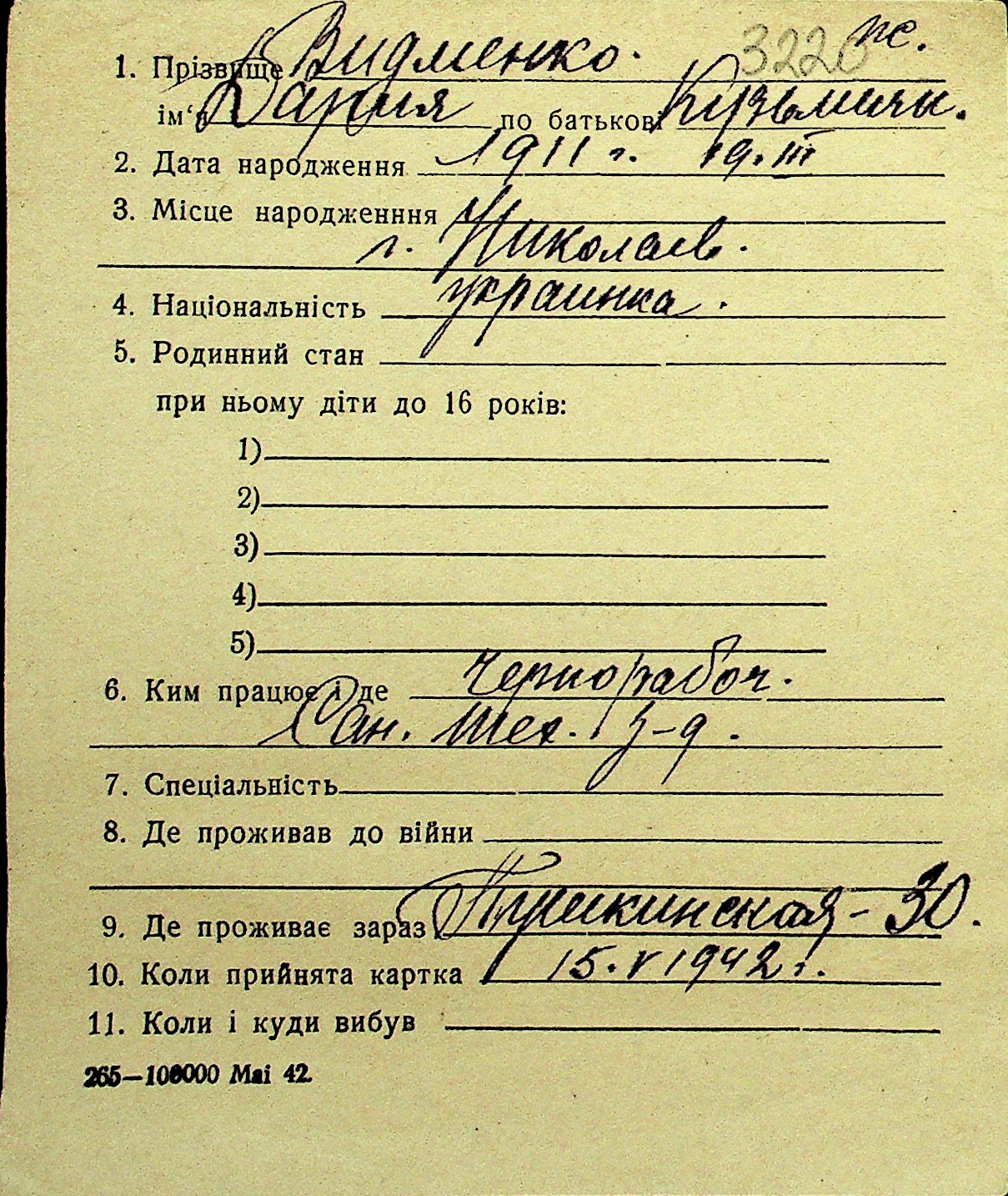 • • Перелік карток до фонду № Н-1016