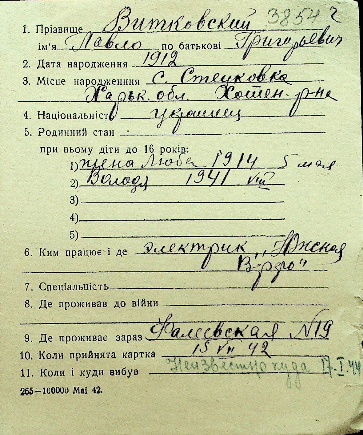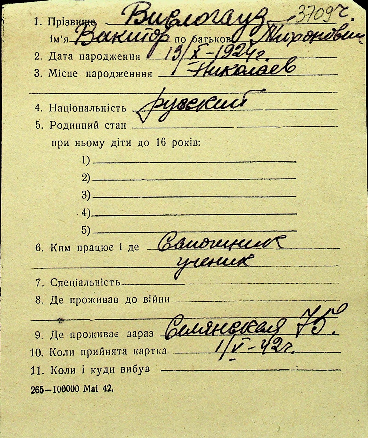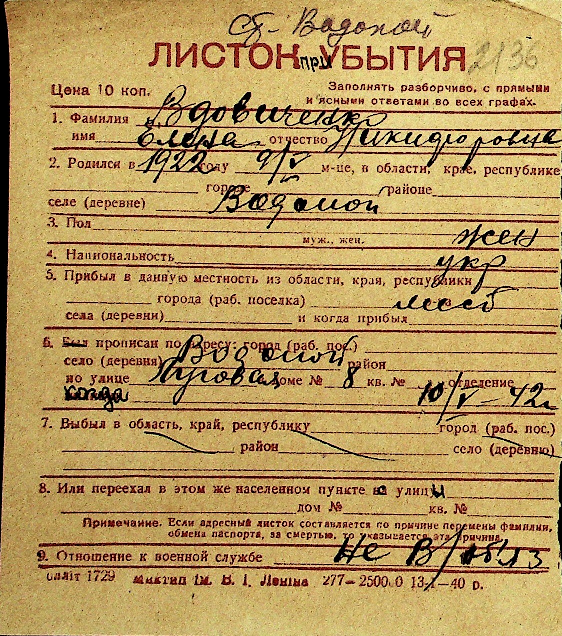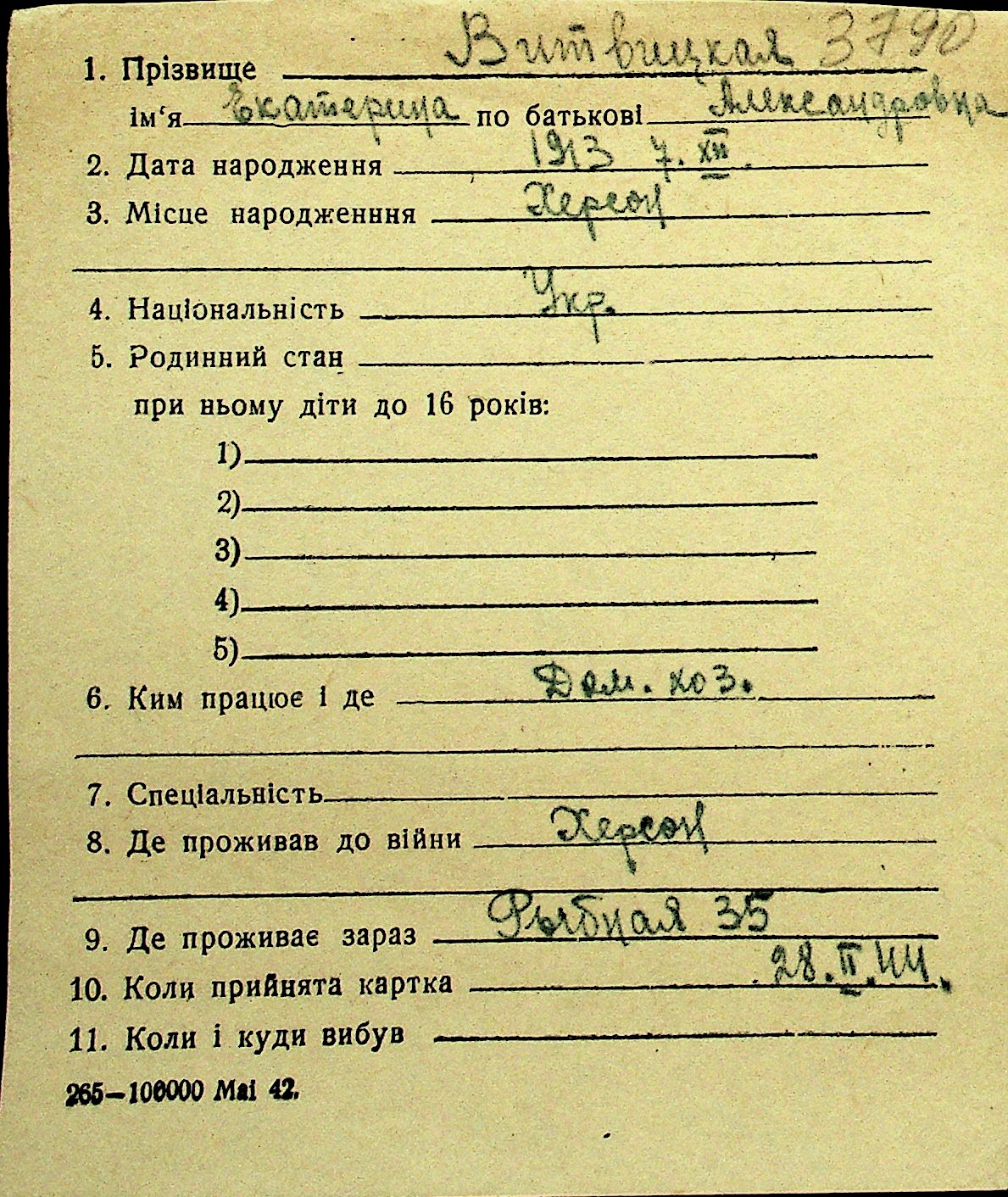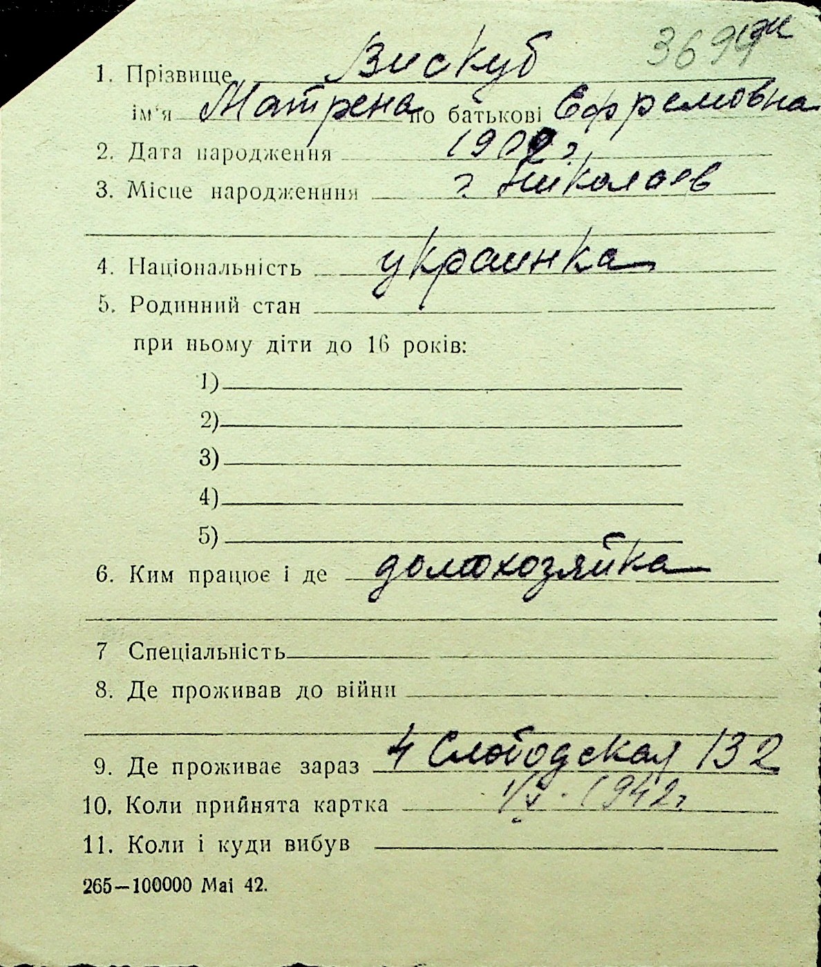 • • Перелік карток до фонду № Н-1016