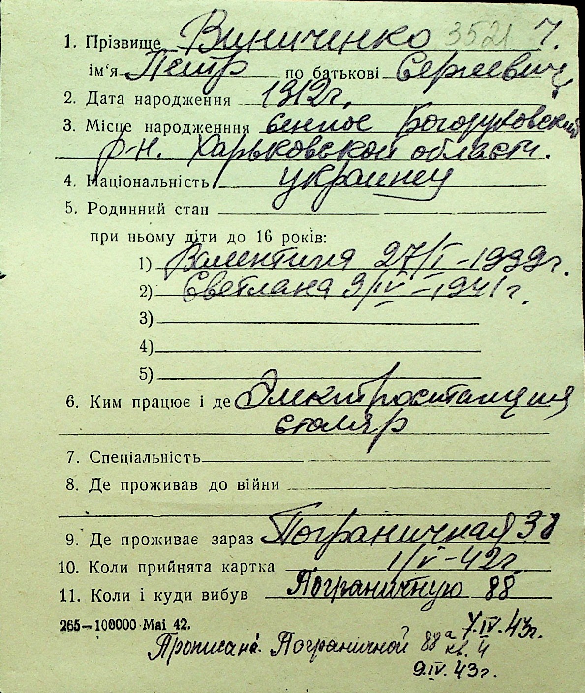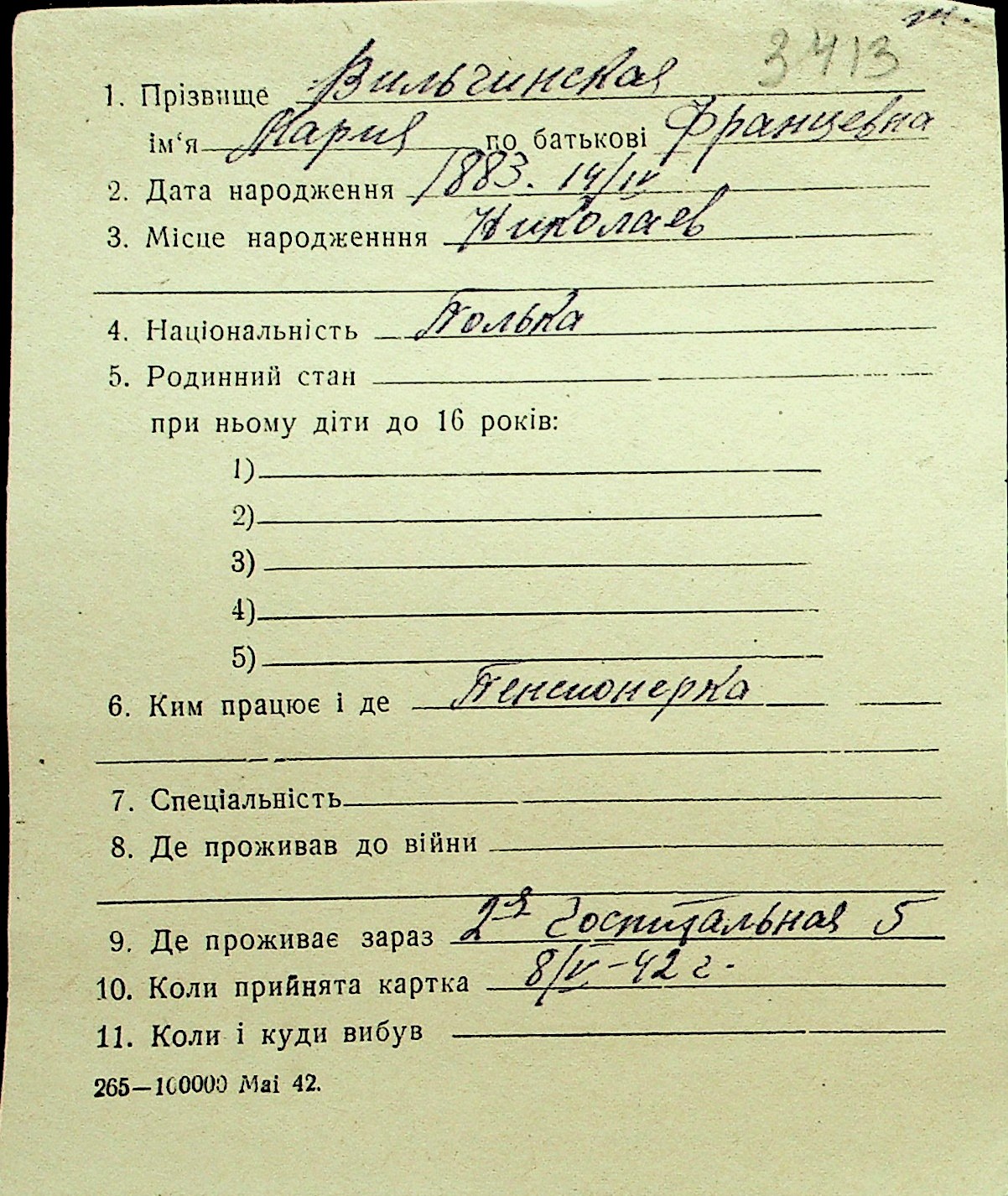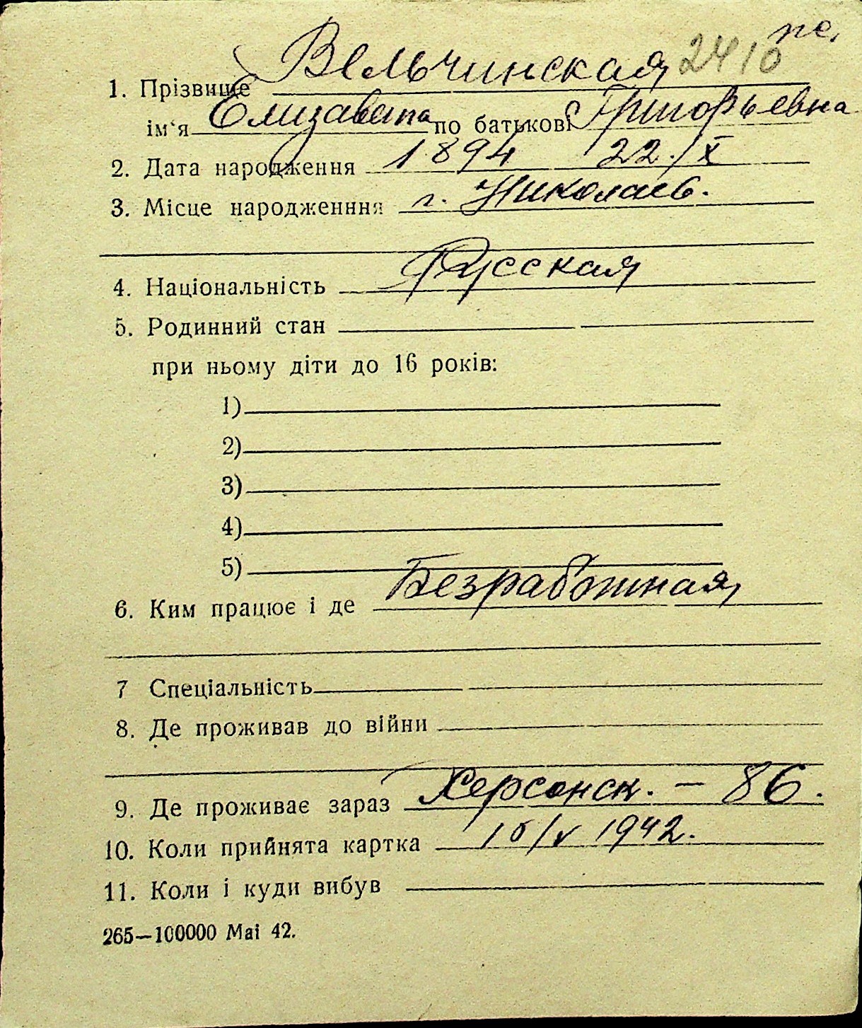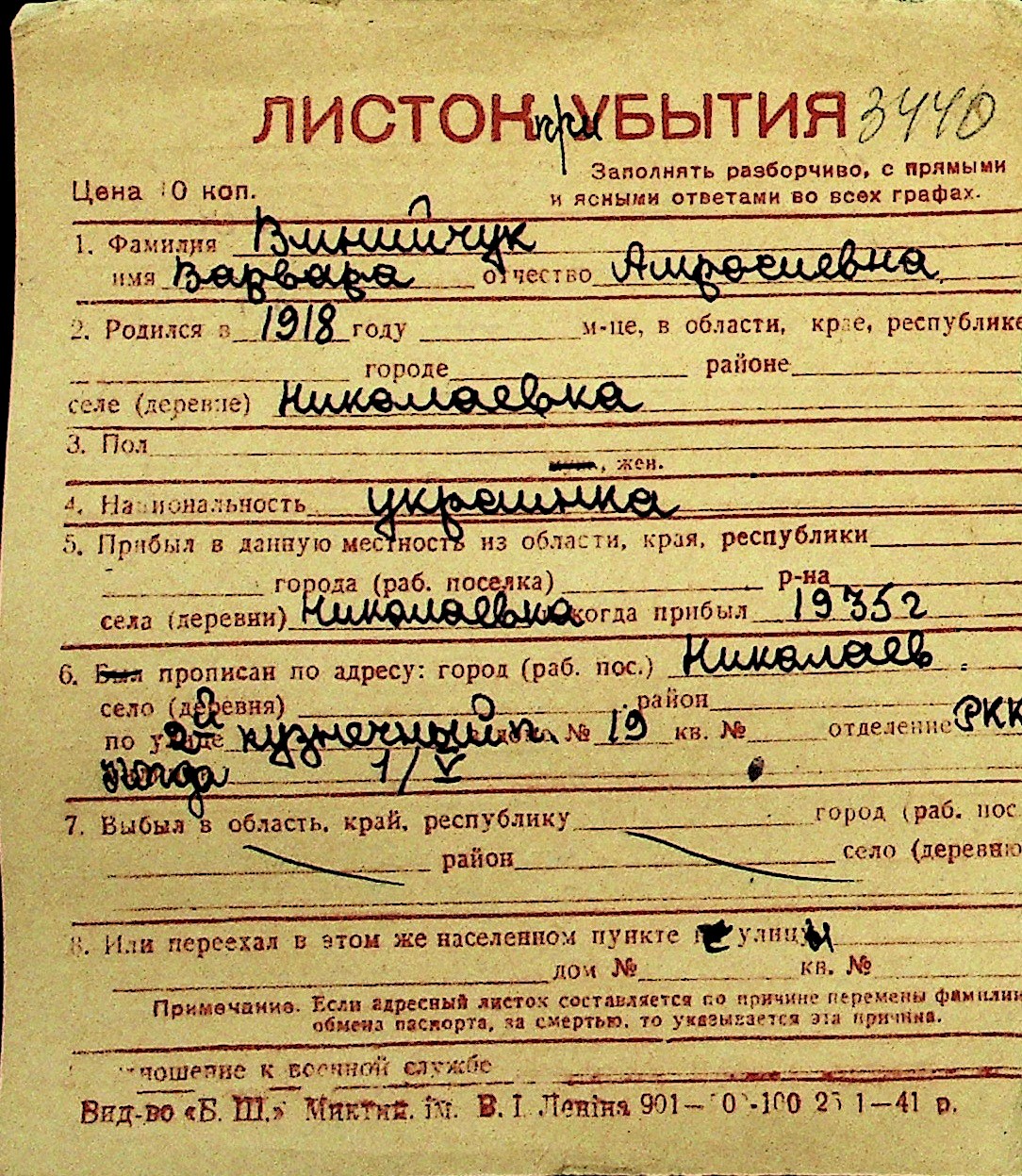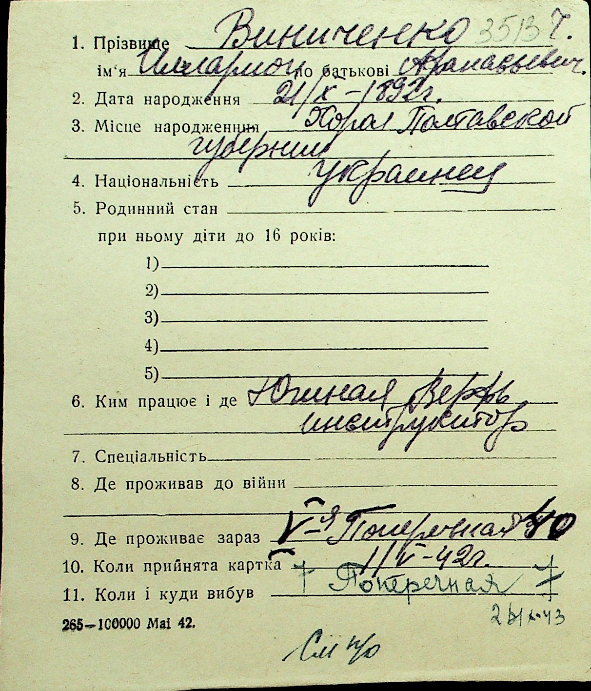 • • Перелік карток до фонду № Н-1016