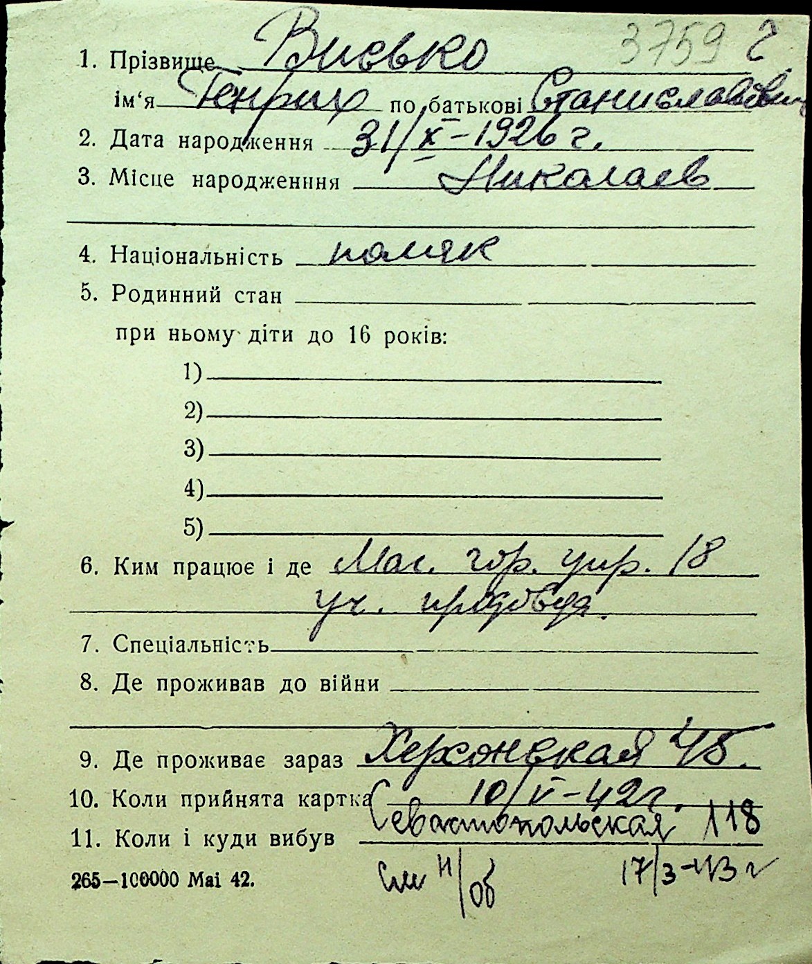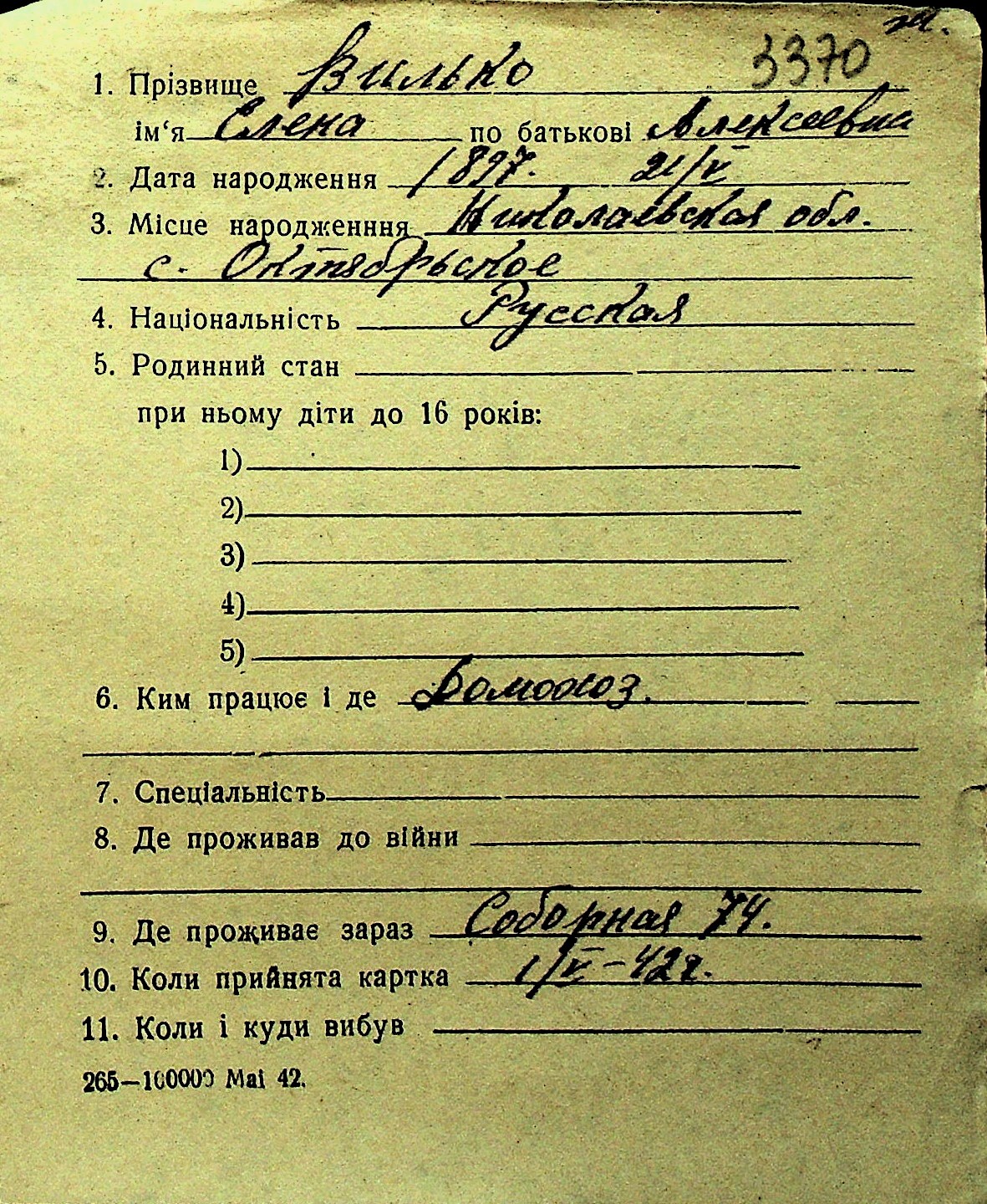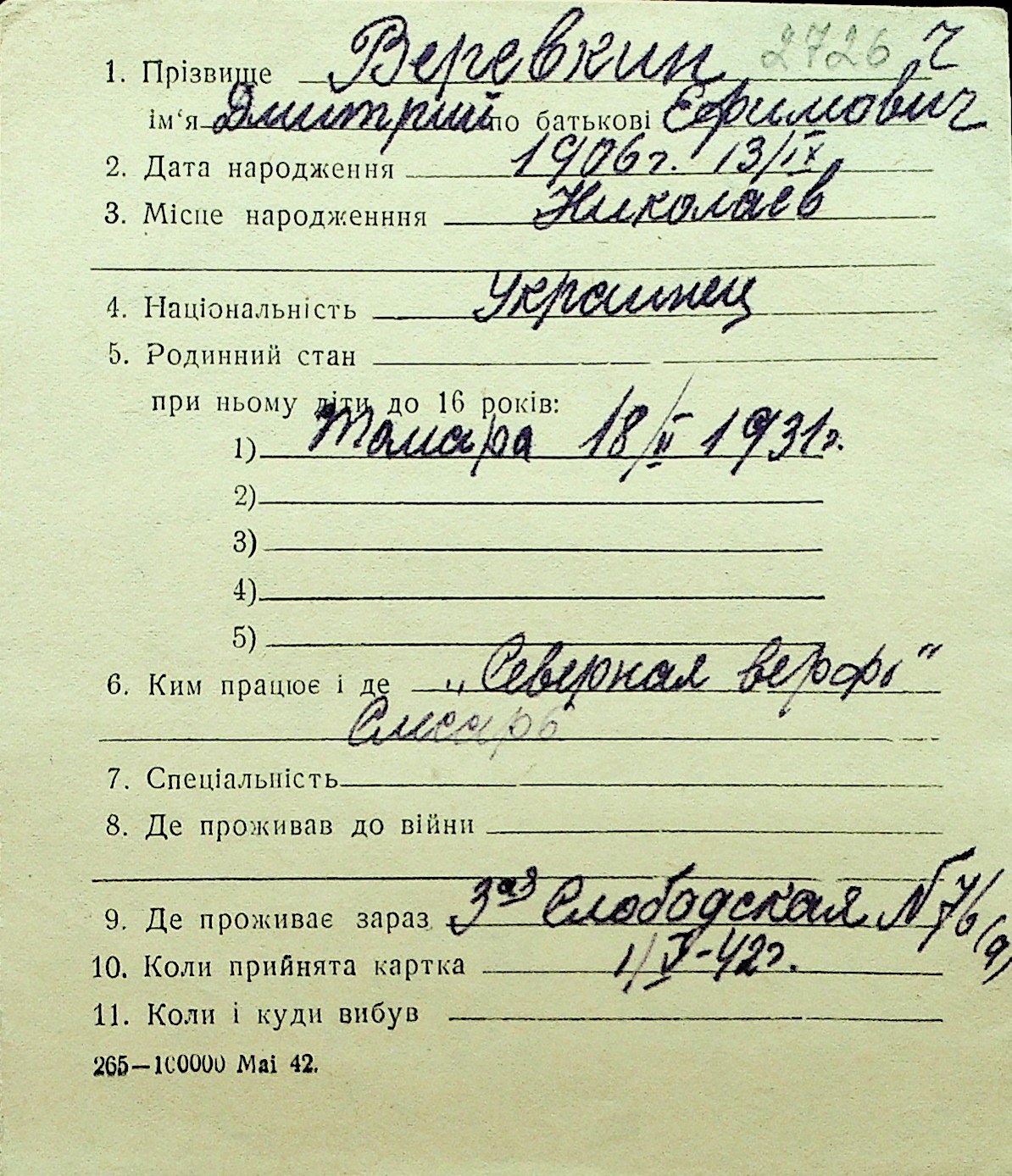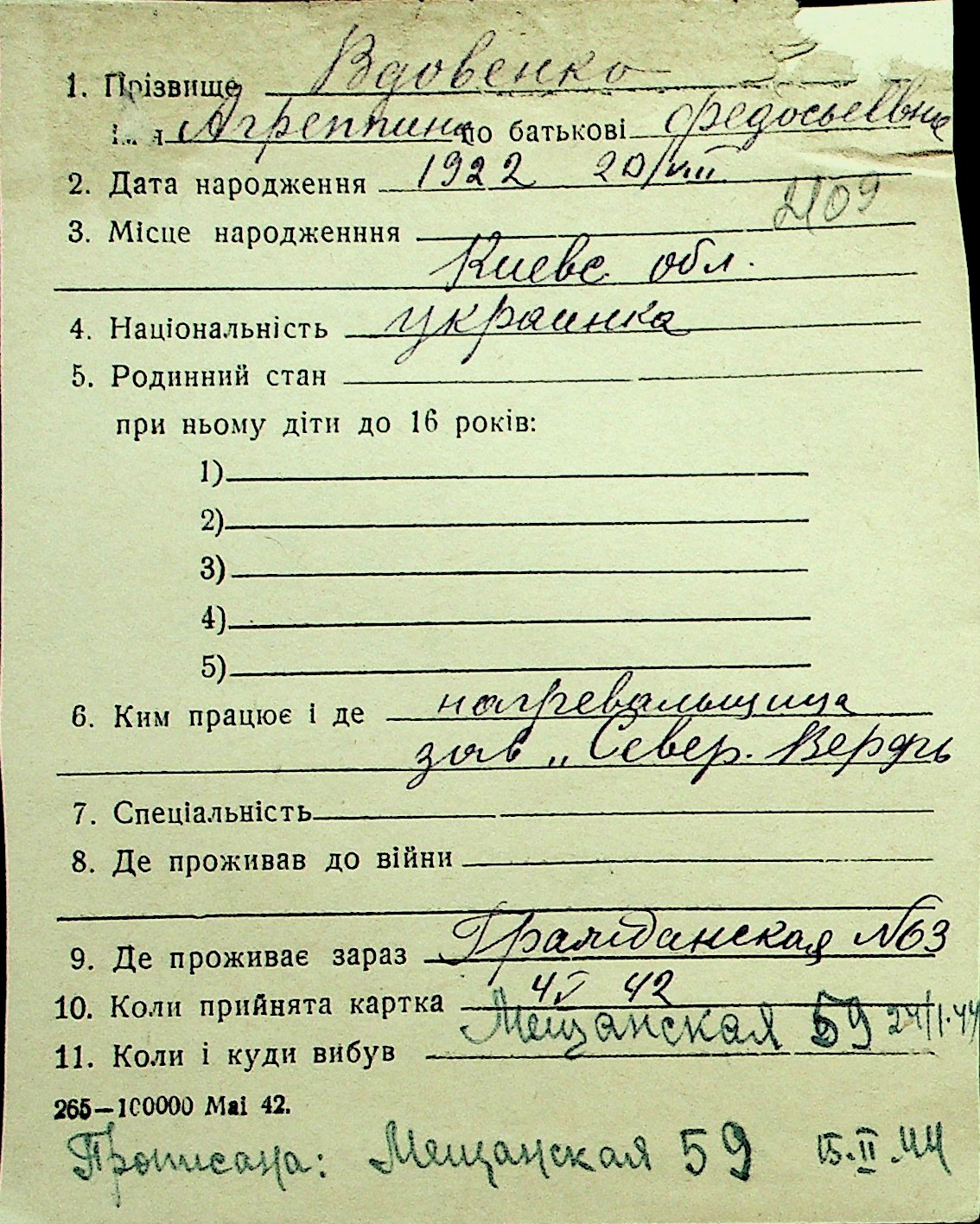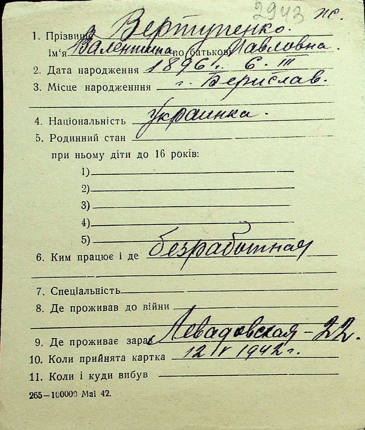 • • Перелік карток до фонду № Н-1016
