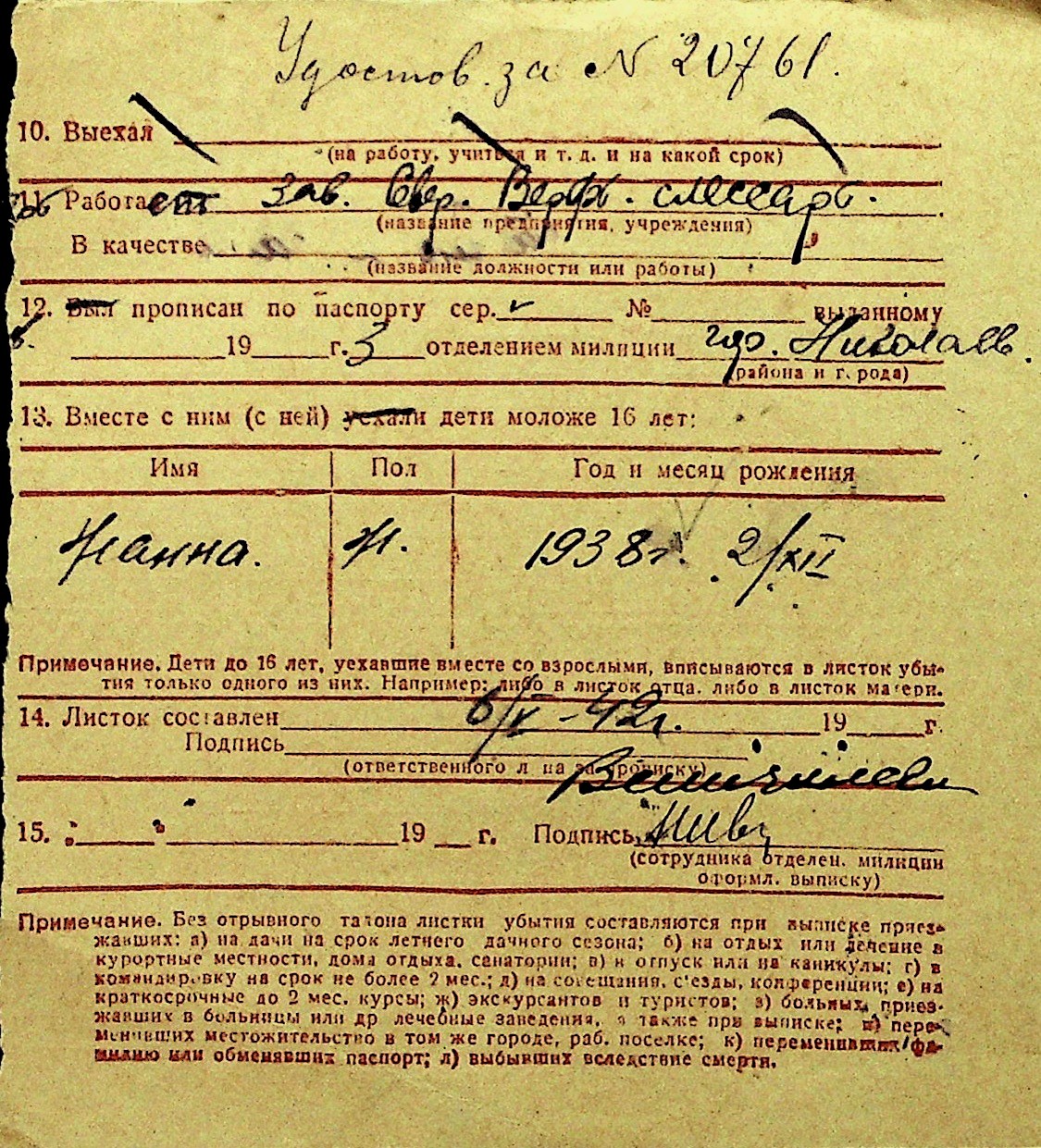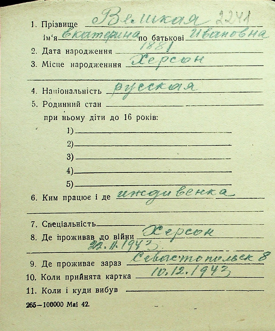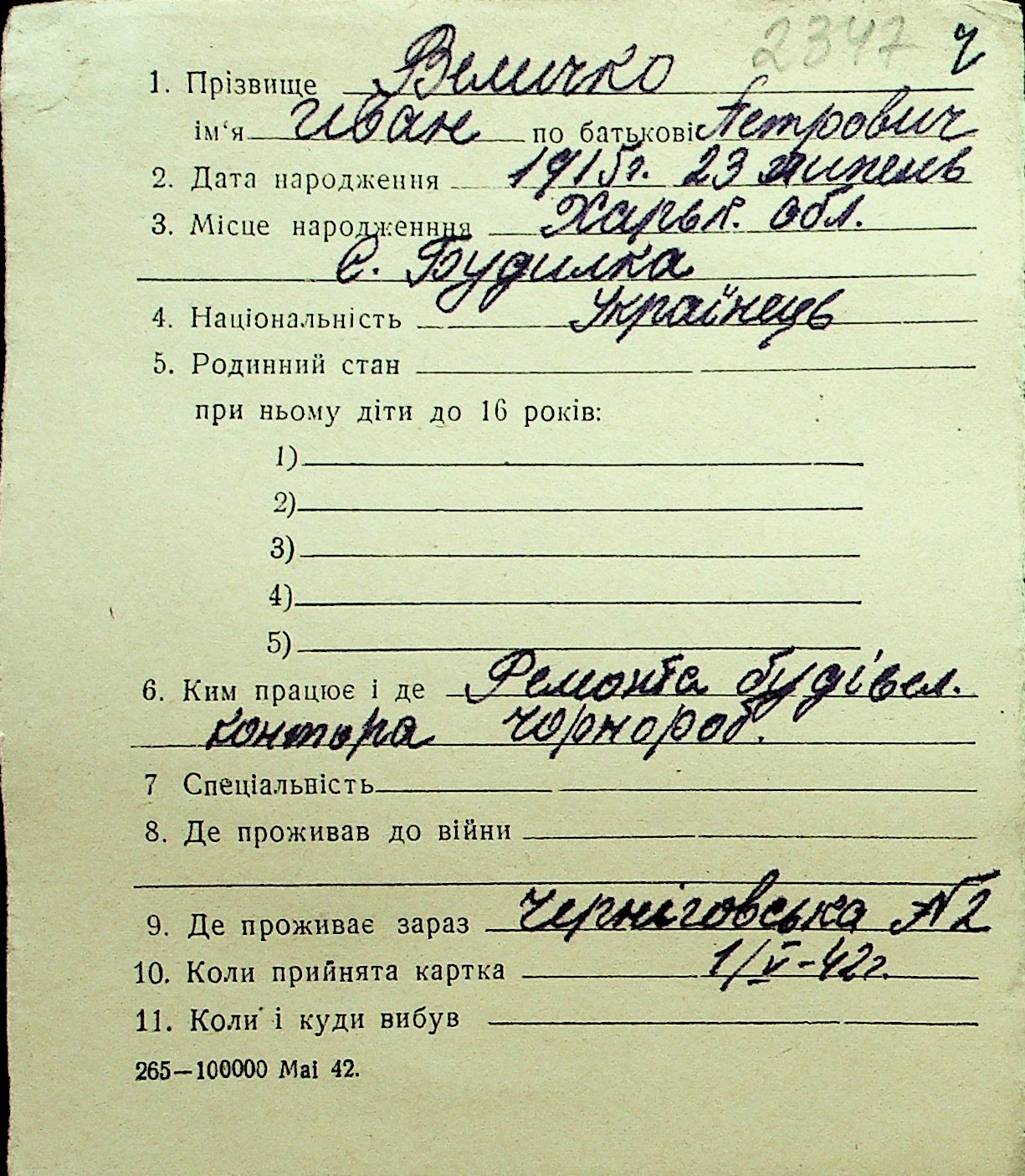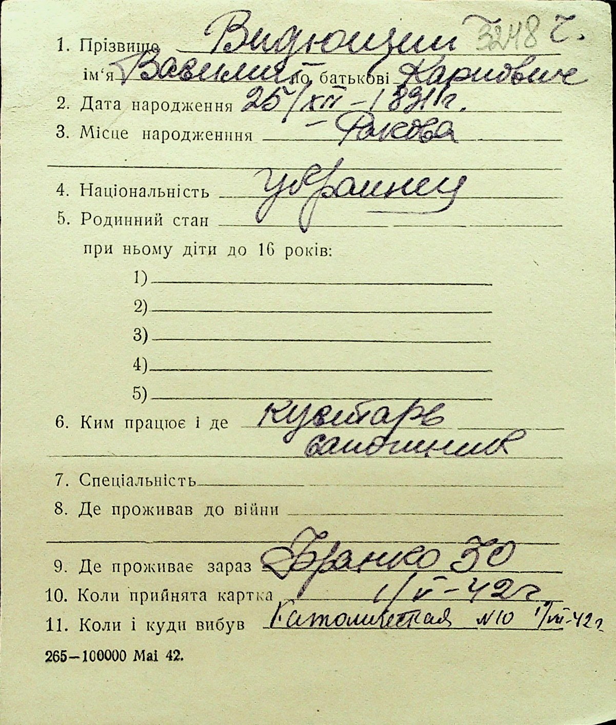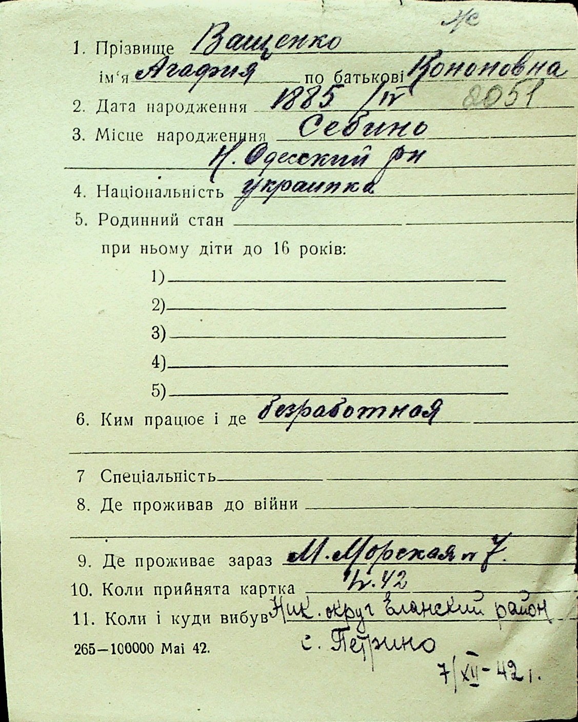 • • Перелік карток до фонду № Н-1016