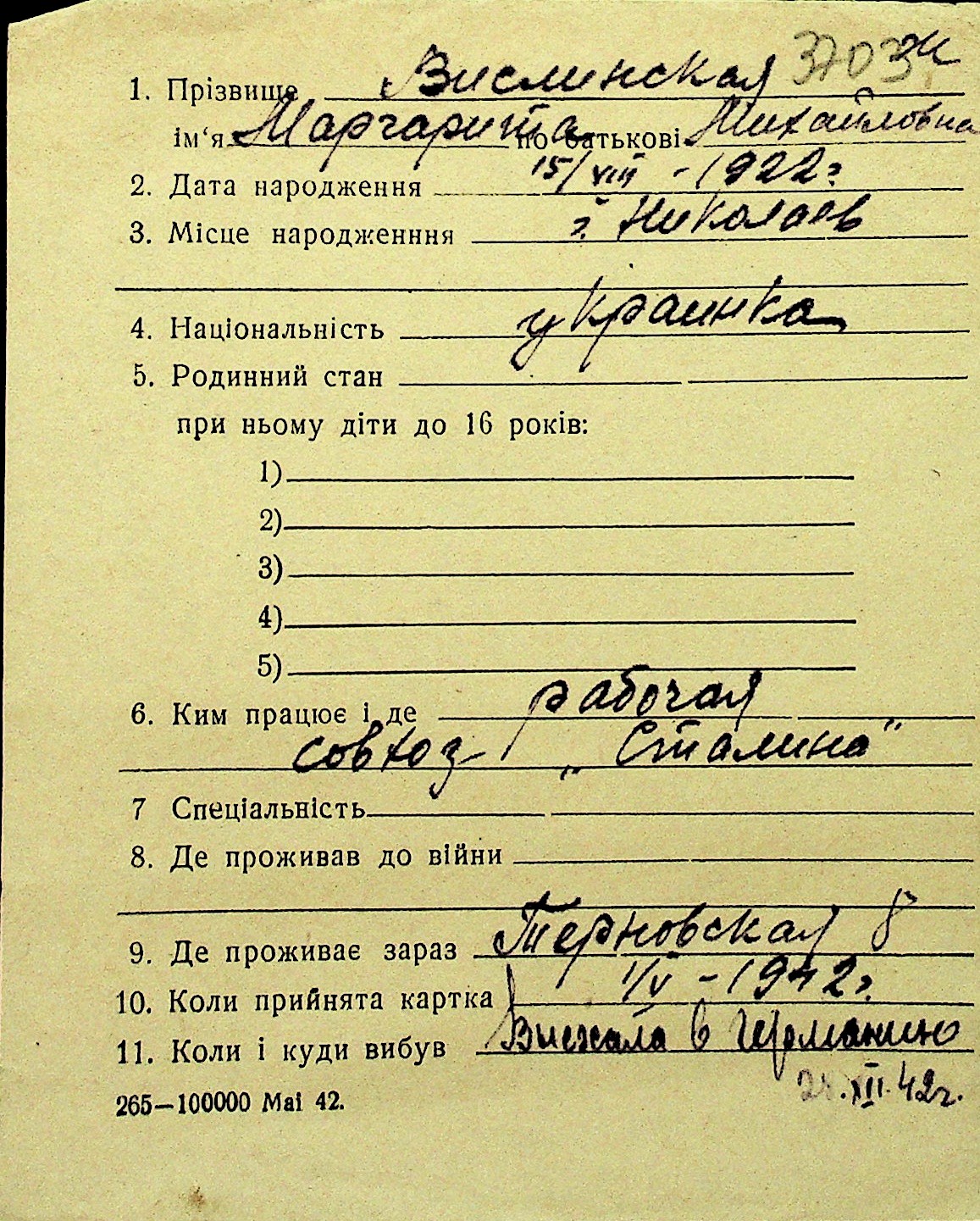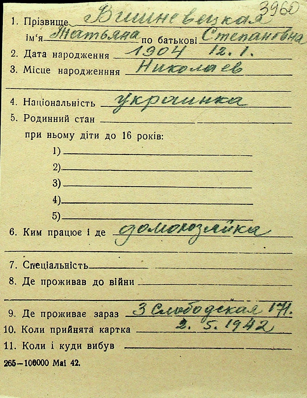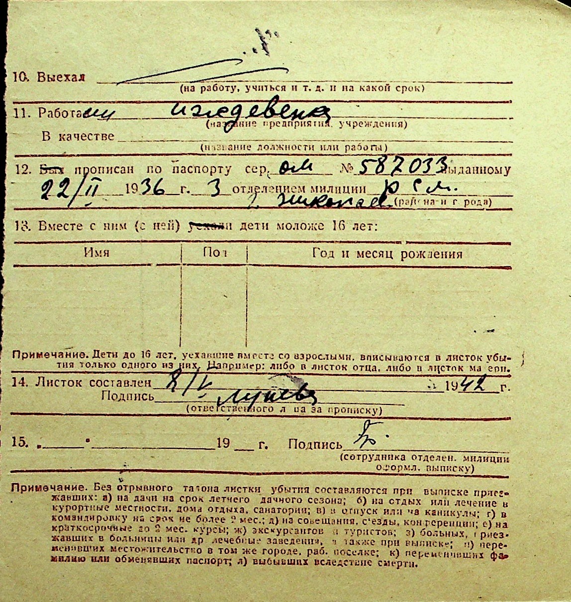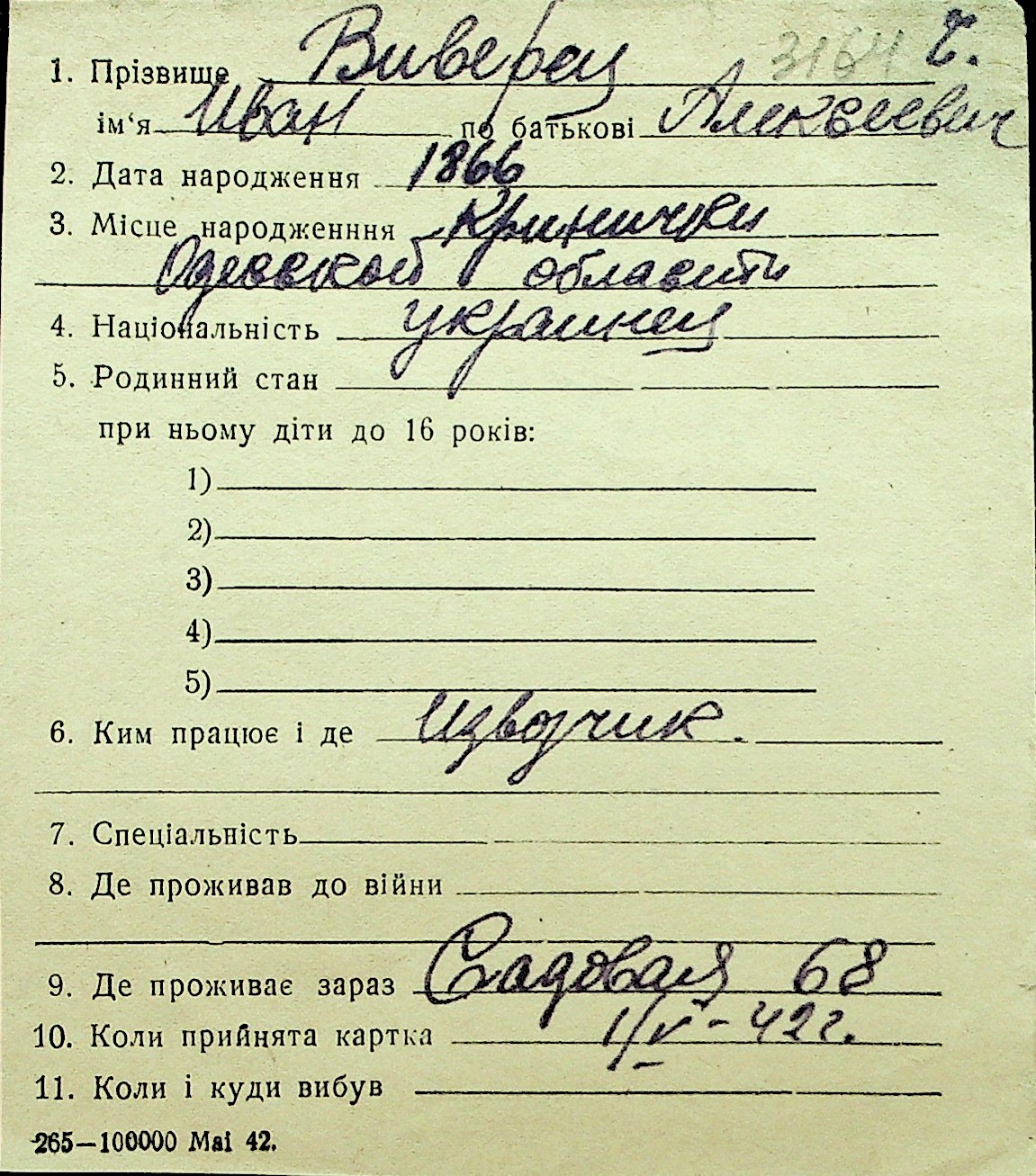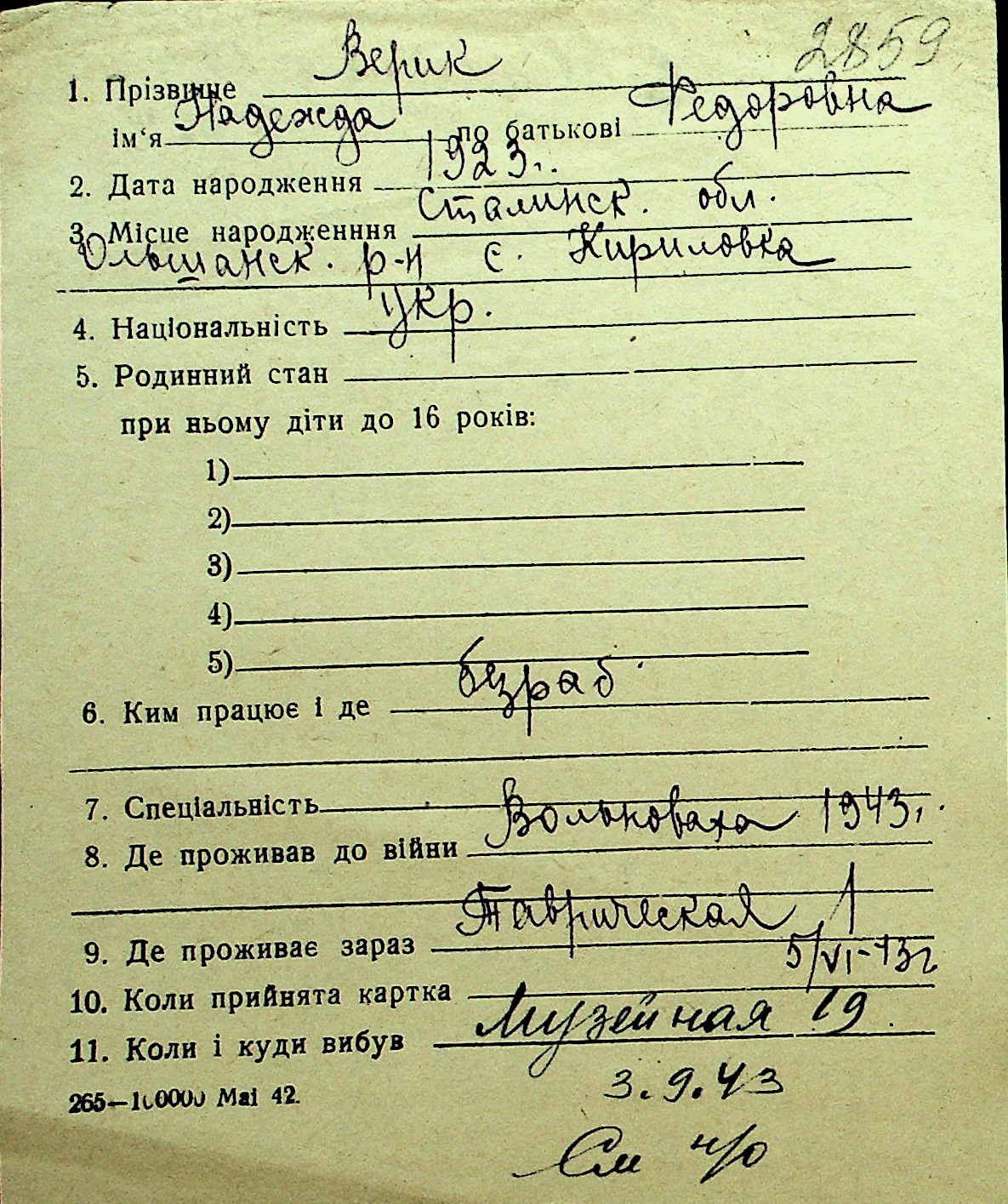 • • Перелік карток до фонду № Н-1016