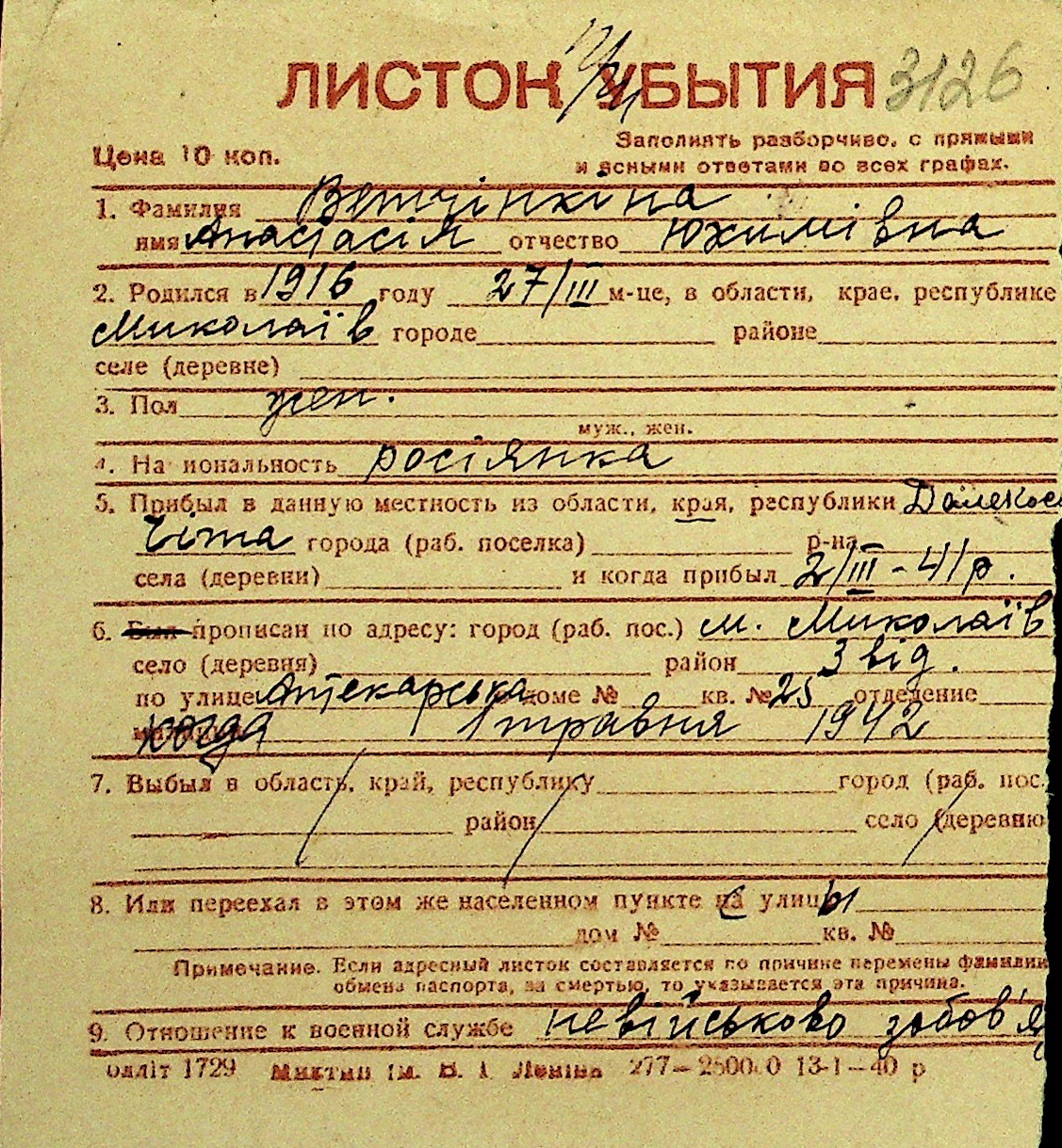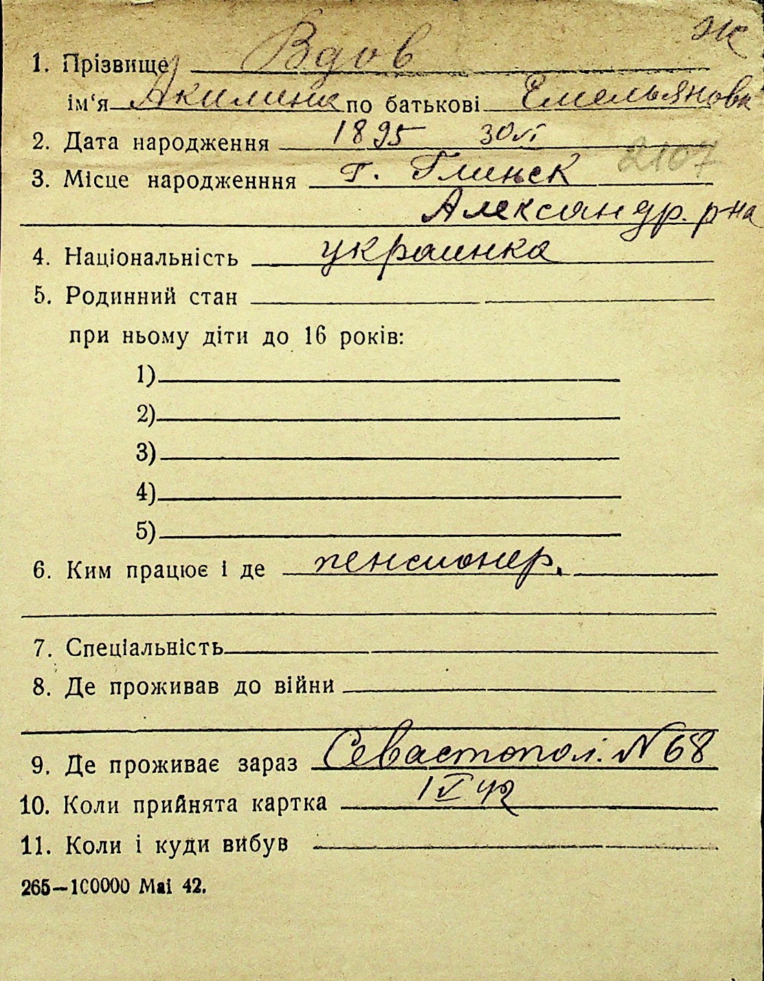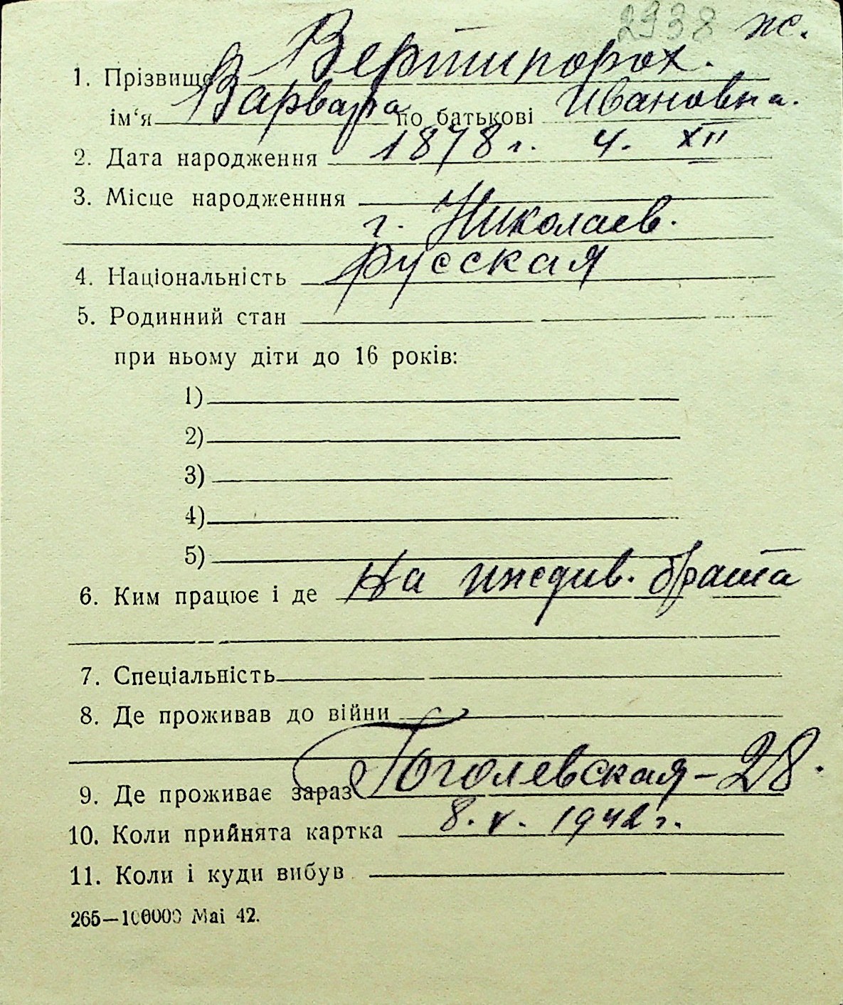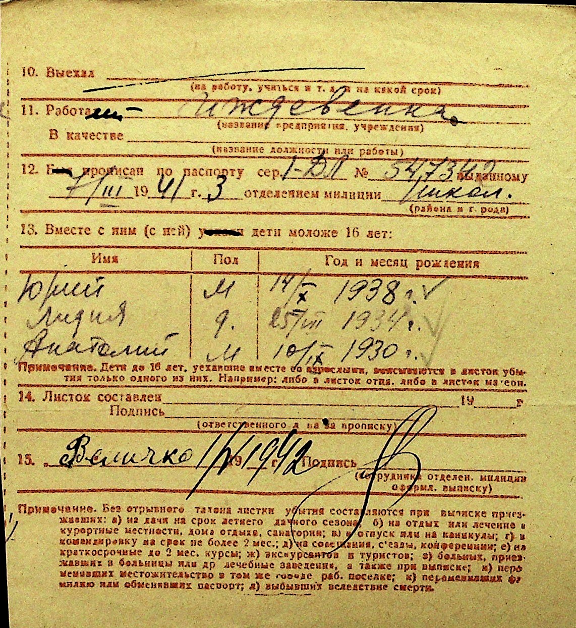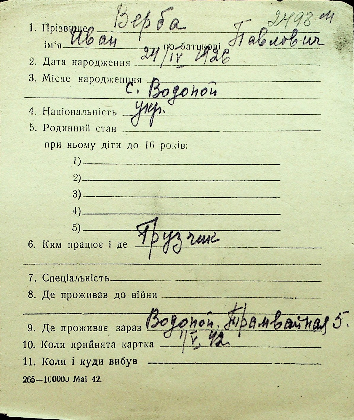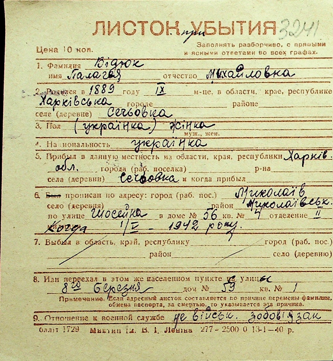 • • Перелік карток до фонду № Н-1016