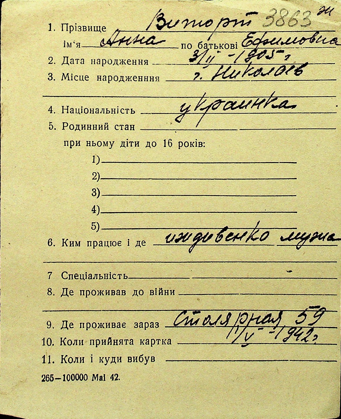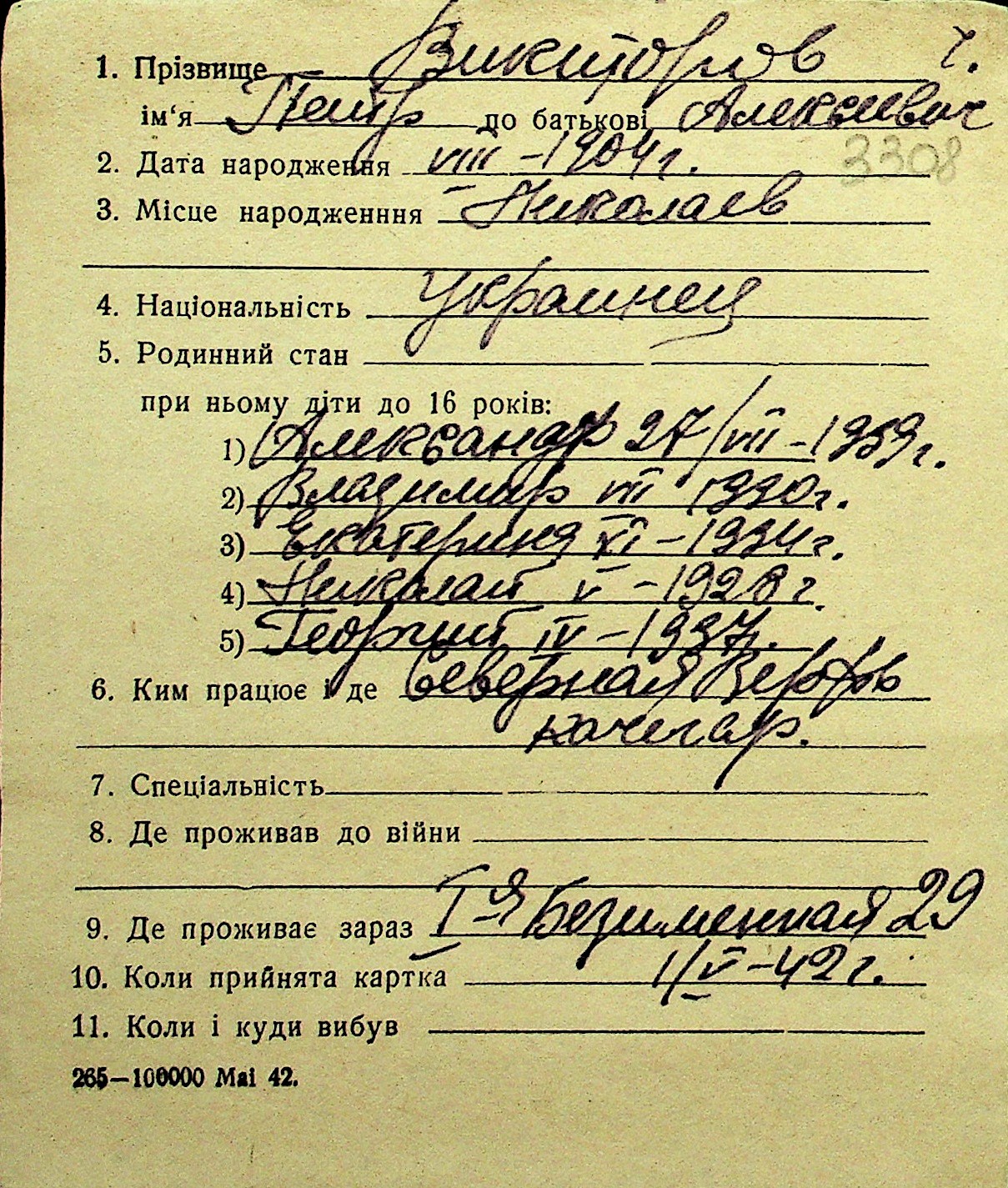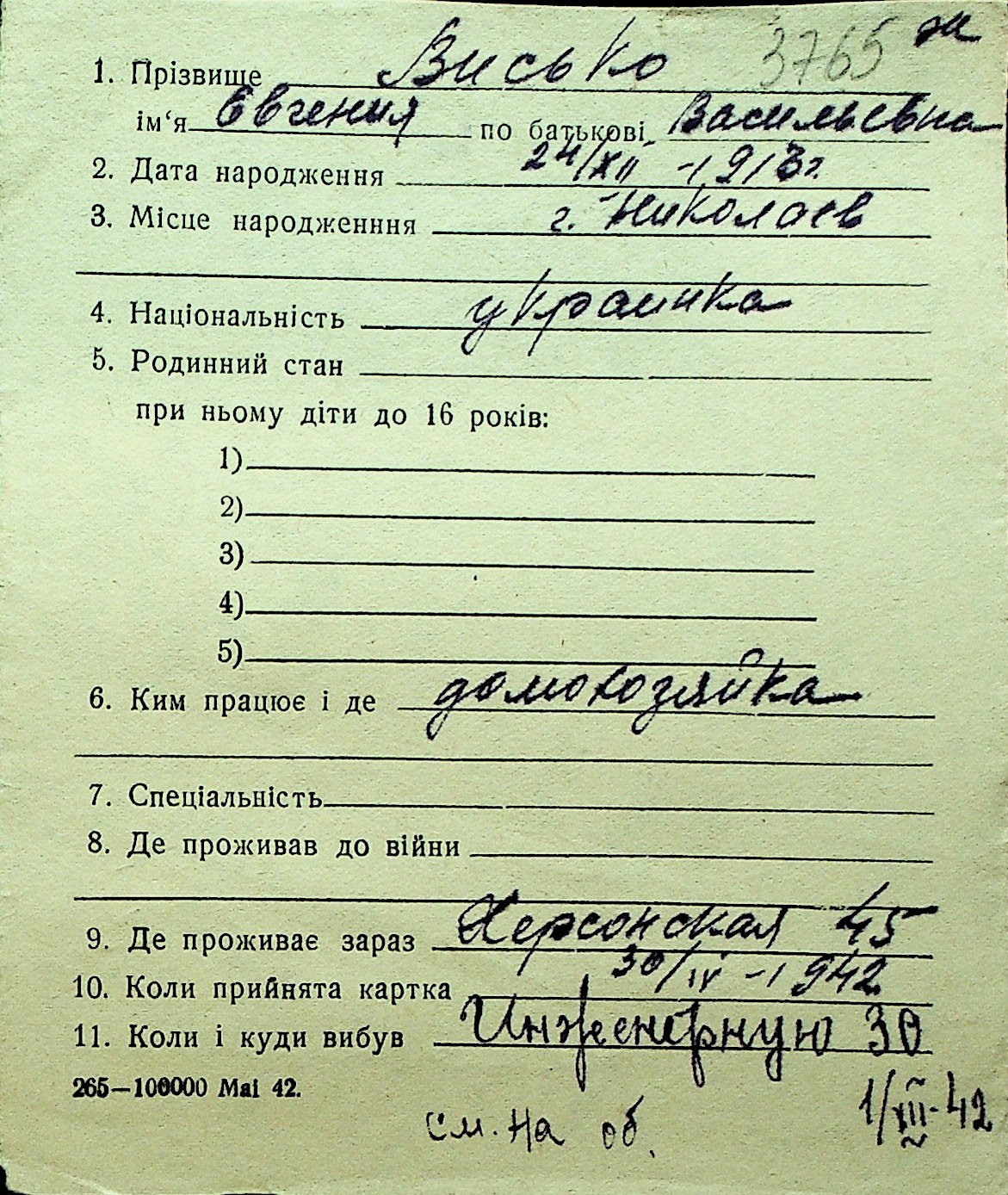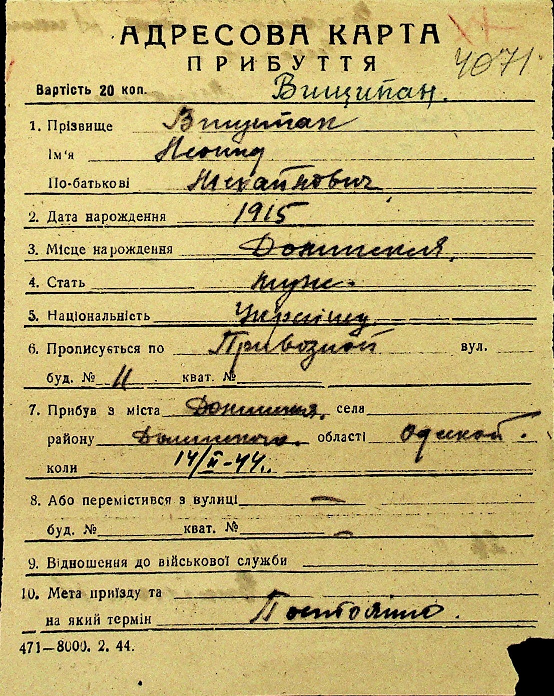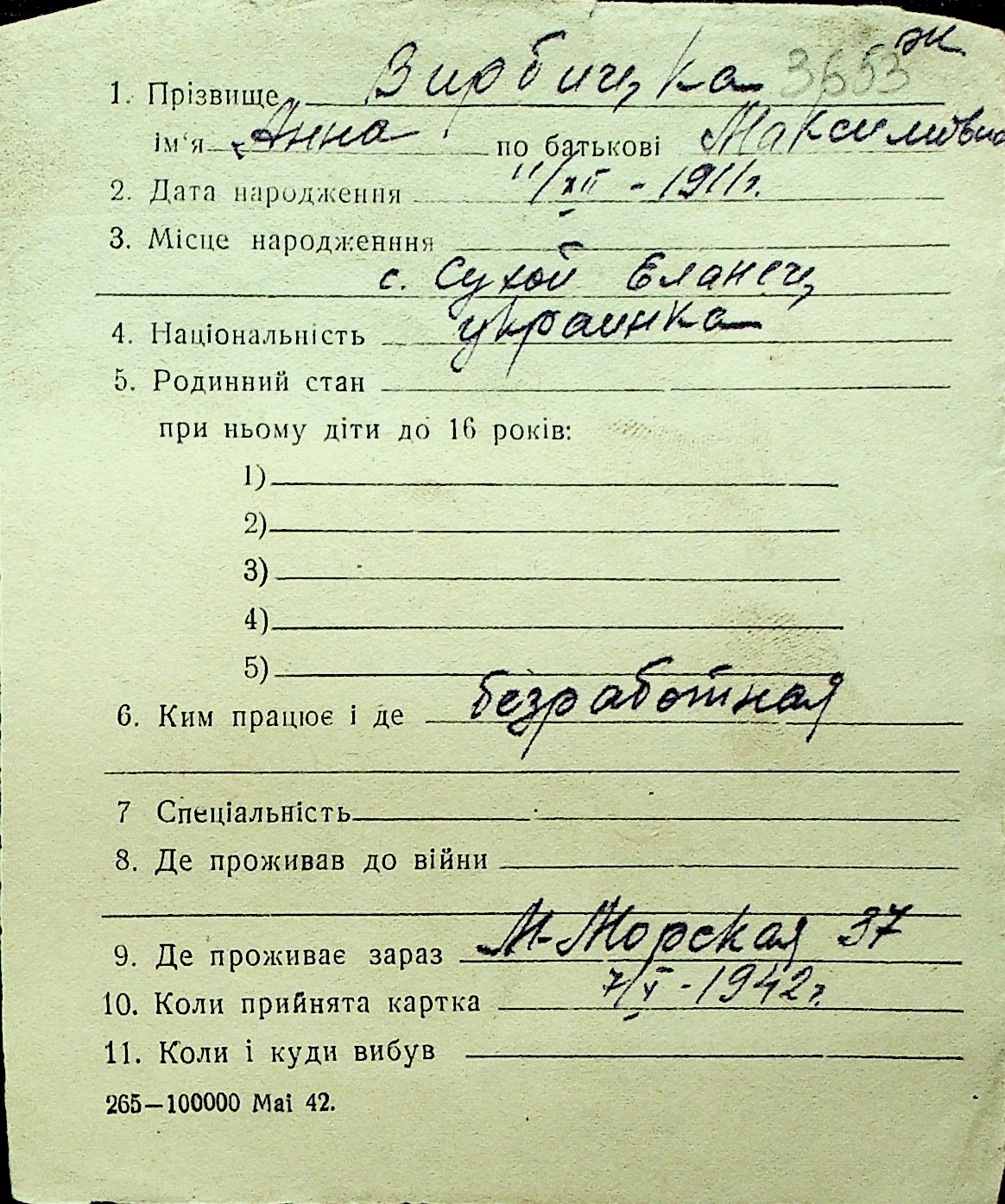 • • Перелік карток до фонду № Н-1016