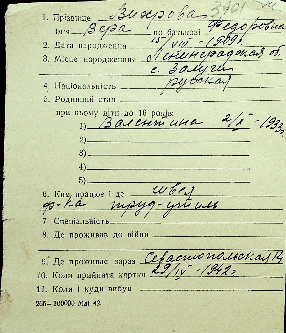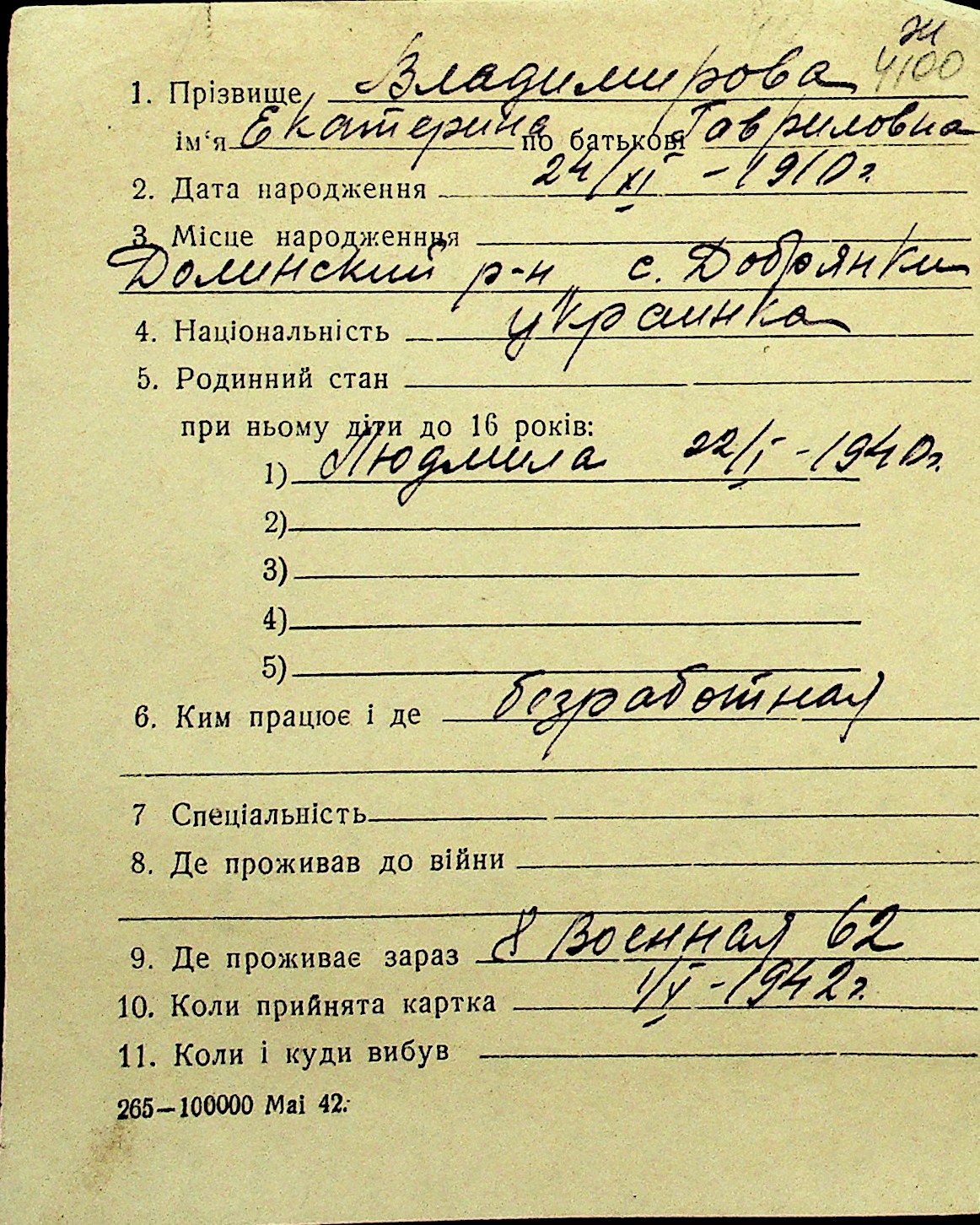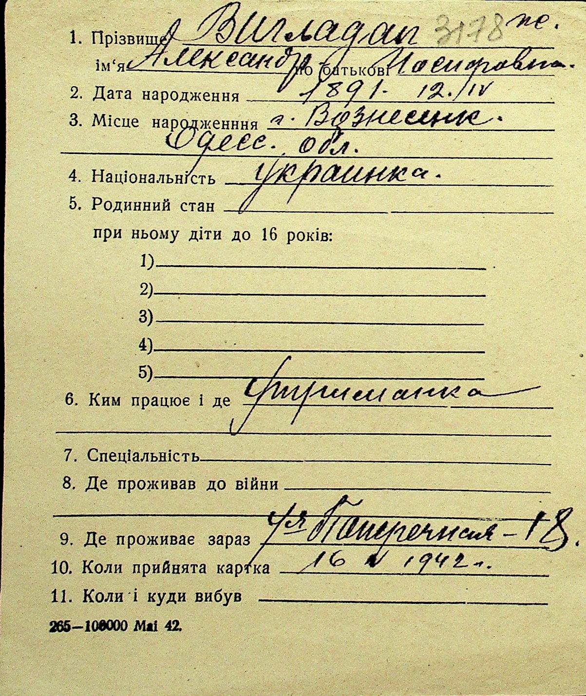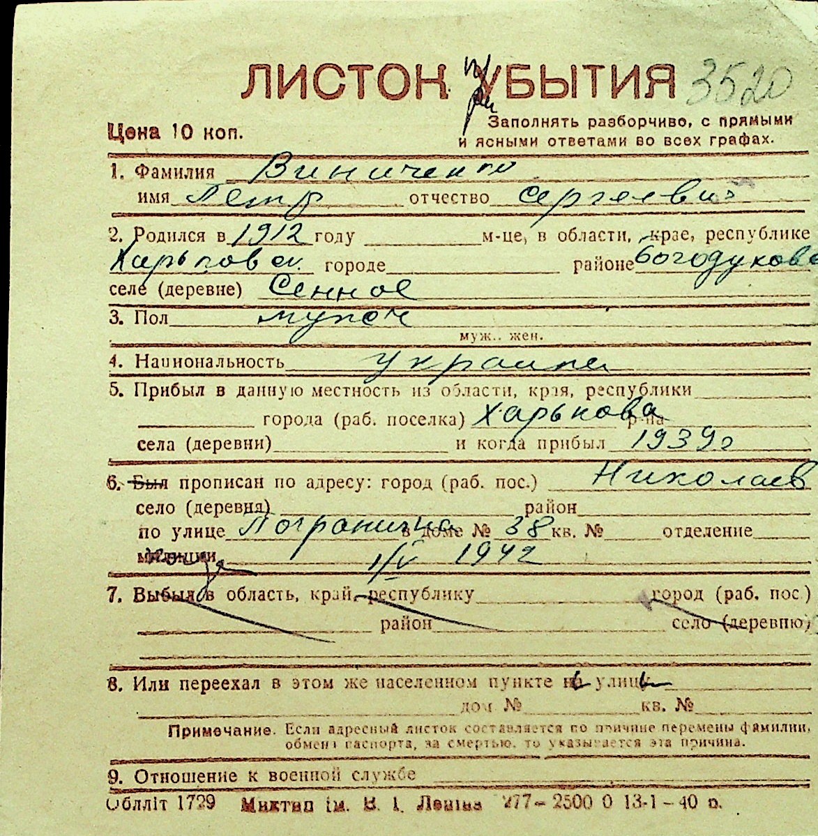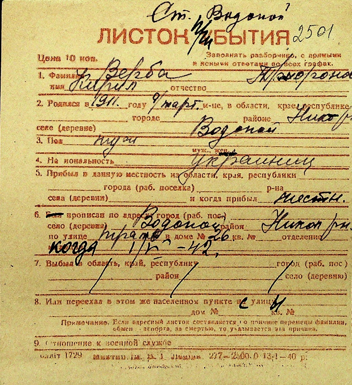 • • Перелік карток до фонду № Н-1016