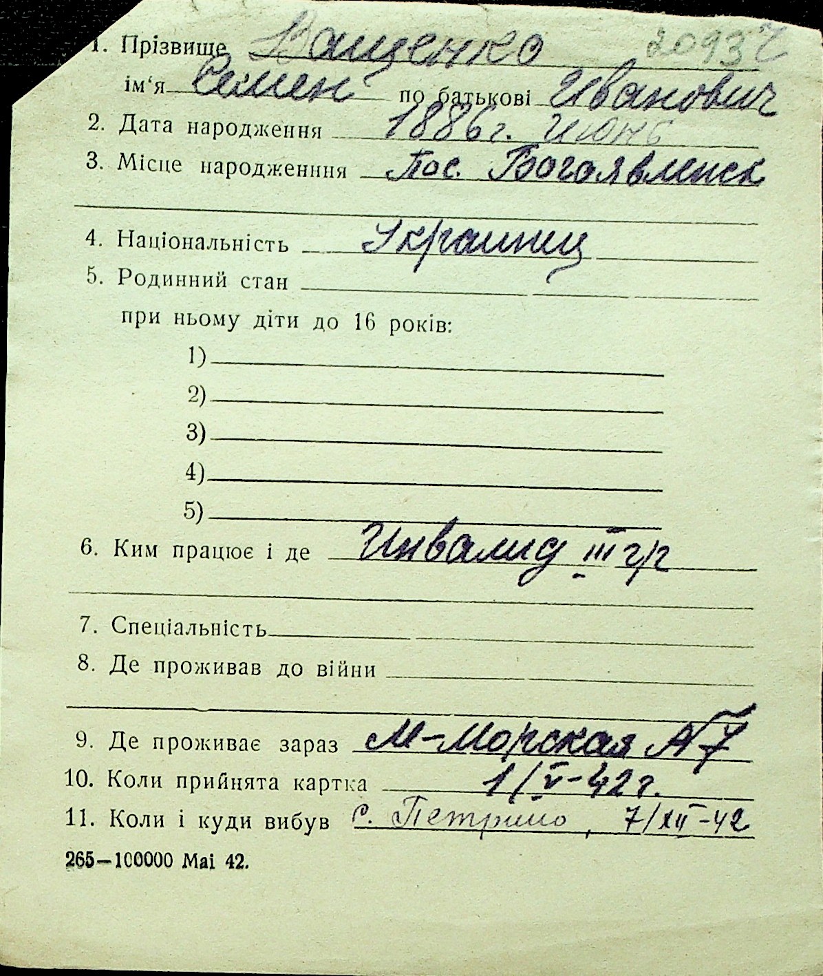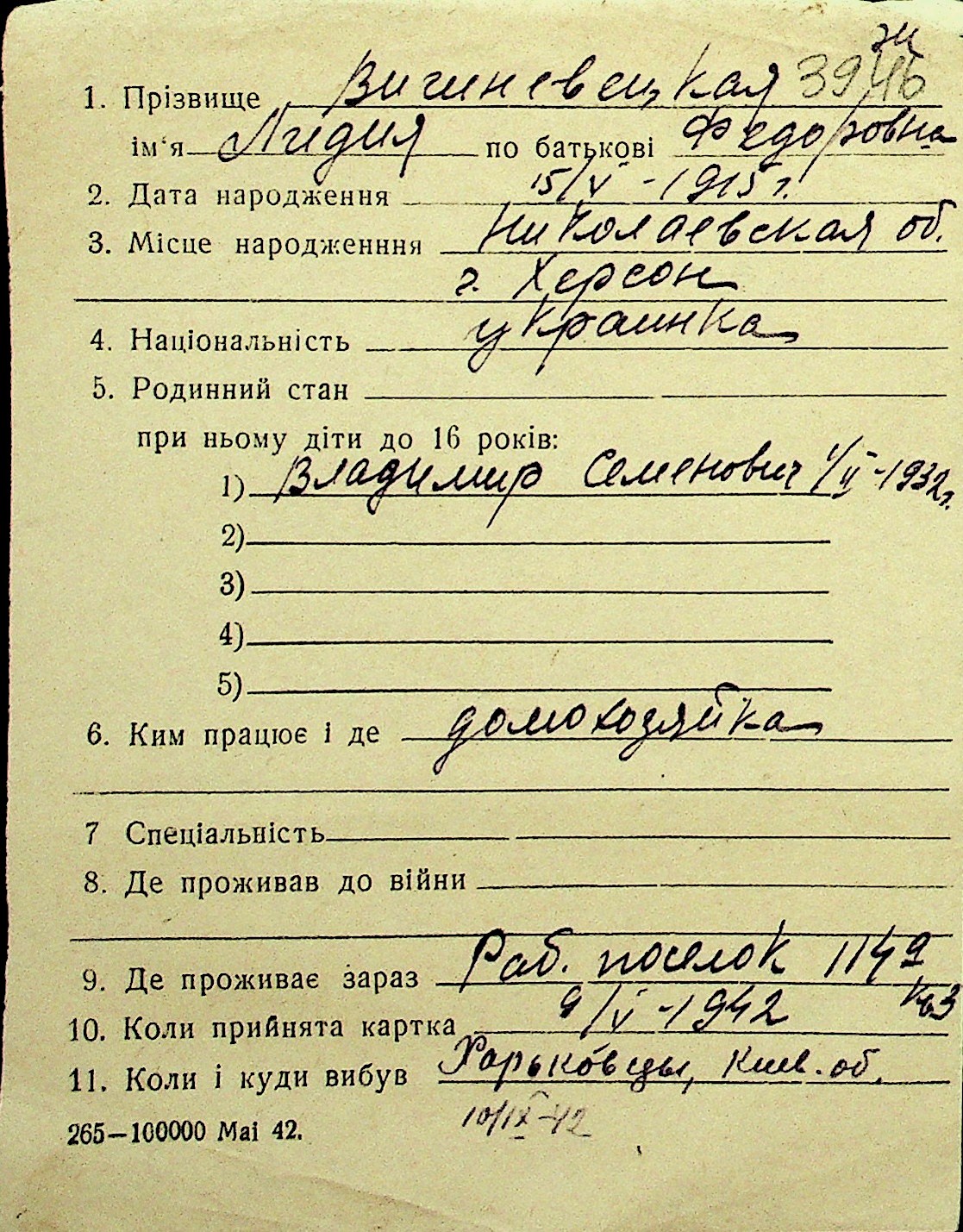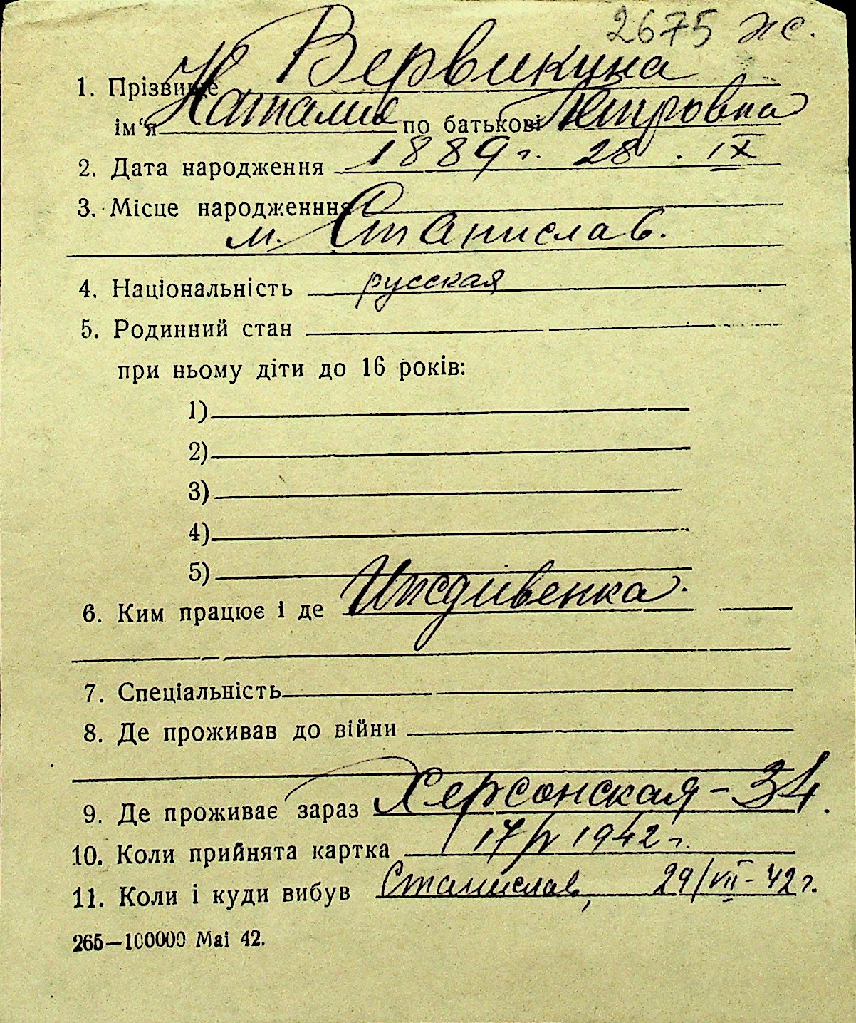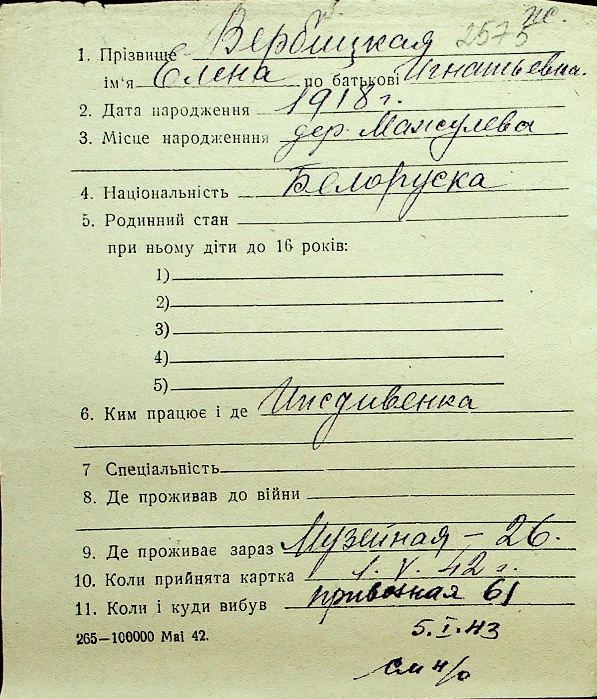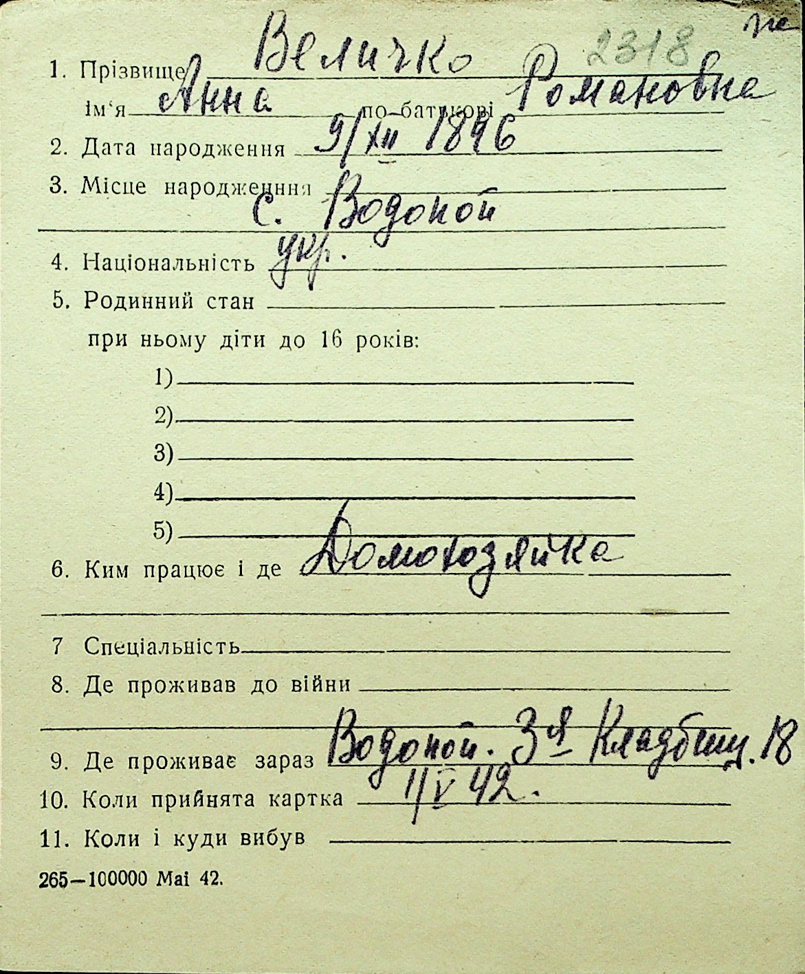• • Перелік карток до фонду № Н-1016