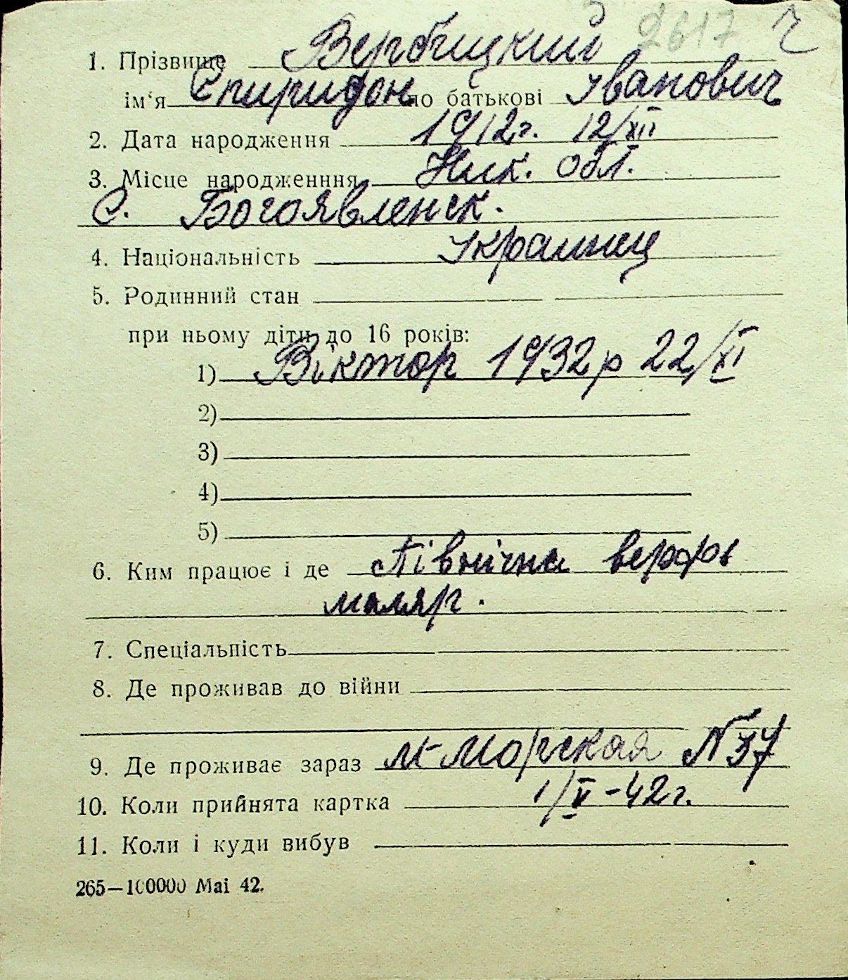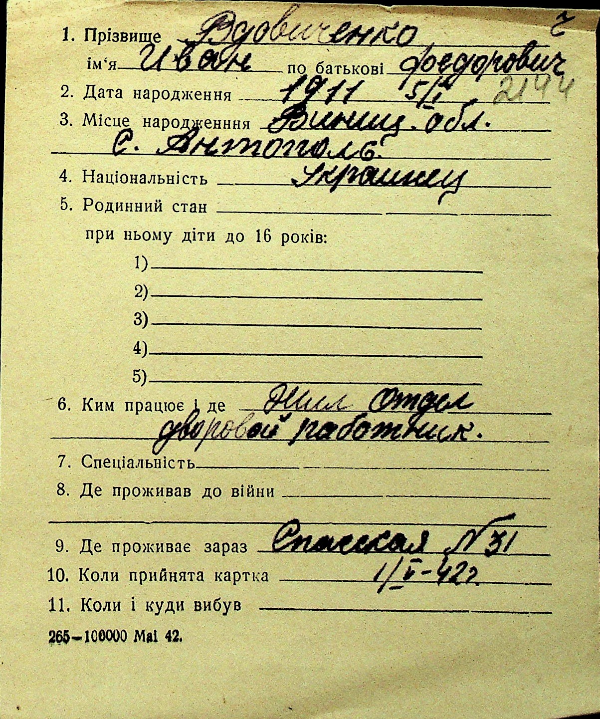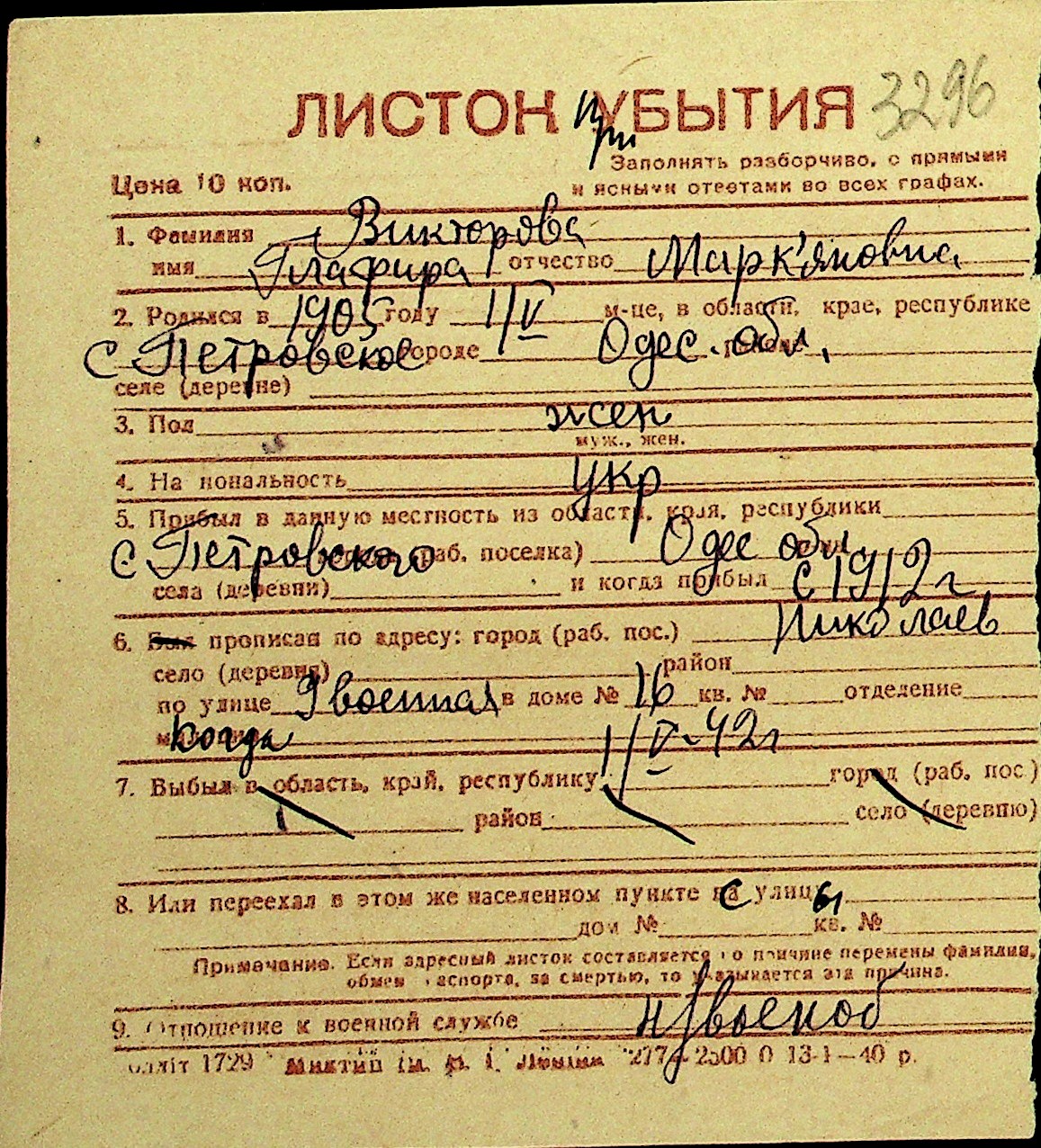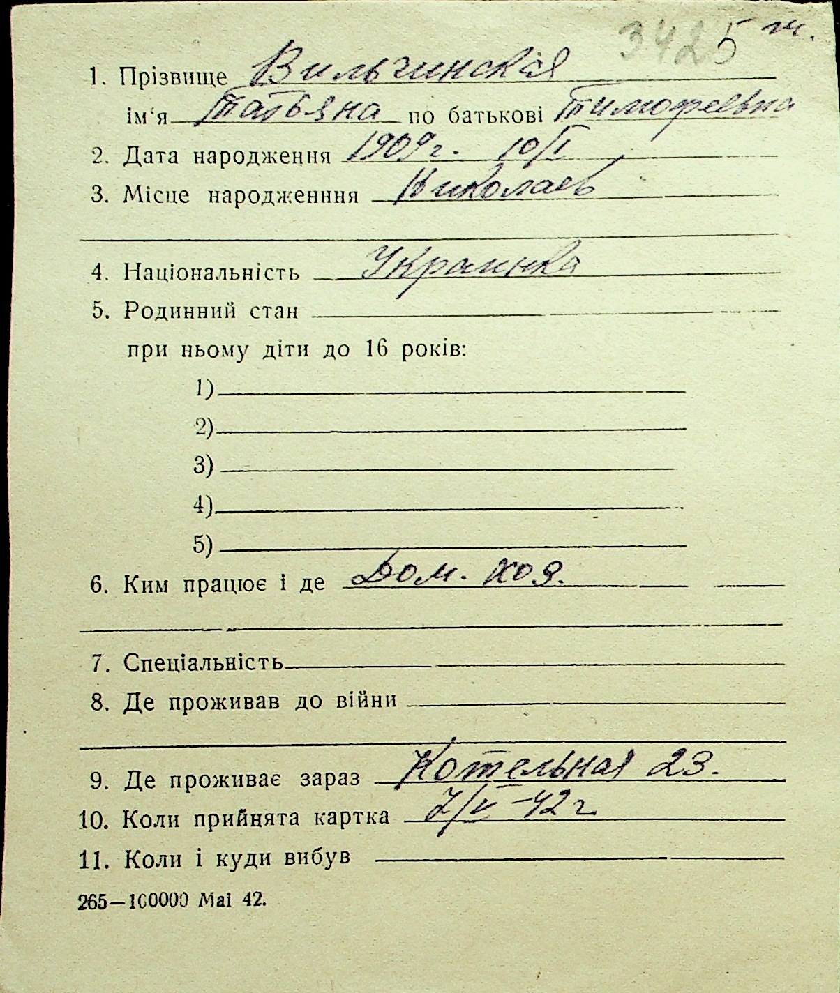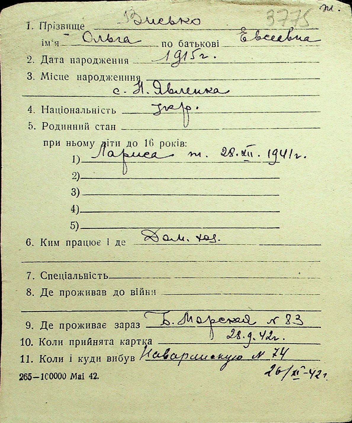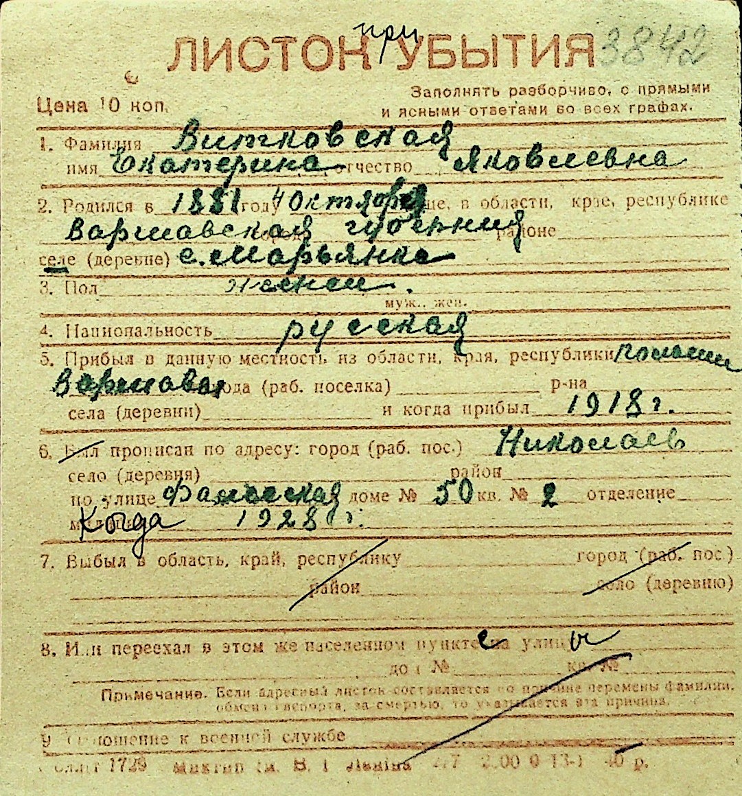 • • Перелік карток до фонду № Н-1016