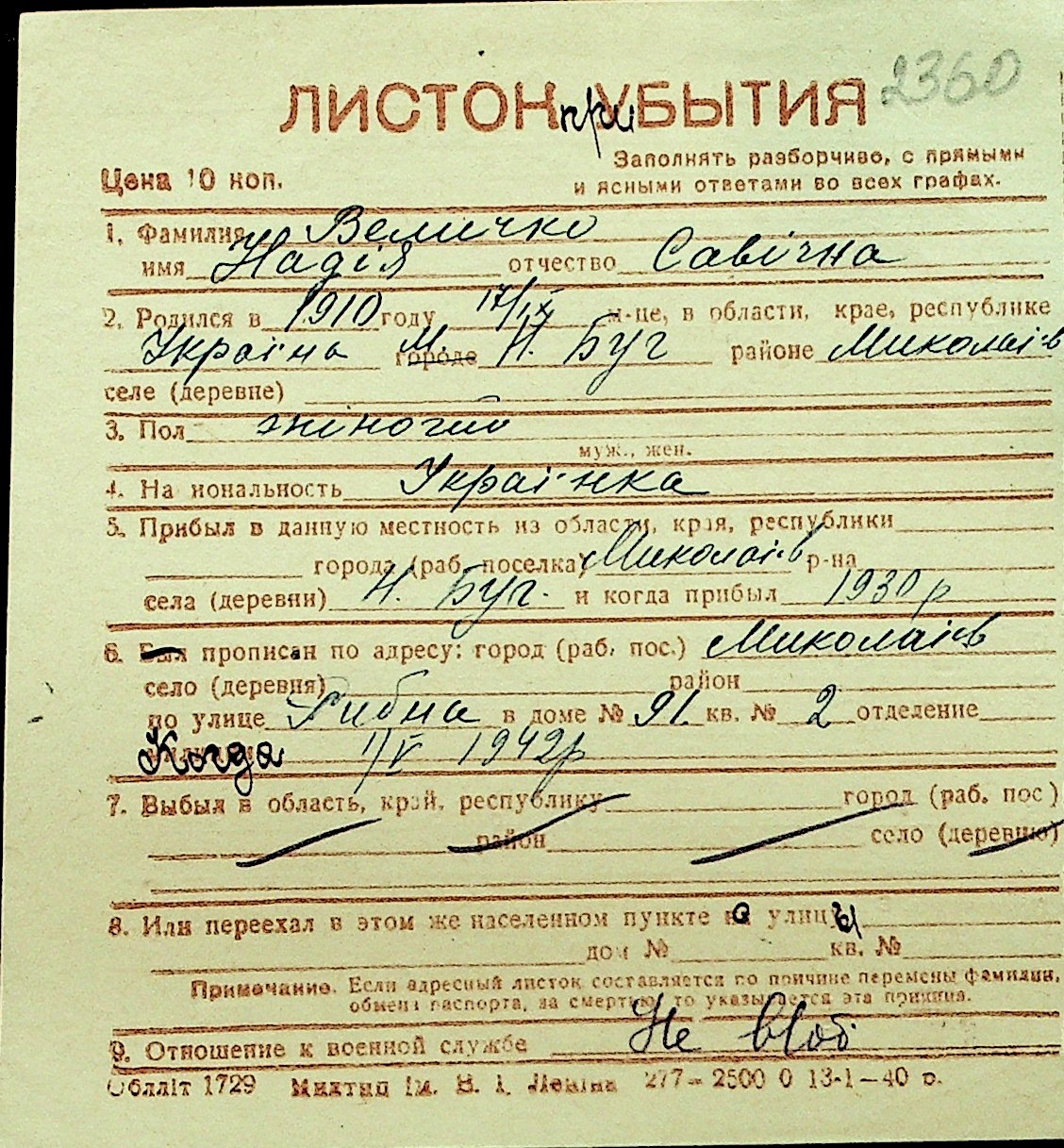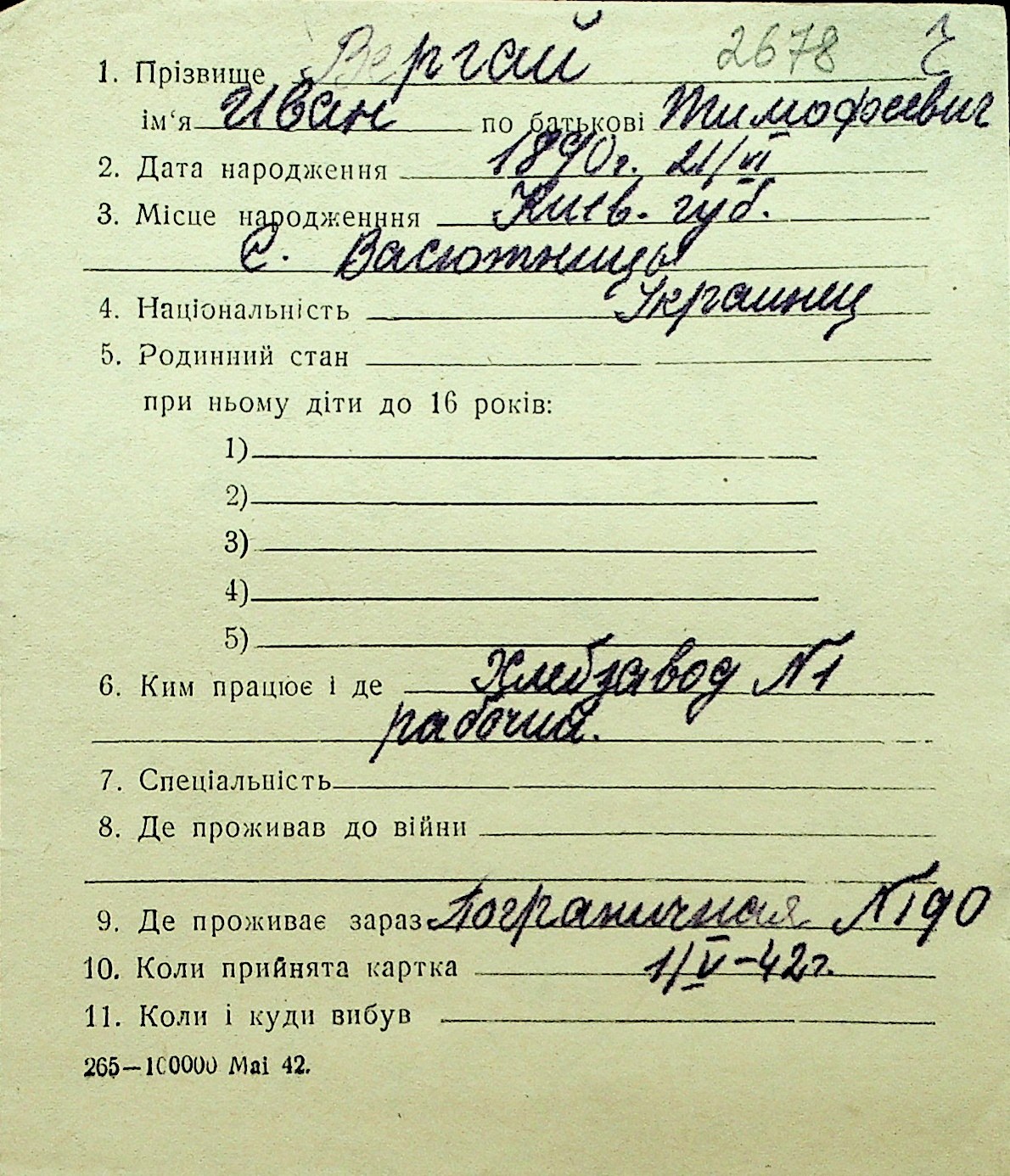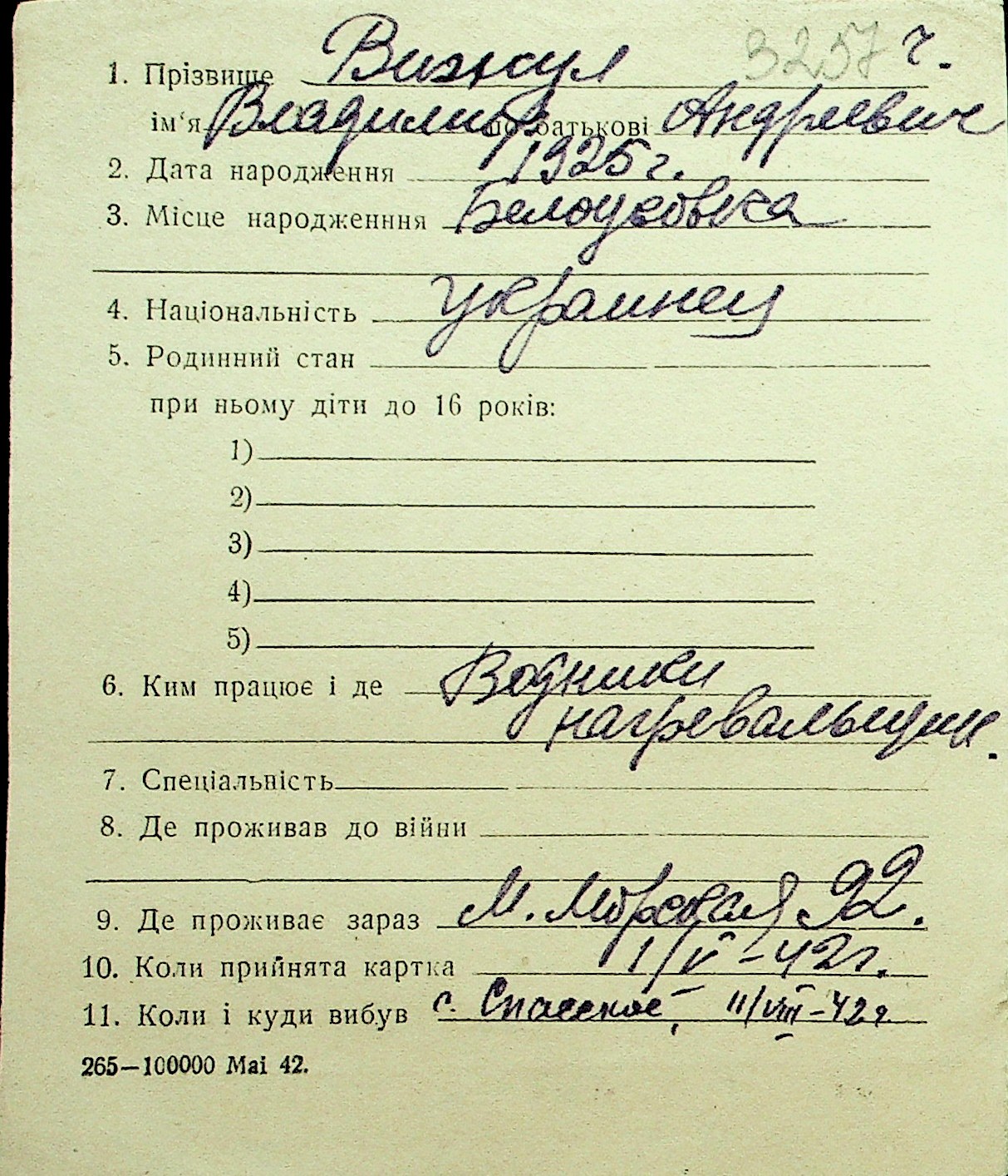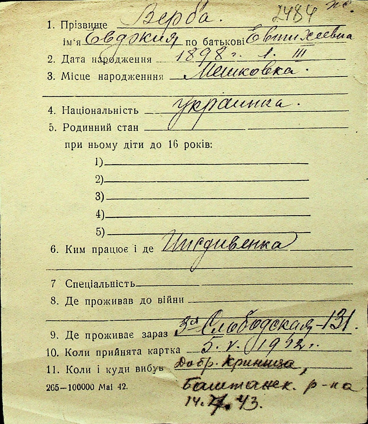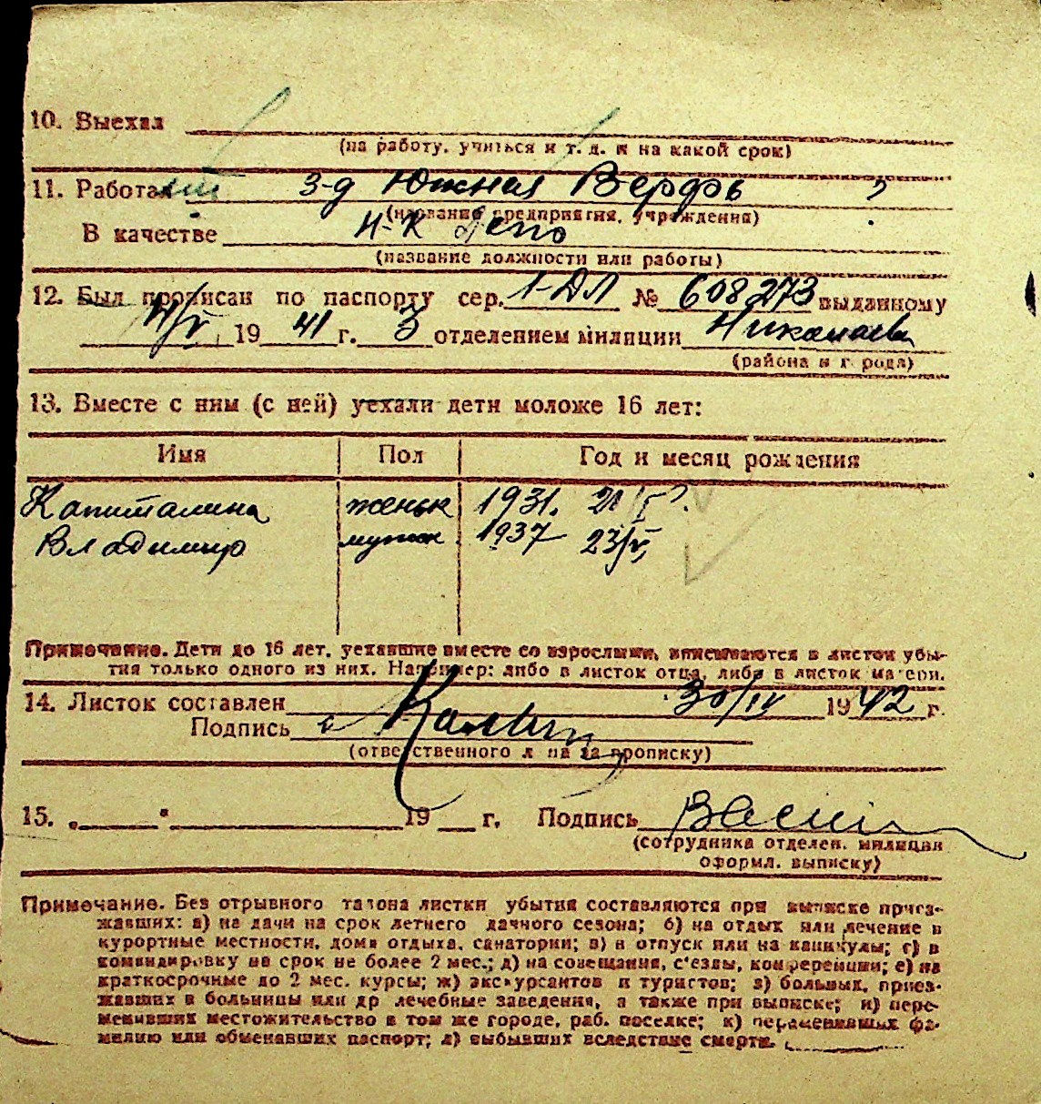 • • Перелік карток до фонду № Н-1016