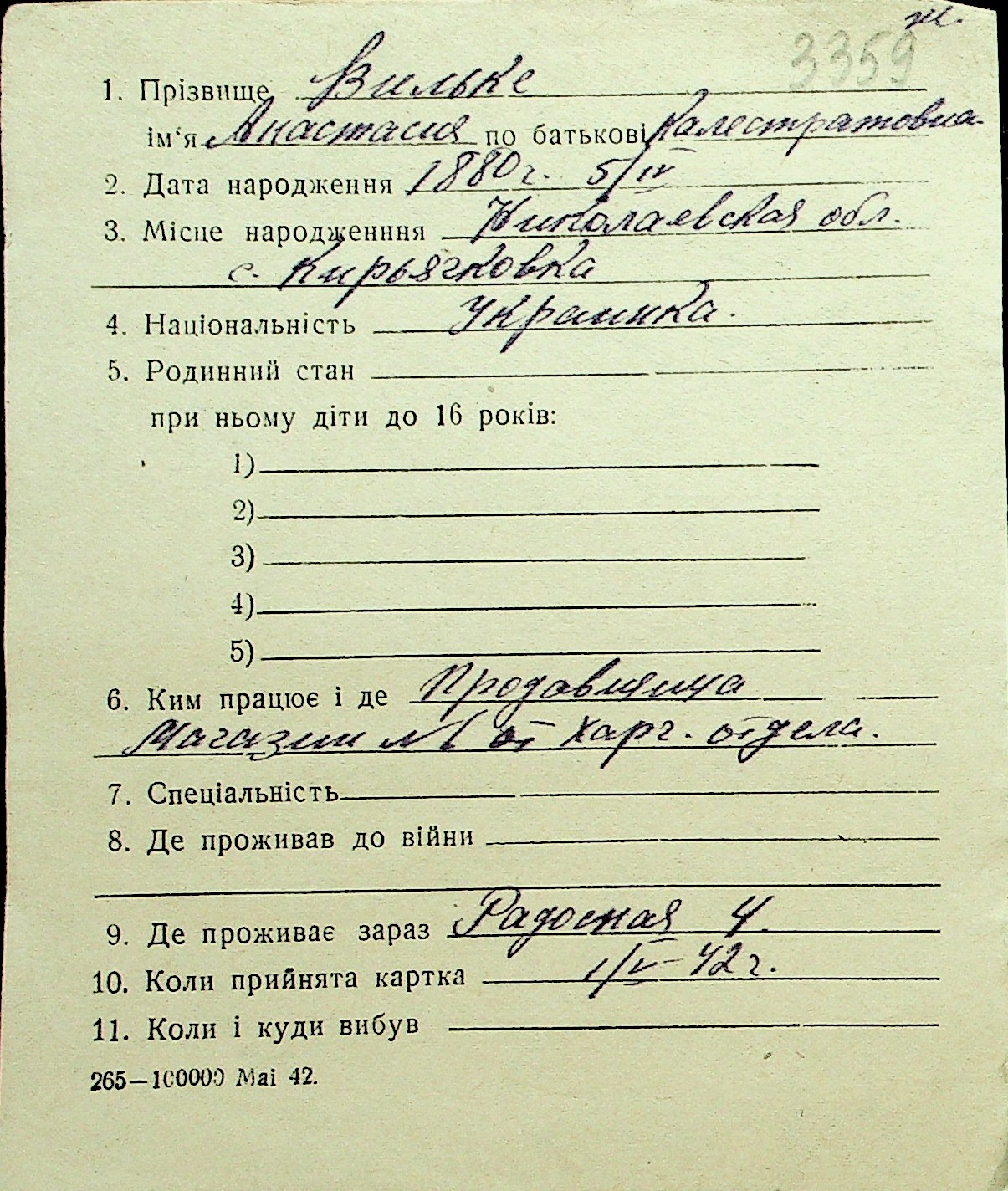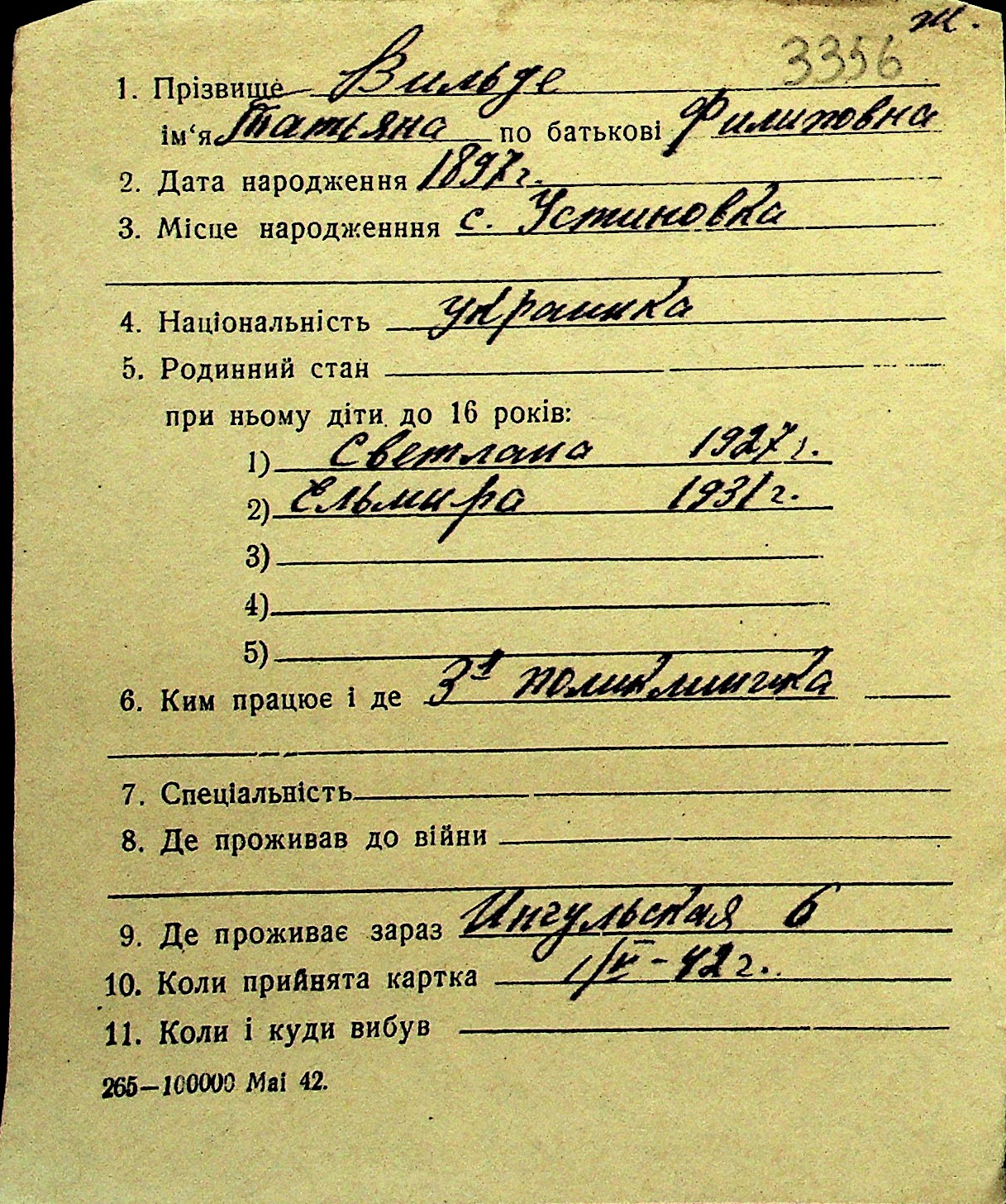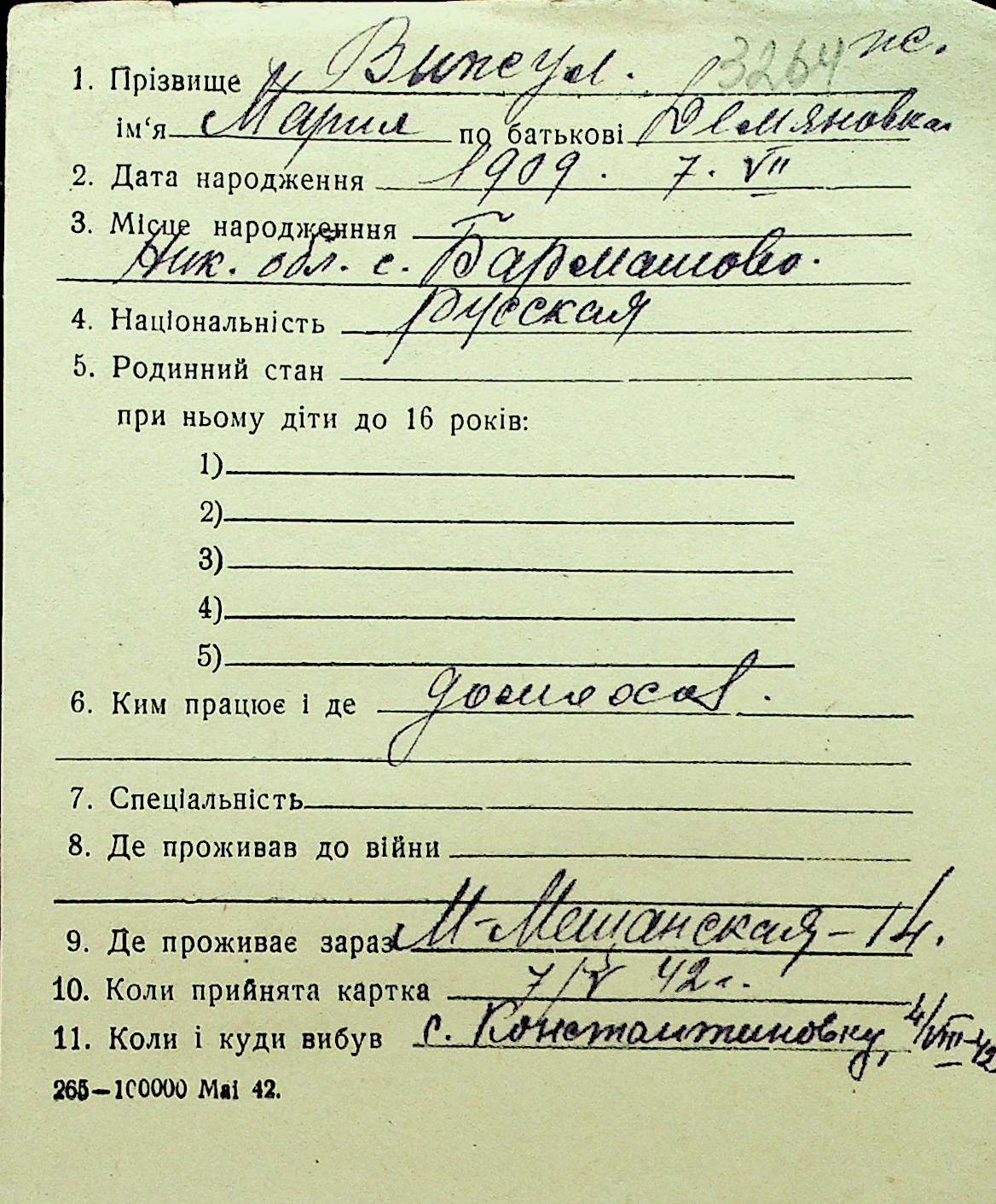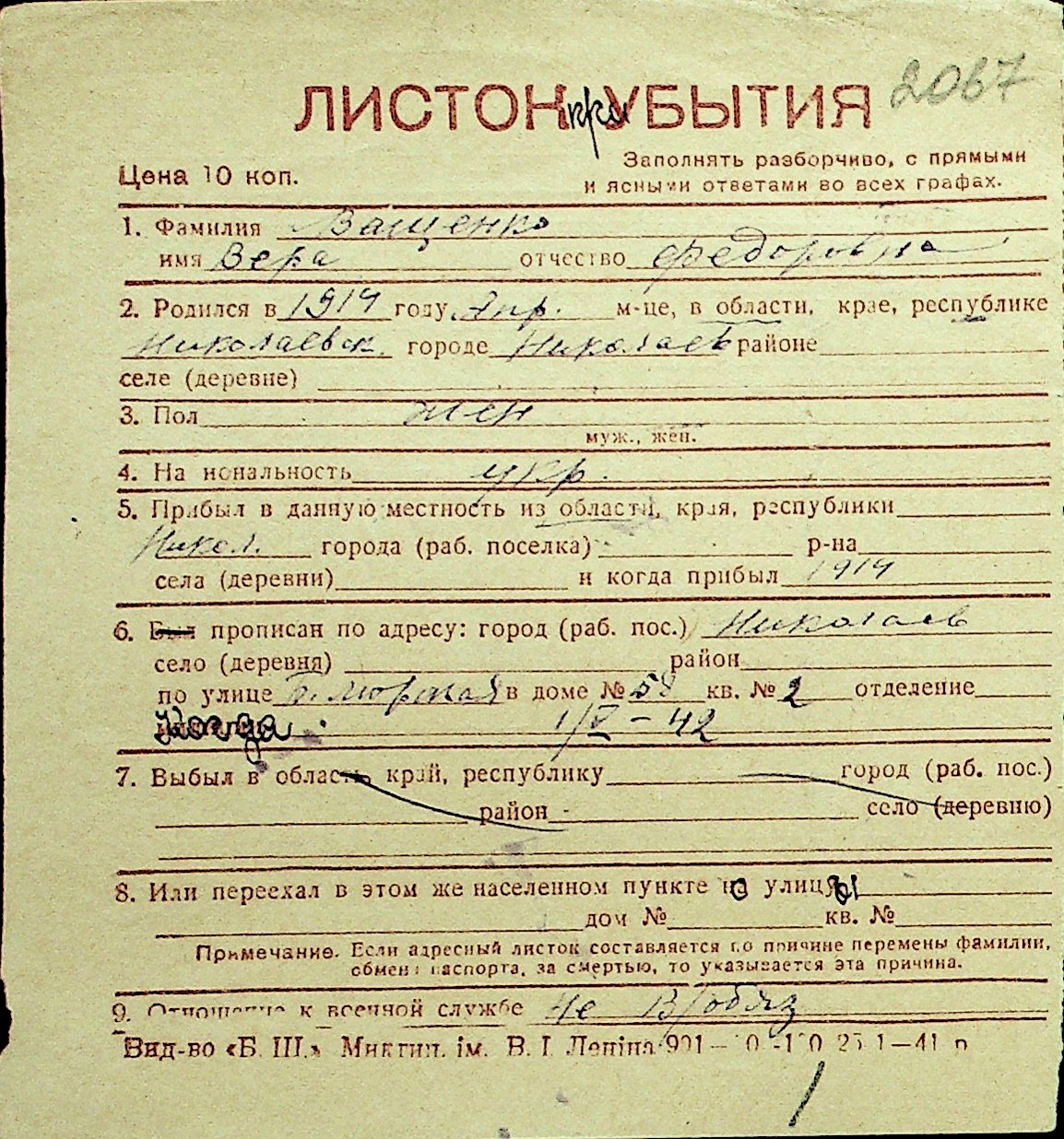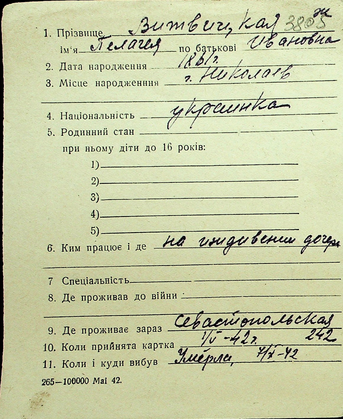 • • Перелік карток до фонду № Н-1016