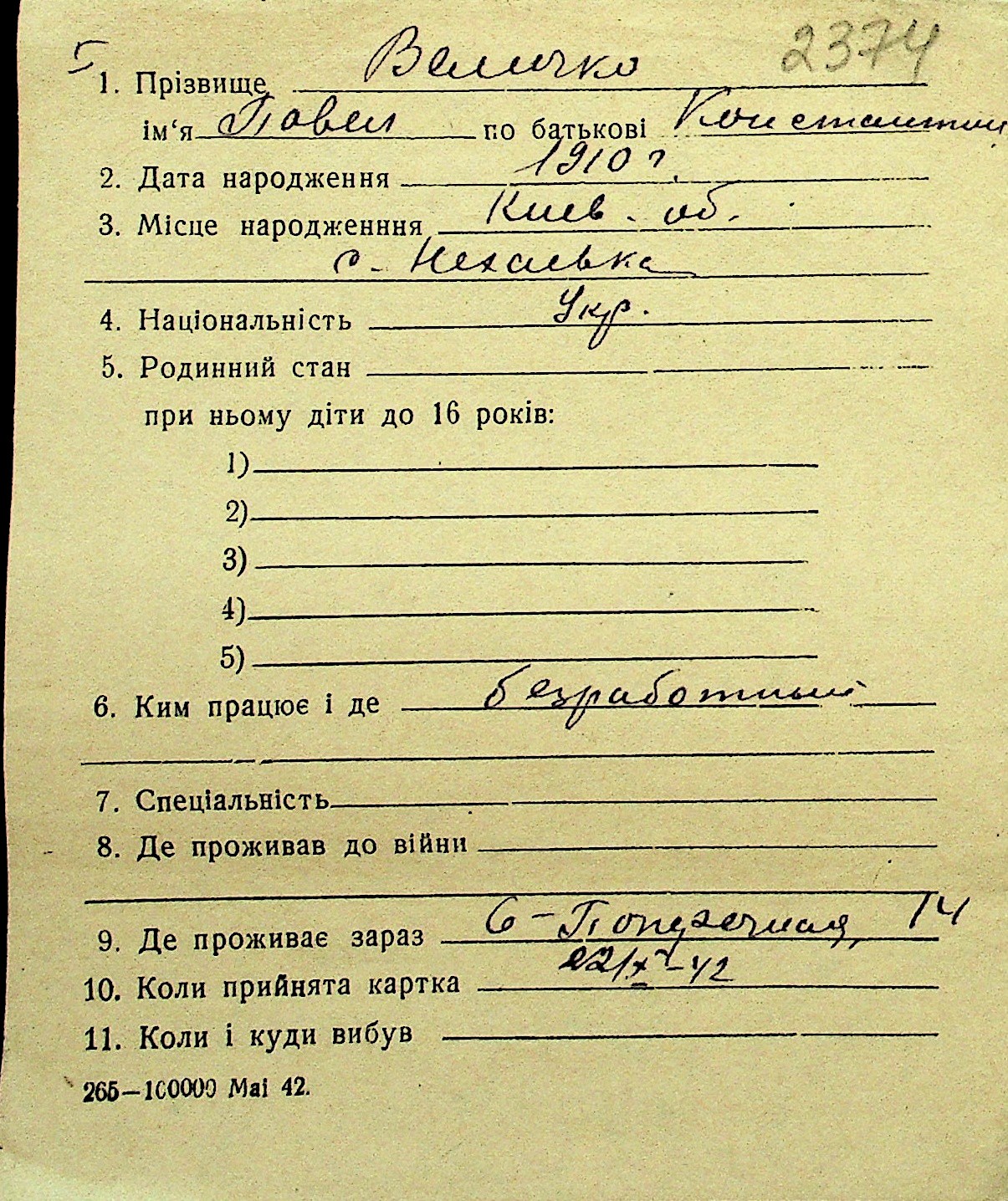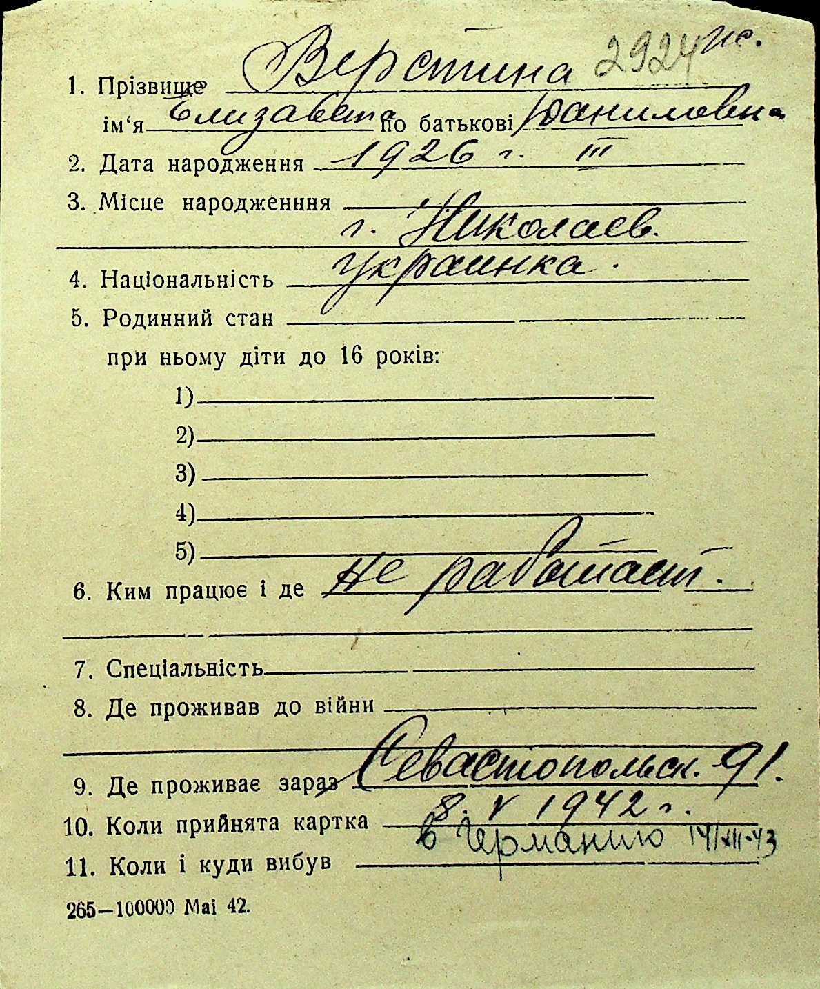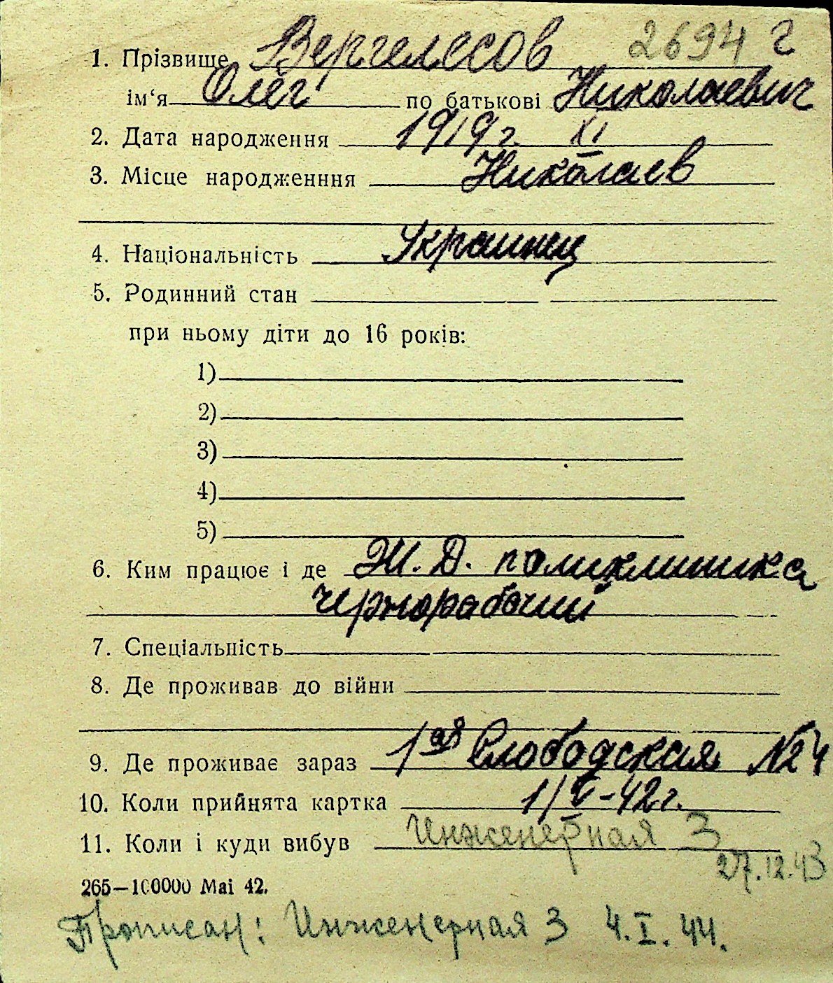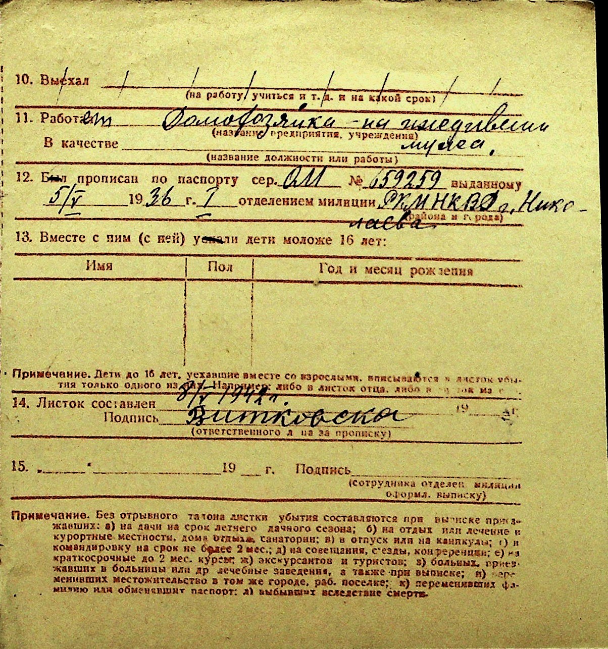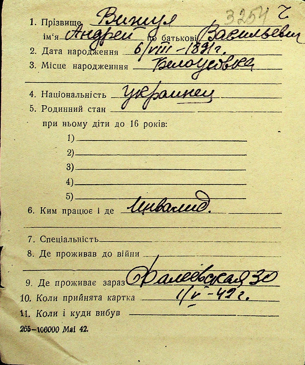 • • Перелік карток до фонду № Н-1016