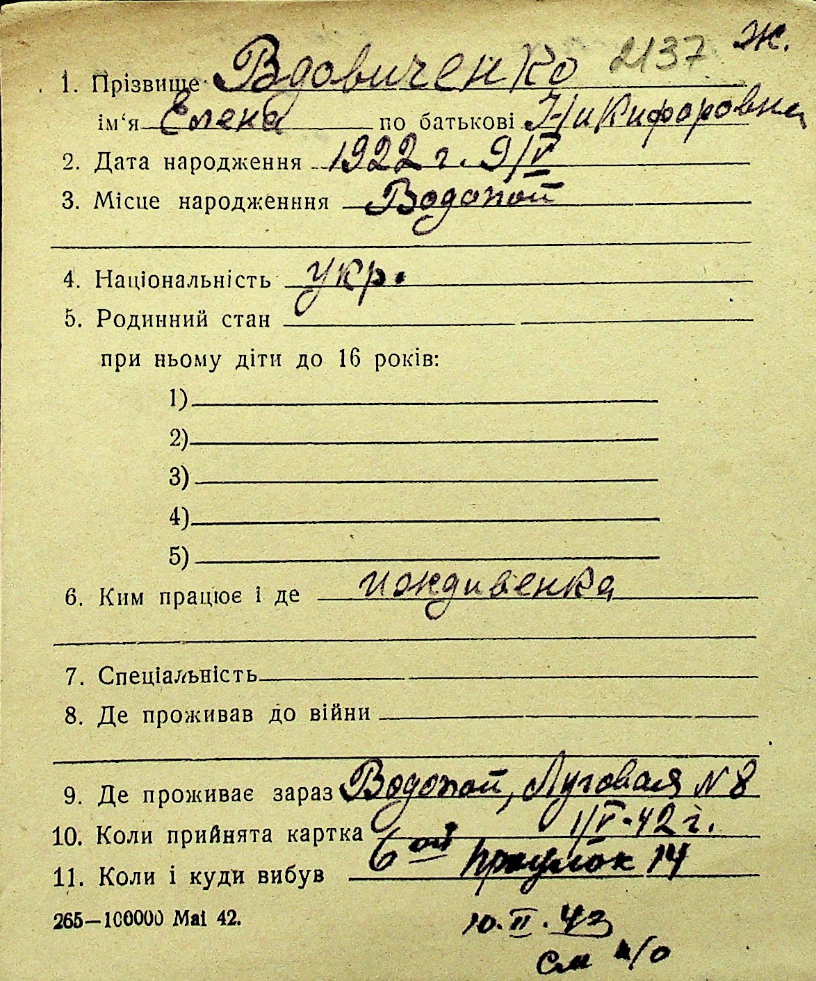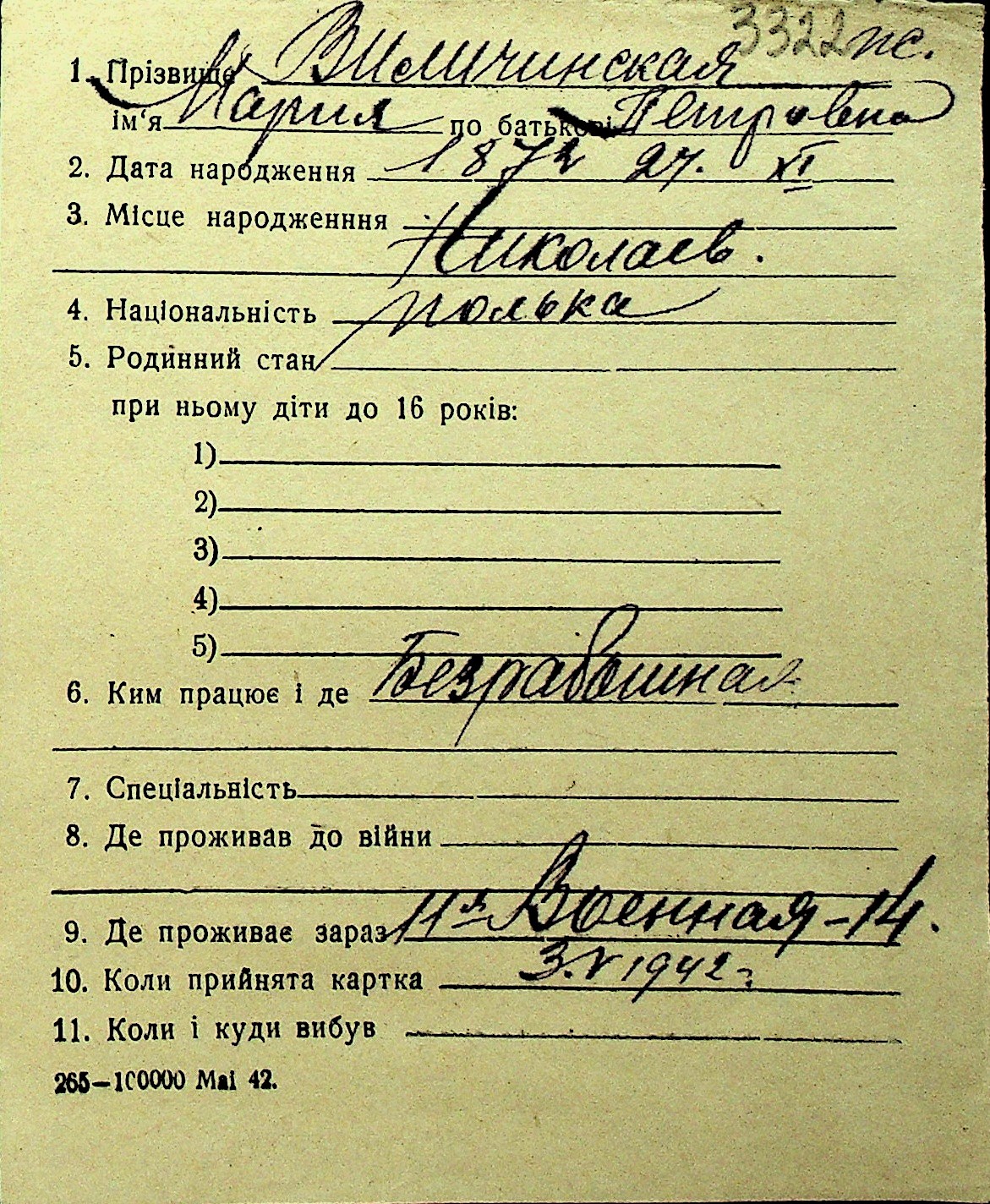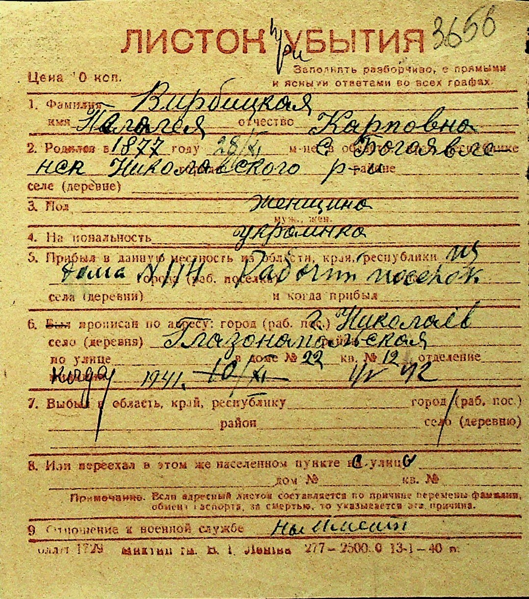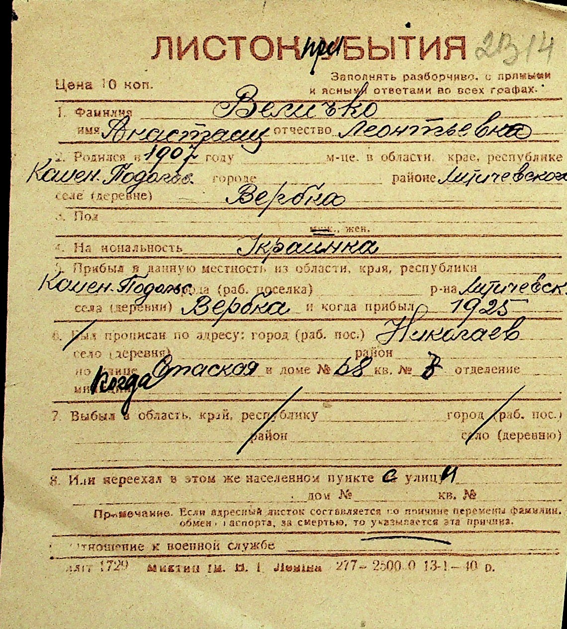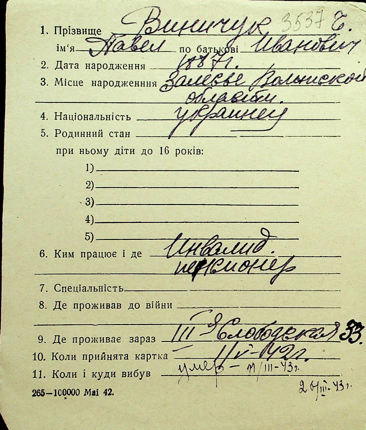 • • Перелік карток до фонду № Н-1016