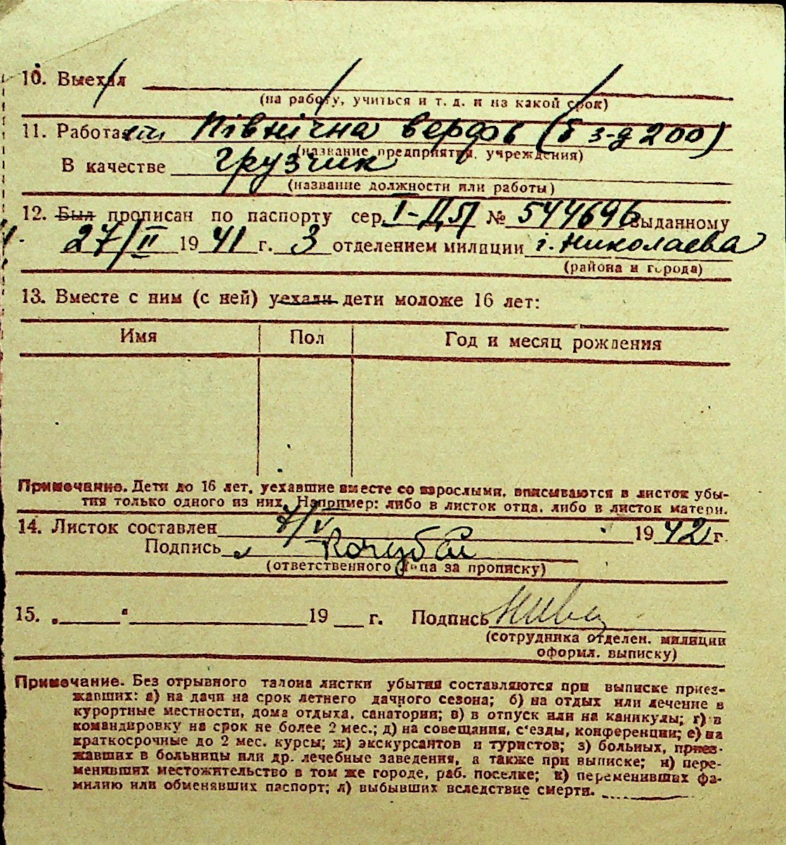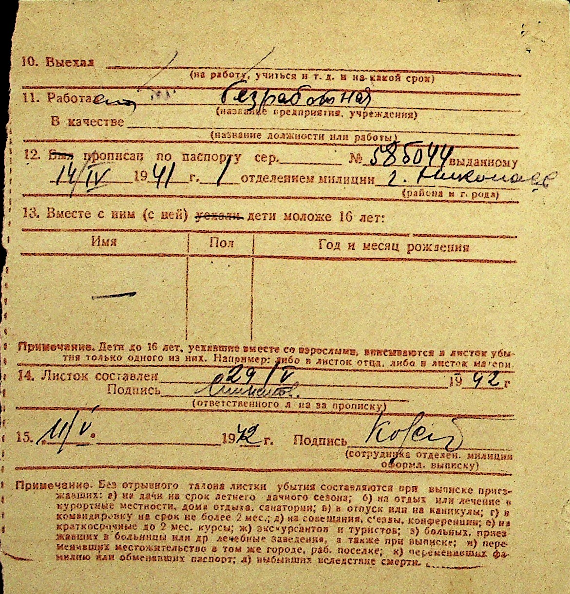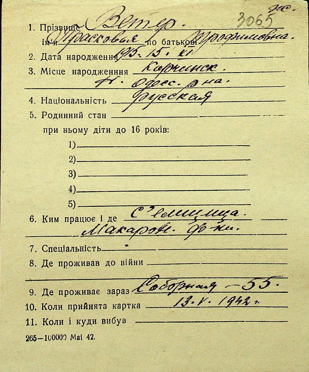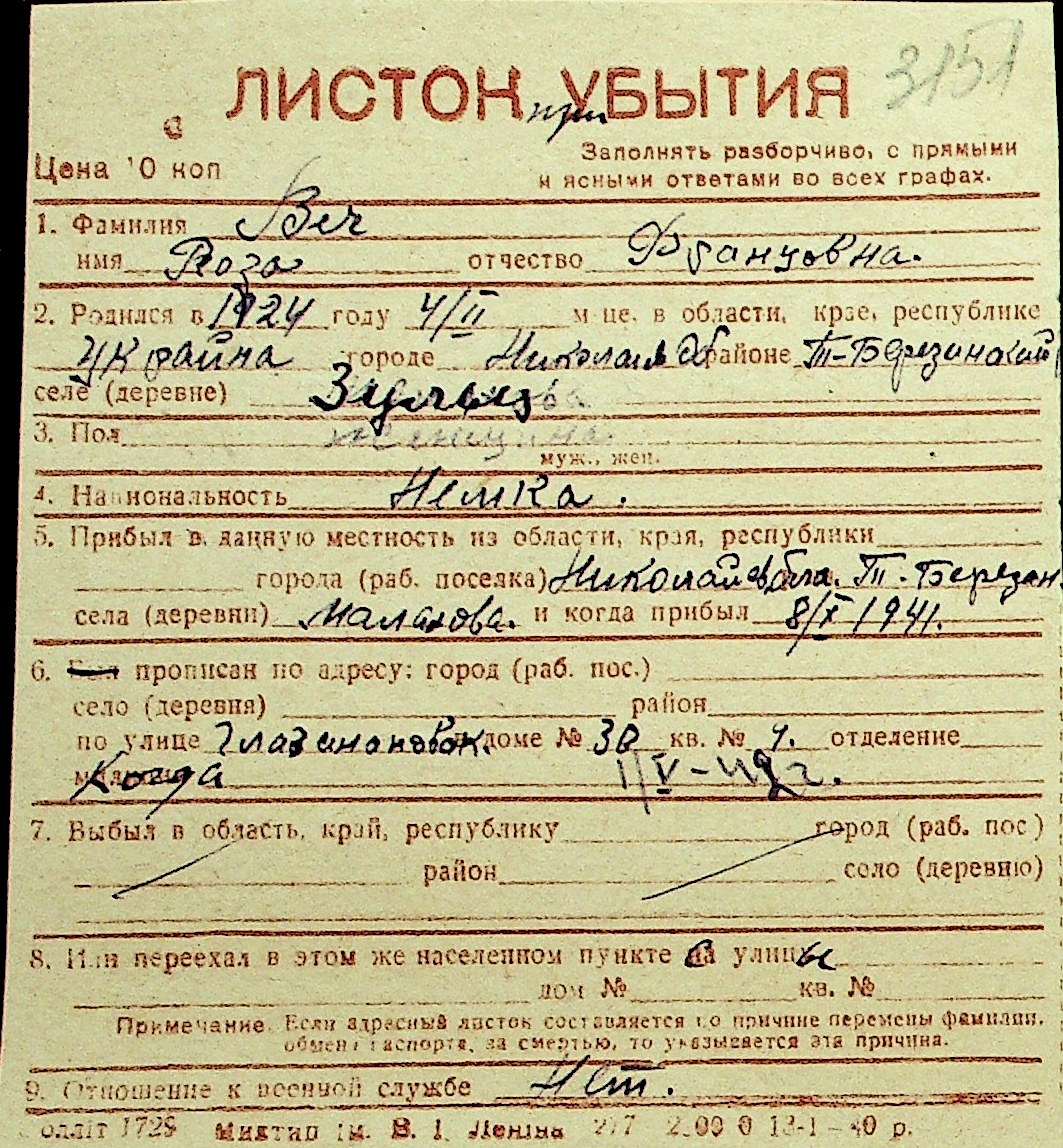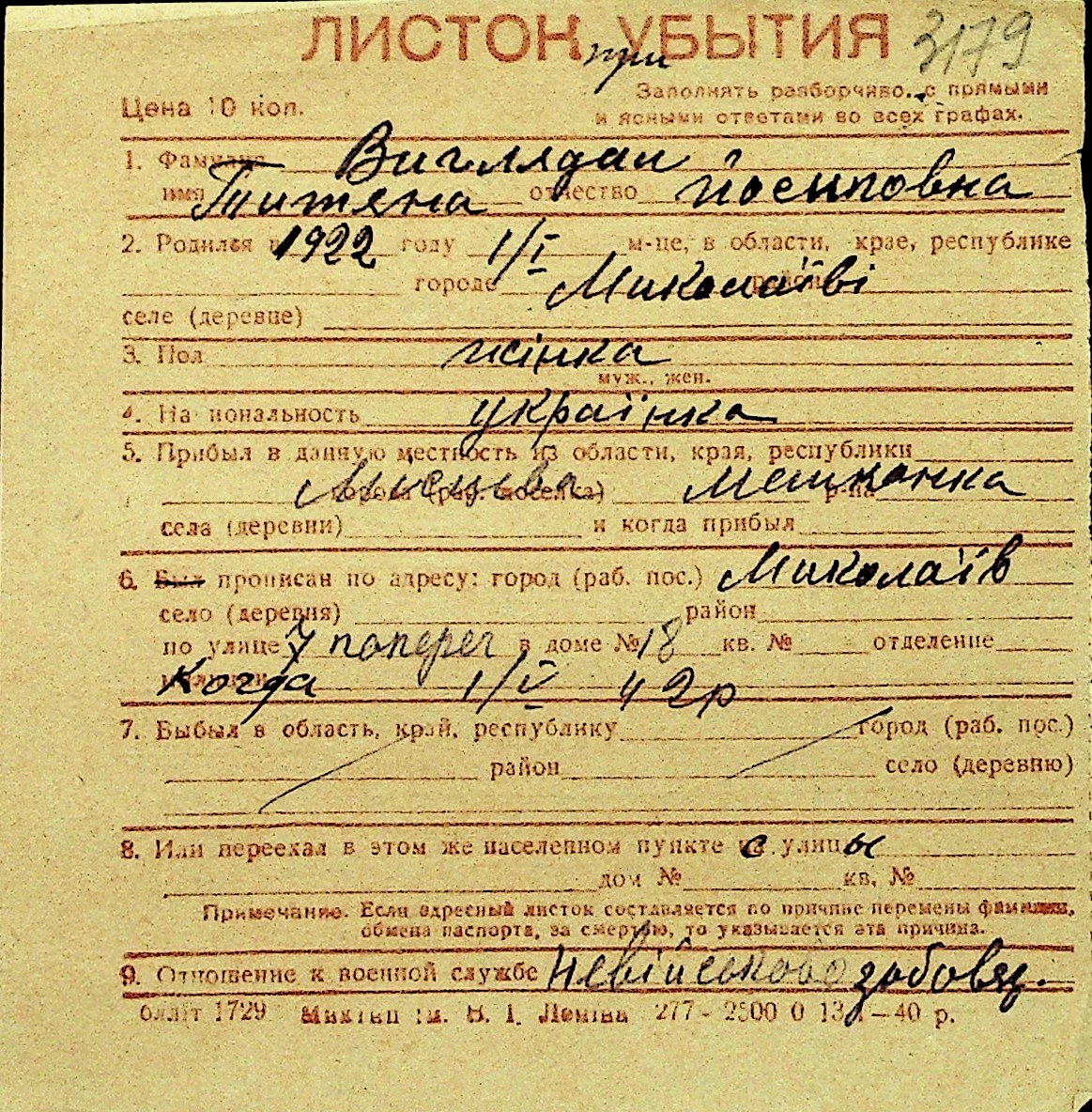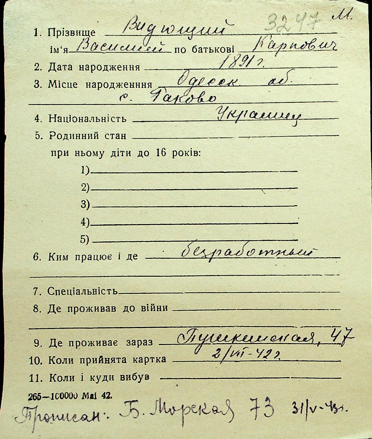• • Перелік карток до фонду № Н-1016