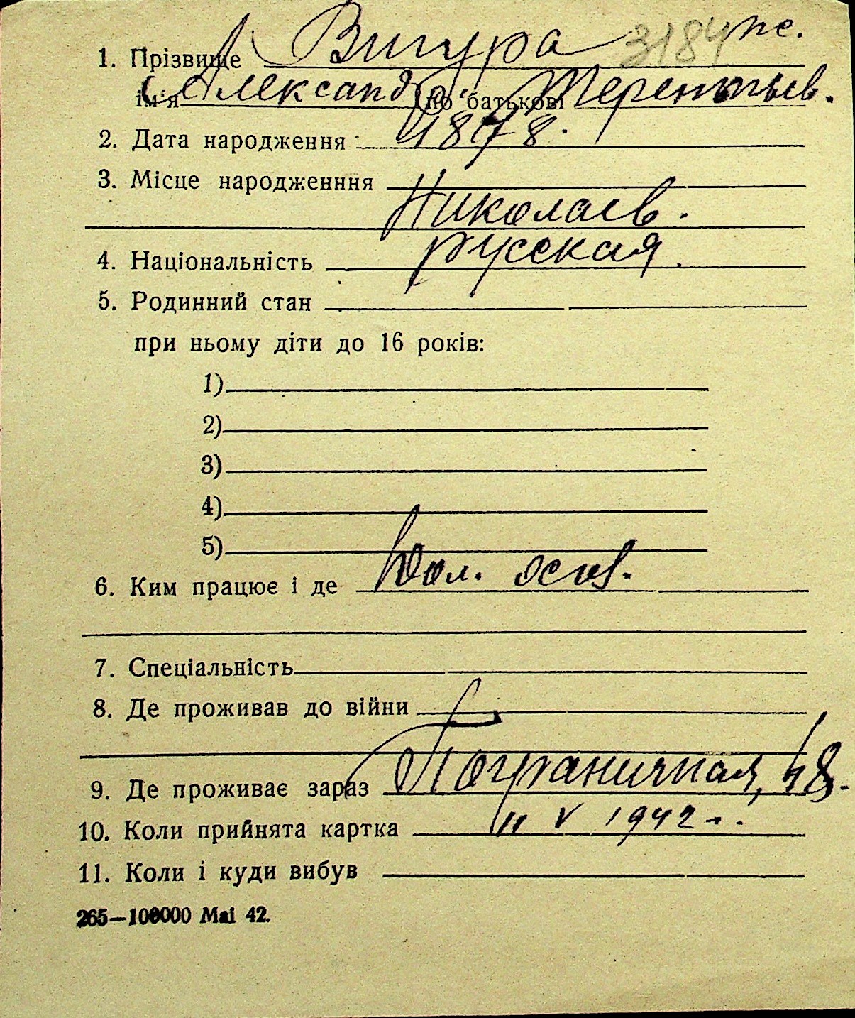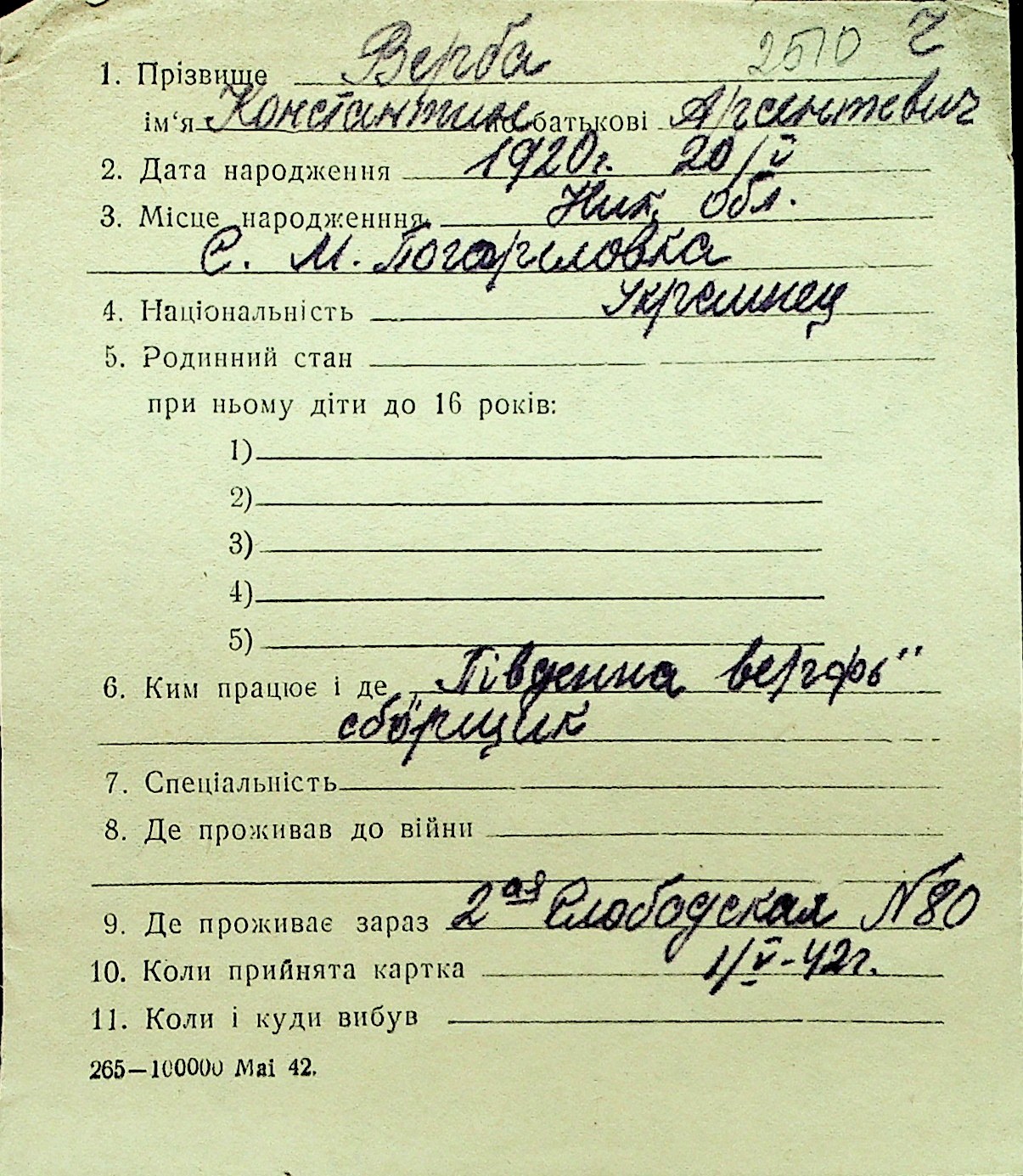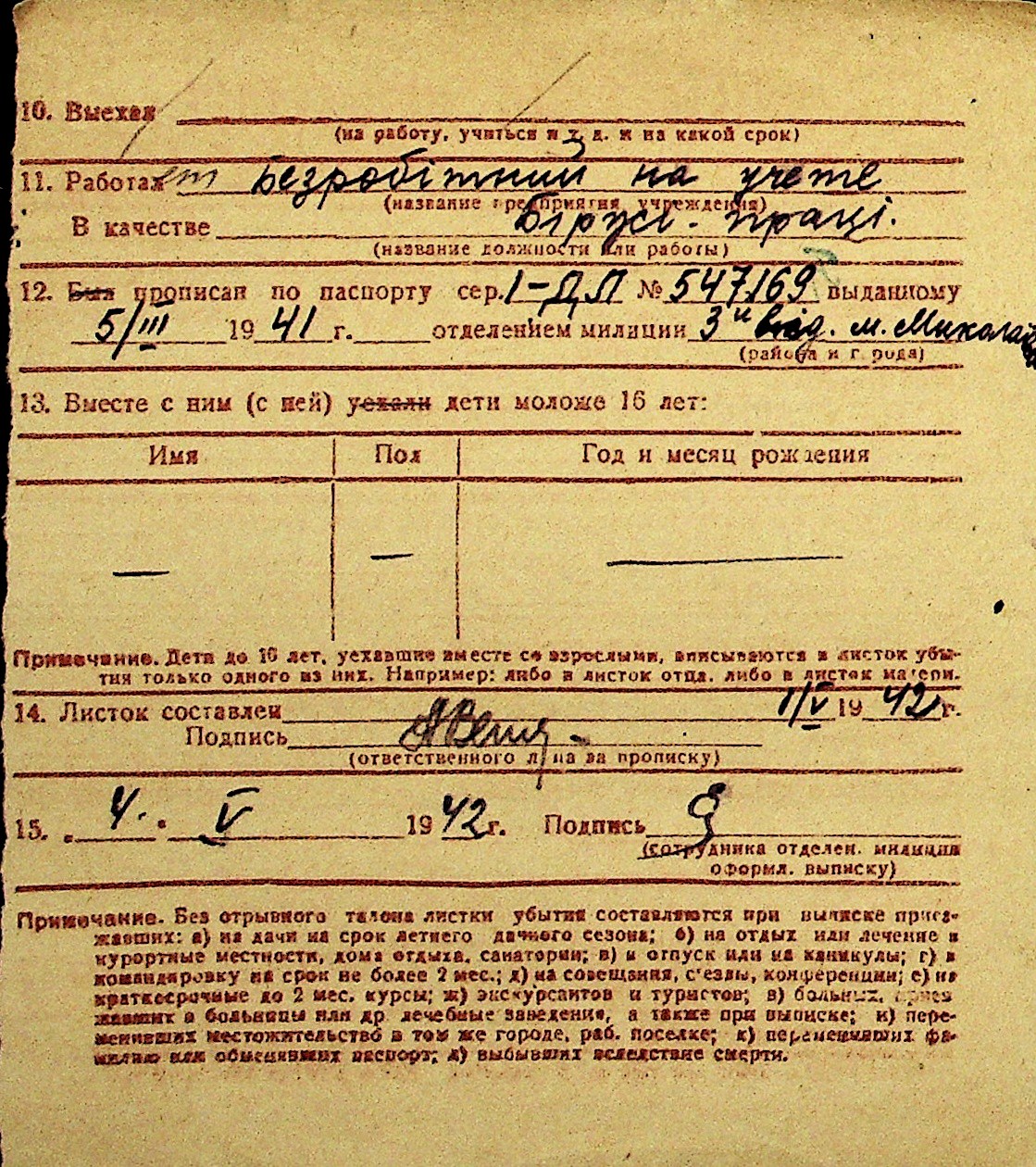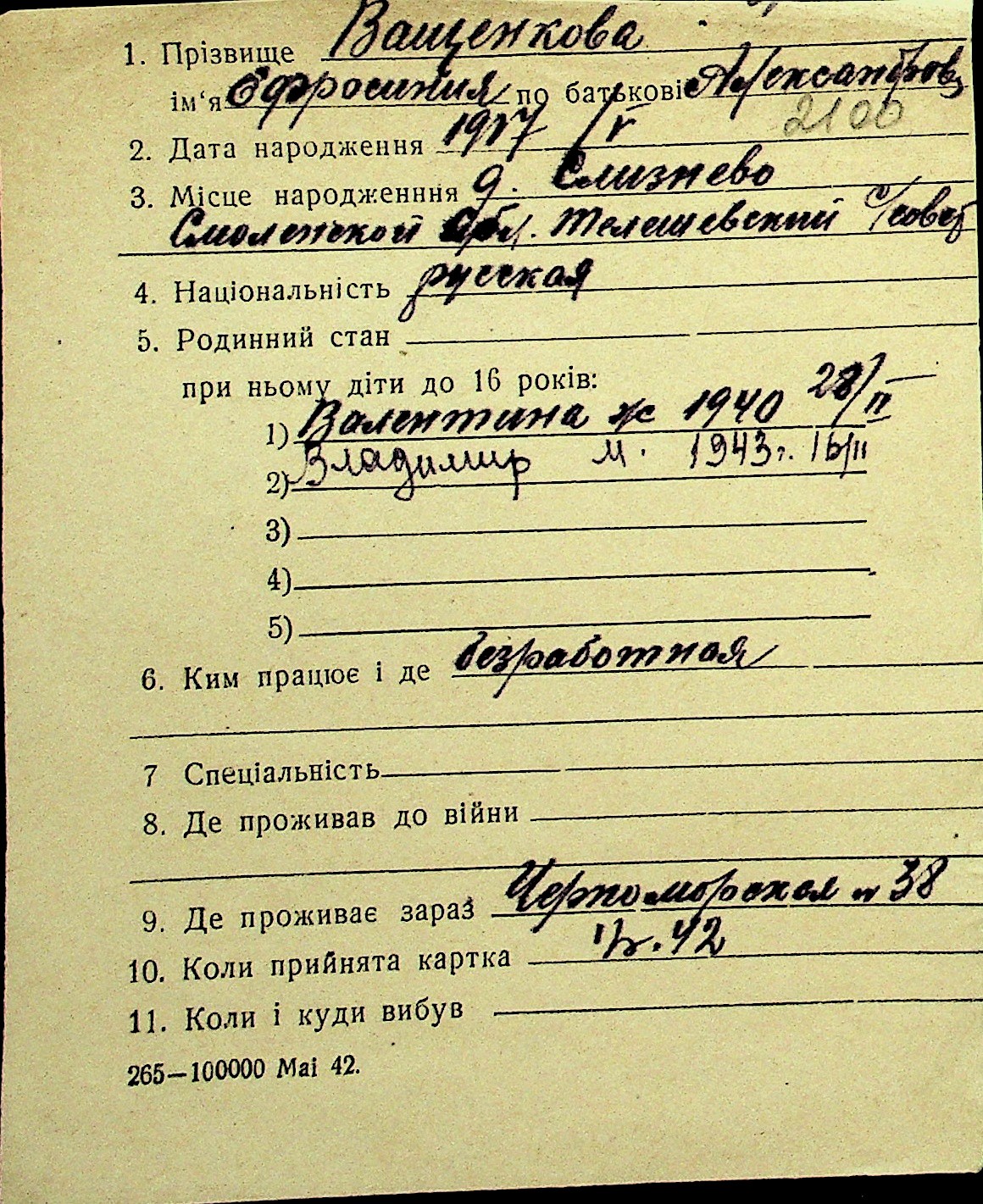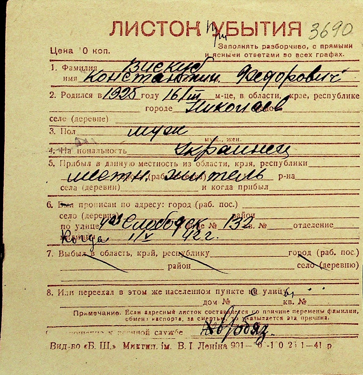 • • Перелік карток до фонду № Н-1016