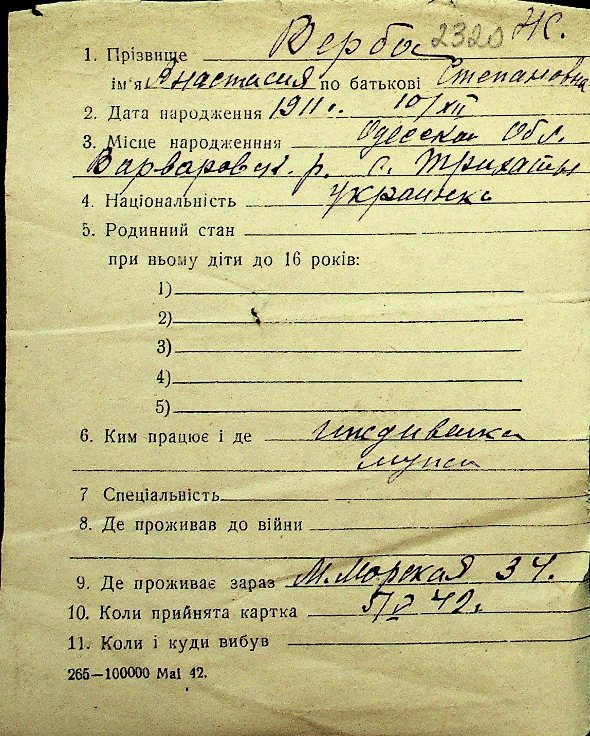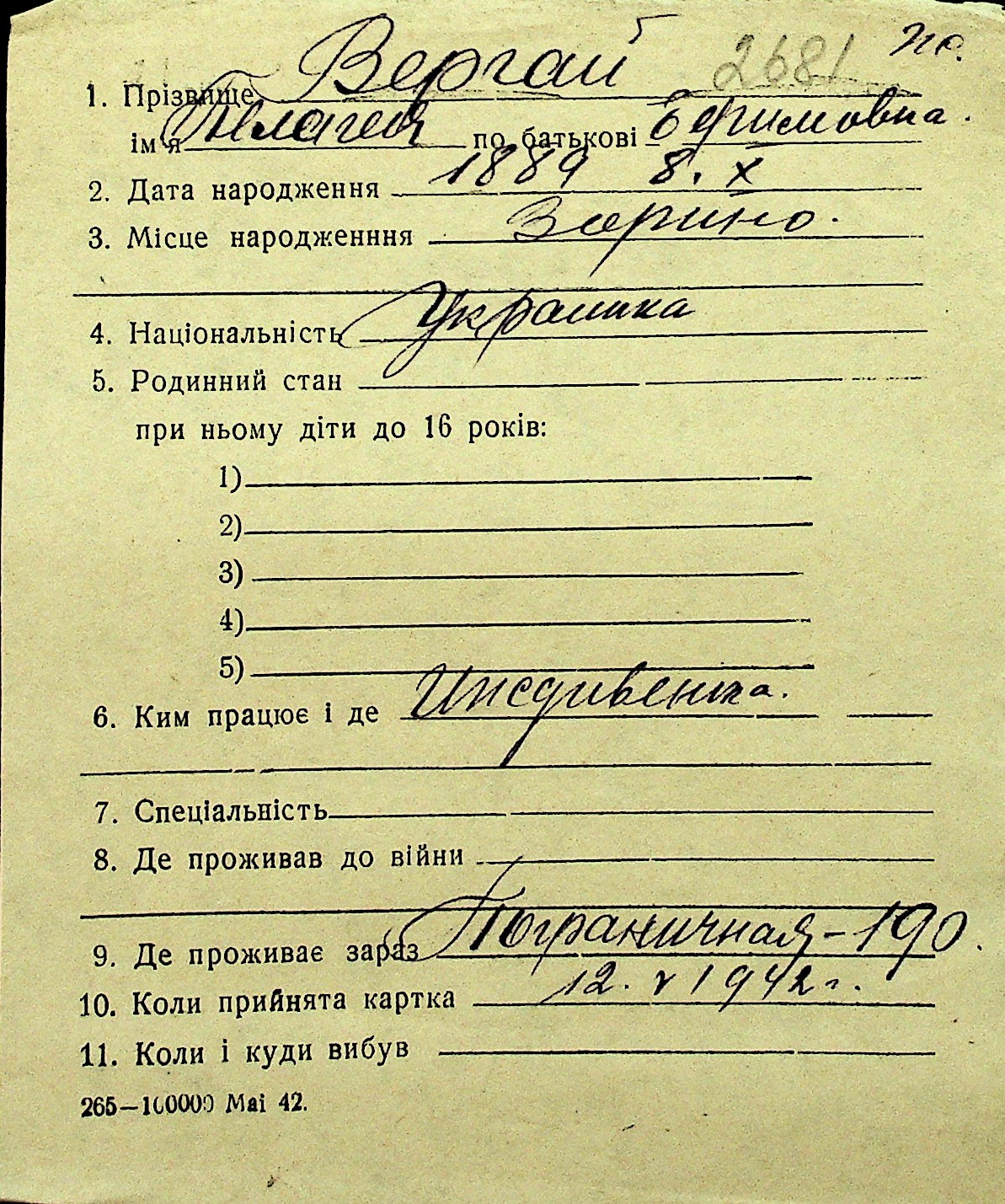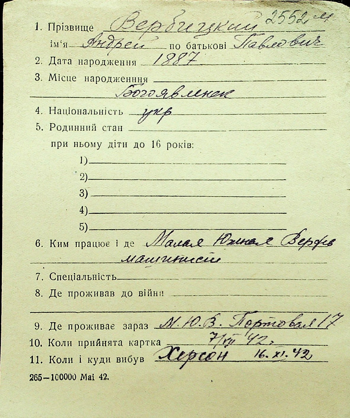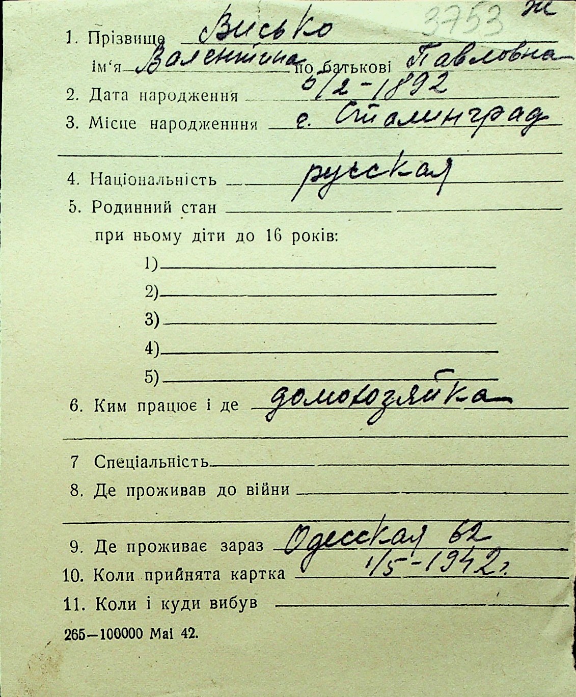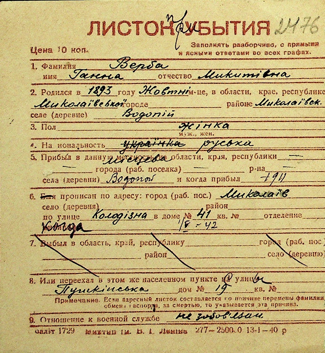 • • Перелік карток до фонду № Н-1016