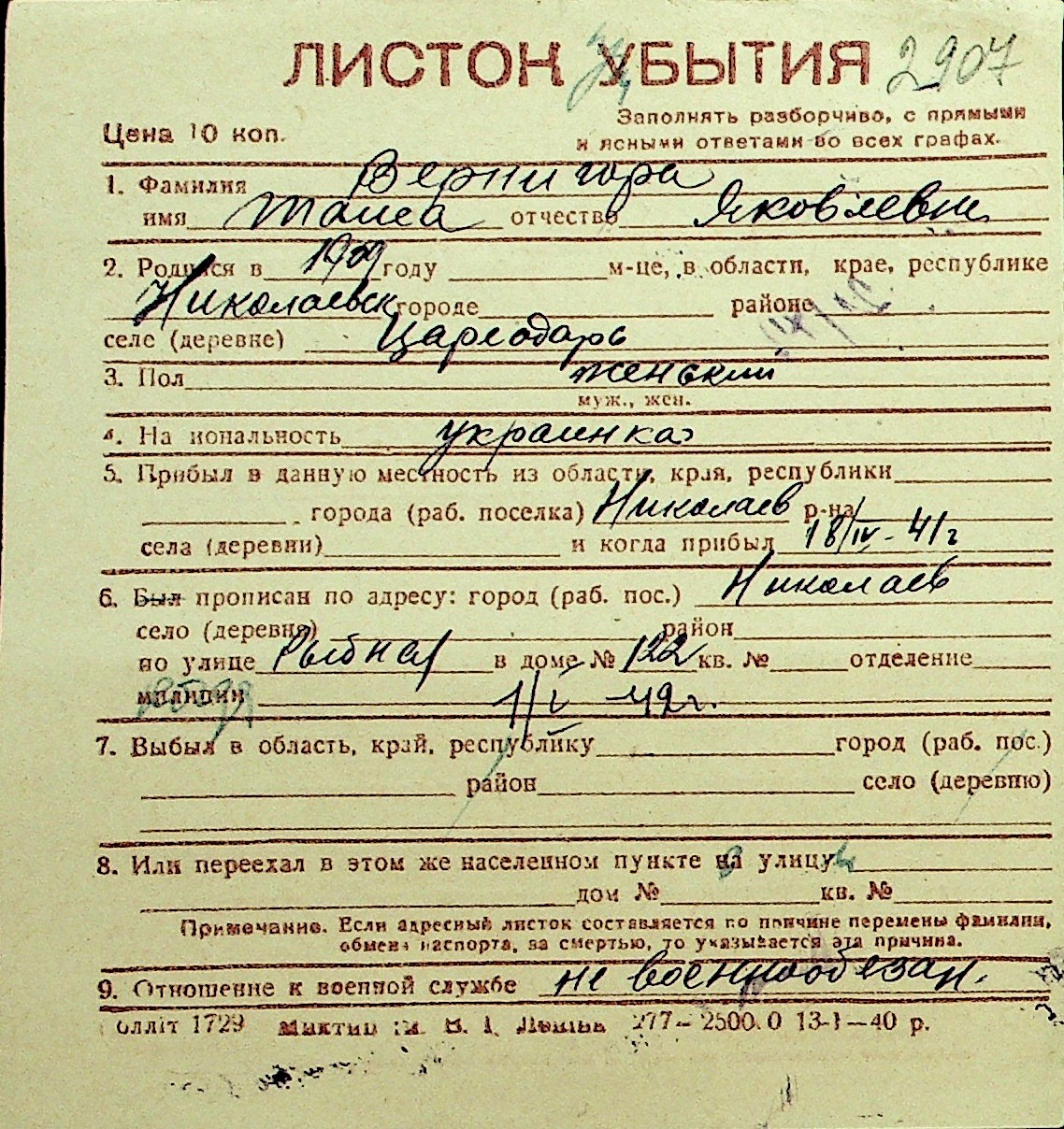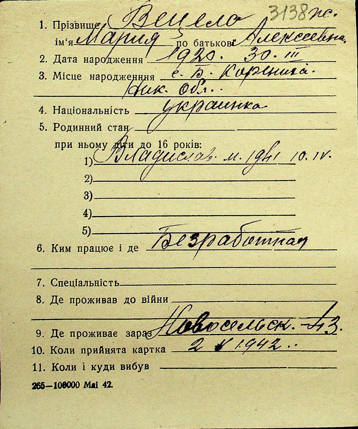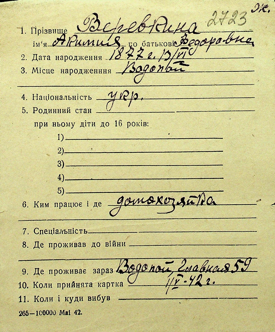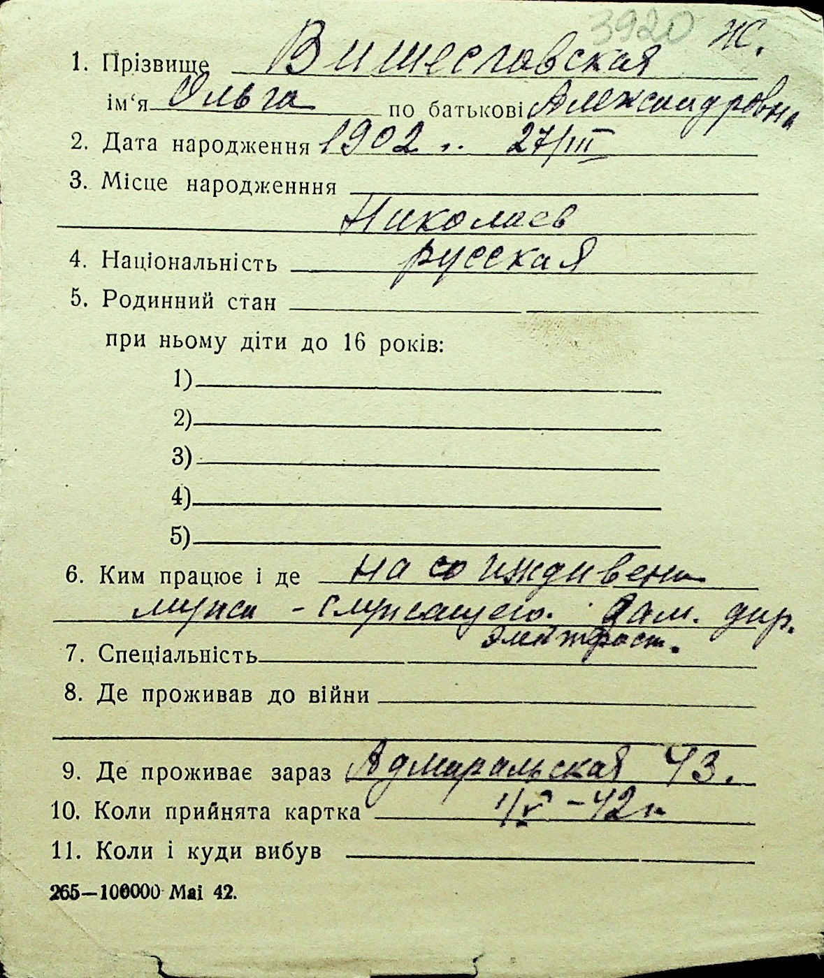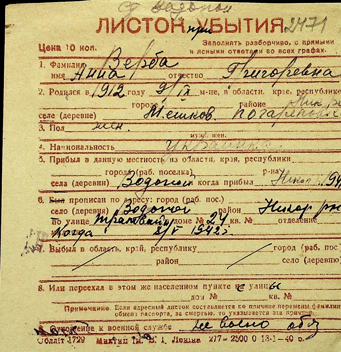 • • Перелік карток до фонду № Н-1016