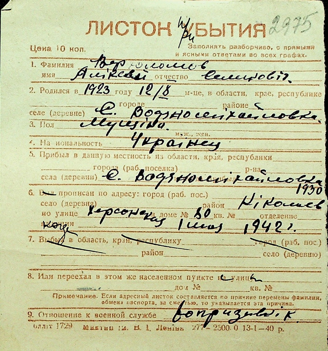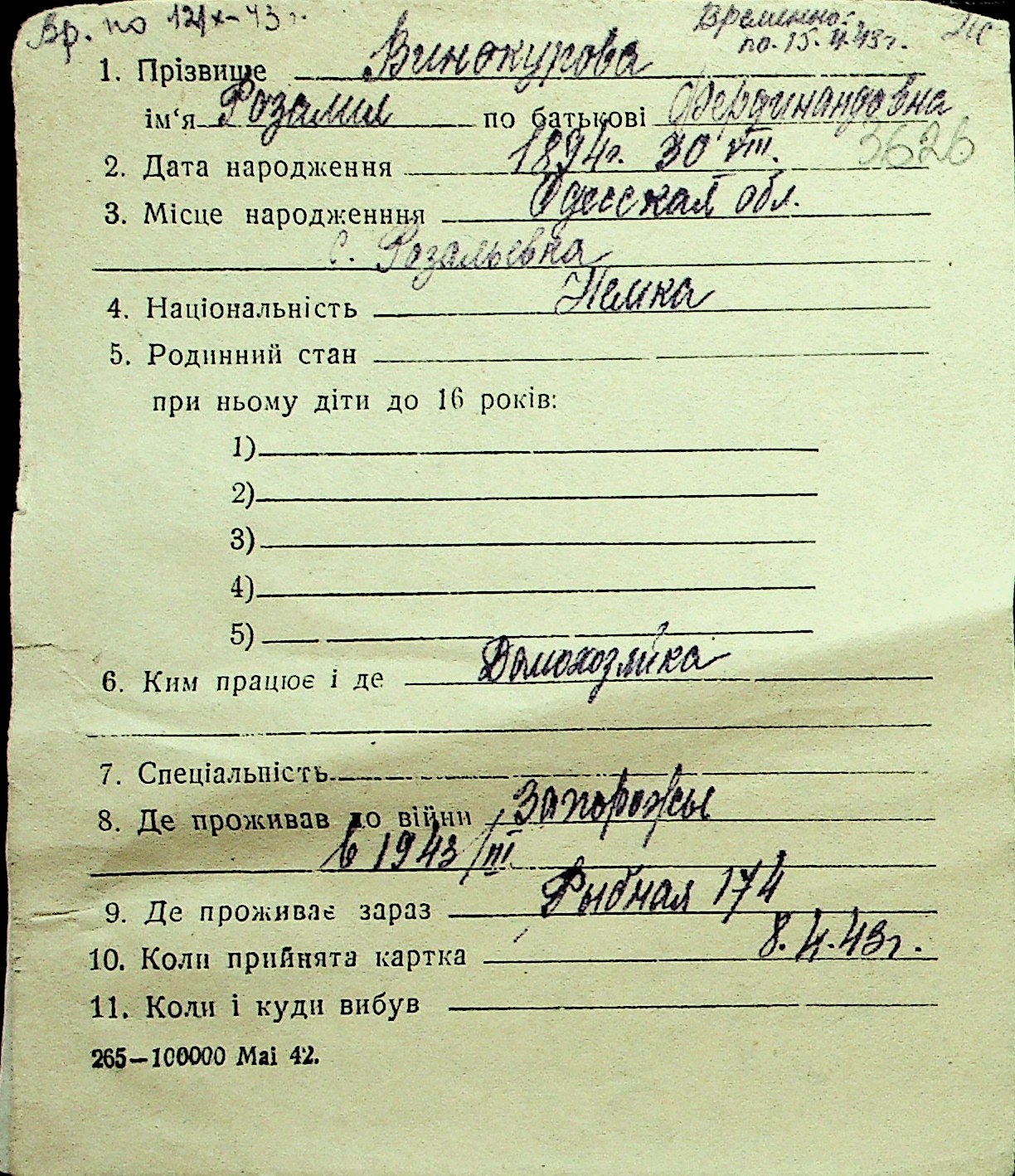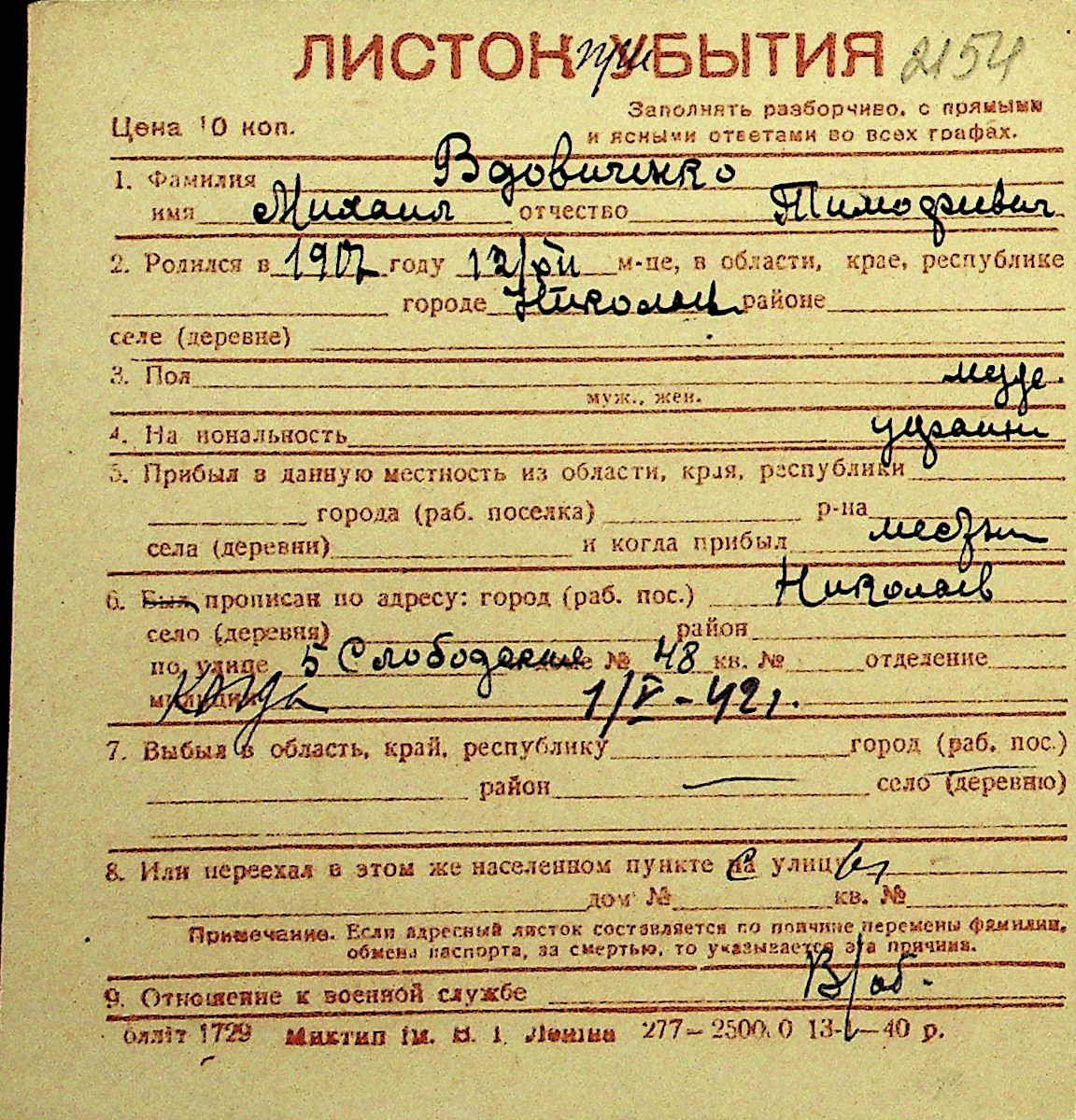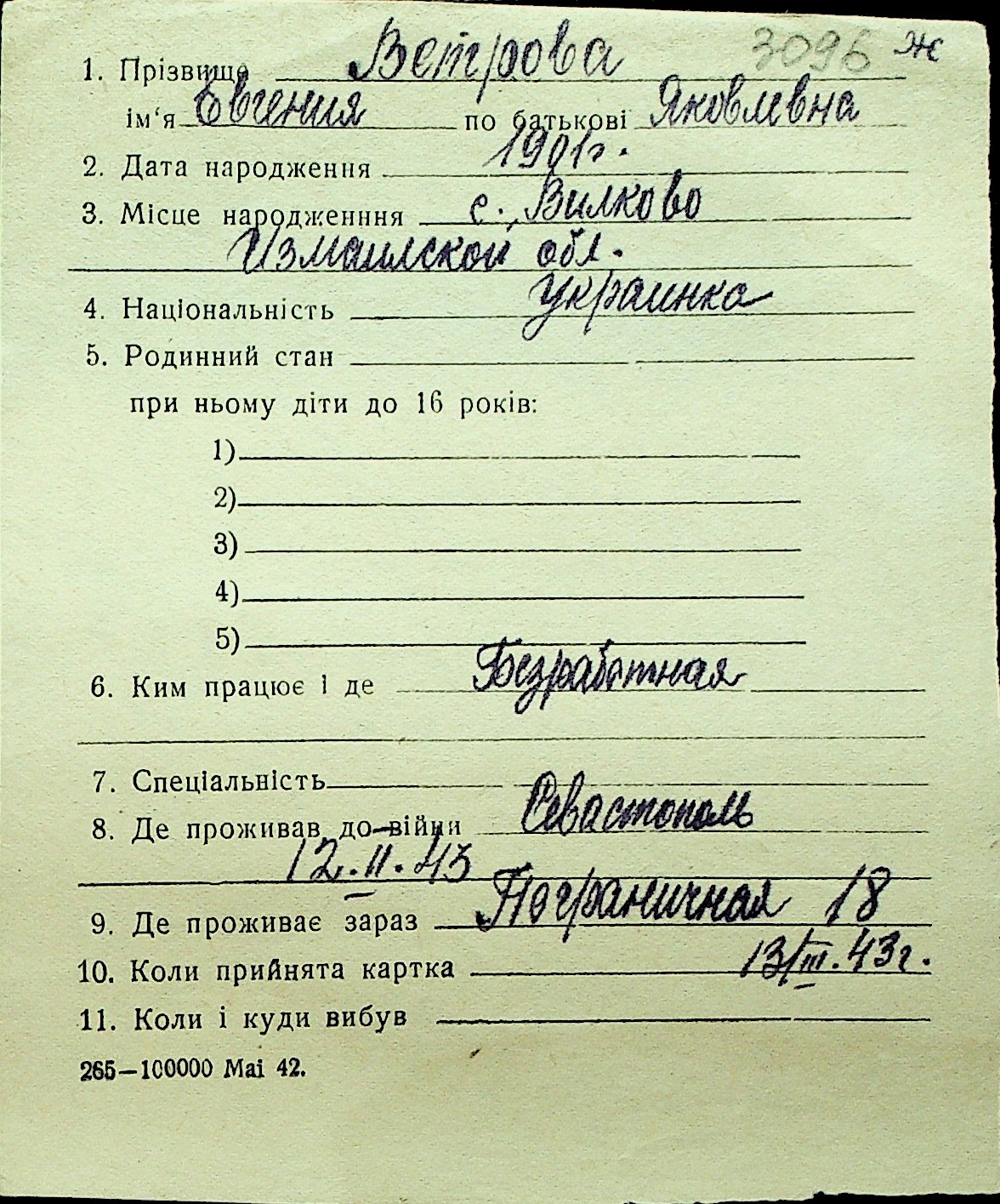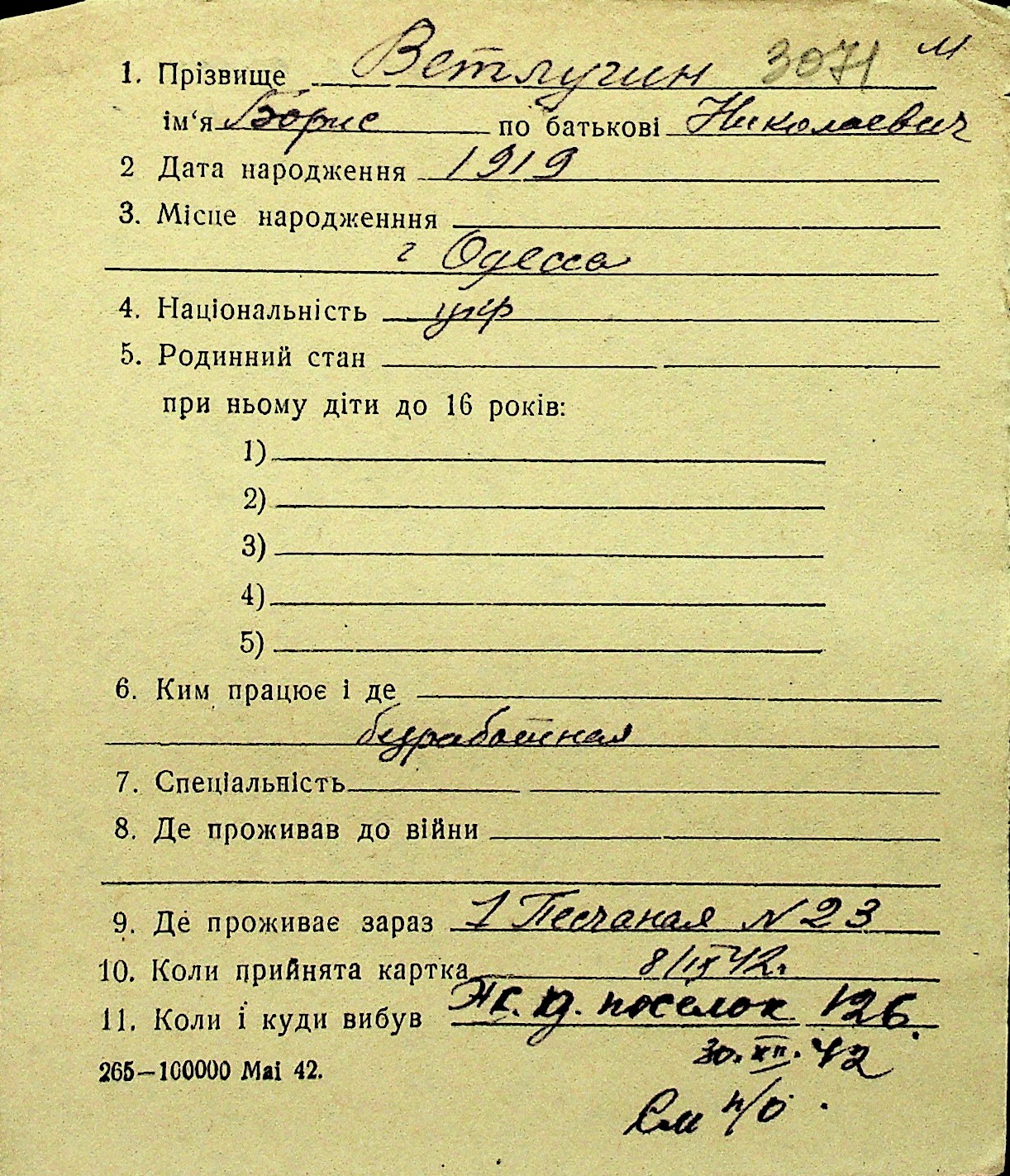 • • Перелік карток до фонду № Н-1016