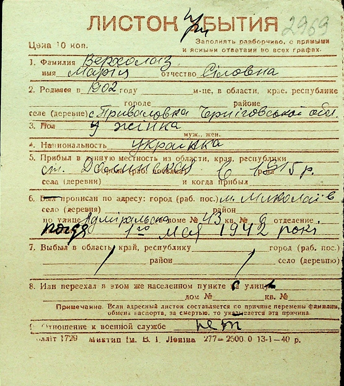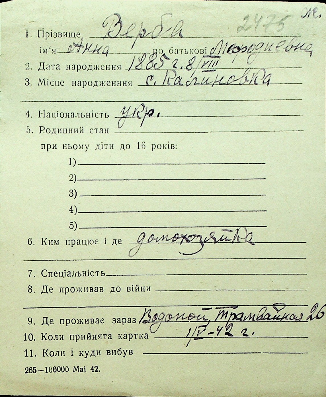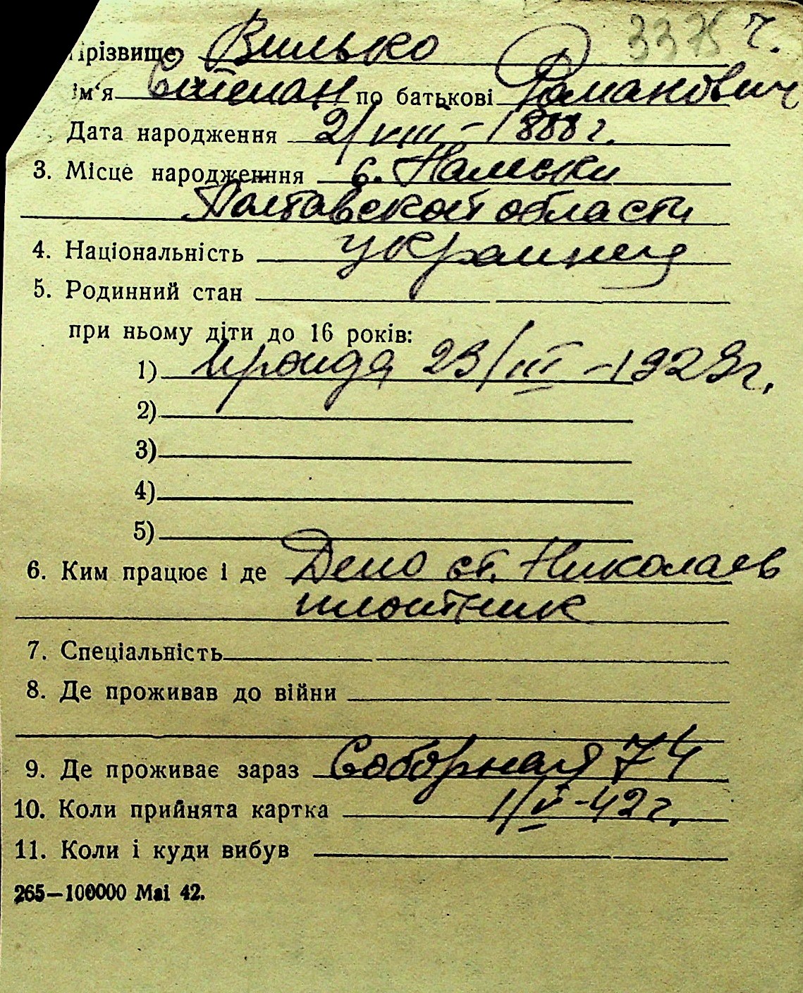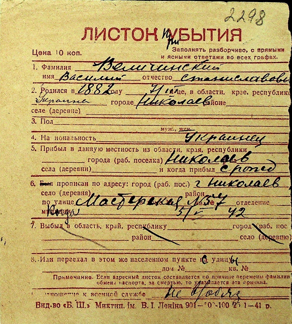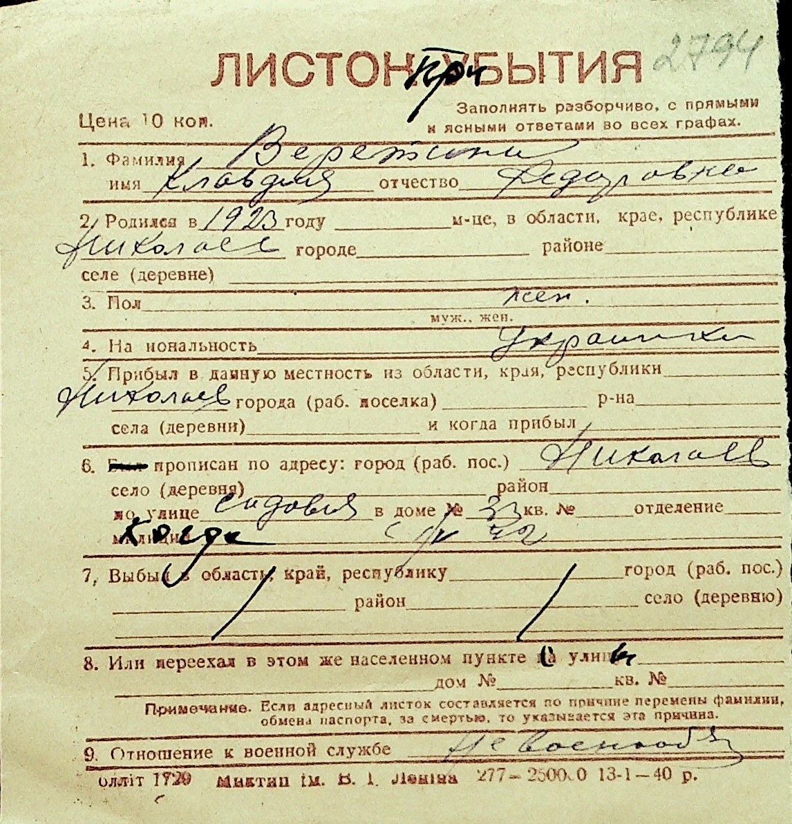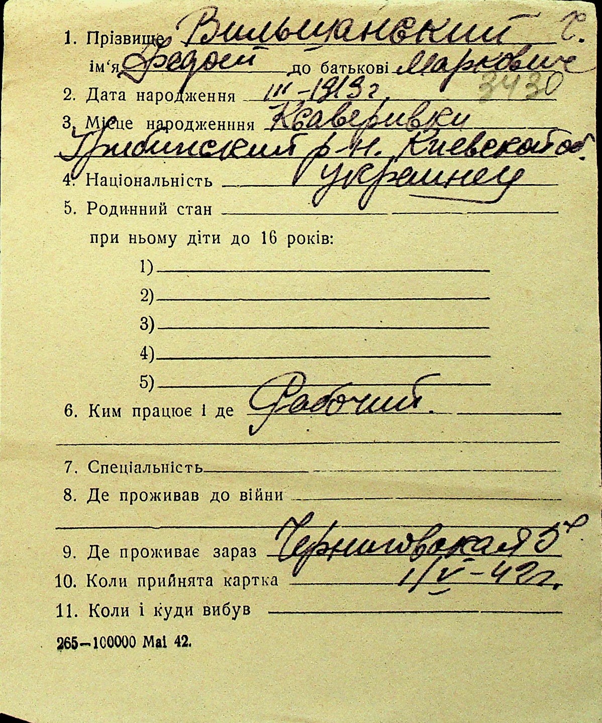 • • Перелік карток до фонду № Н-1016