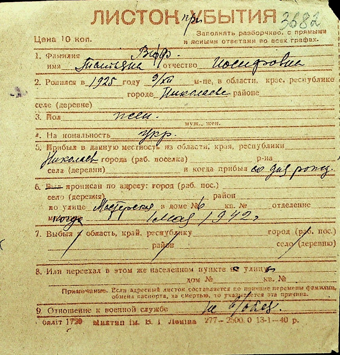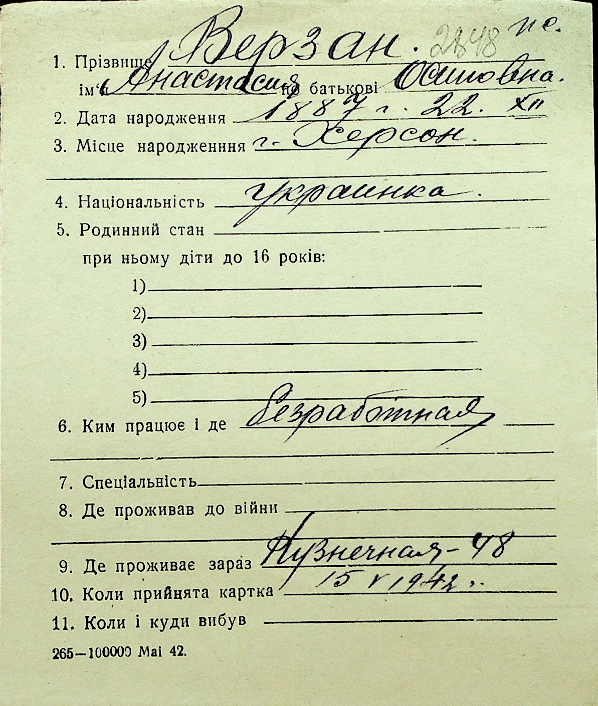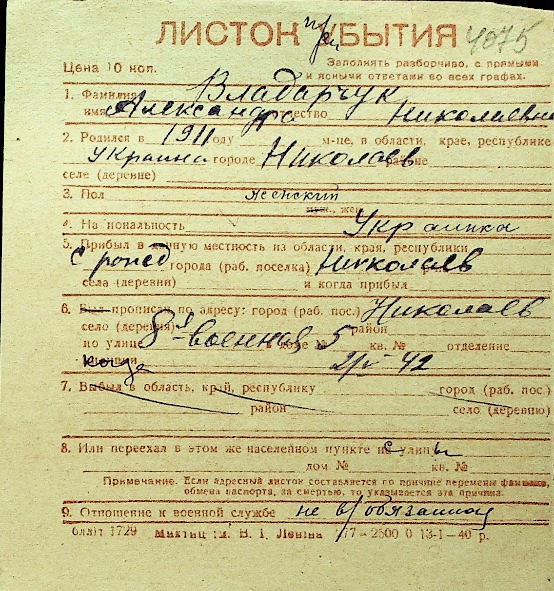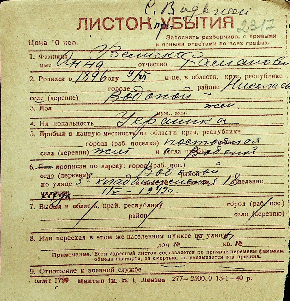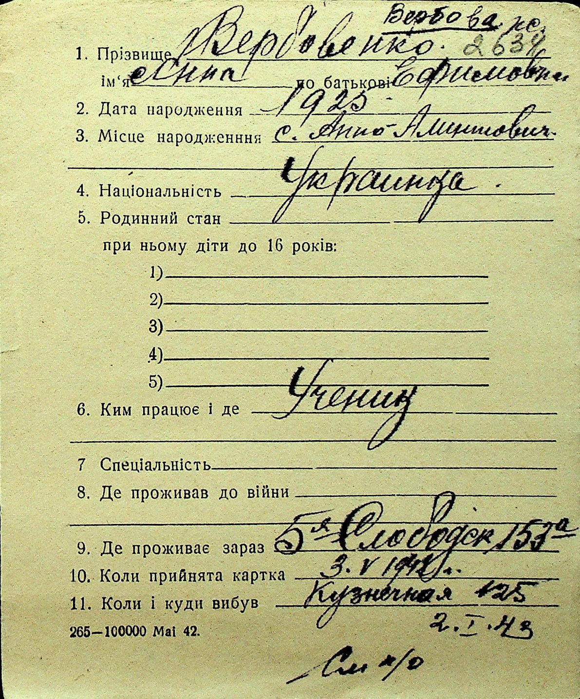 • • Перелік карток до фонду № Н-1016