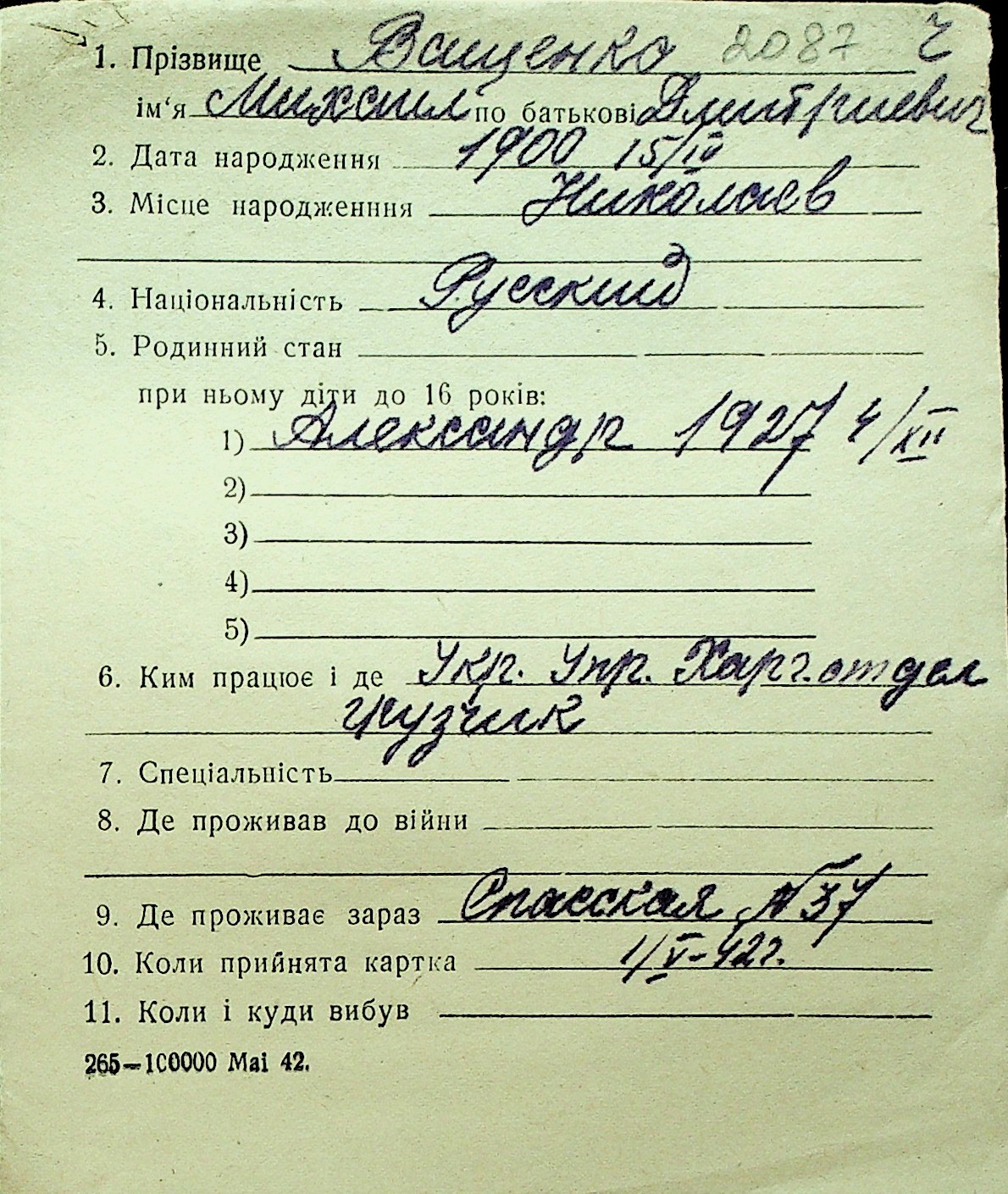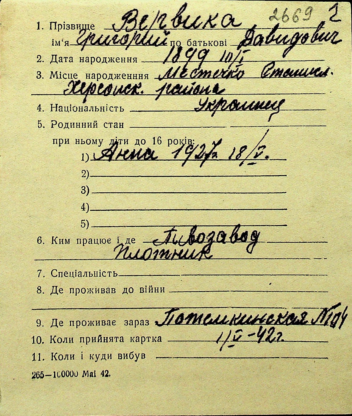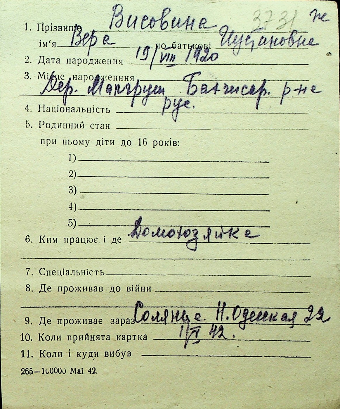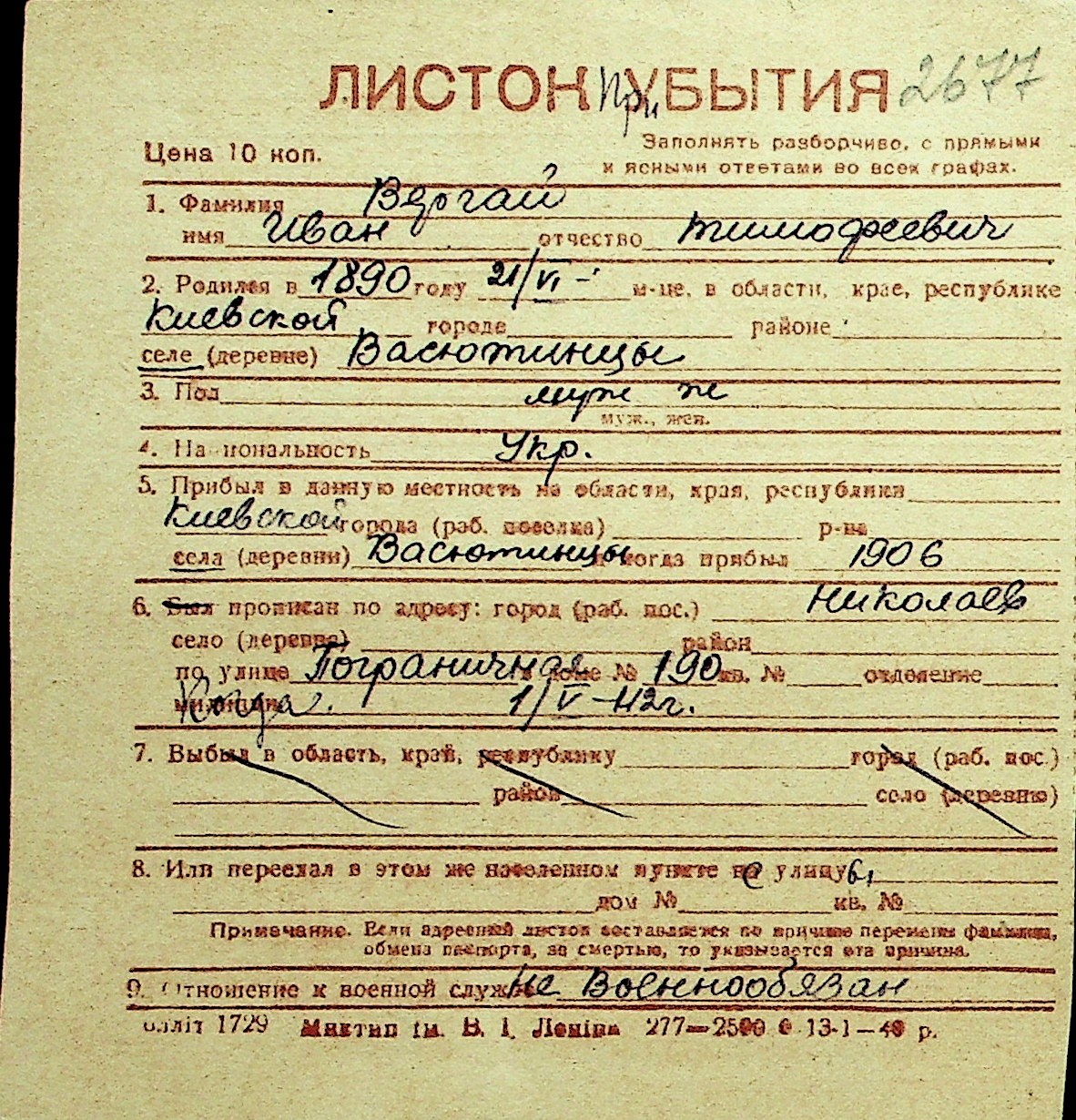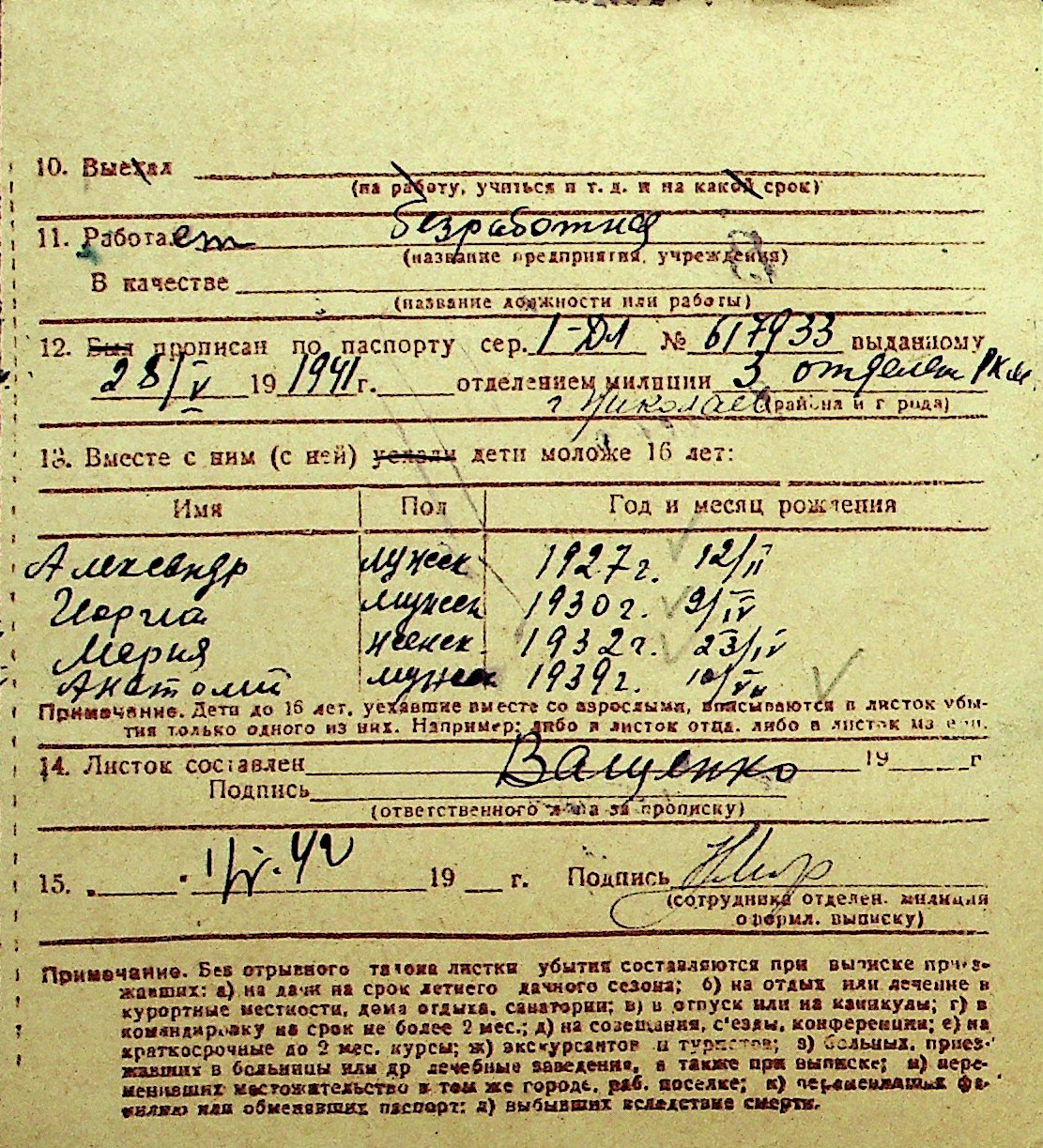 • • Перелік карток до фонду № Н-1016
