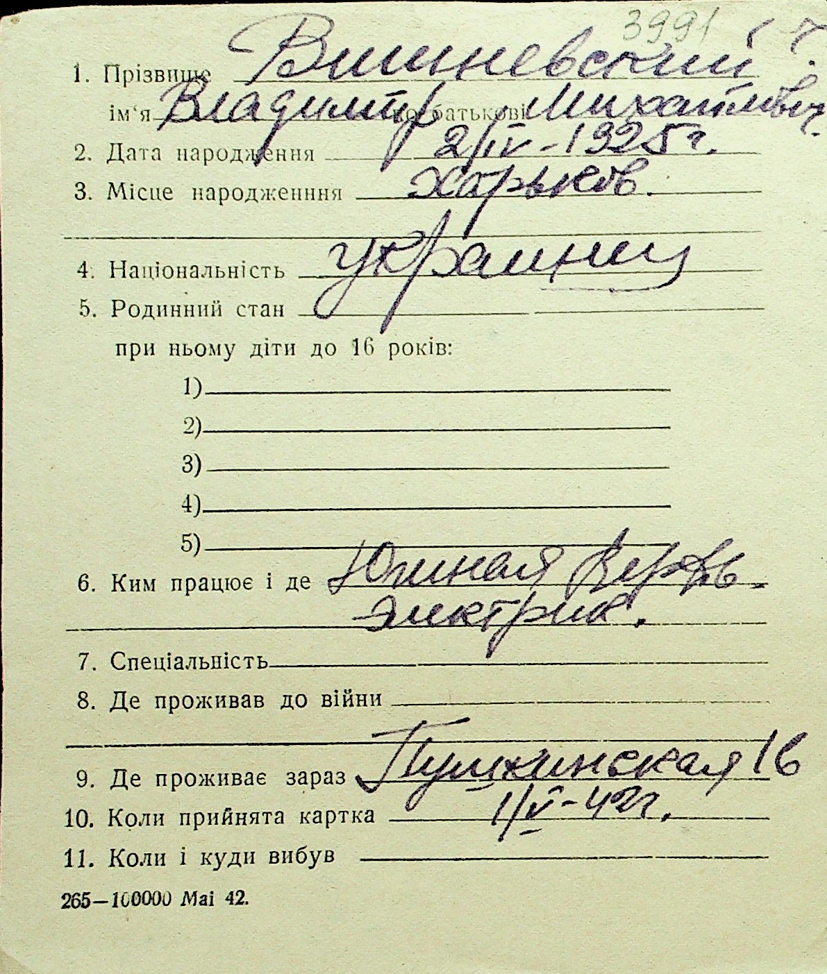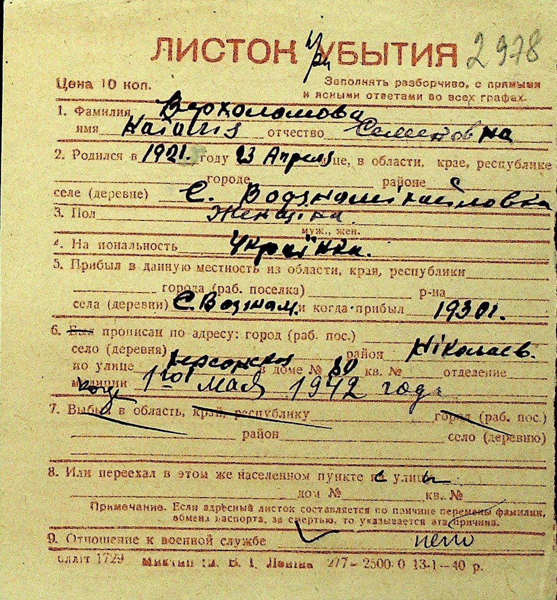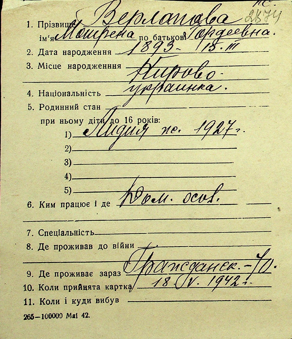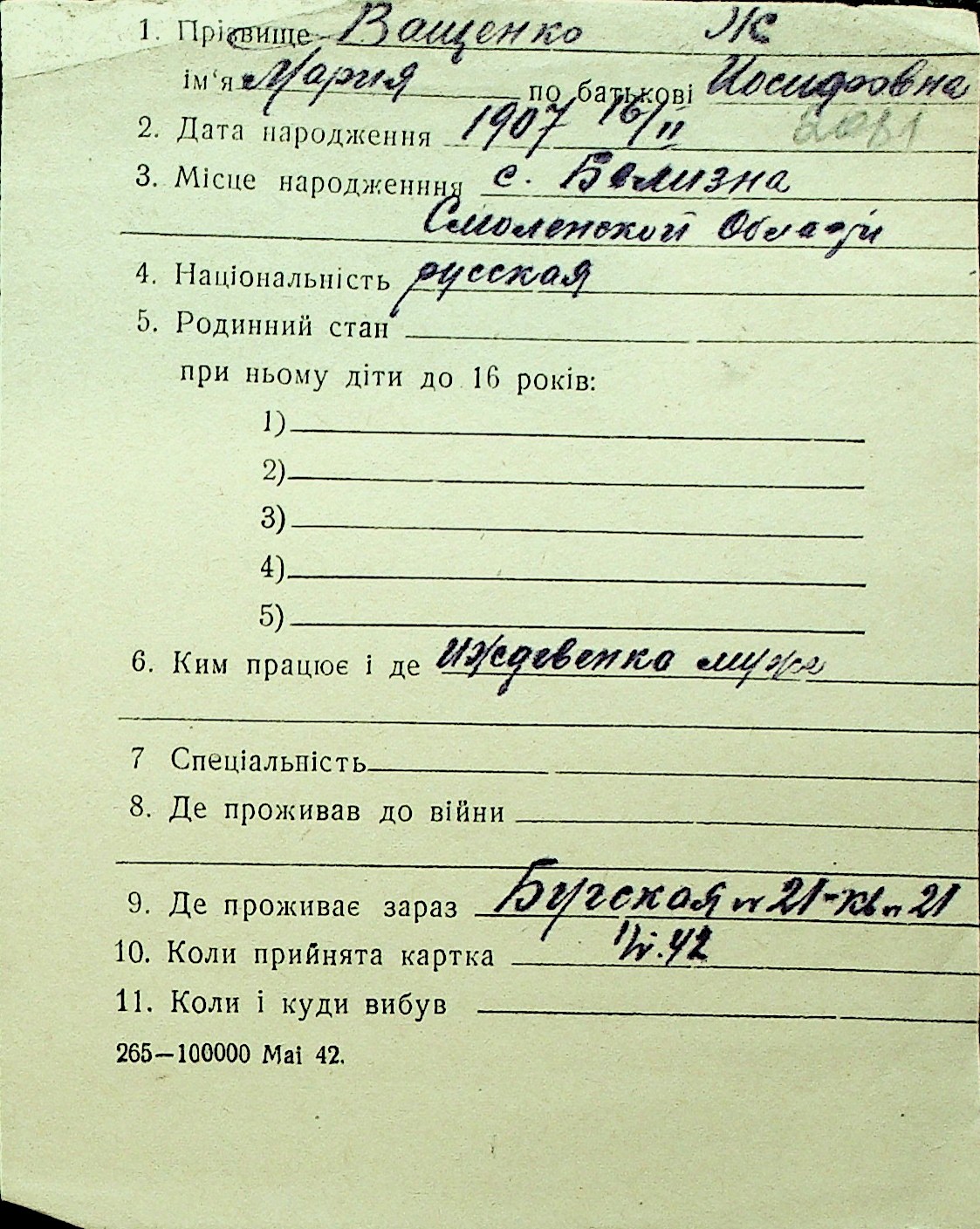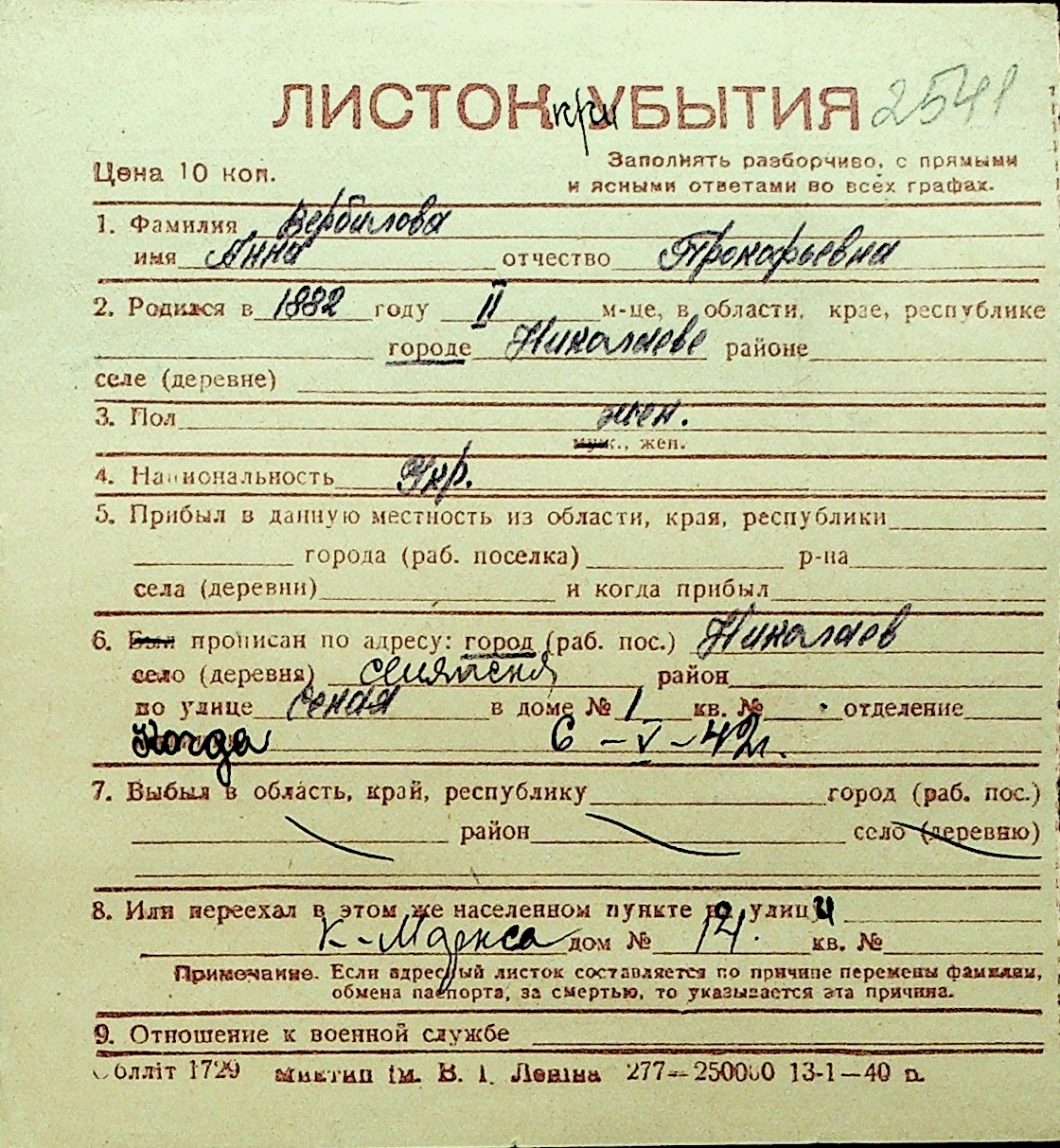 • • Перелік карток до фонду № Н-1016