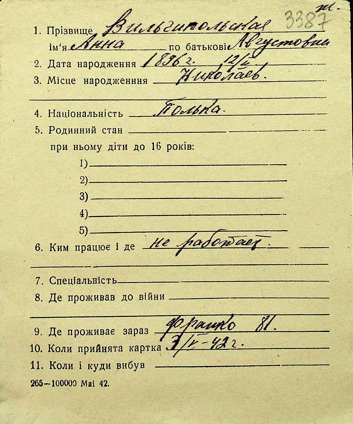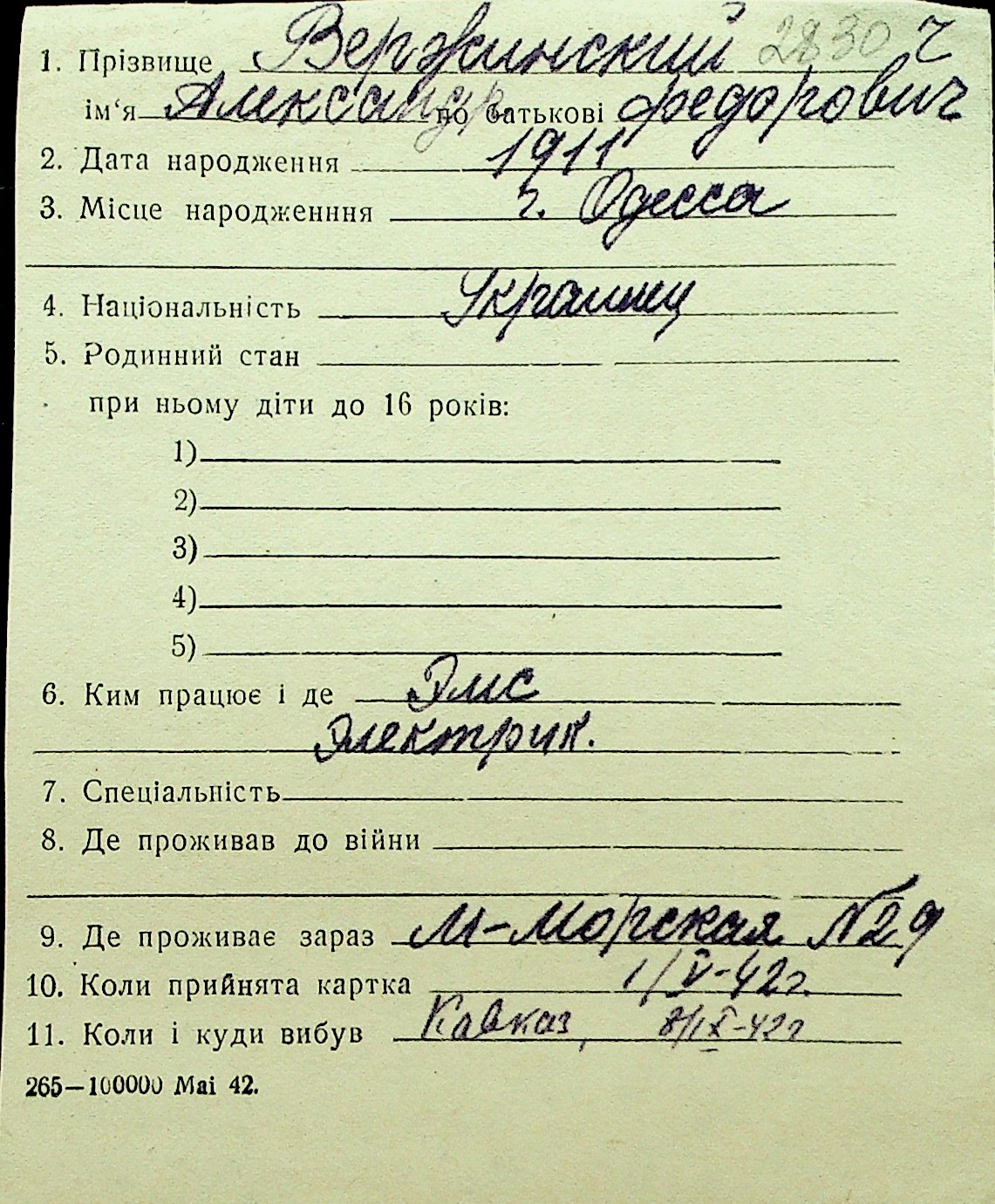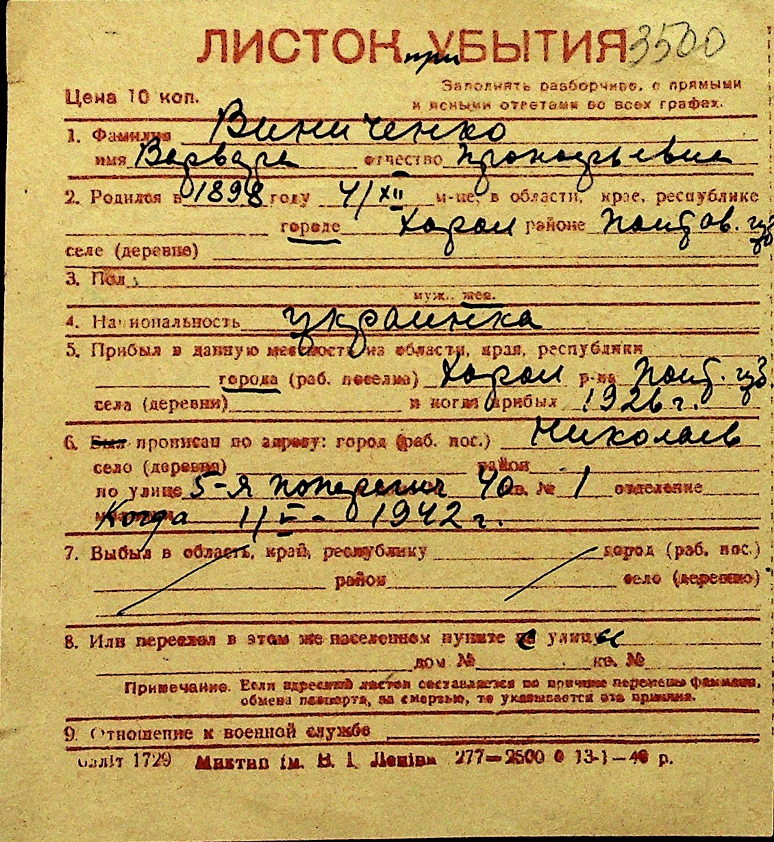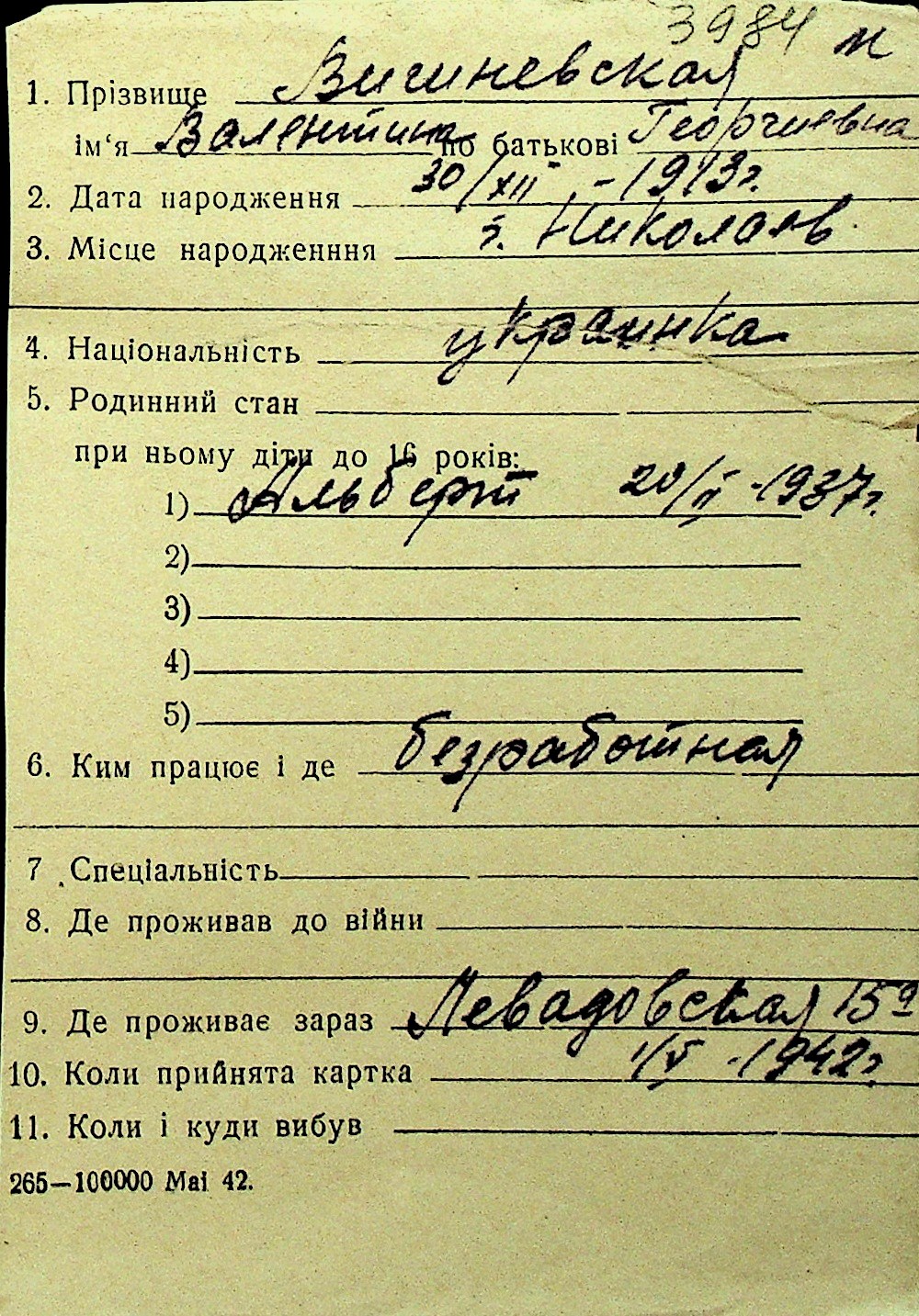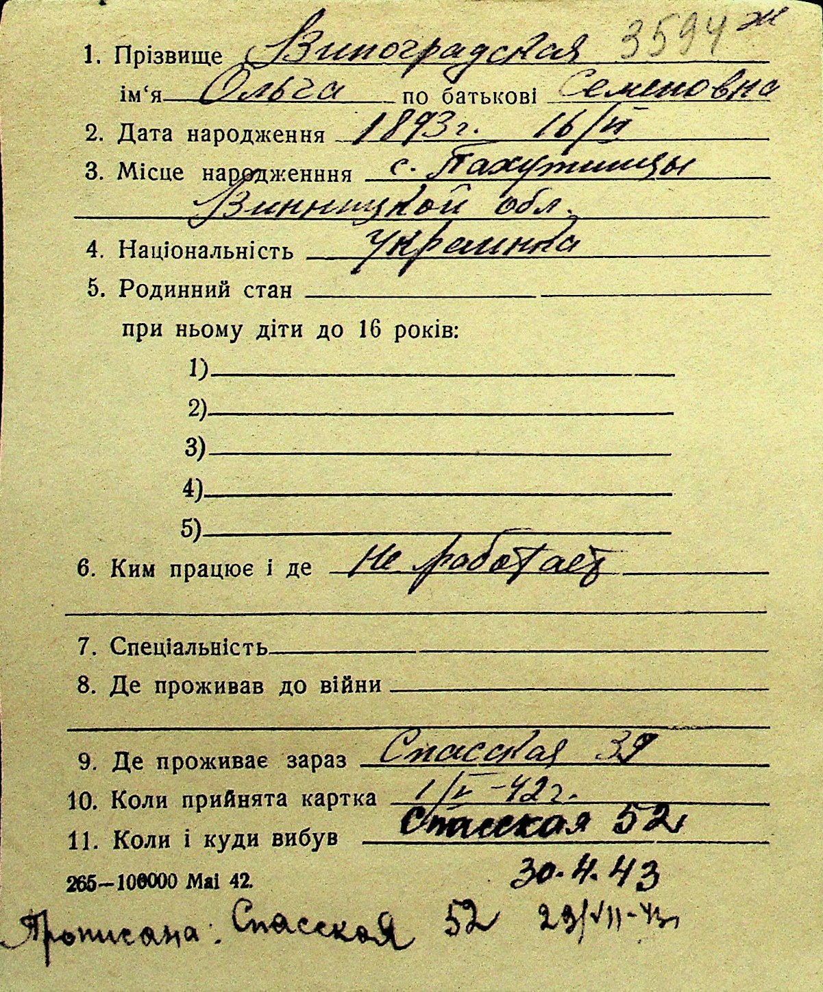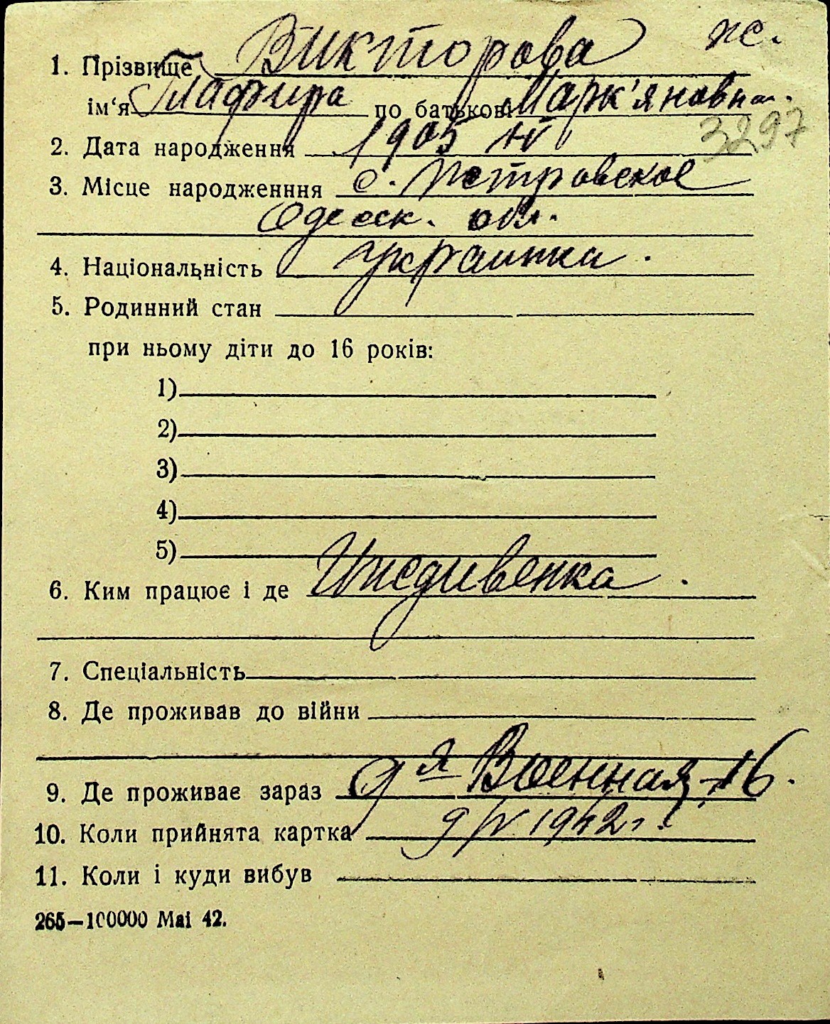 • • Перелік карток до фонду № Н-1016