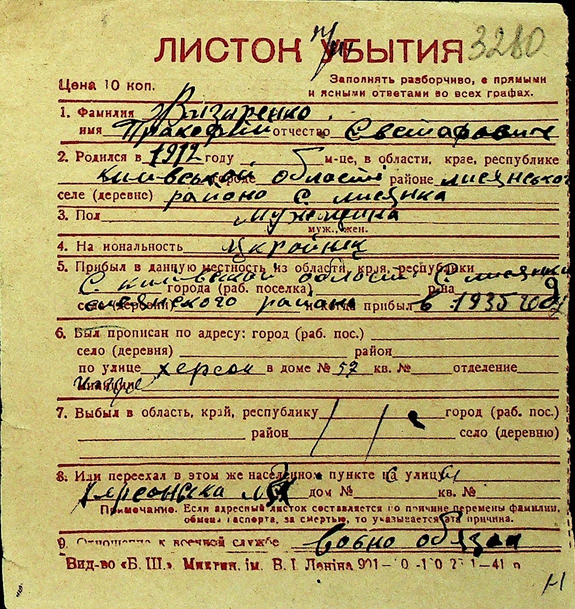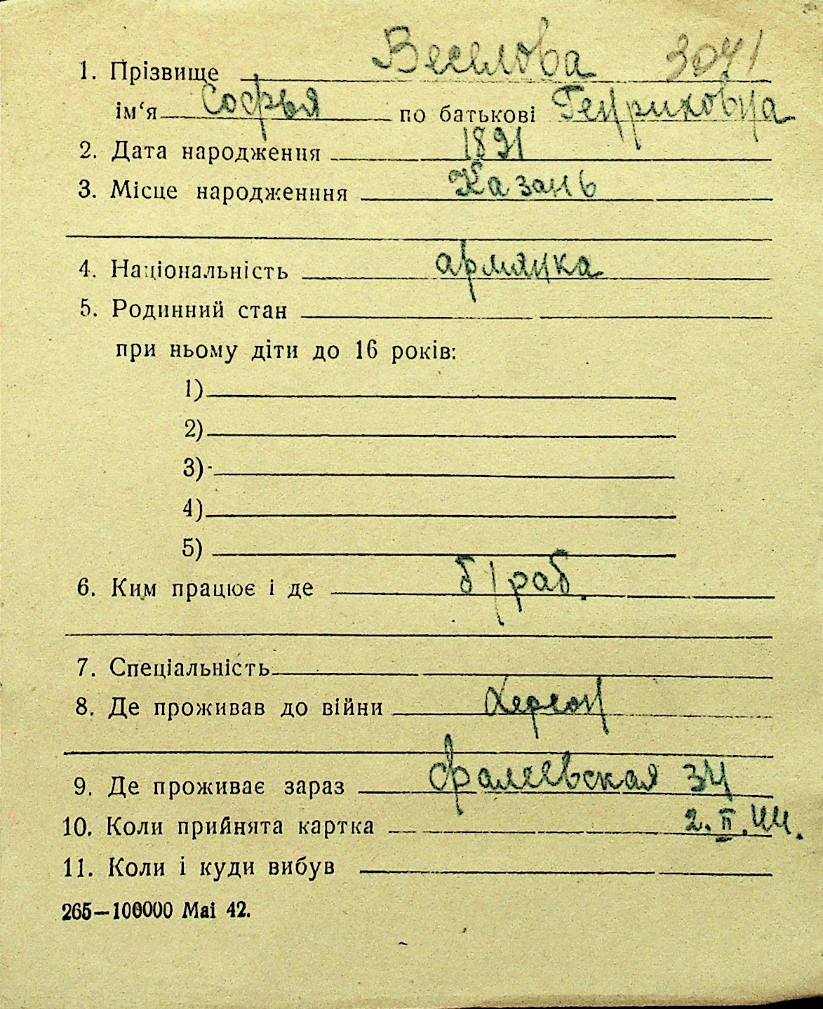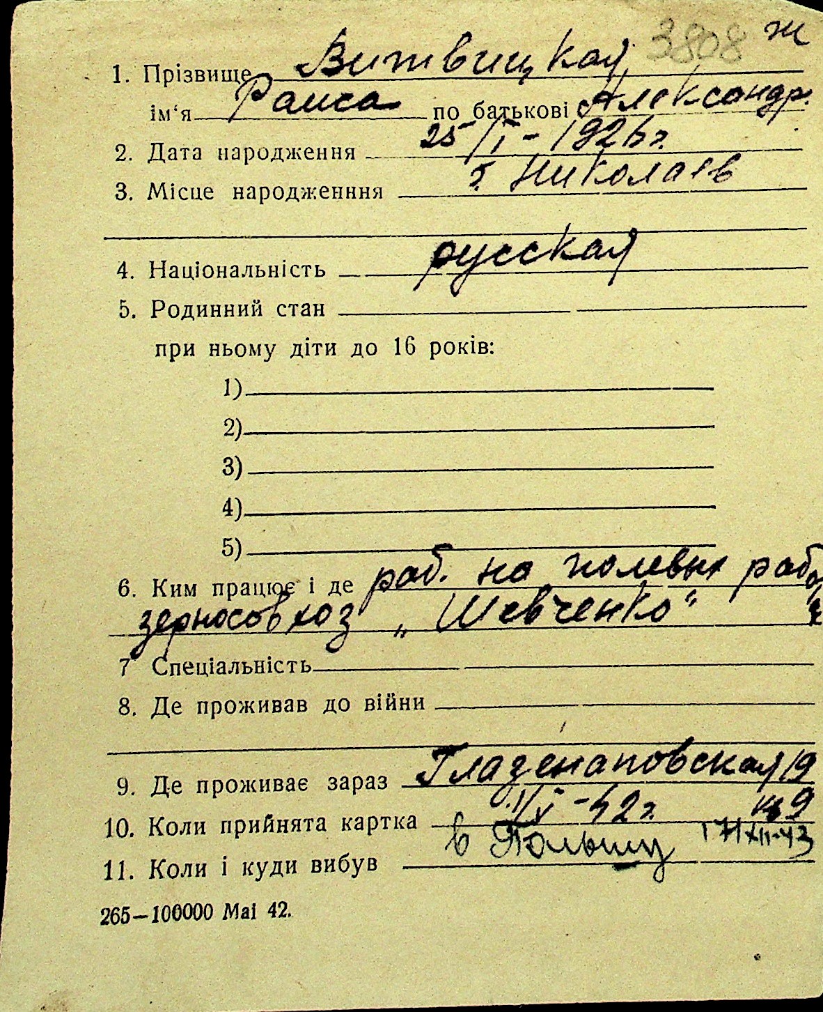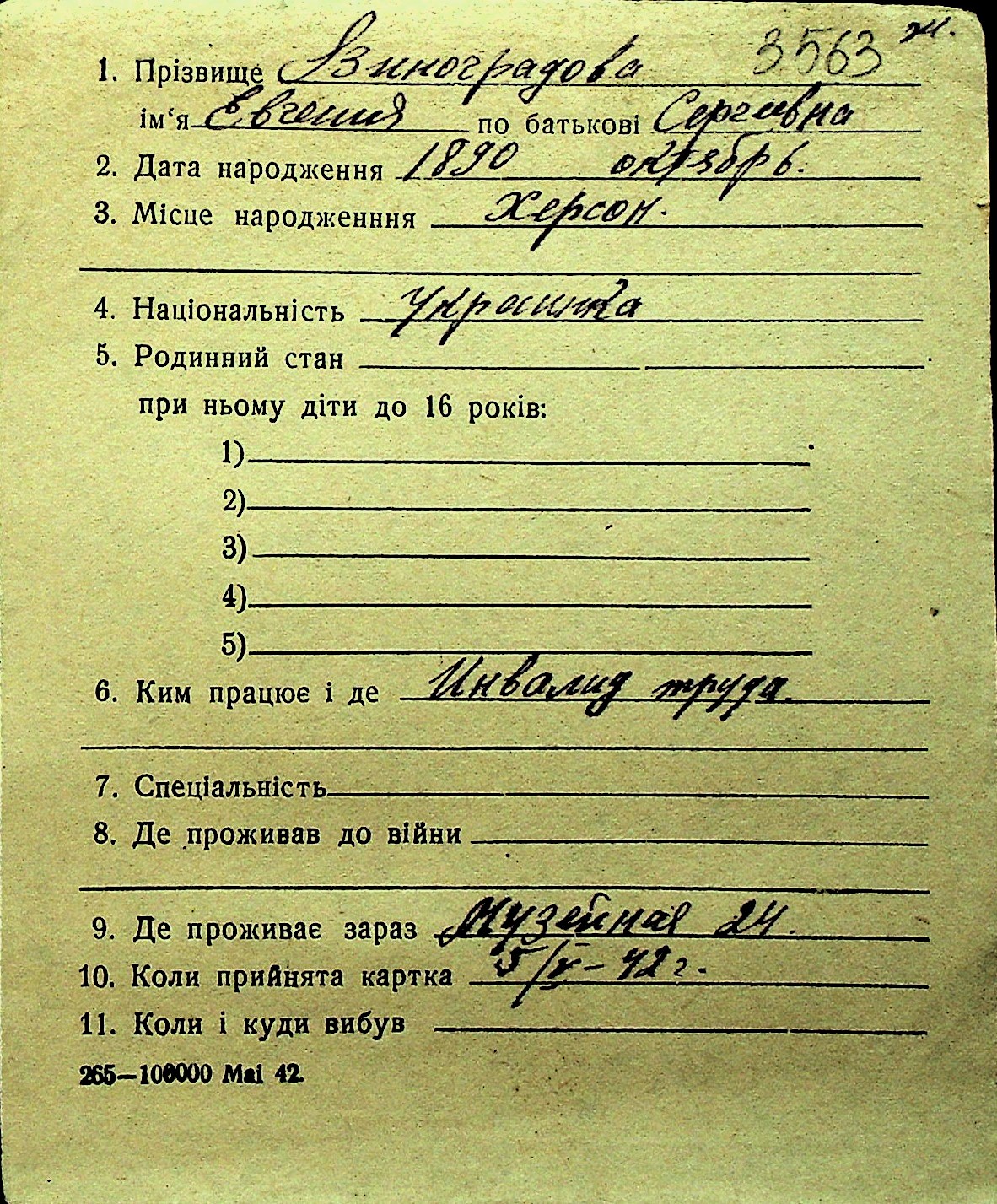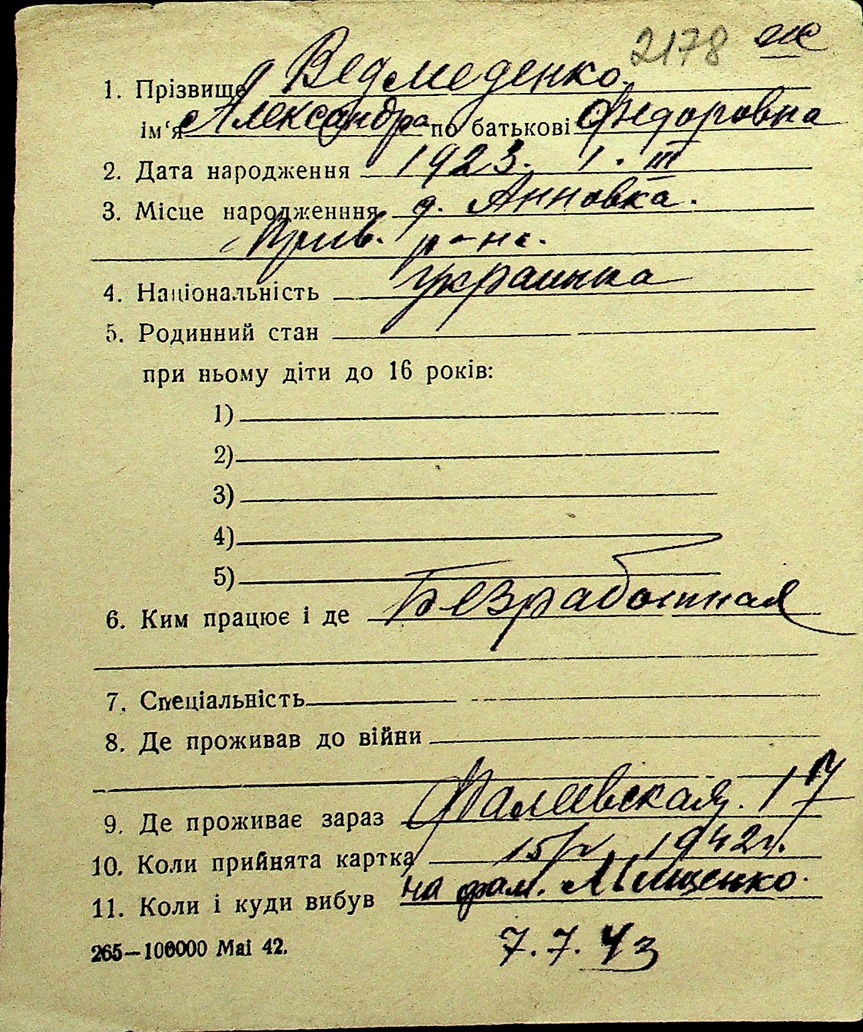 • • Перелік карток до фонду № Н-1016