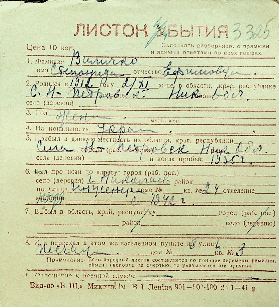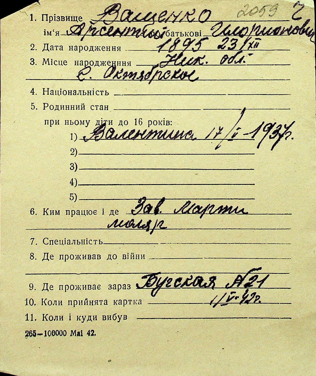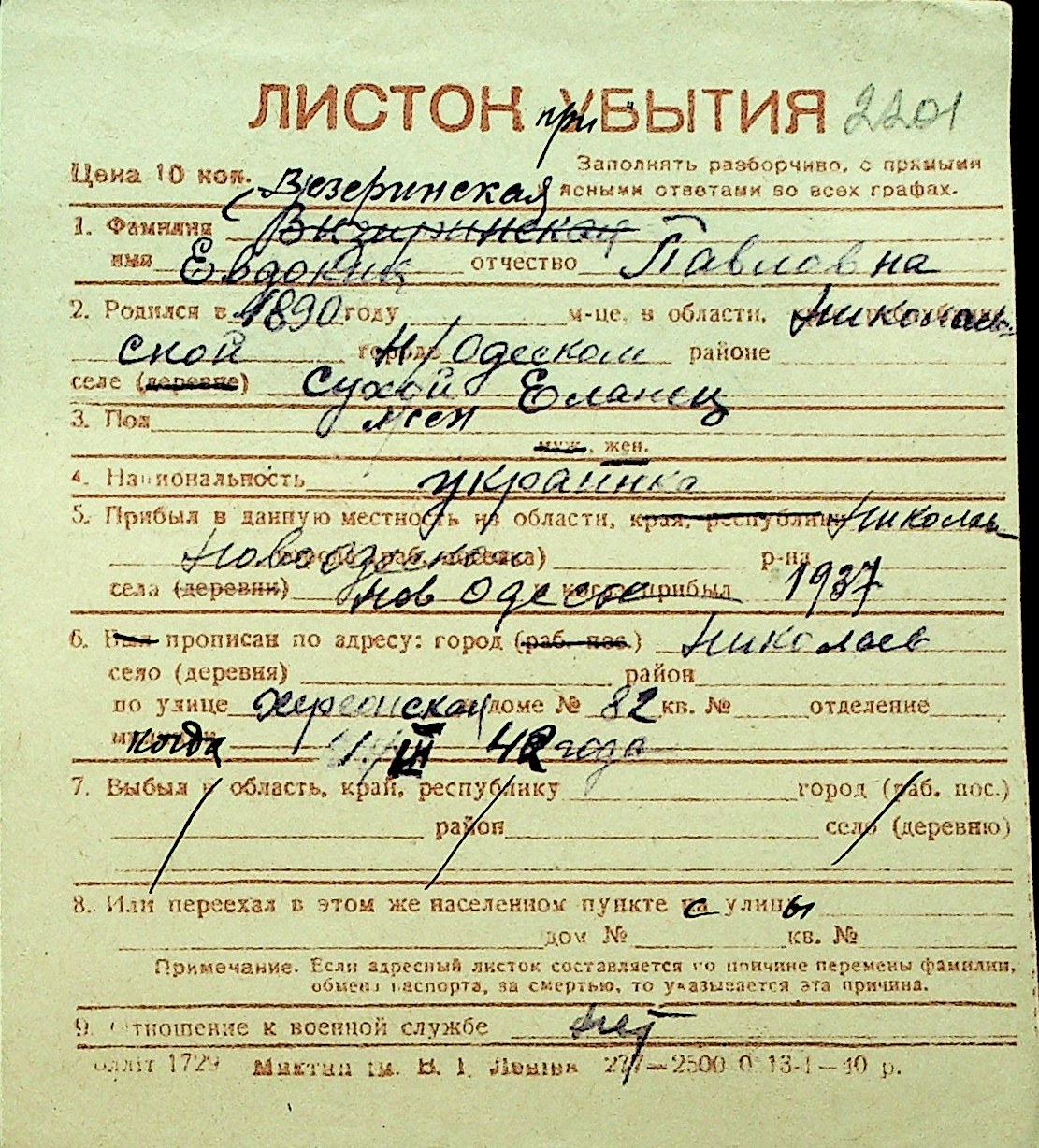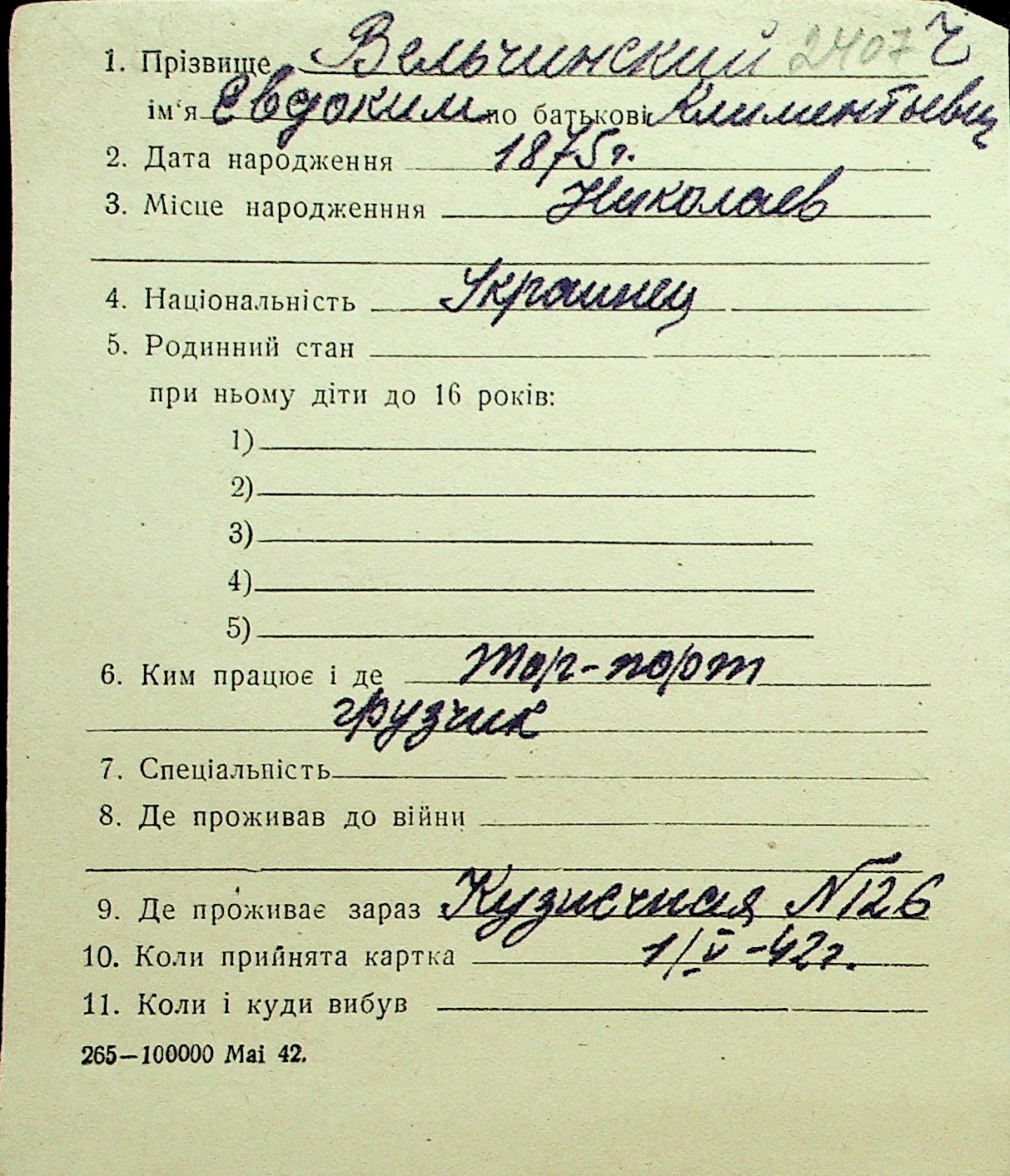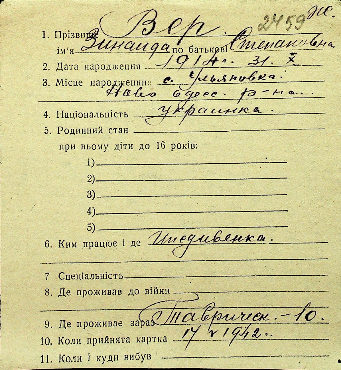 • • Перелік карток до фонду № Н-1016