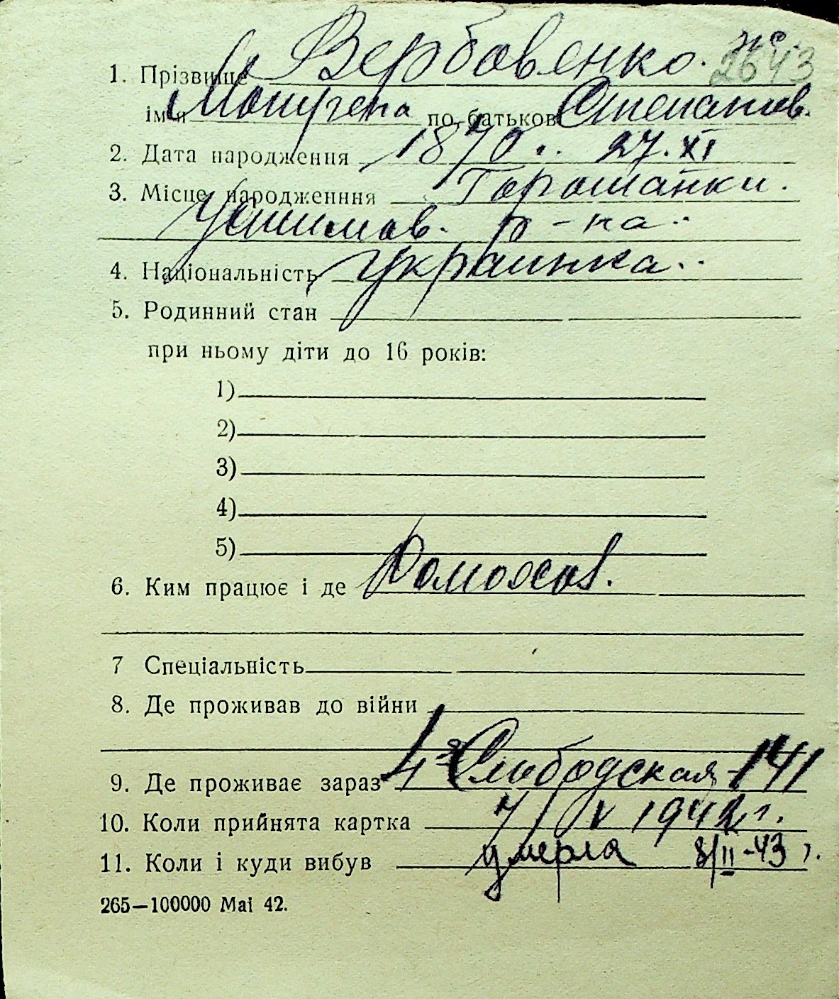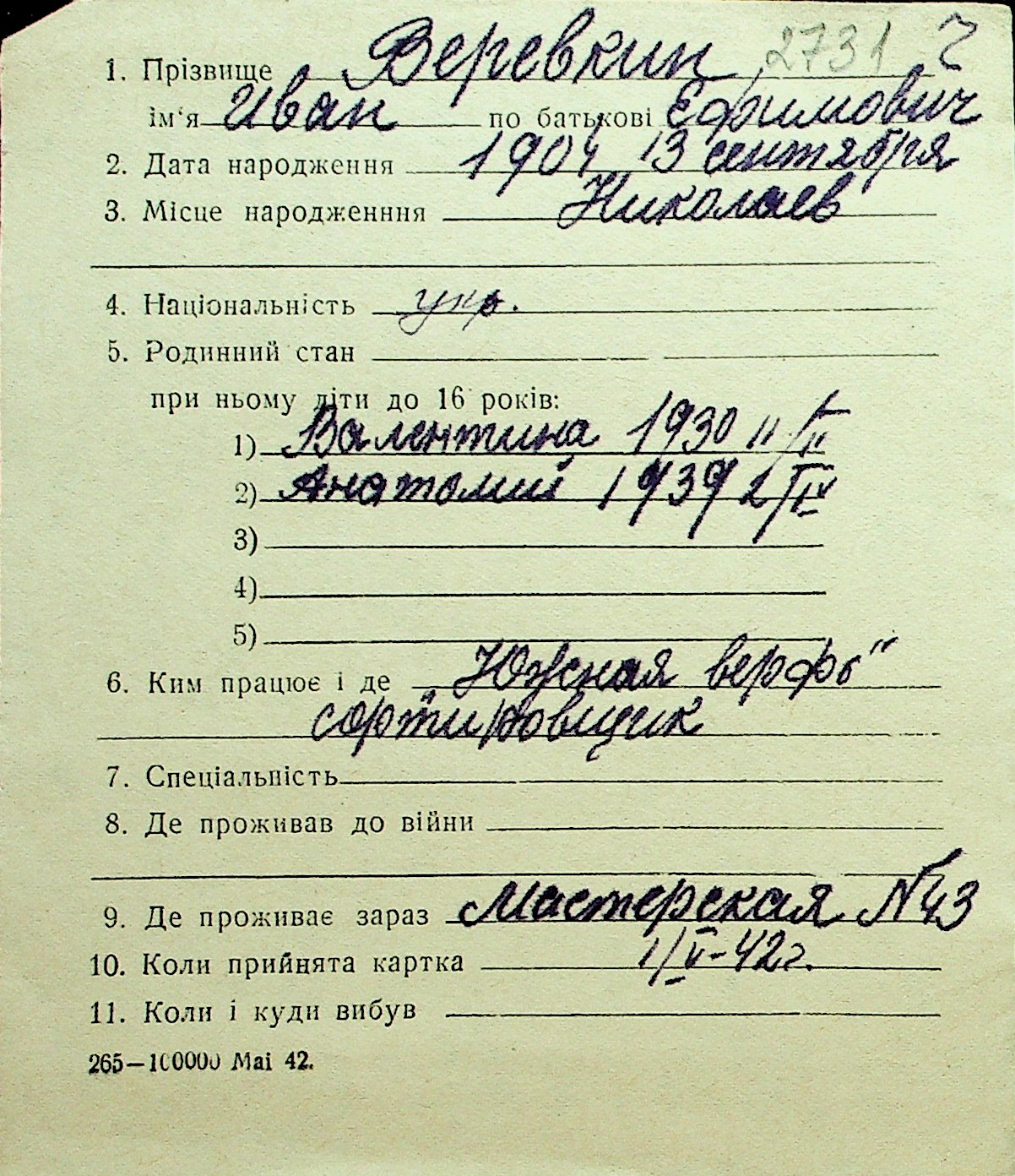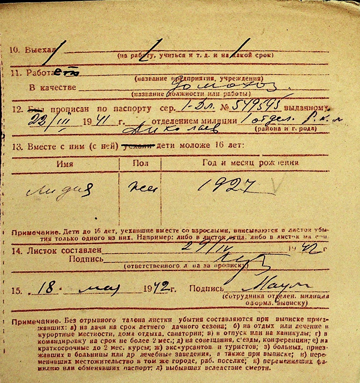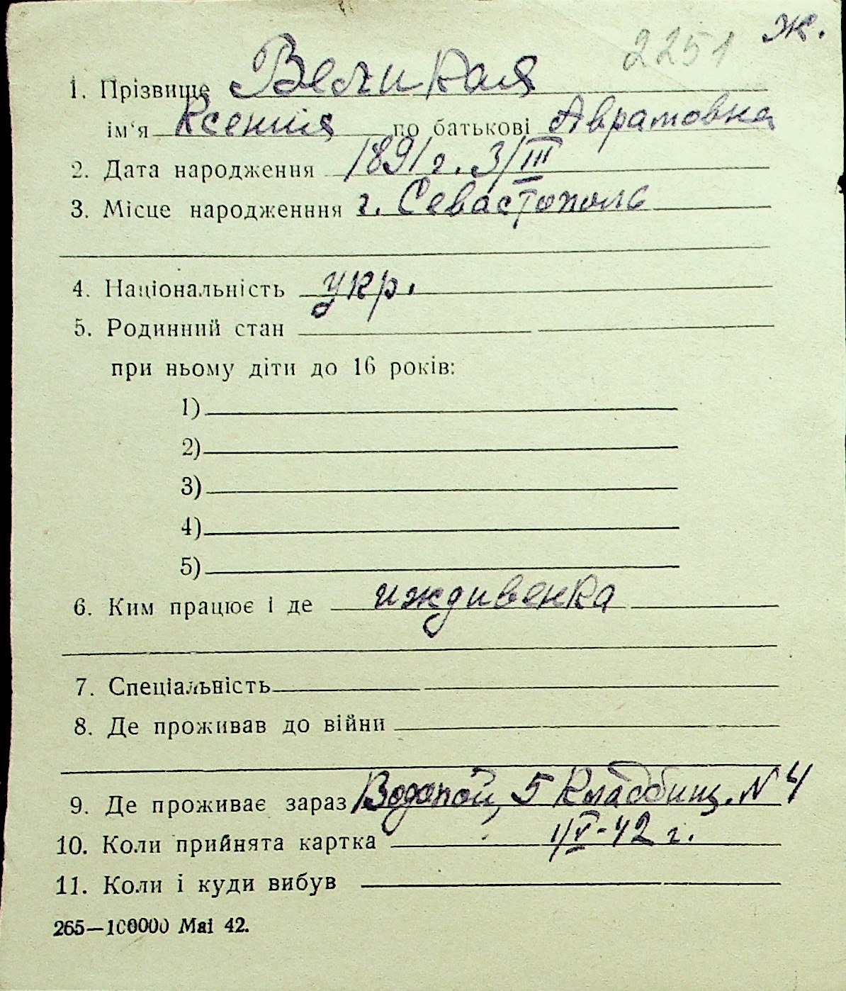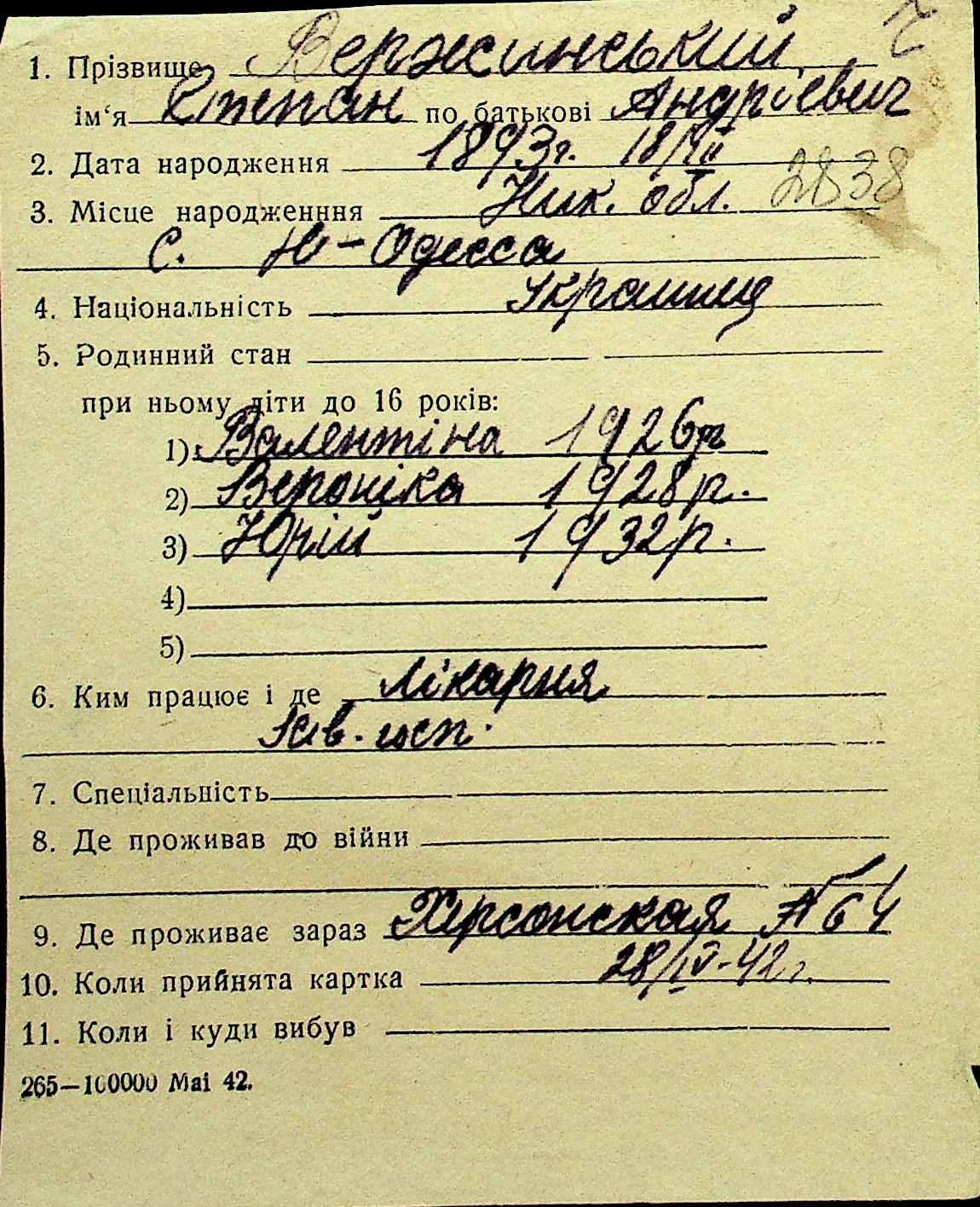 • • Перелік карток до фонду № Н-1016