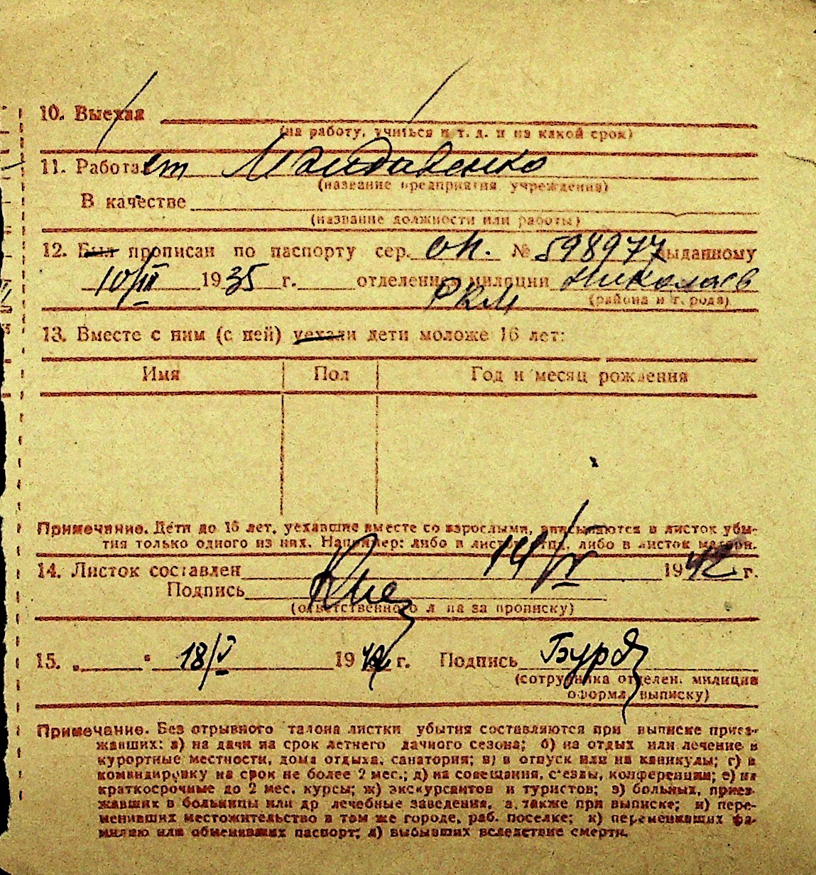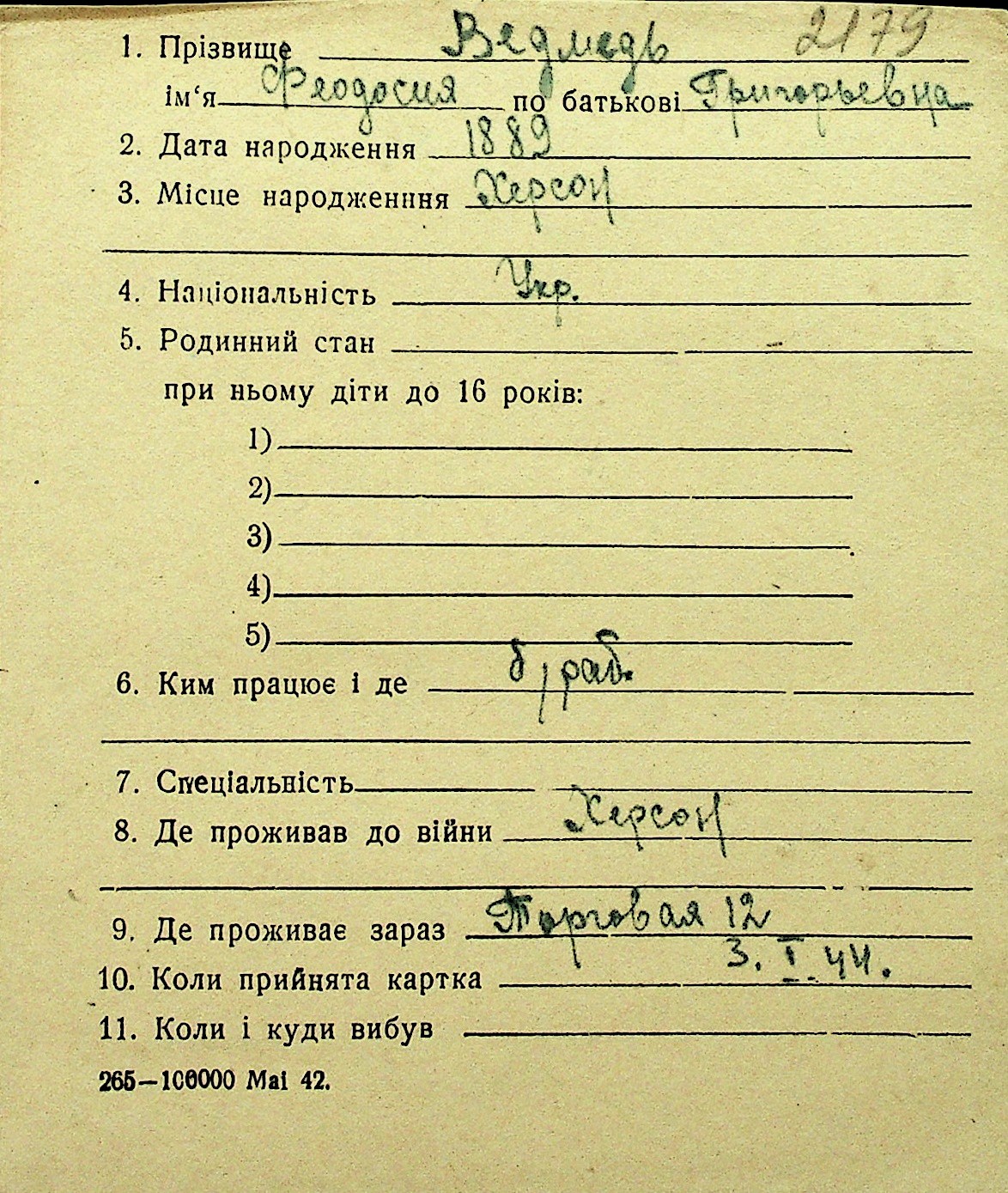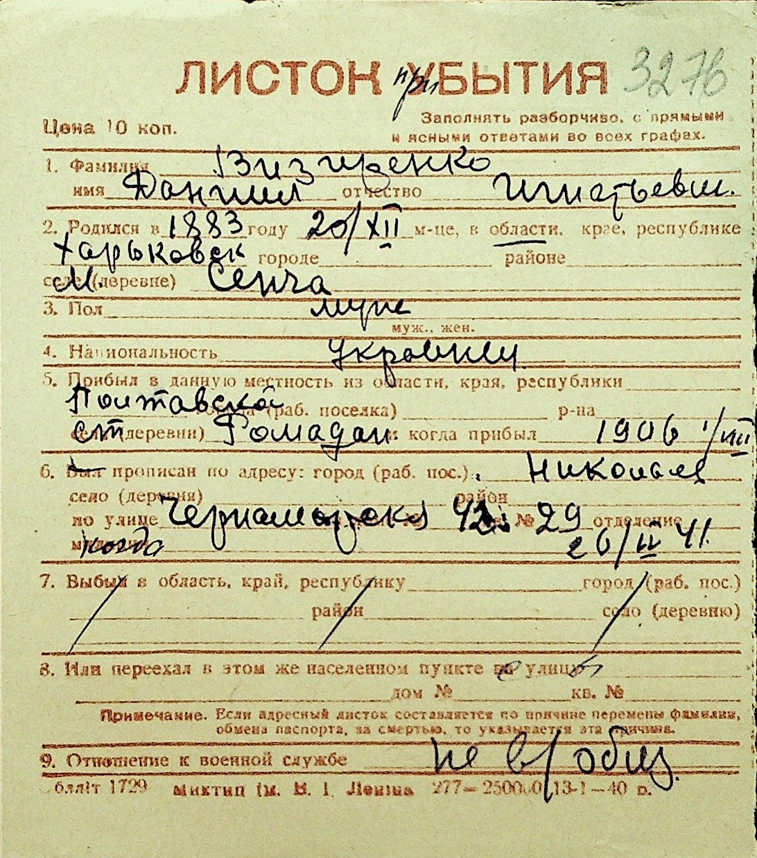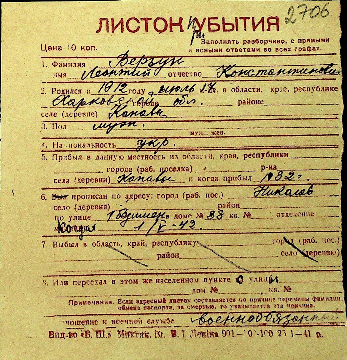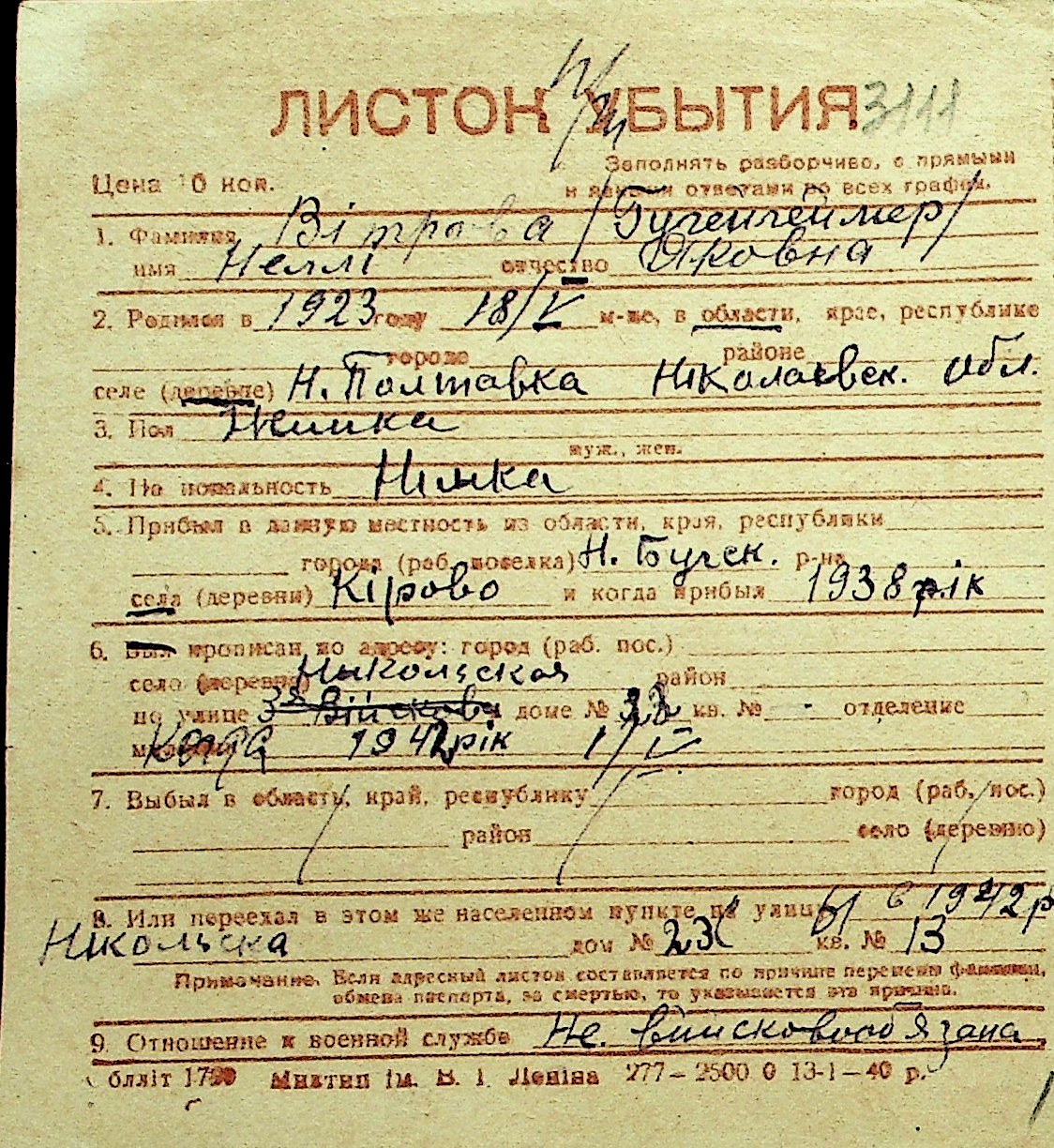 • • Перелік карток до фонду № Н-1016