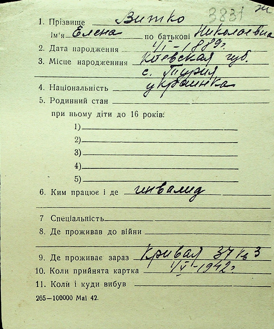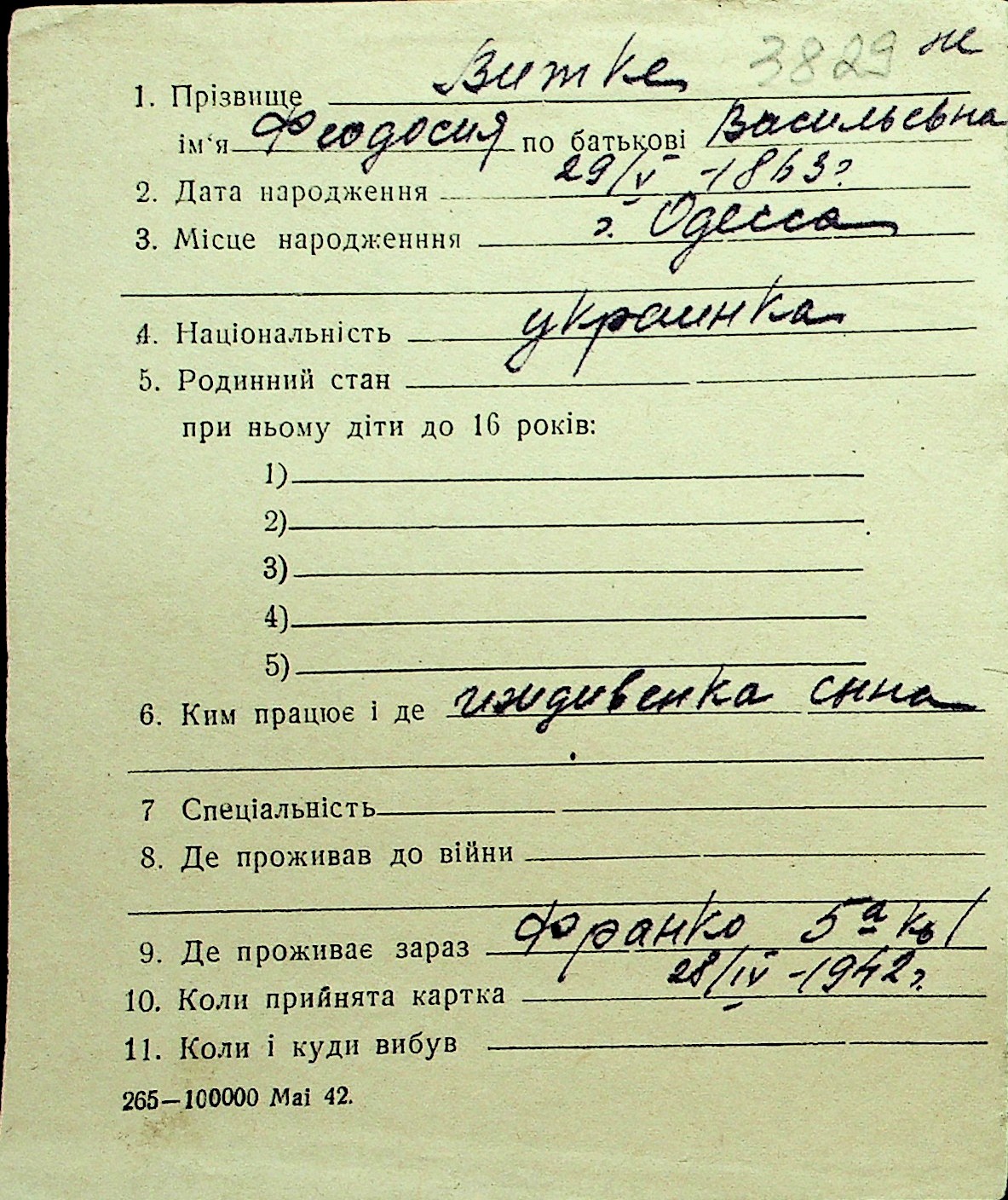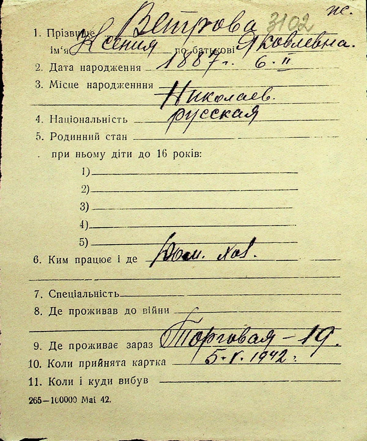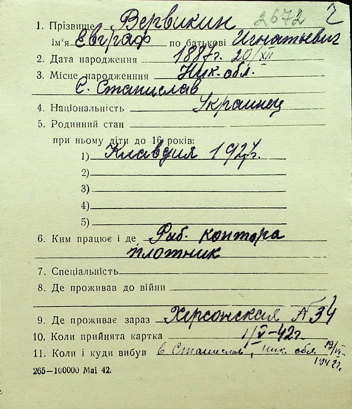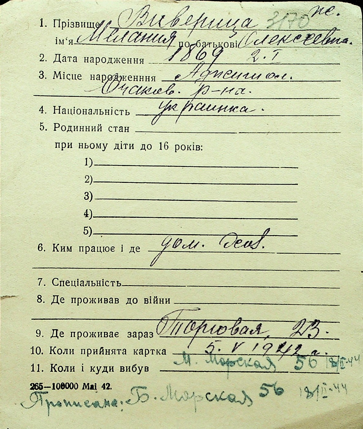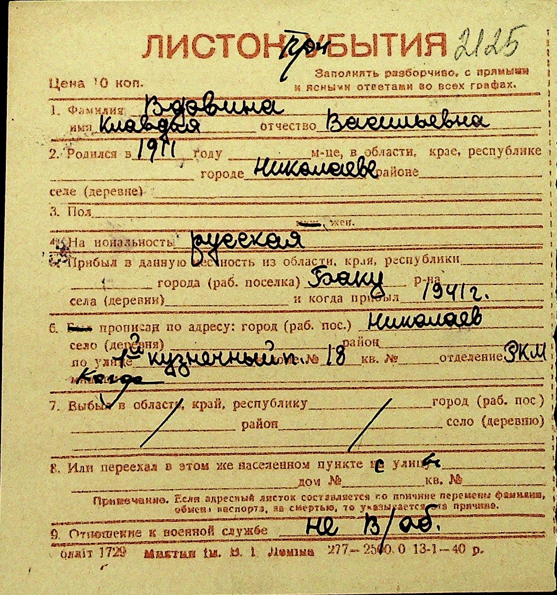 • • Перелік карток до фонду № Н-1016