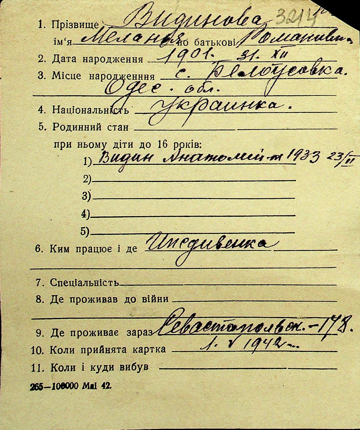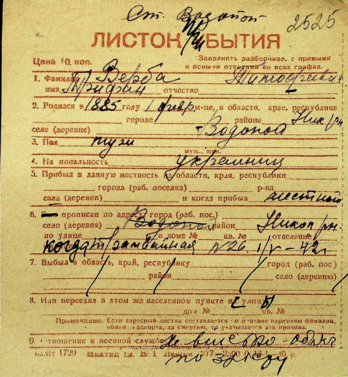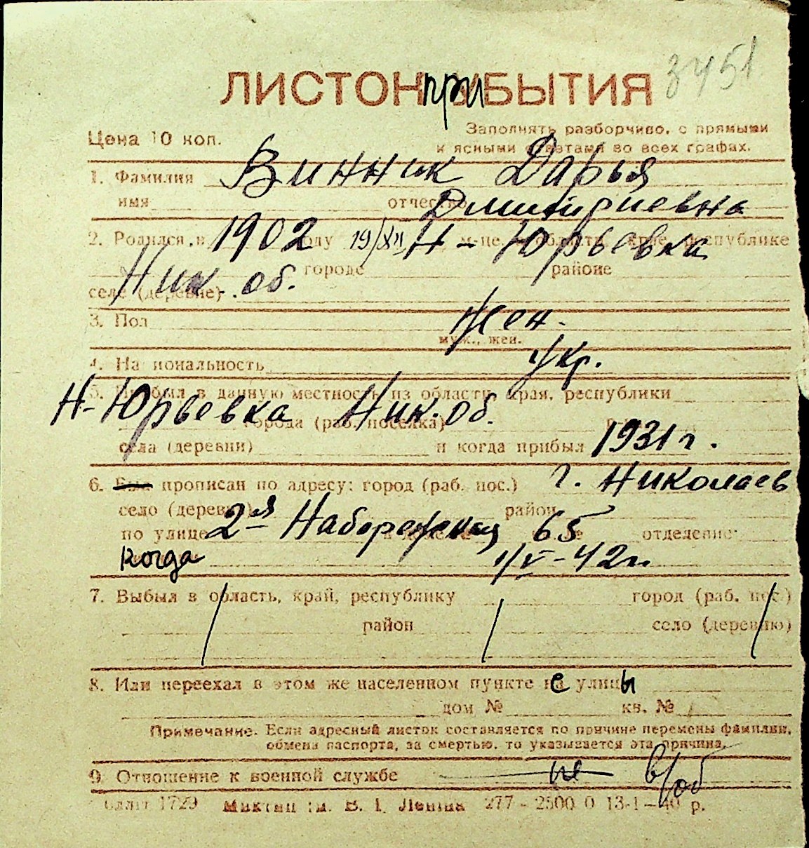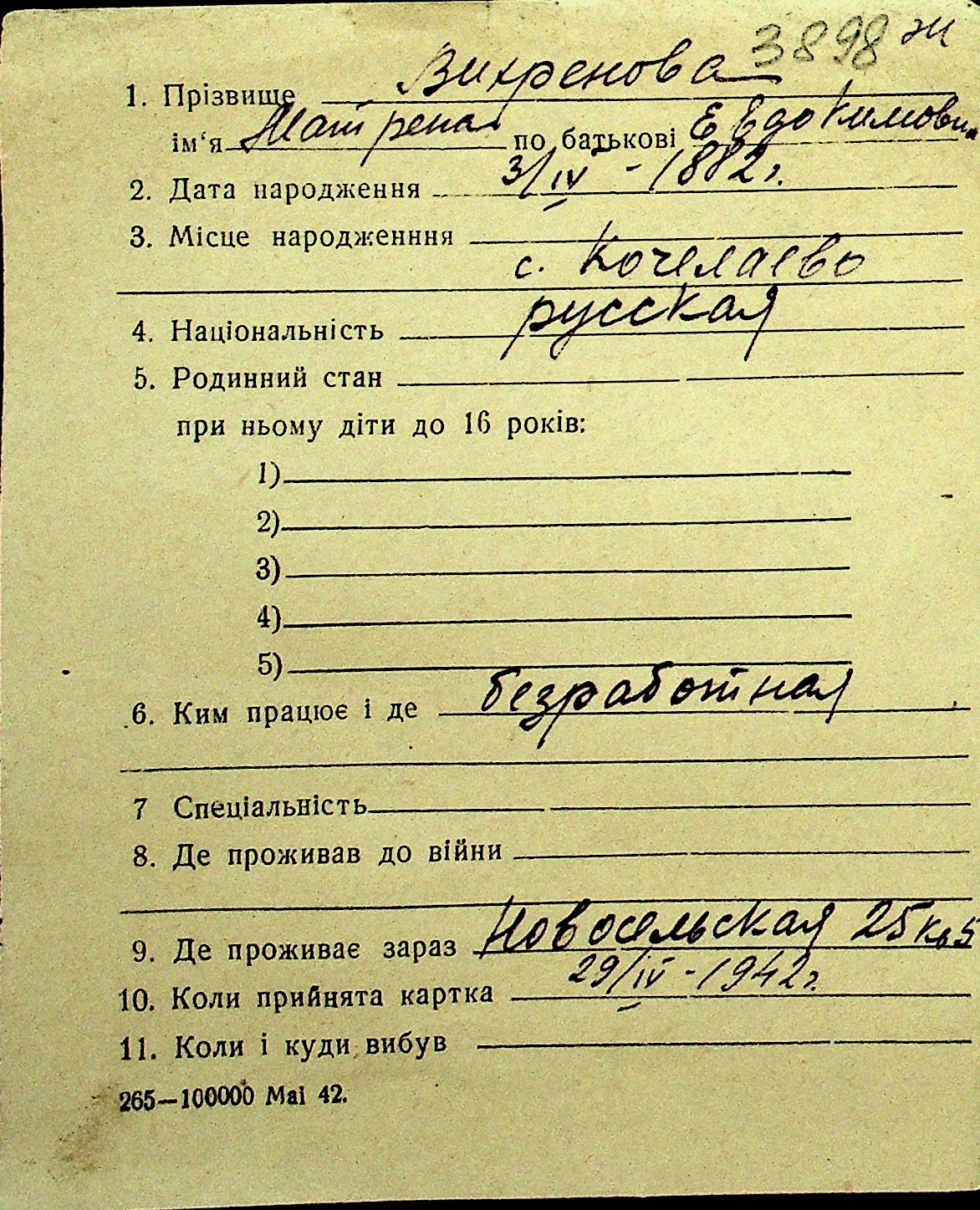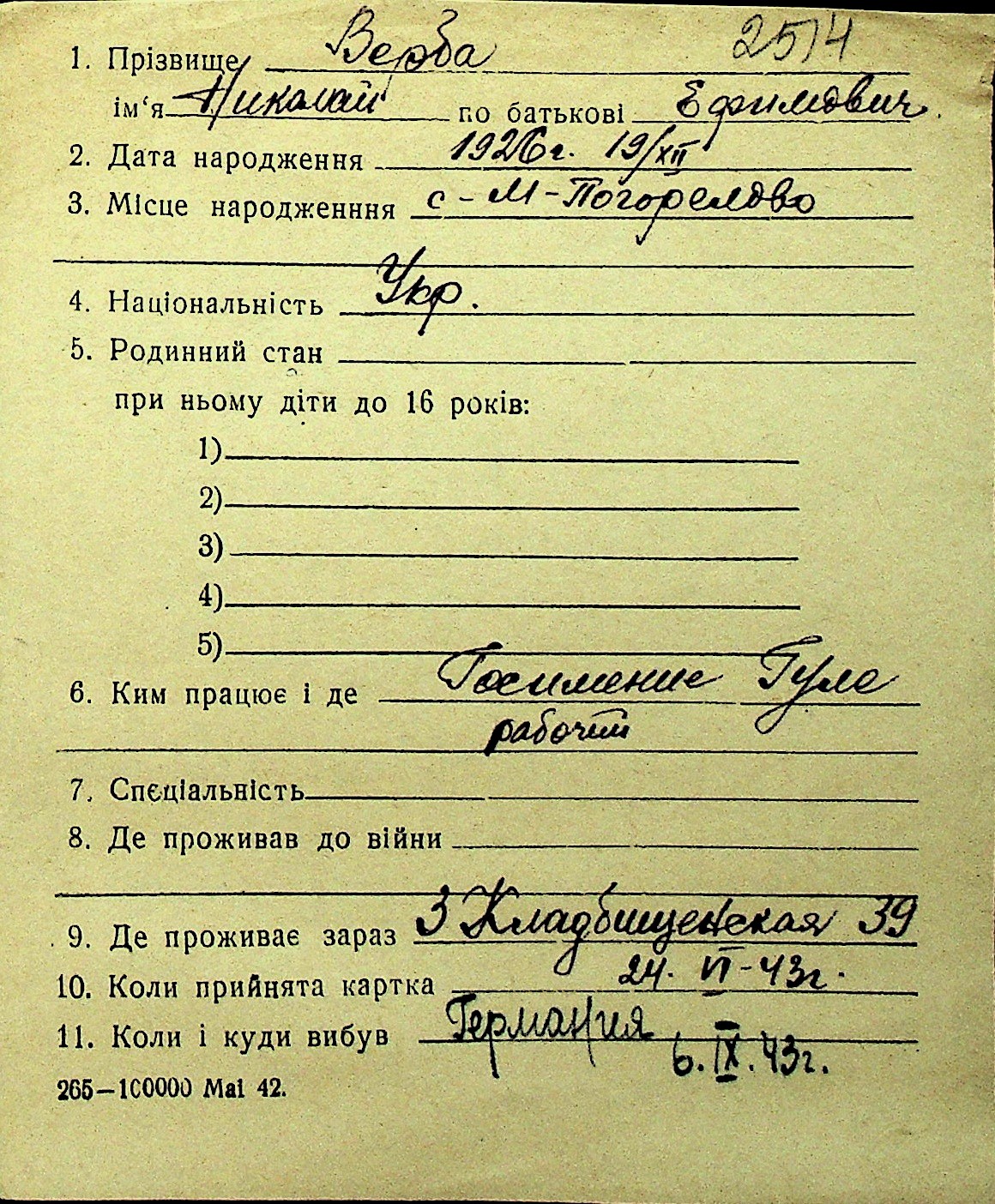 • • Перелік карток до фонду № Н-1016
