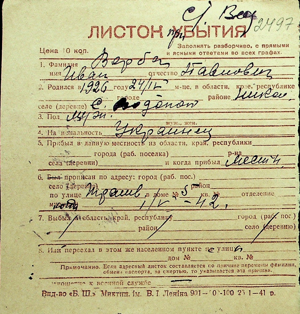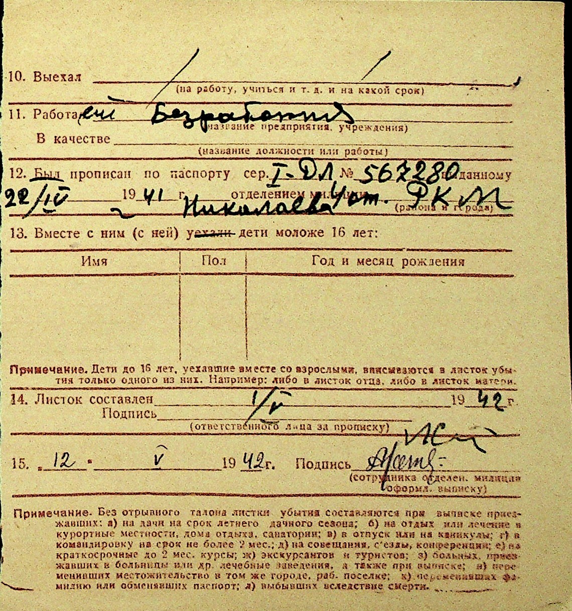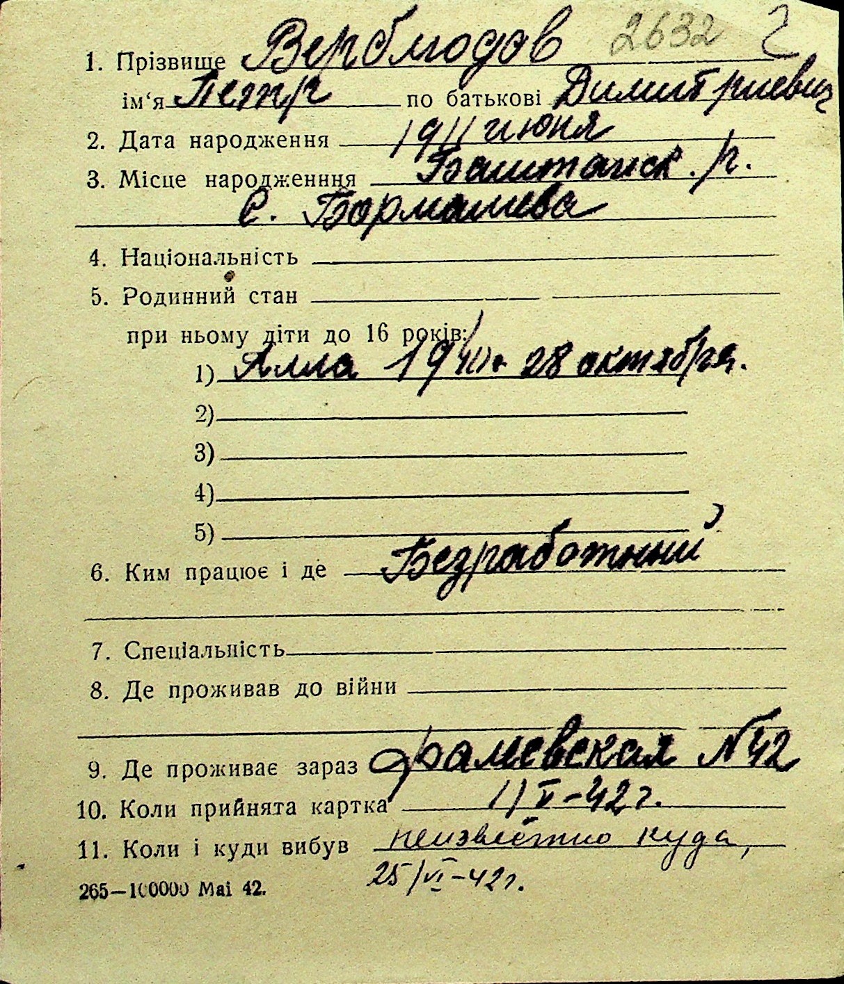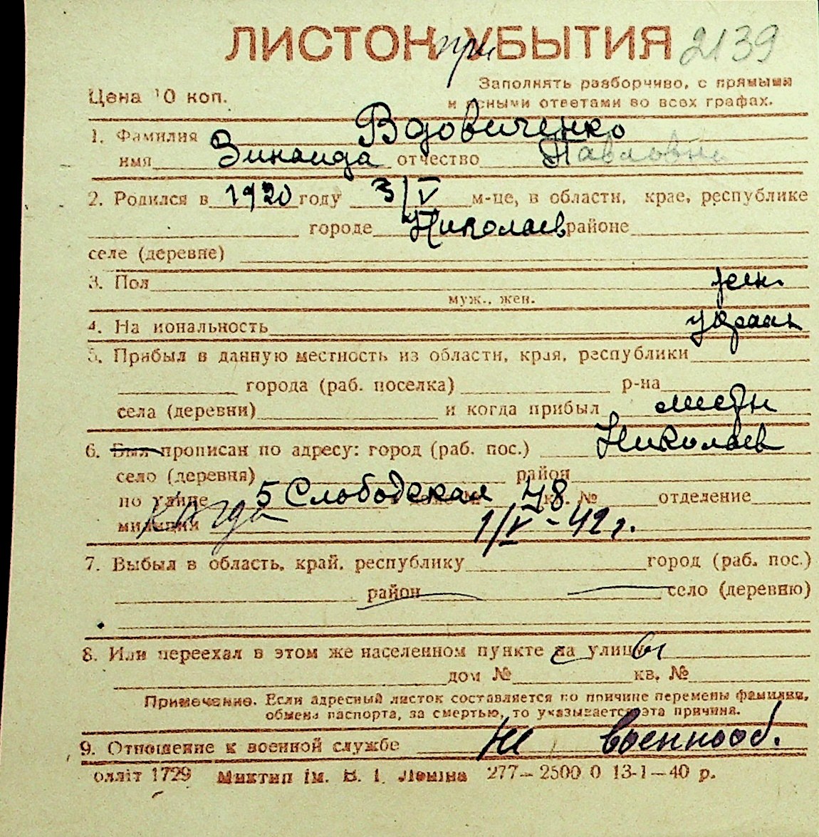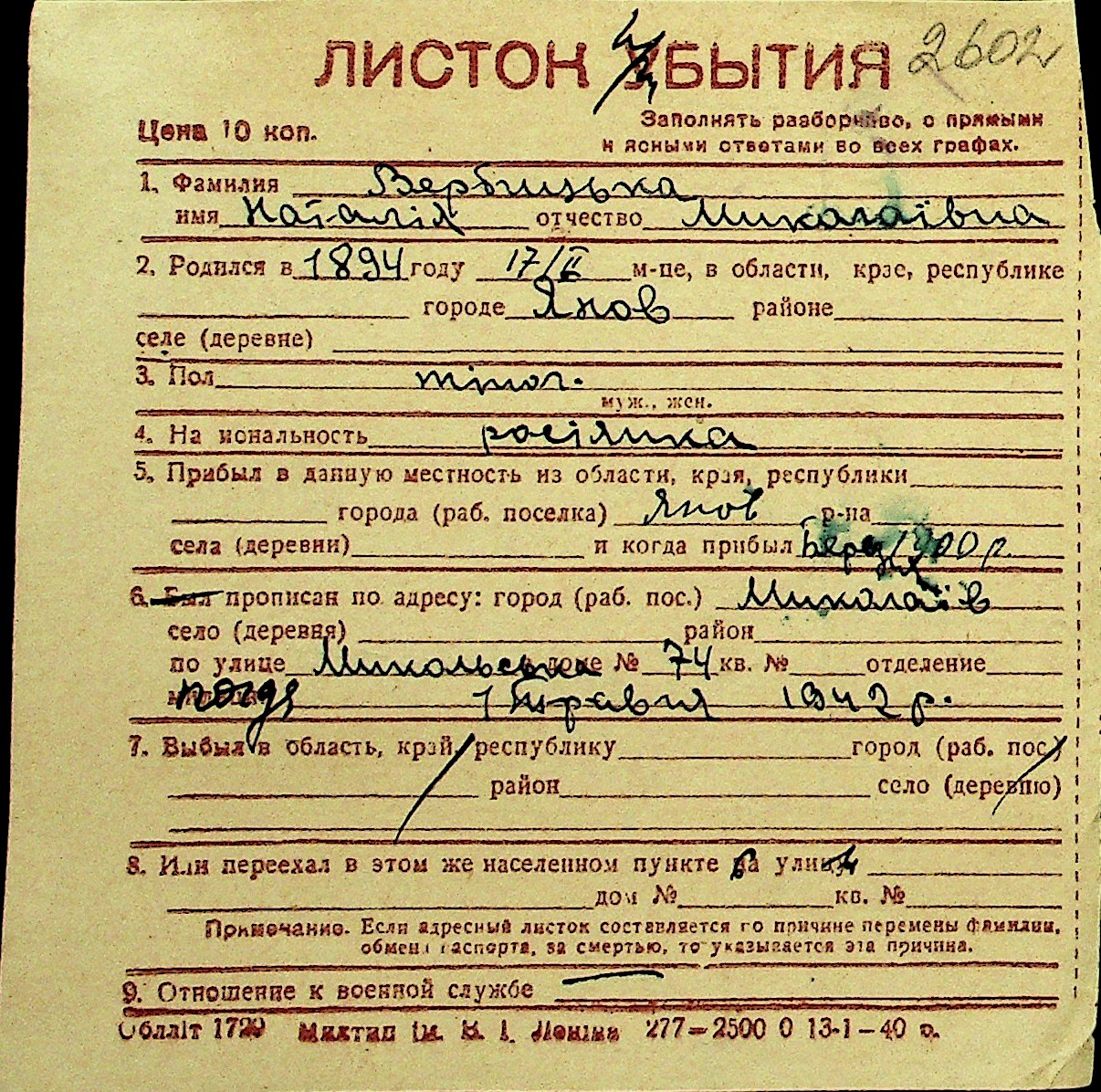 • • Перелік карток до фонду № Н-1016